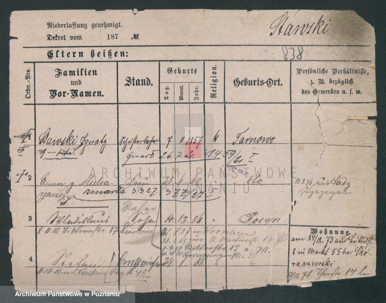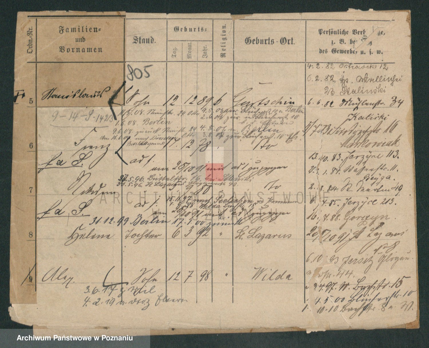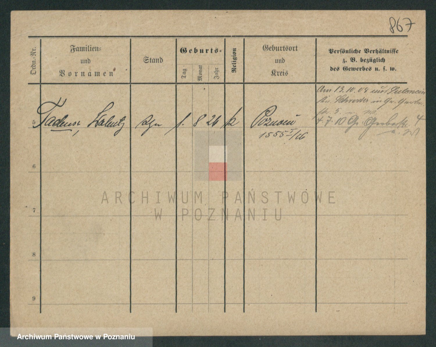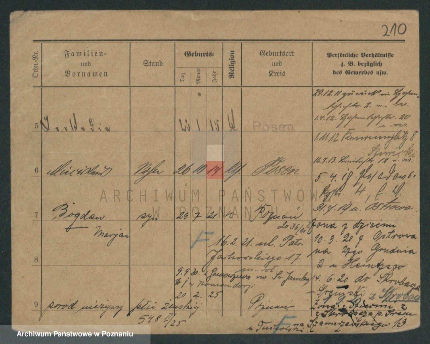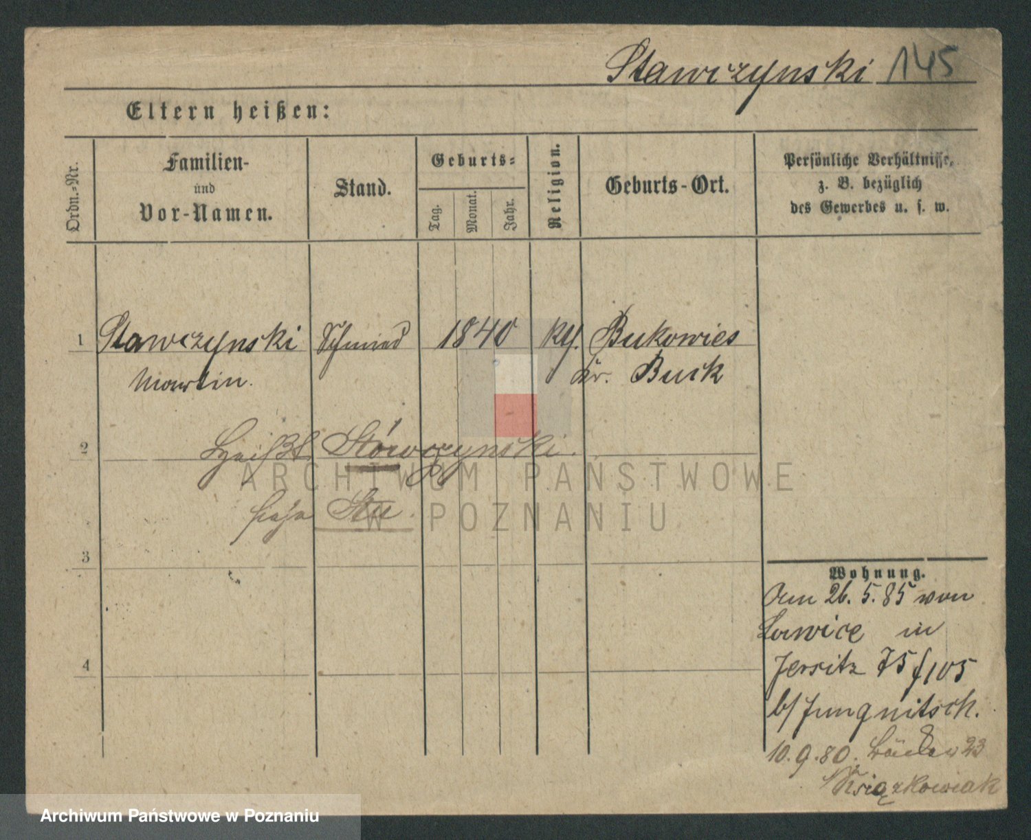 Podgląd karty osobowej dostępny jest po kliknięciu na nazwisko lub ikonkę karty. Można dokonywać powiększenia (ikony na górze) lub przechodzić między kolejnymi skanami (strzałki po bokach).