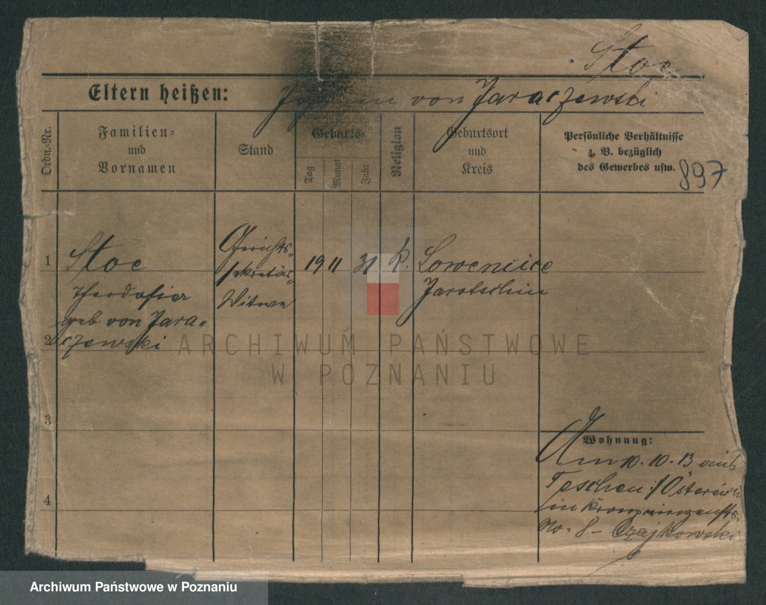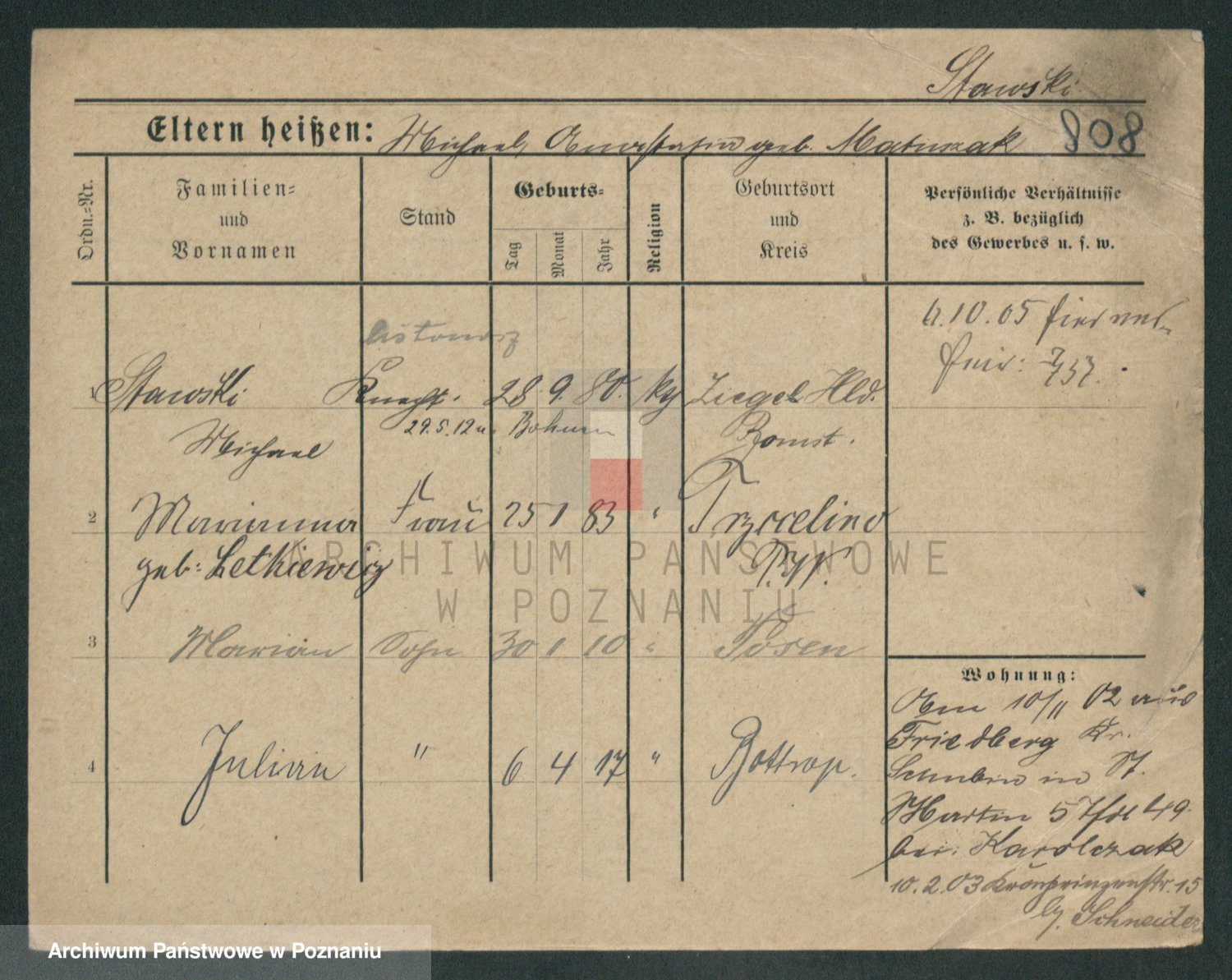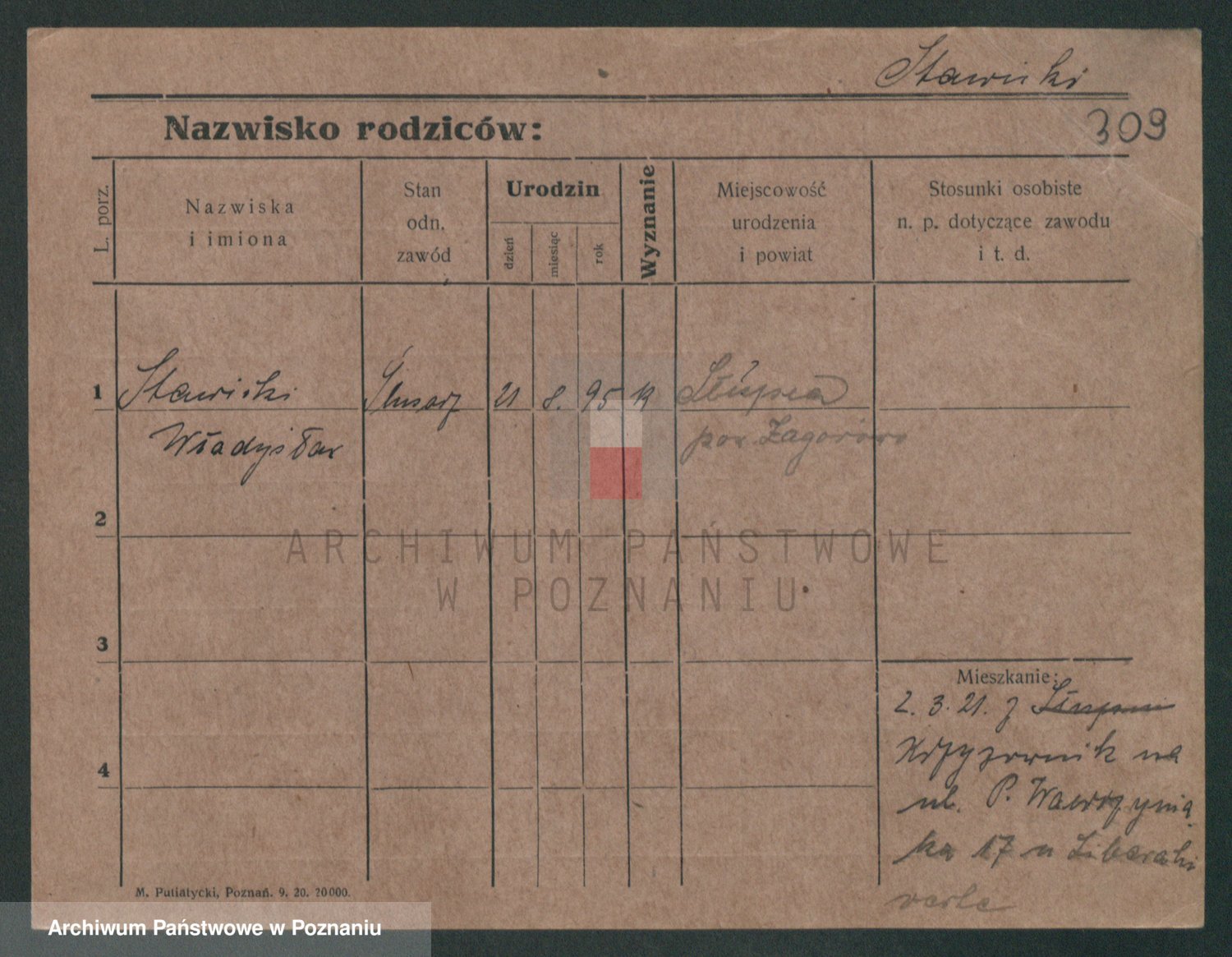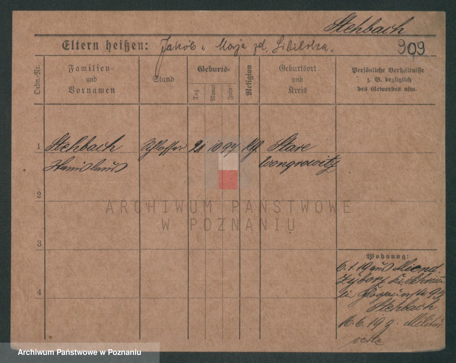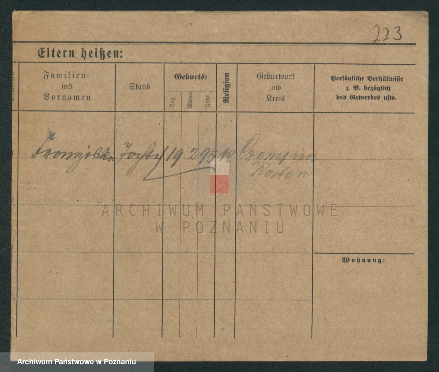 Podgląd karty osobowej dostępny jest po kliknięciu na nazwisko lub ikonkę karty. Można dokonywać powiększenia (ikony na górze) lub przechodzić między kolejnymi skanami (strzałki po bokach).