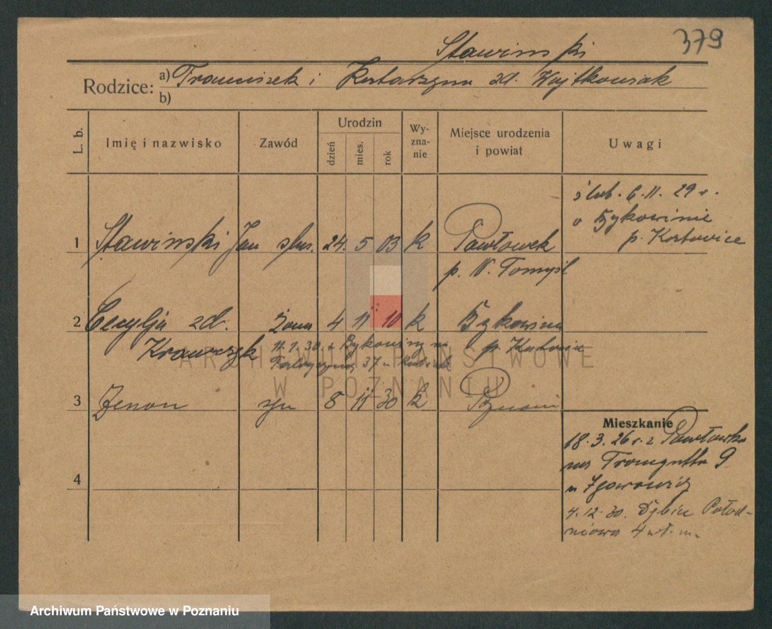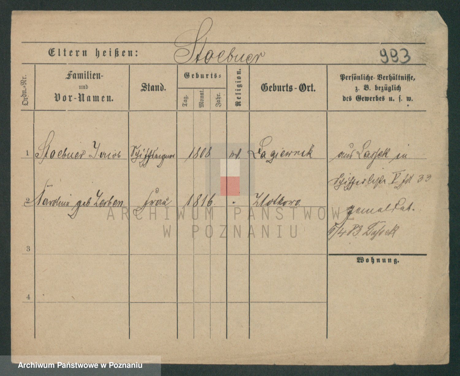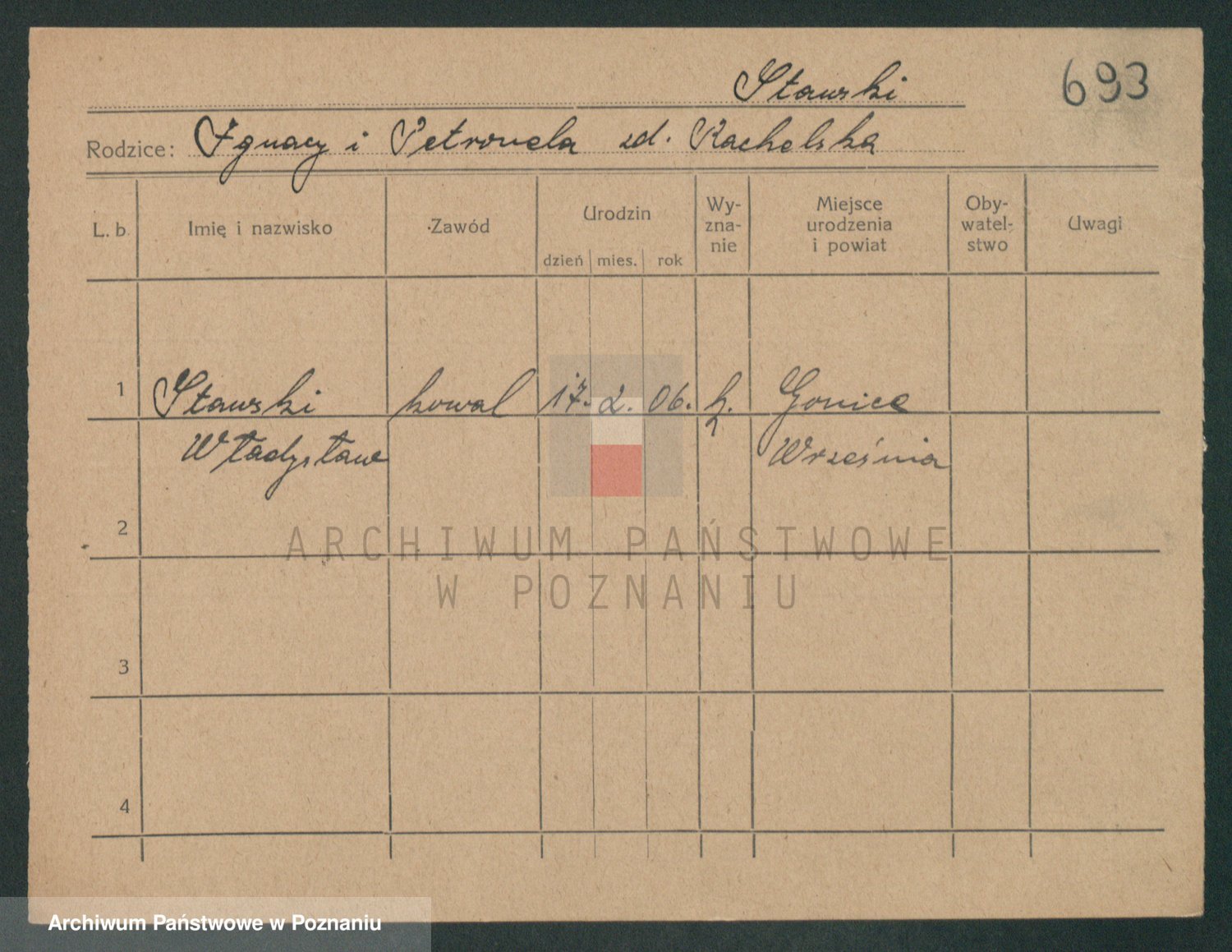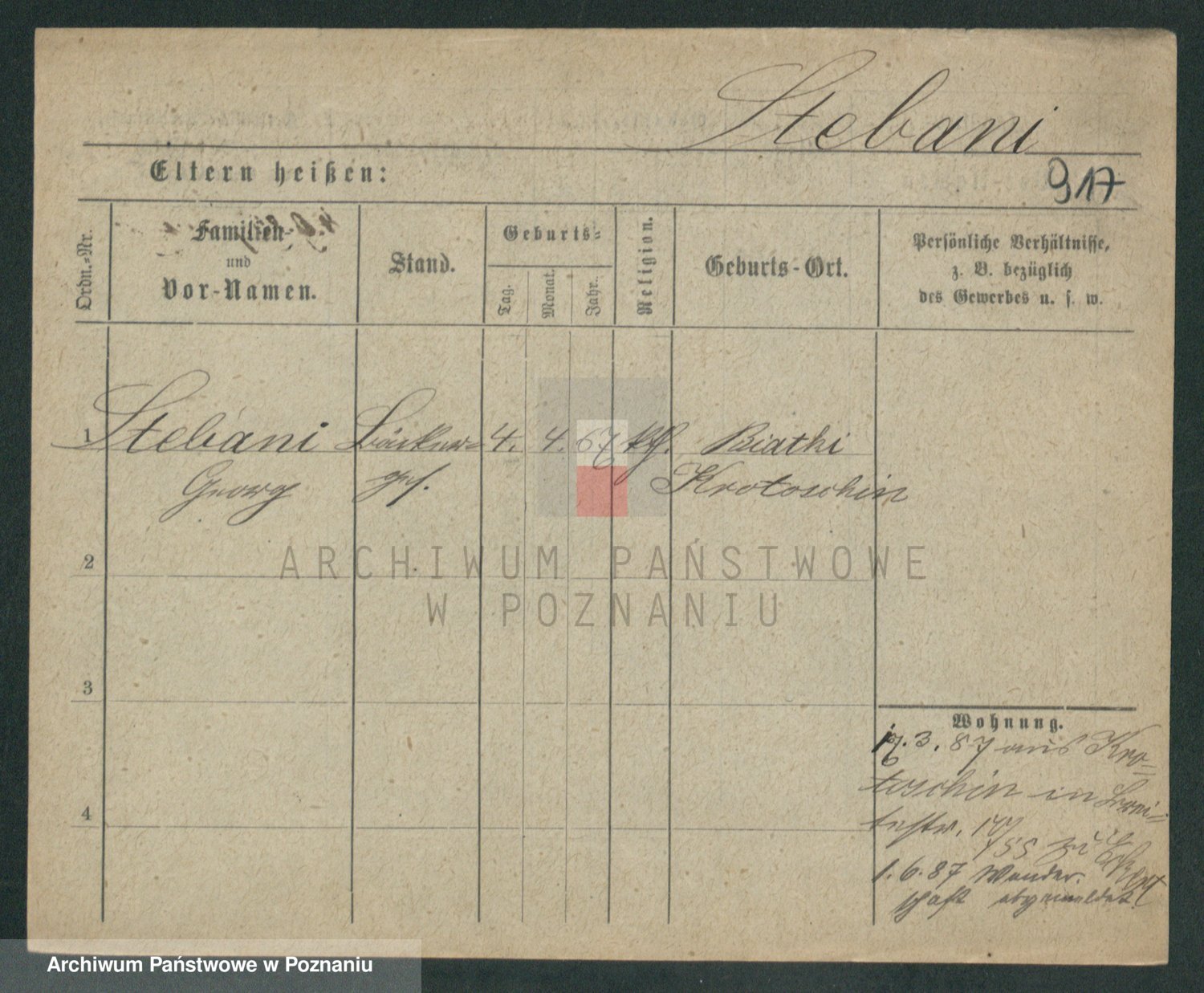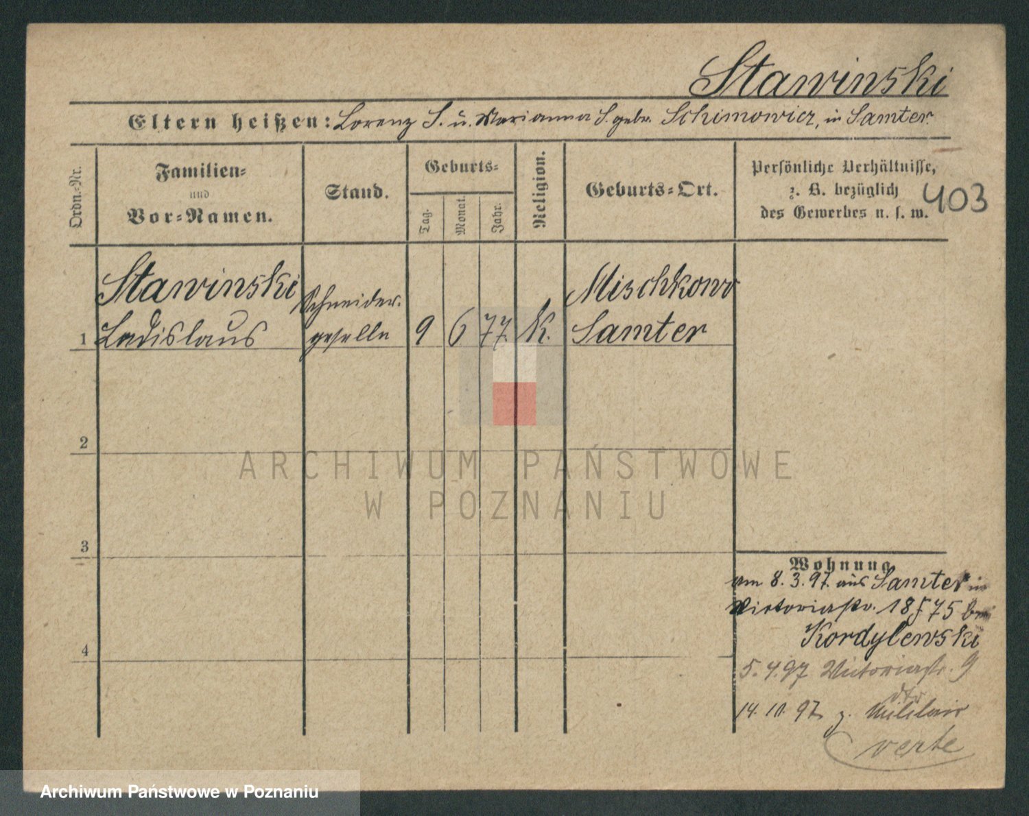 Podgląd karty osobowej dostępny jest po kliknięciu na nazwisko lub ikonkę karty. Można dokonywać powiększenia (ikony na górze) lub przechodzić między kolejnymi skanami (strzałki po bokach).