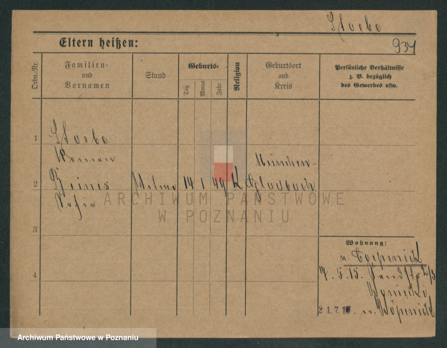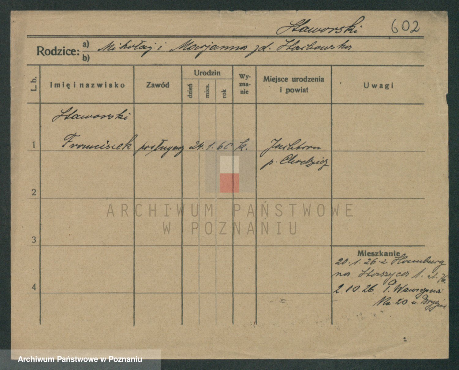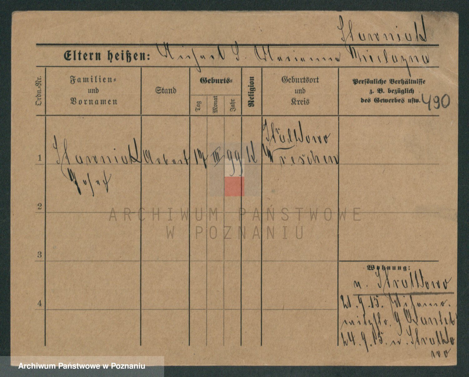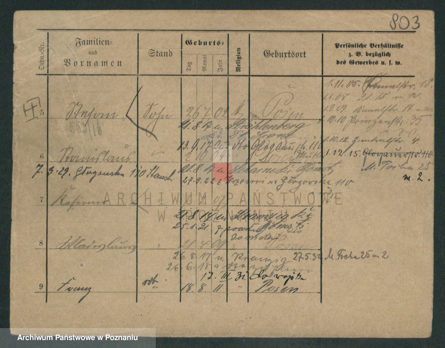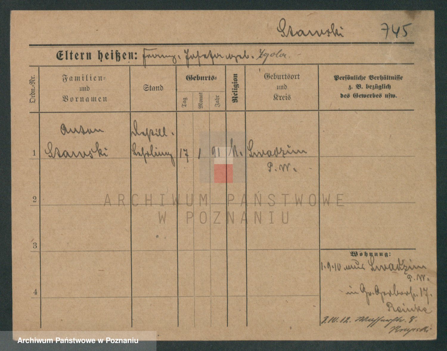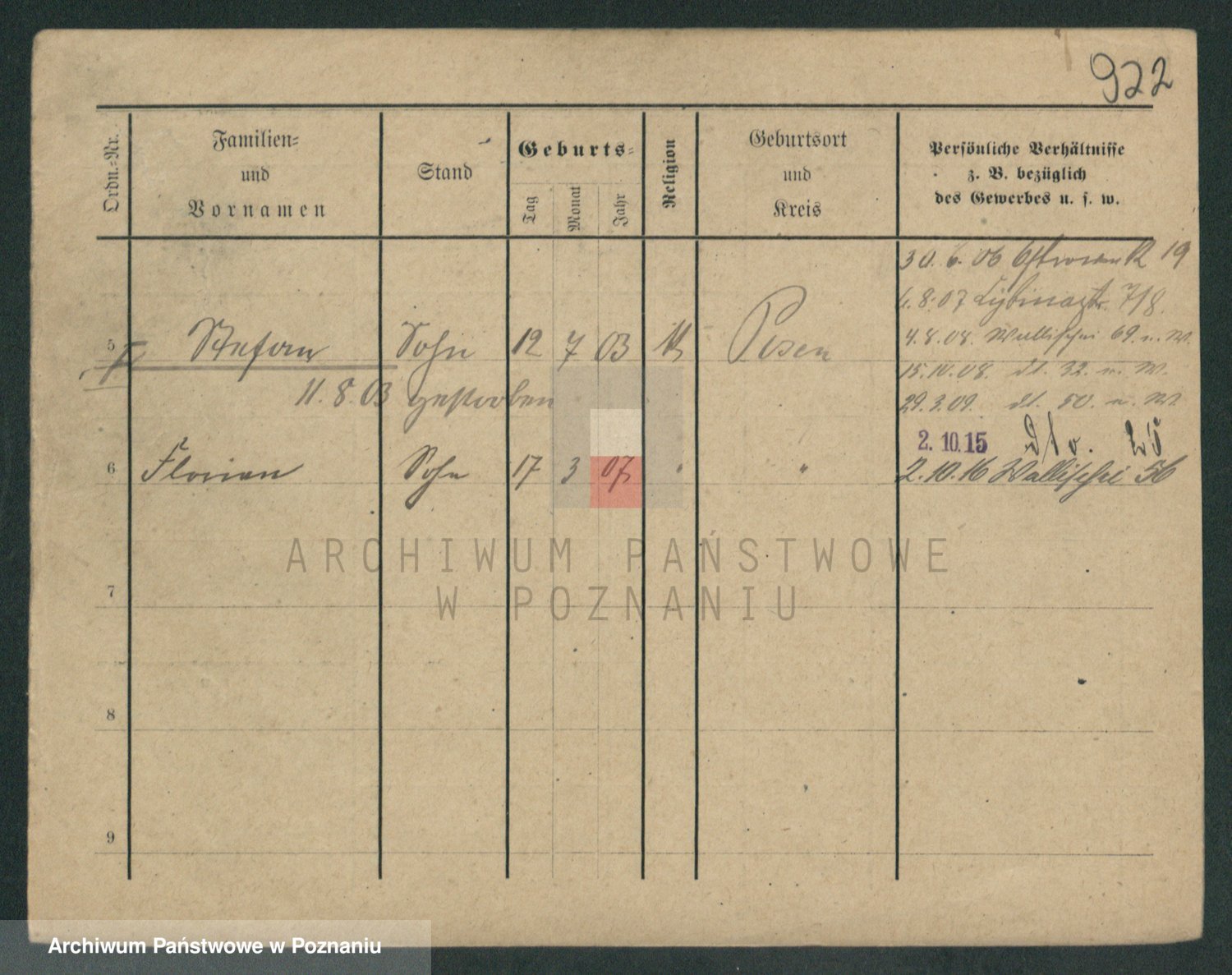 Podgląd karty osobowej dostępny jest po kliknięciu na nazwisko lub ikonkę karty. Można dokonywać powiększenia (ikony na górze) lub przechodzić między kolejnymi skanami (strzałki po bokach).