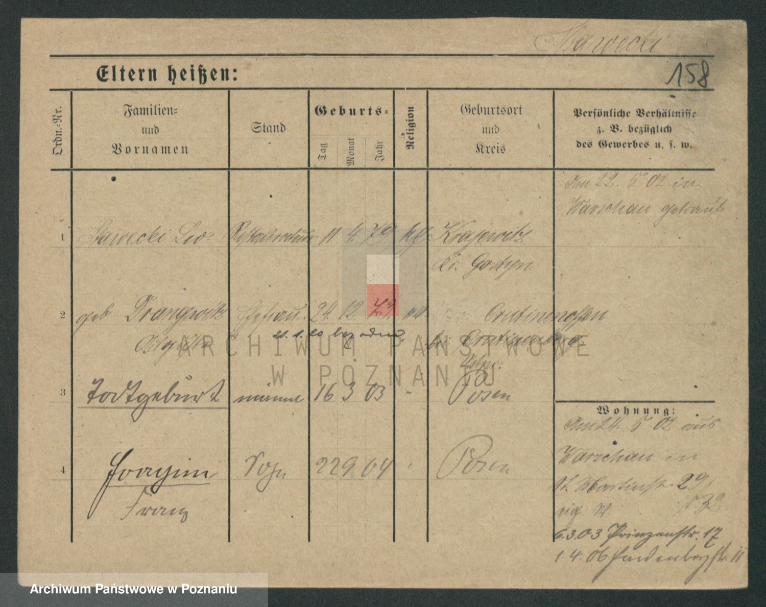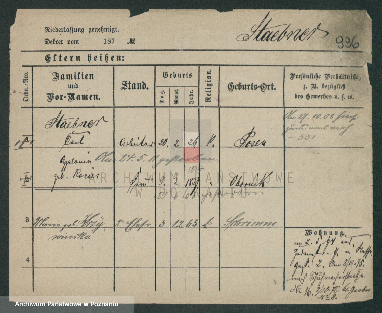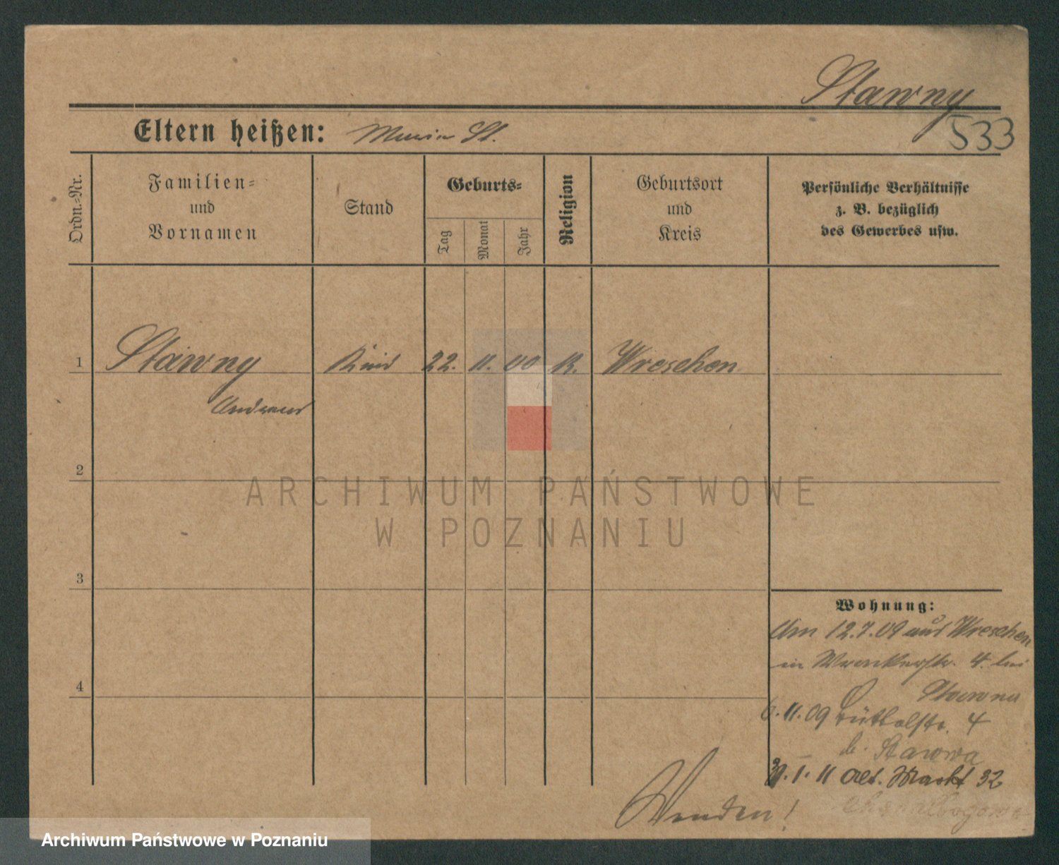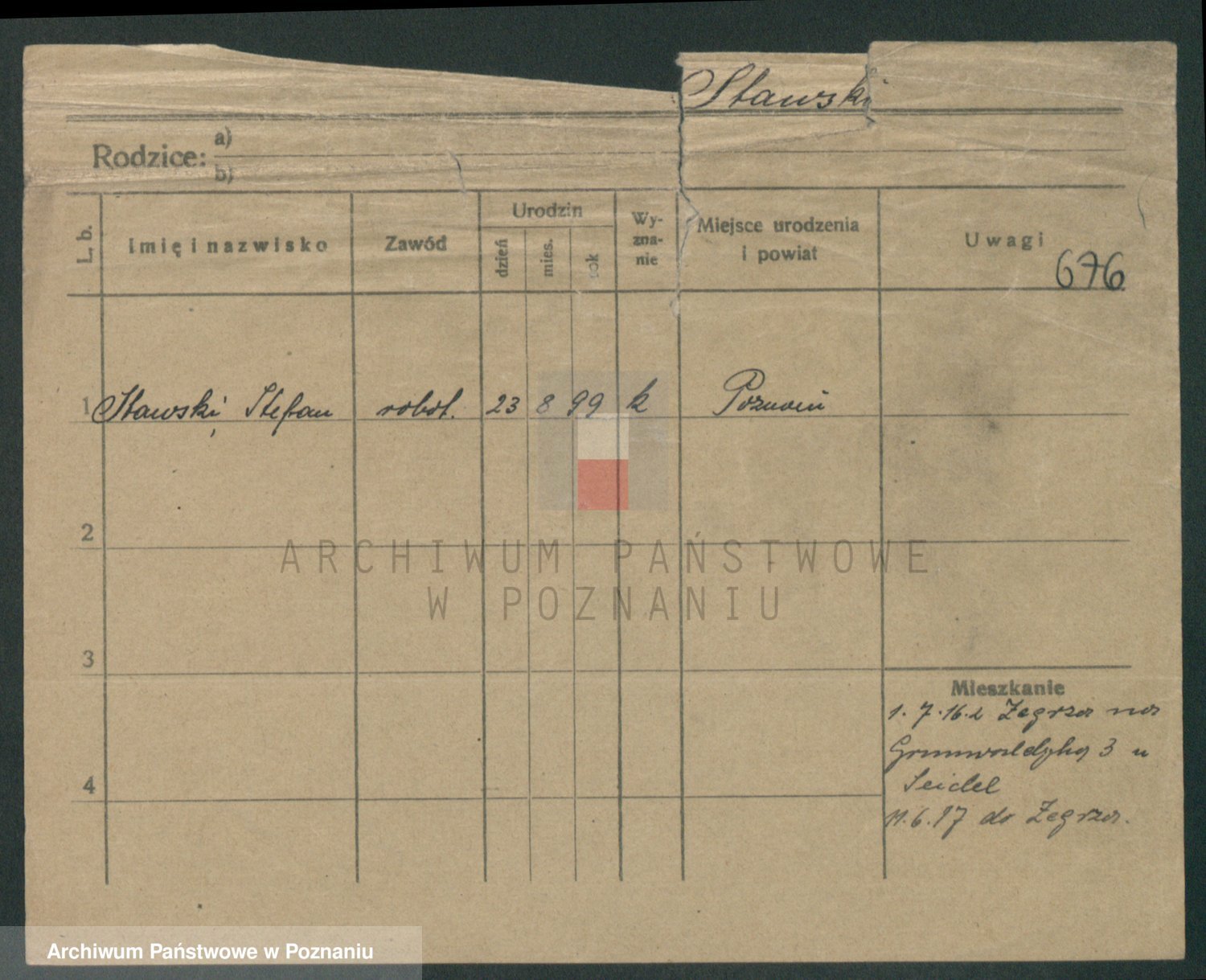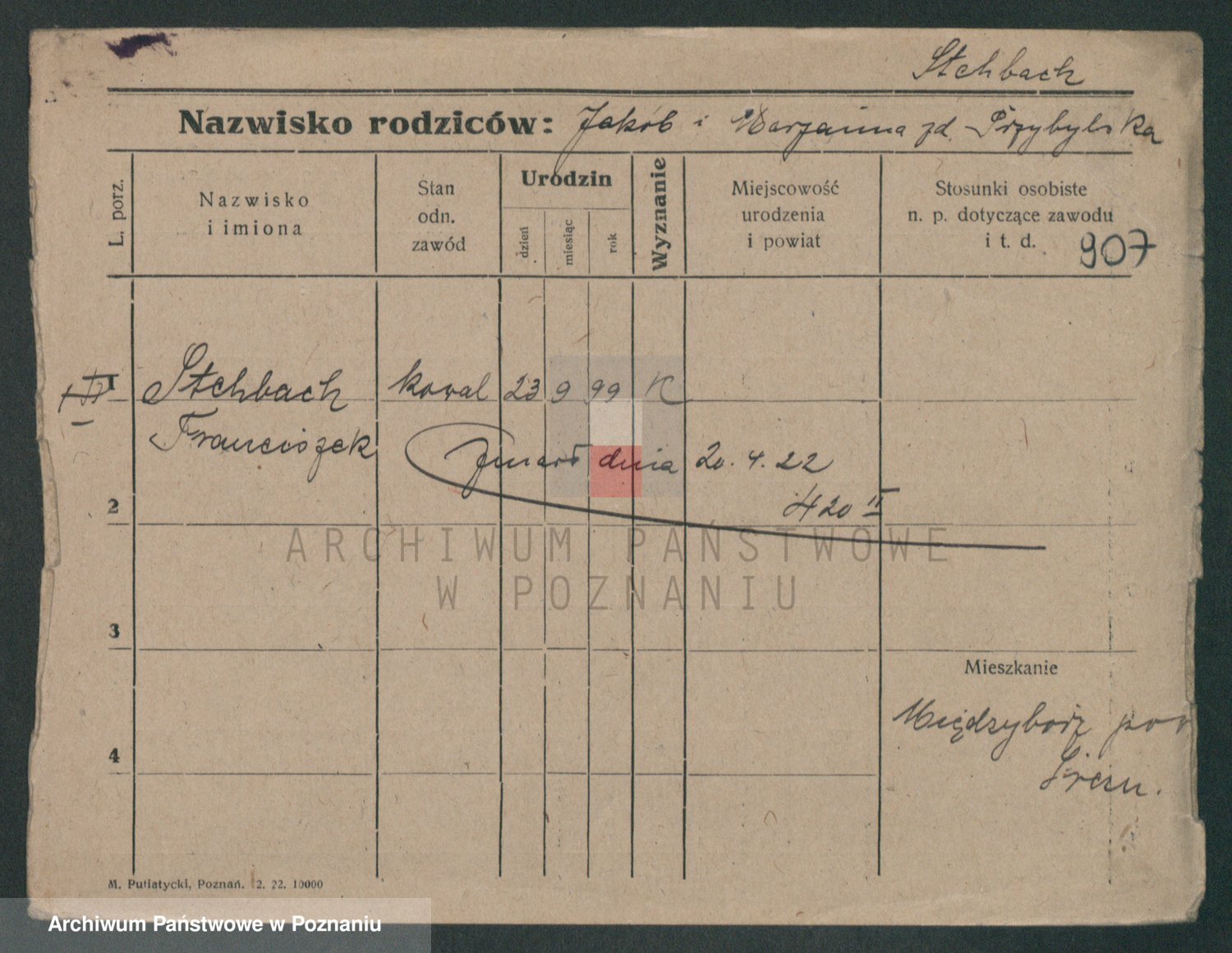 Podgląd karty osobowej dostępny jest po kliknięciu na nazwisko lub ikonkę karty. Można dokonywać powiększenia (ikony na górze) lub przechodzić między kolejnymi skanami (strzałki po bokach).