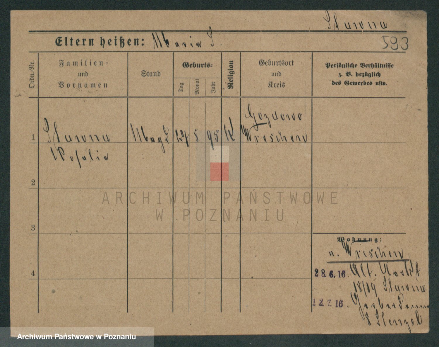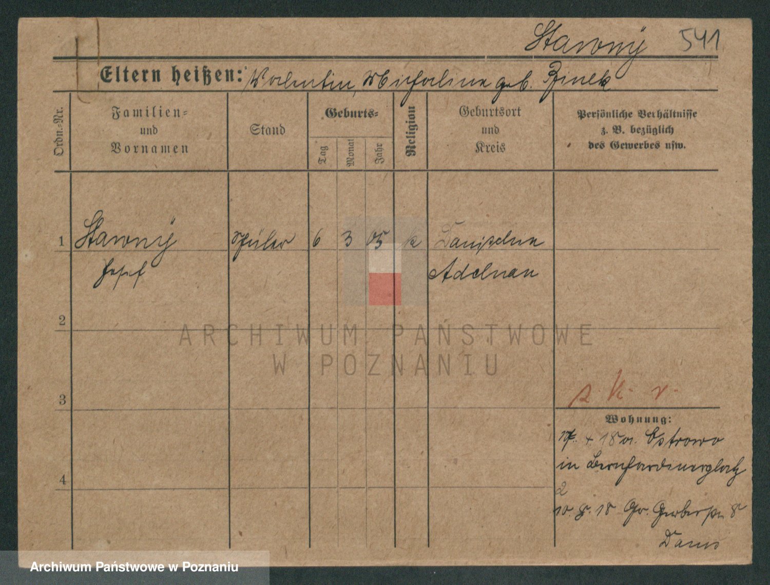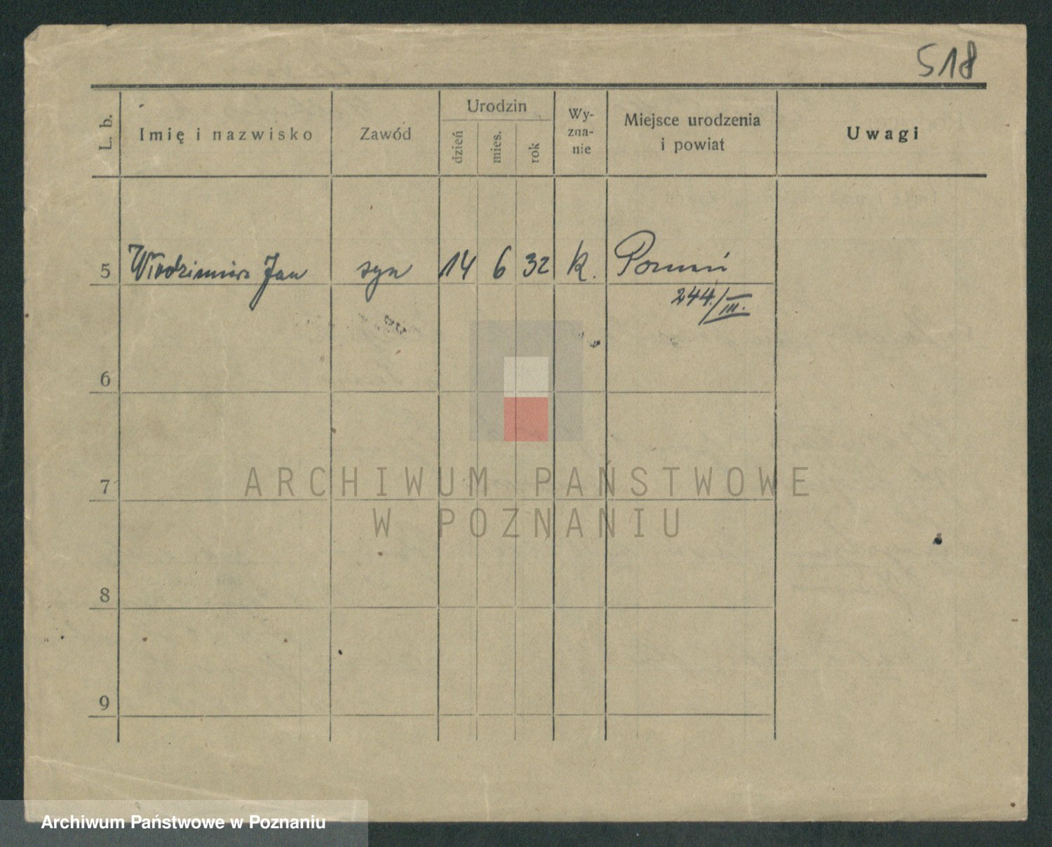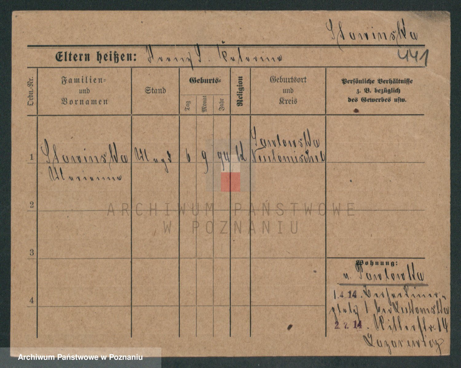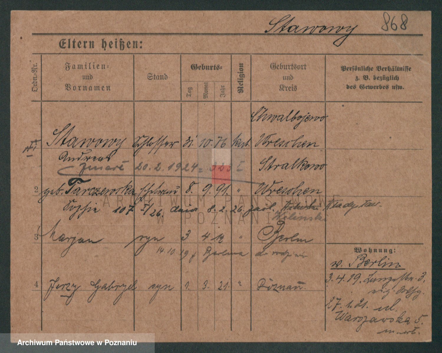 Podgląd karty osobowej dostępny jest po kliknięciu na nazwisko lub ikonkę karty. Można dokonywać powiększenia (ikony na górze) lub przechodzić między kolejnymi skanami (strzałki po bokach).