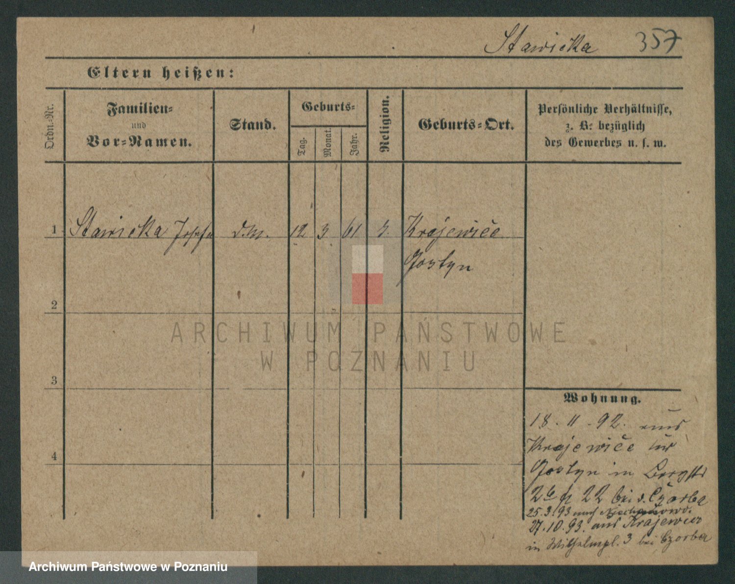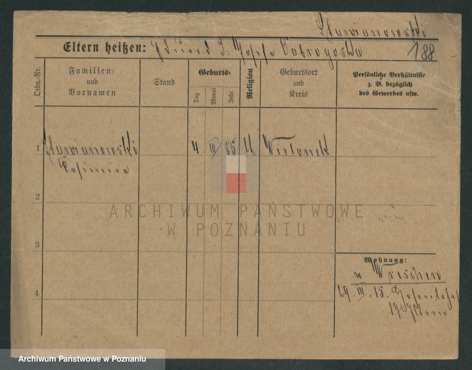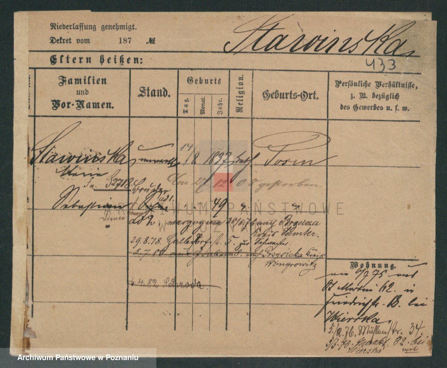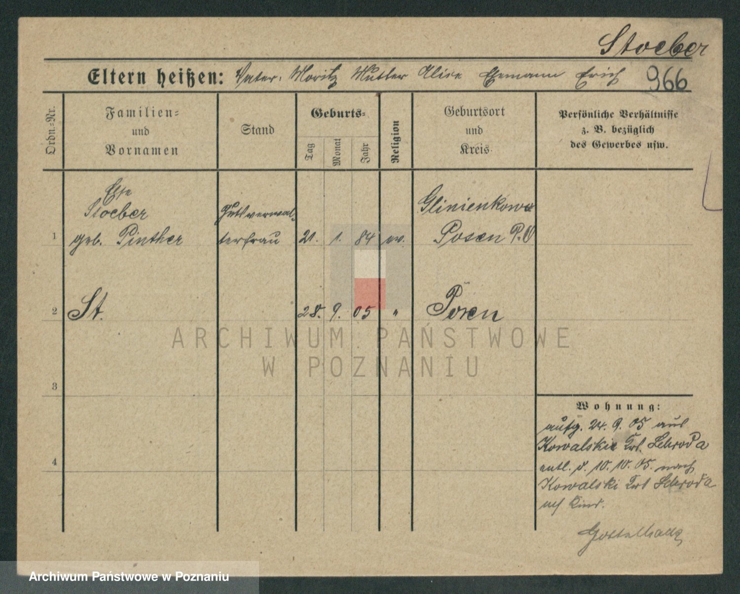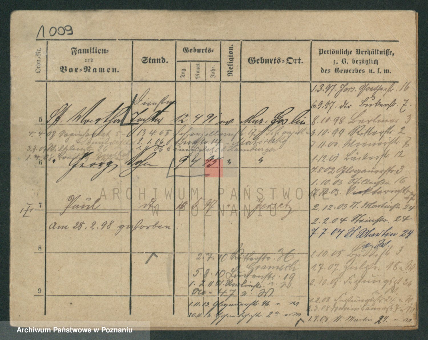 Podgląd karty osobowej dostępny jest po kliknięciu na nazwisko lub ikonkę karty. Można dokonywać powiększenia (ikony na górze) lub przechodzić między kolejnymi skanami (strzałki po bokach).