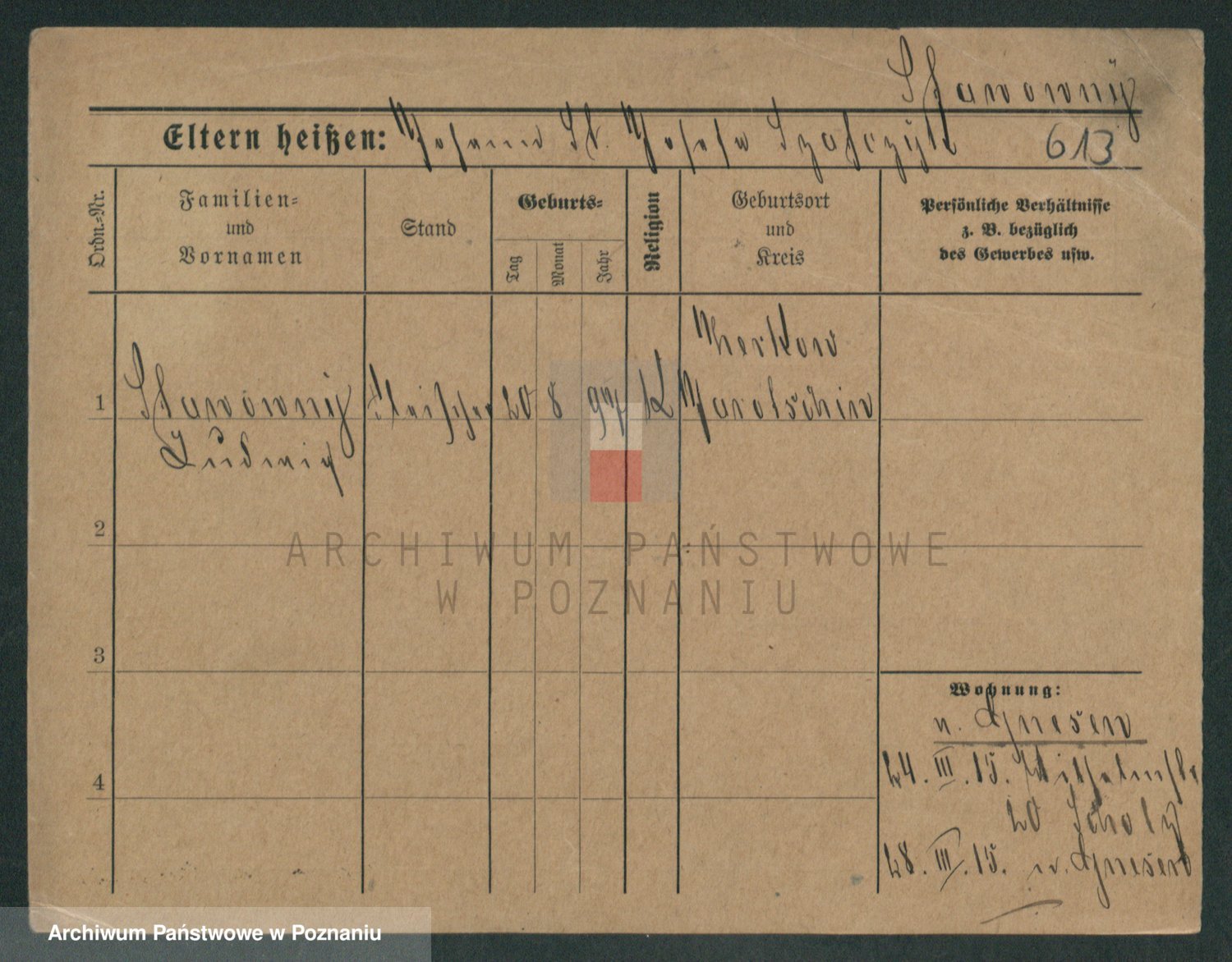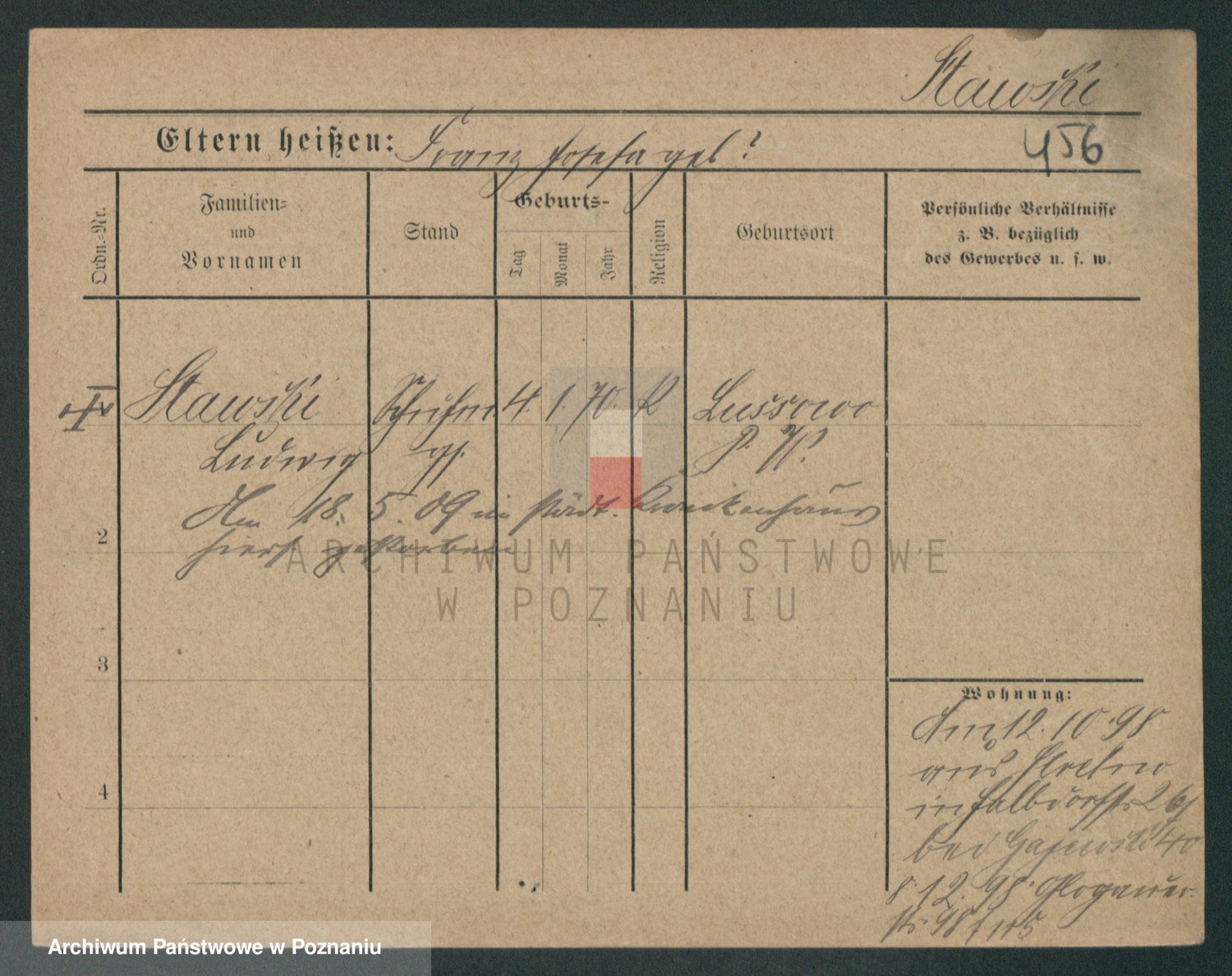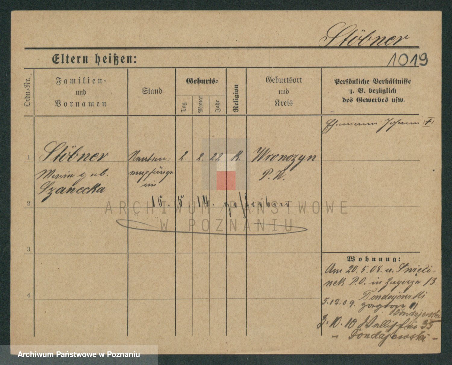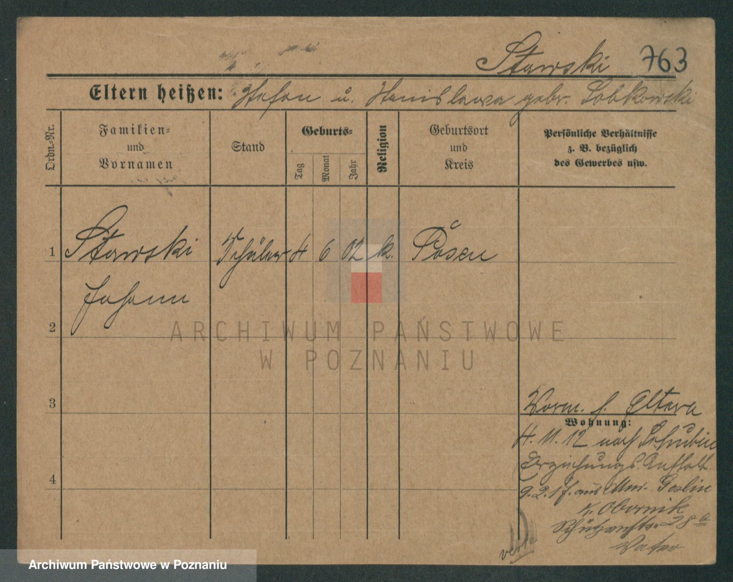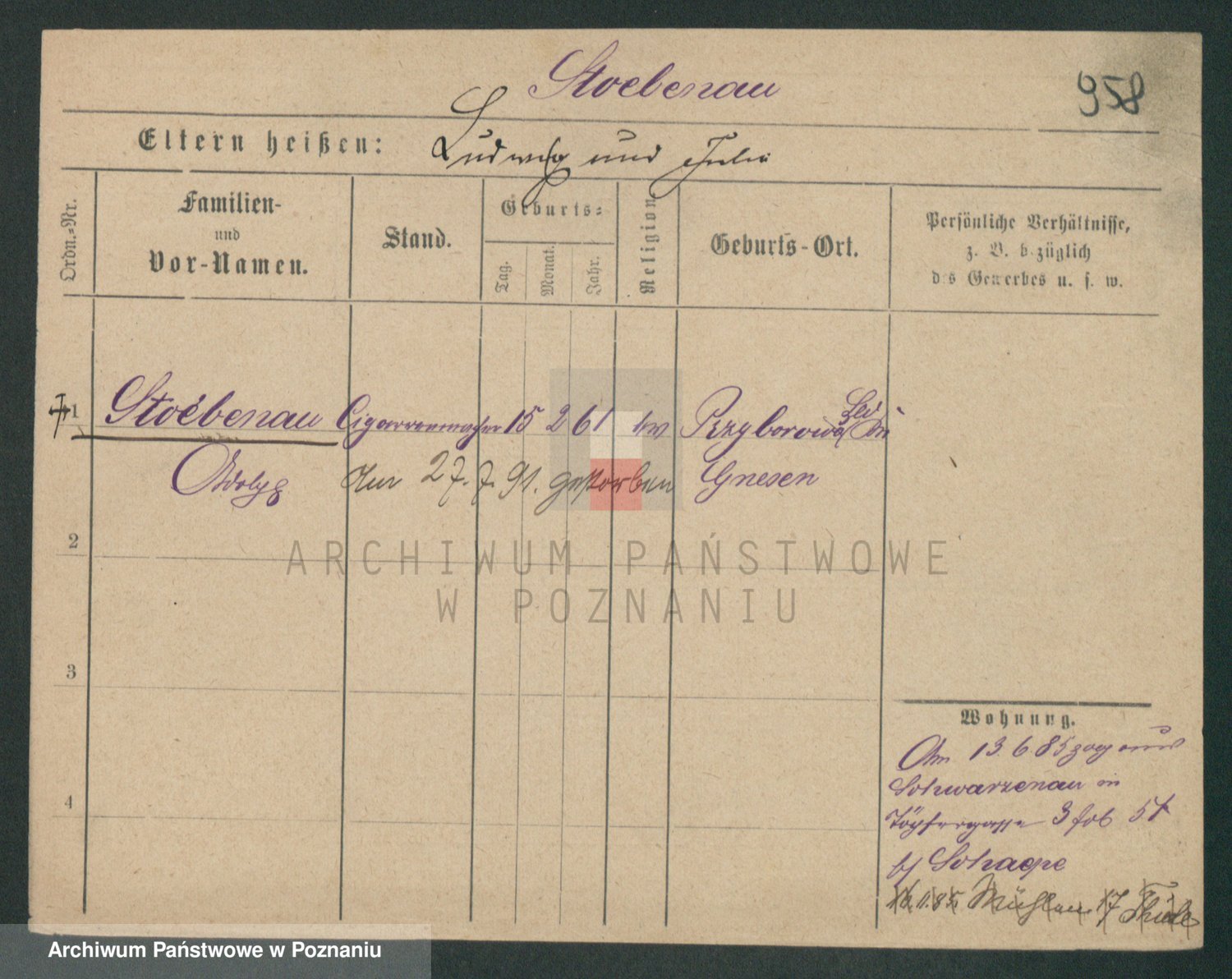 Podgląd karty osobowej dostępny jest po kliknięciu na nazwisko lub ikonkę karty. Można dokonywać powiększenia (ikony na górze) lub przechodzić między kolejnymi skanami (strzałki po bokach).