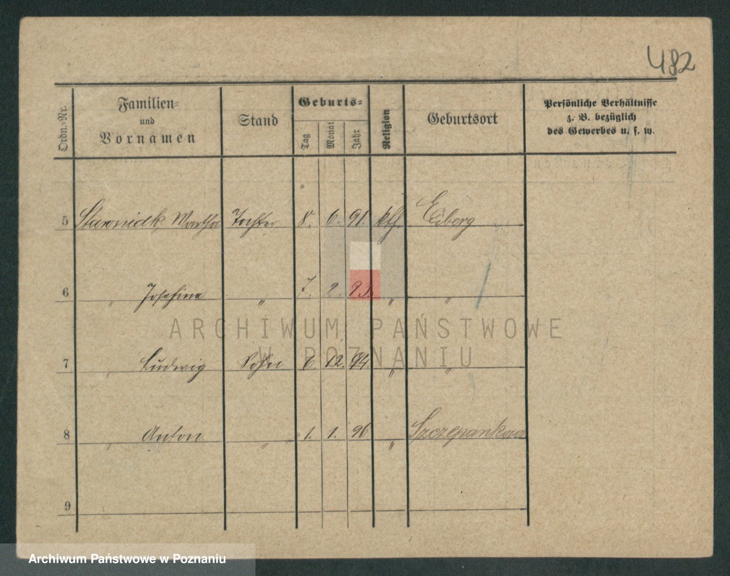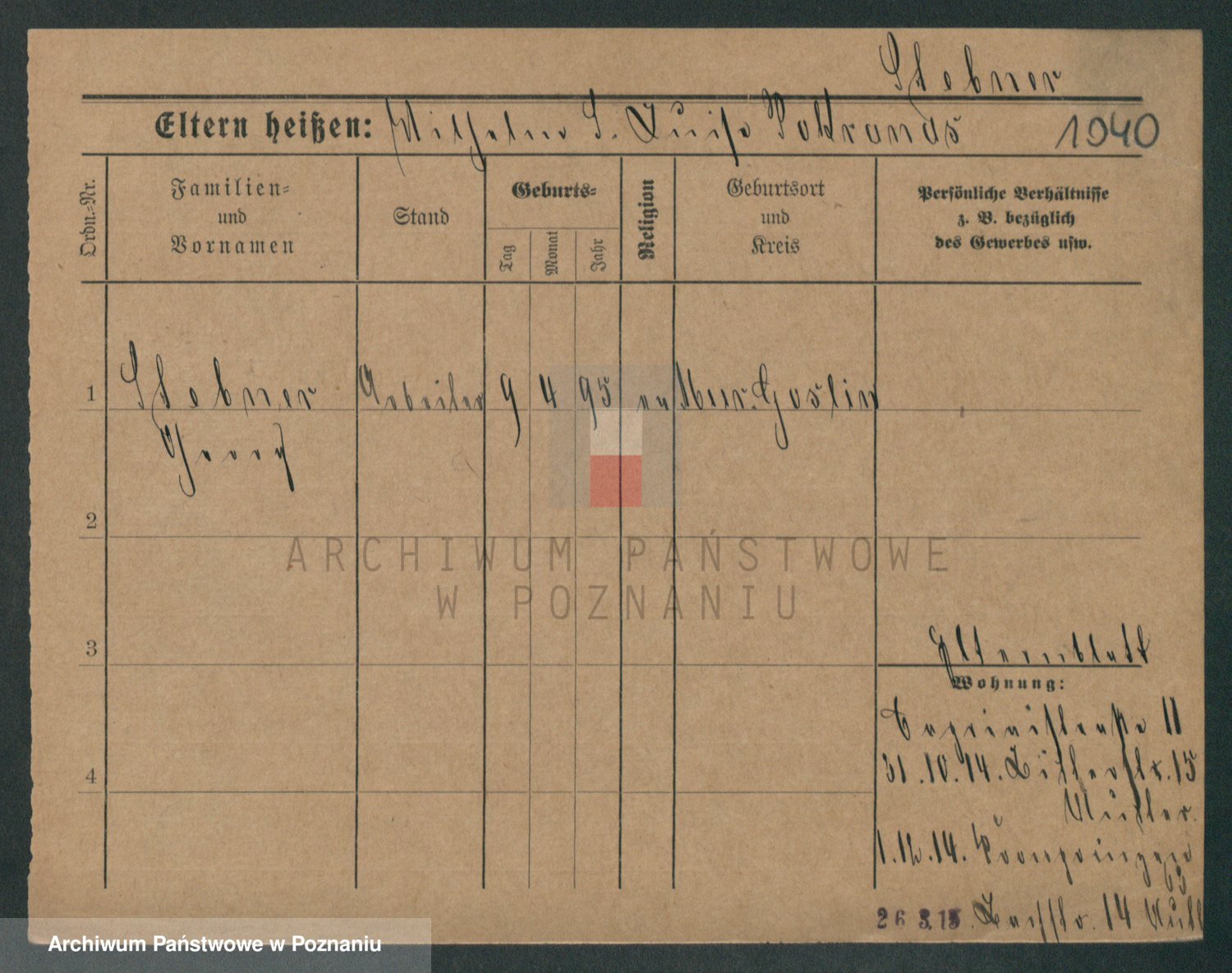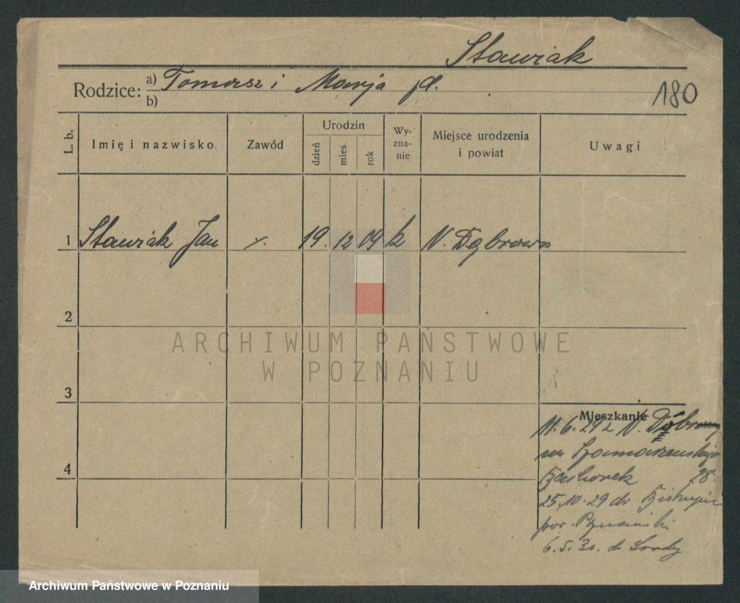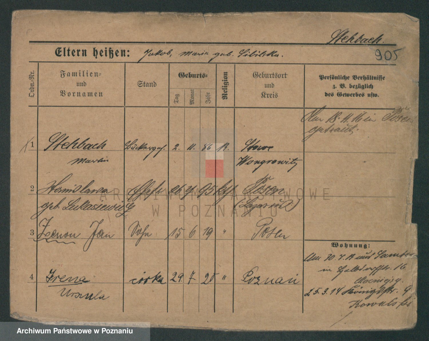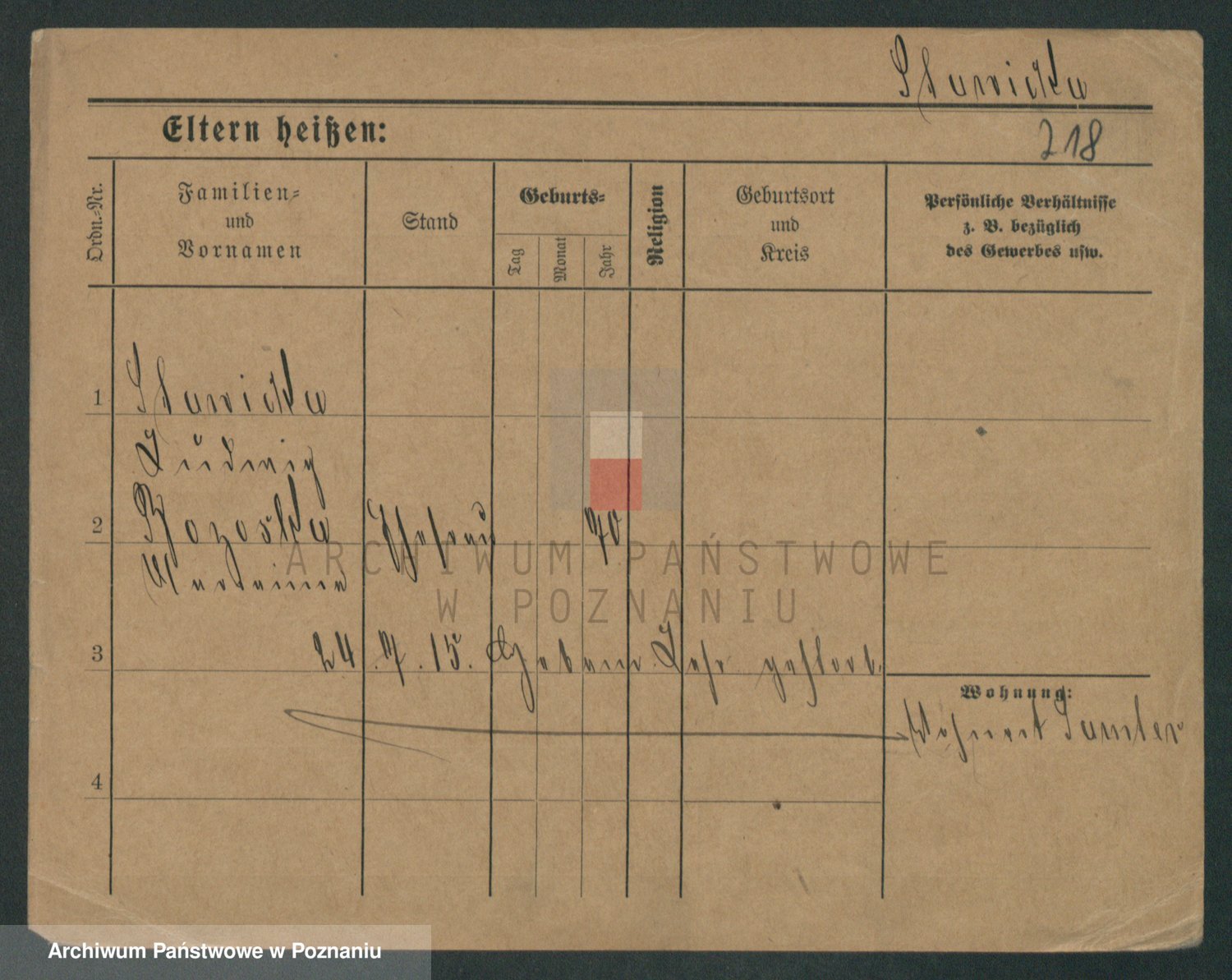 Podgląd karty osobowej dostępny jest po kliknięciu na nazwisko lub ikonkę karty. Można dokonywać powiększenia (ikony na górze) lub przechodzić między kolejnymi skanami (strzałki po bokach).