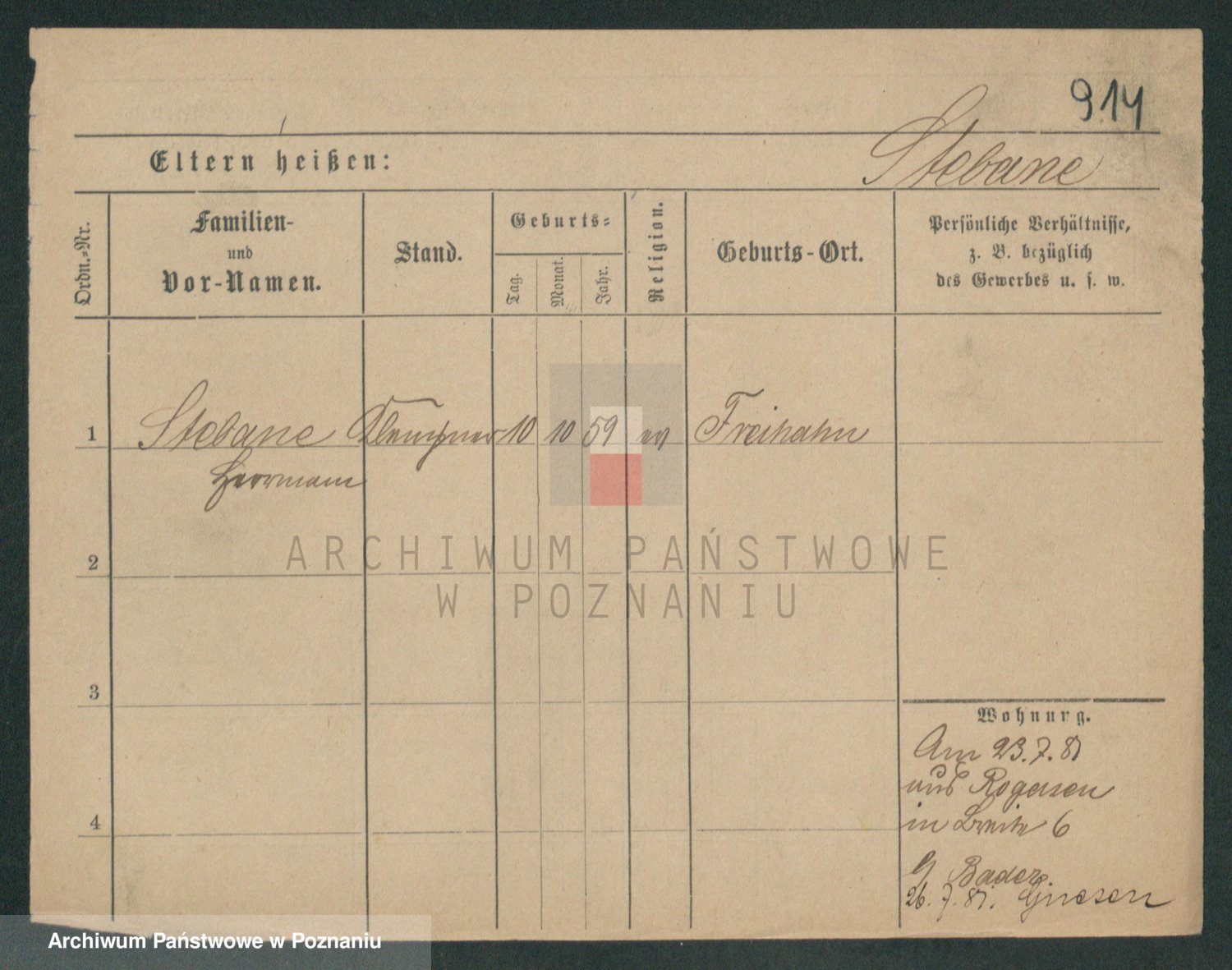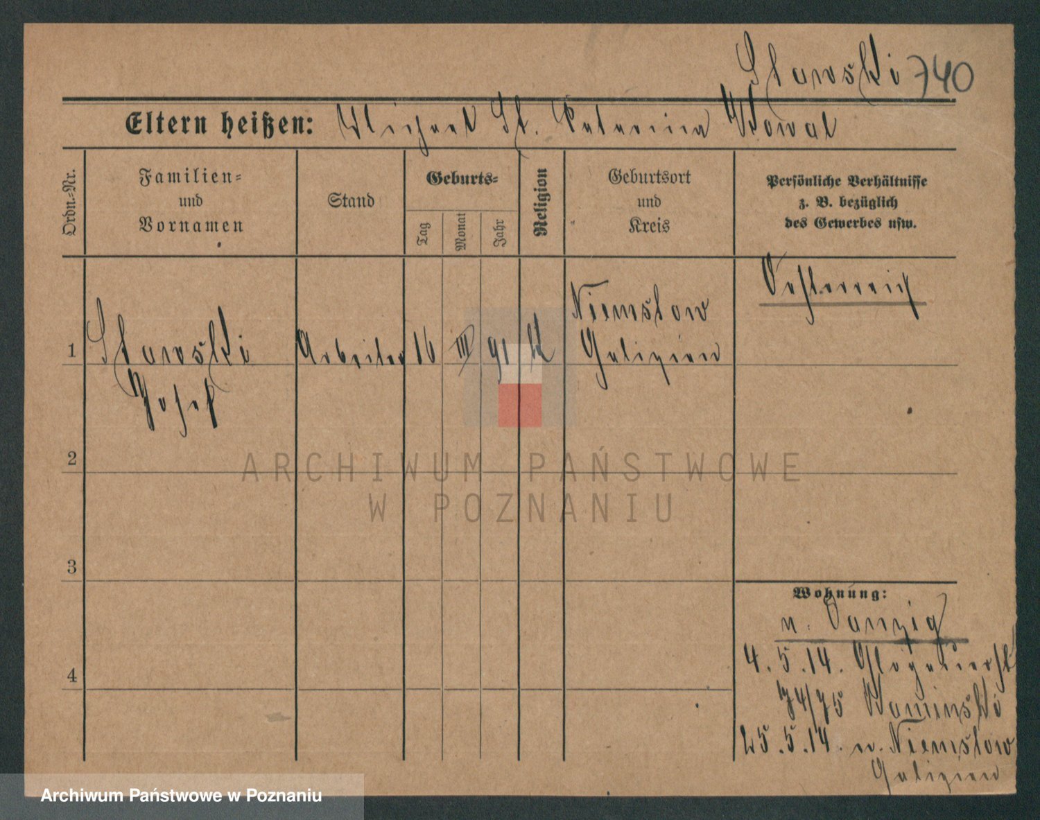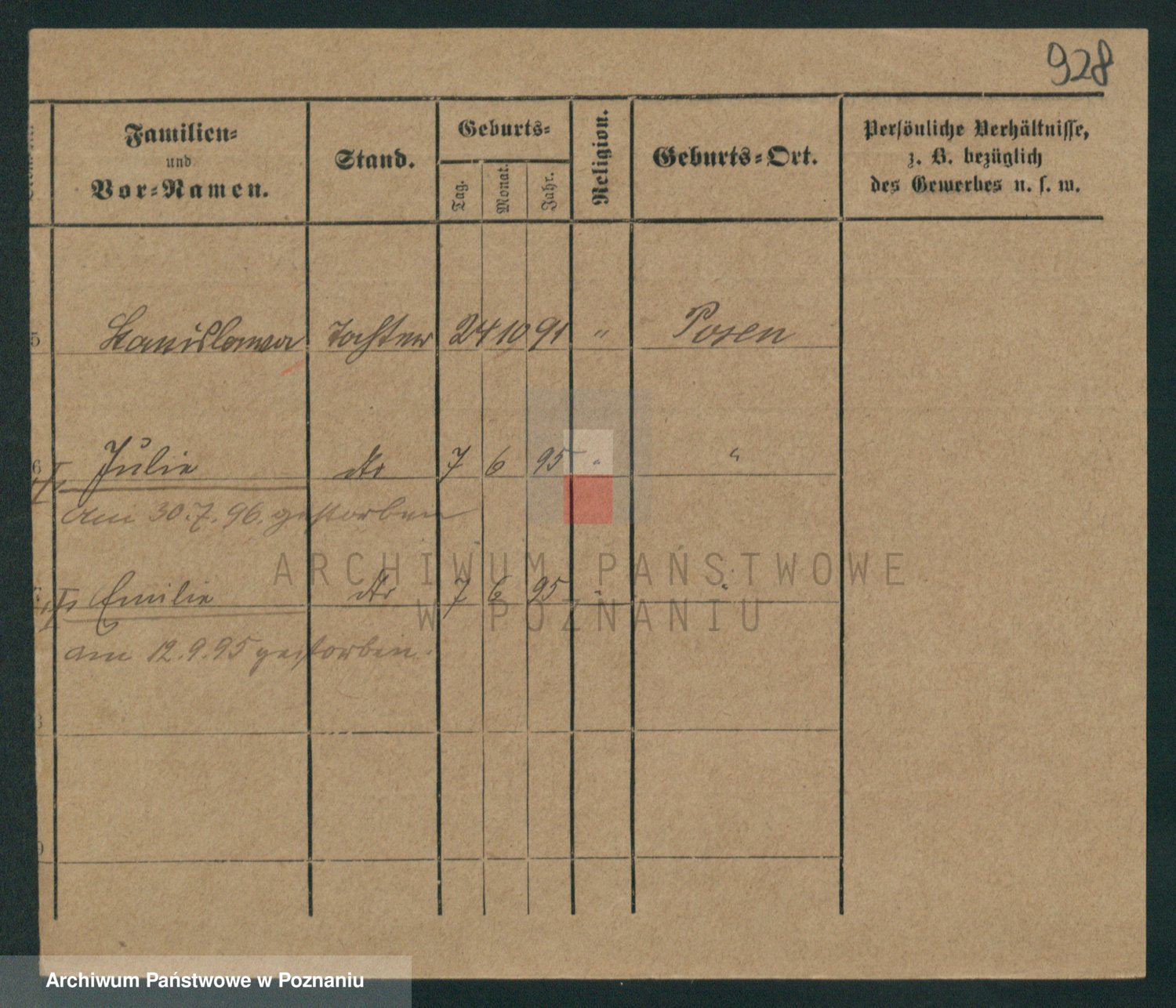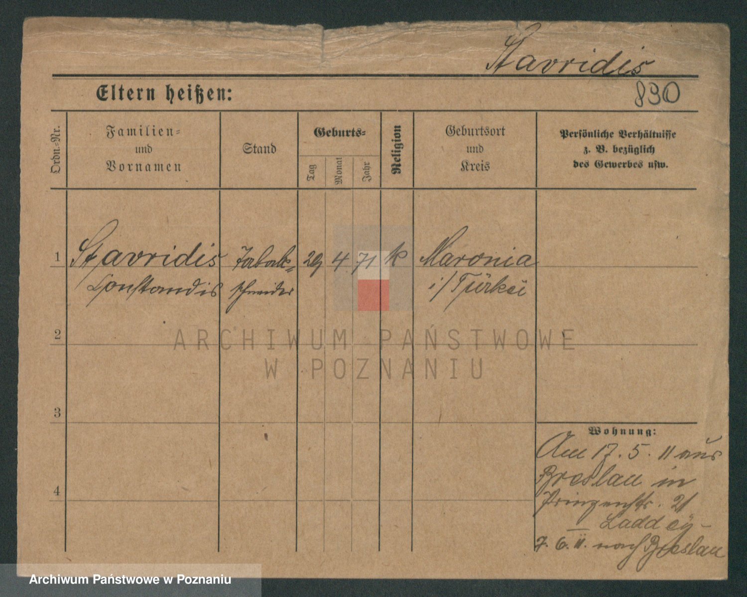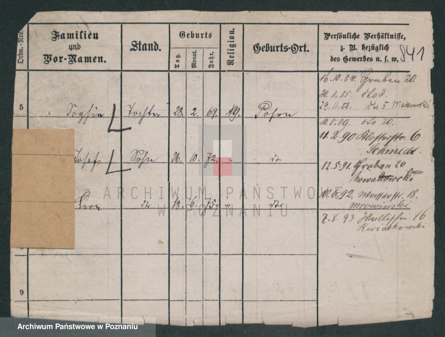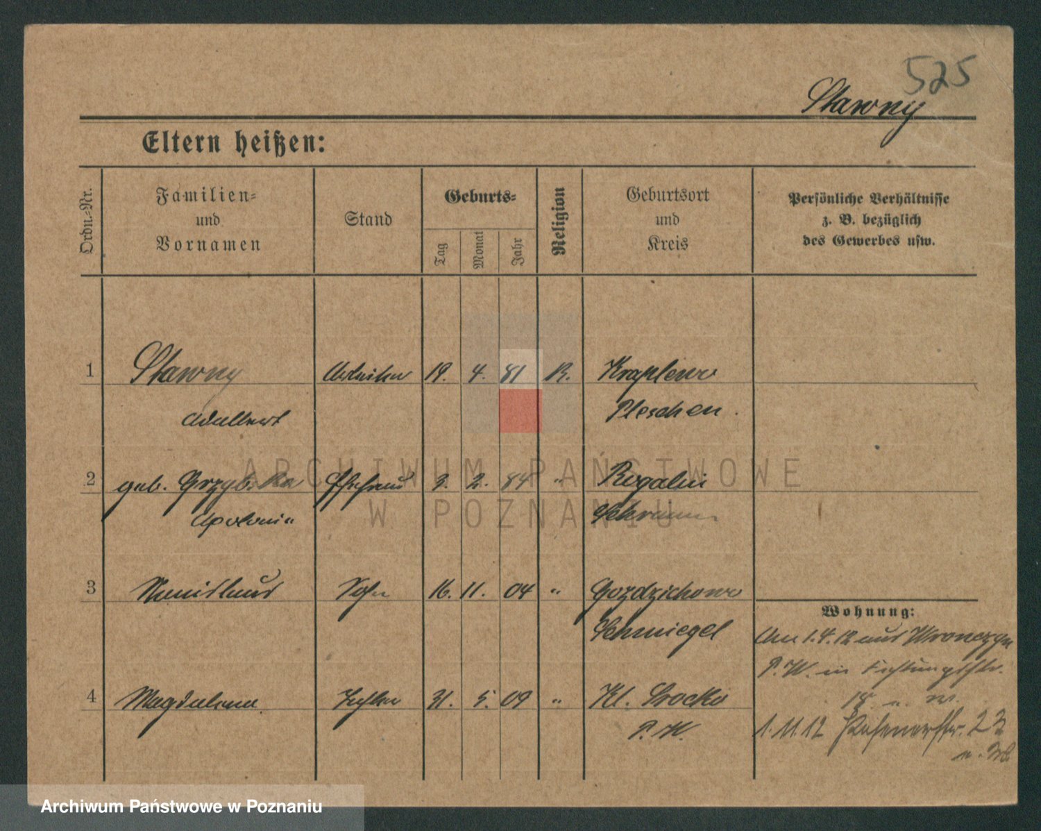 Podgląd karty osobowej dostępny jest po kliknięciu na nazwisko lub ikonkę karty. Można dokonywać powiększenia (ikony na górze) lub przechodzić między kolejnymi skanami (strzałki po bokach).