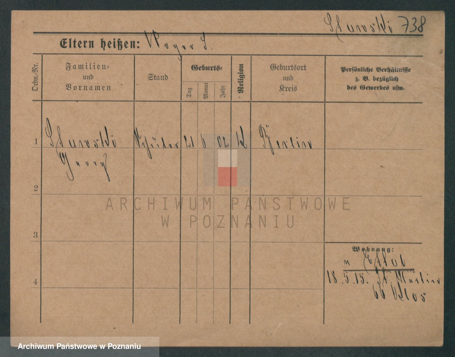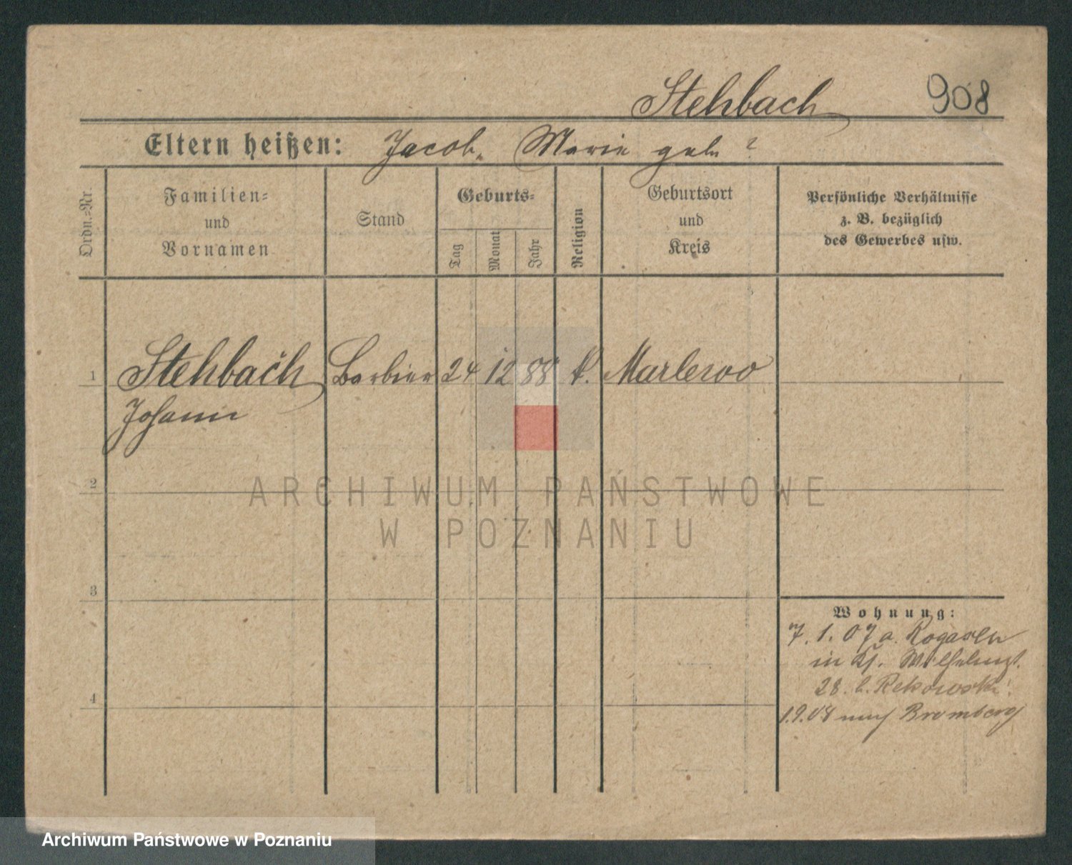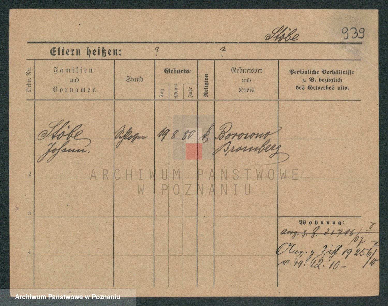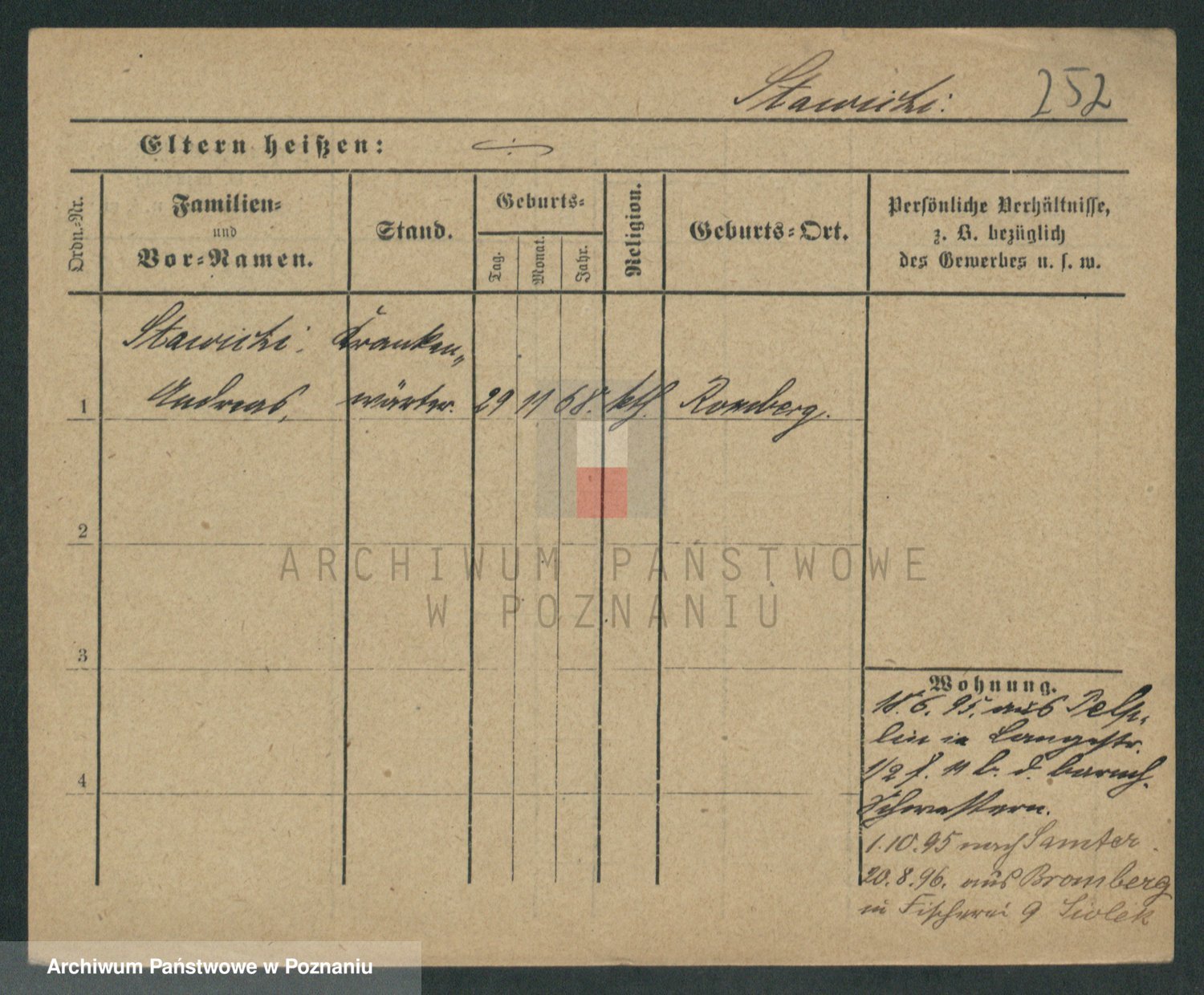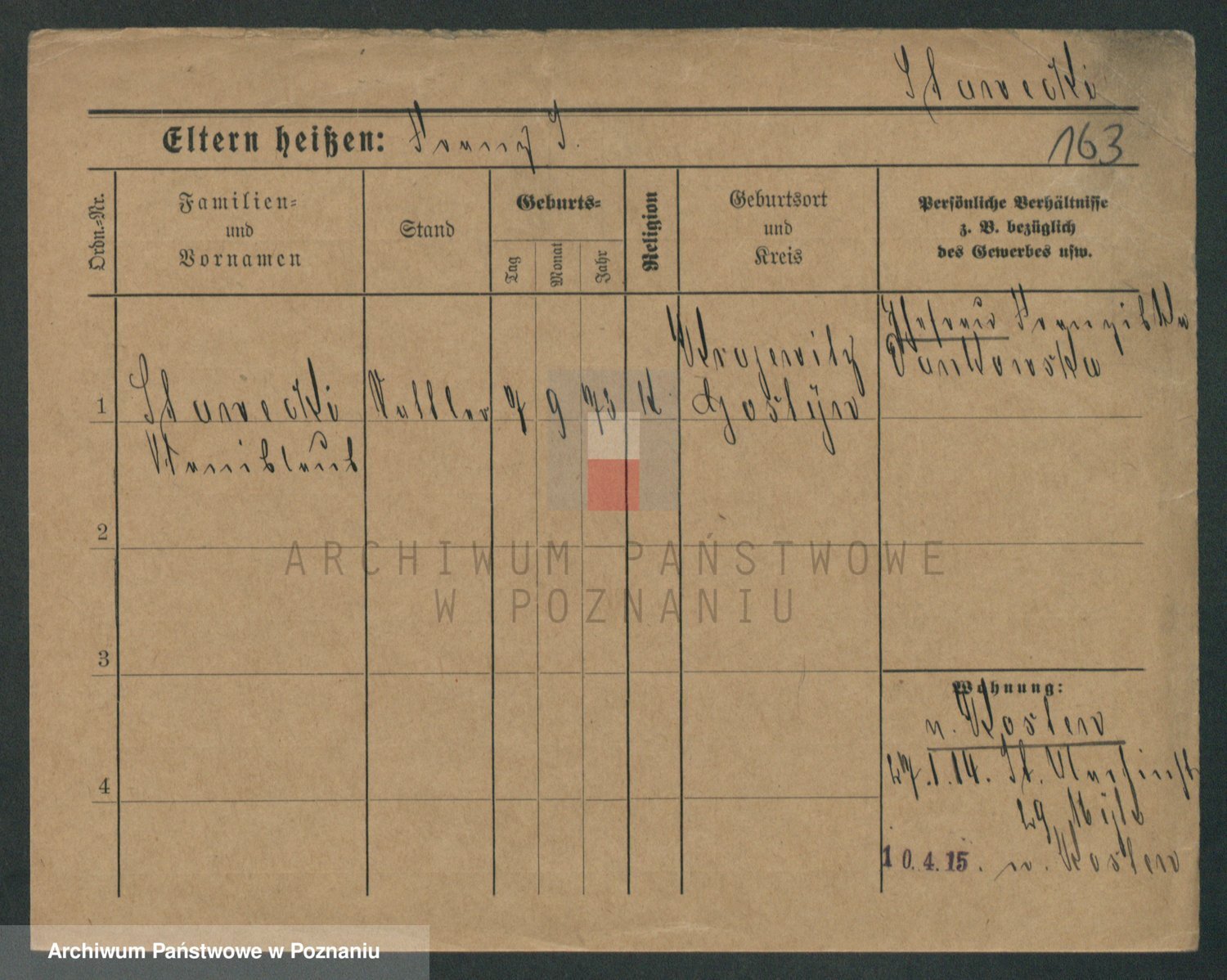 Podgląd karty osobowej dostępny jest po kliknięciu na nazwisko lub ikonkę karty. Można dokonywać powiększenia (ikony na górze) lub przechodzić między kolejnymi skanami (strzałki po bokach).