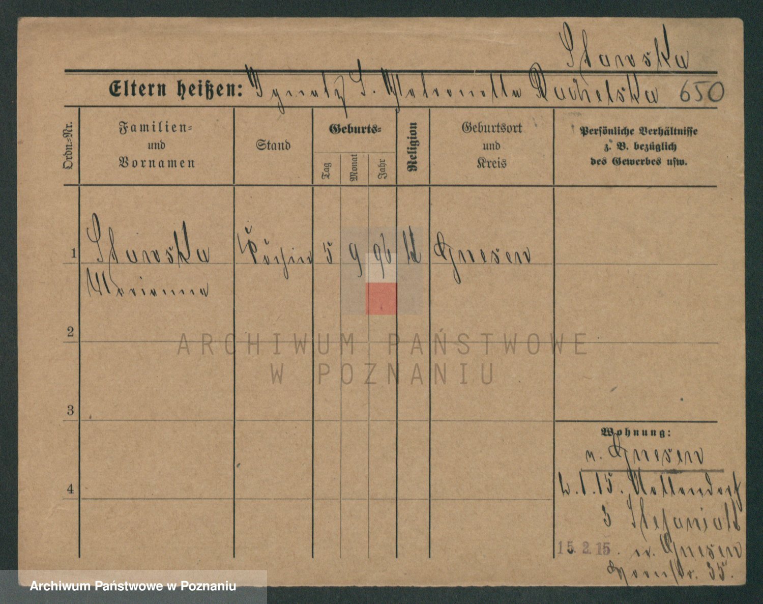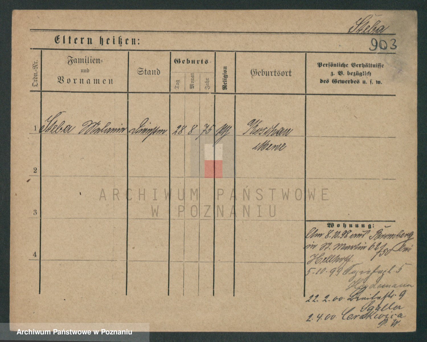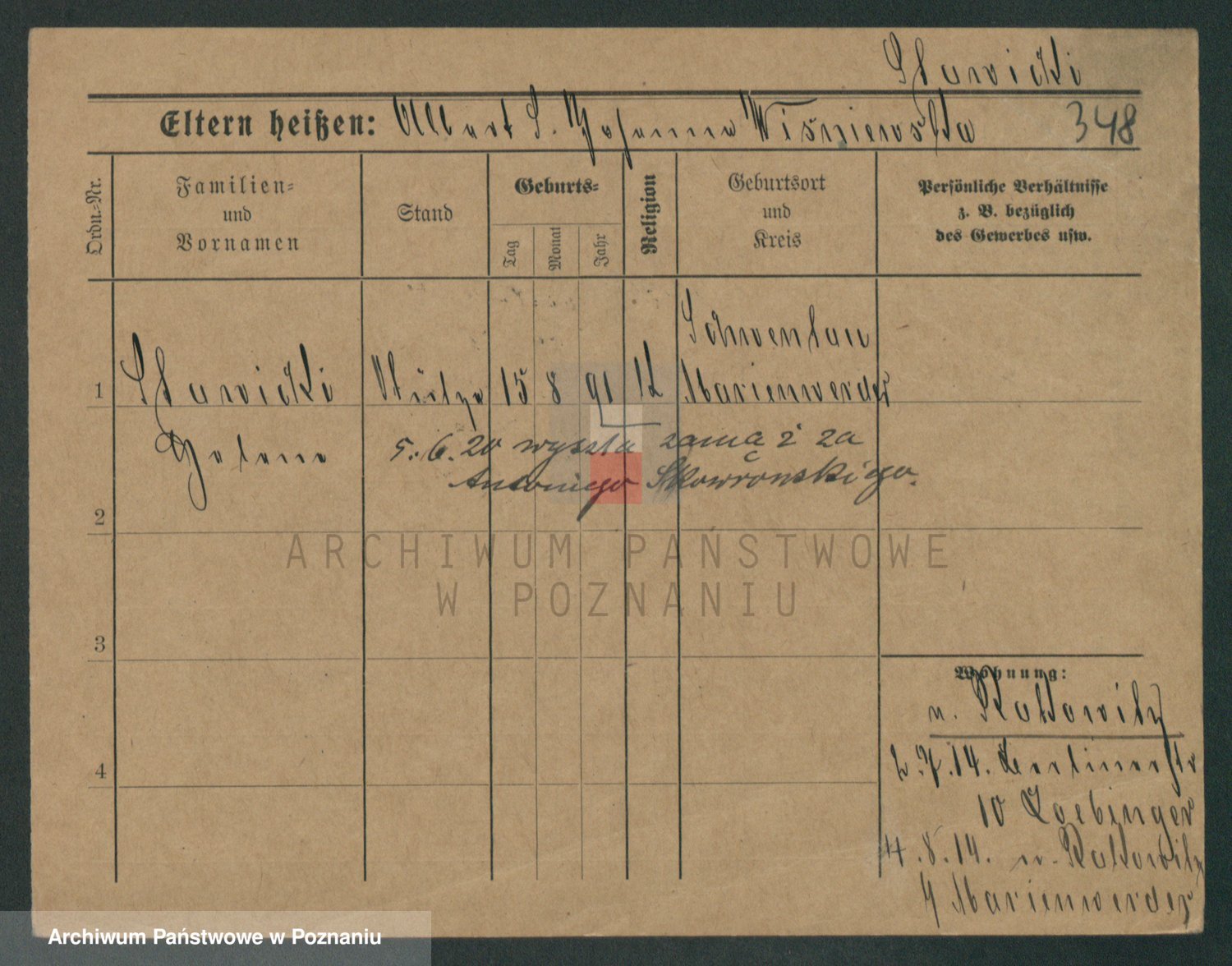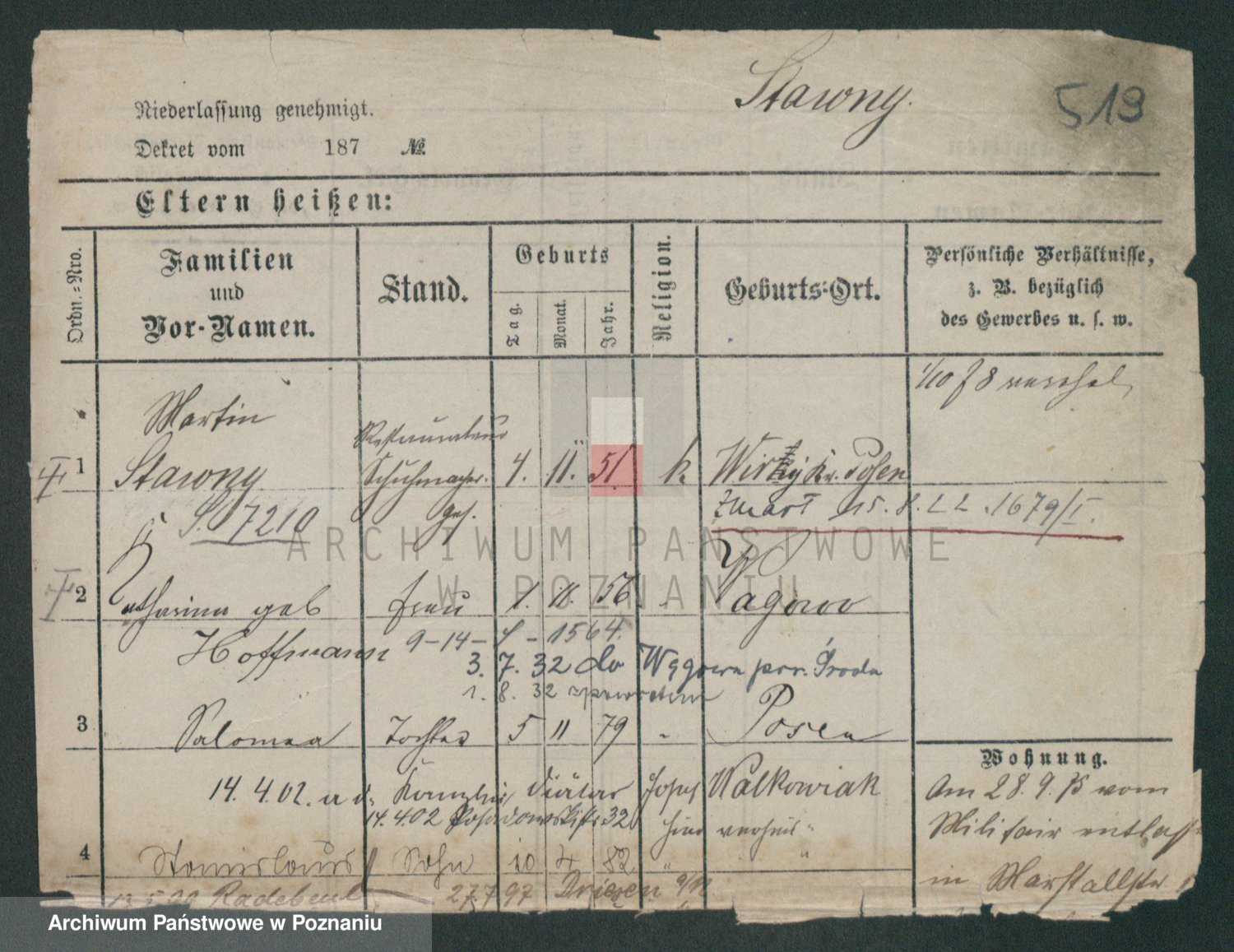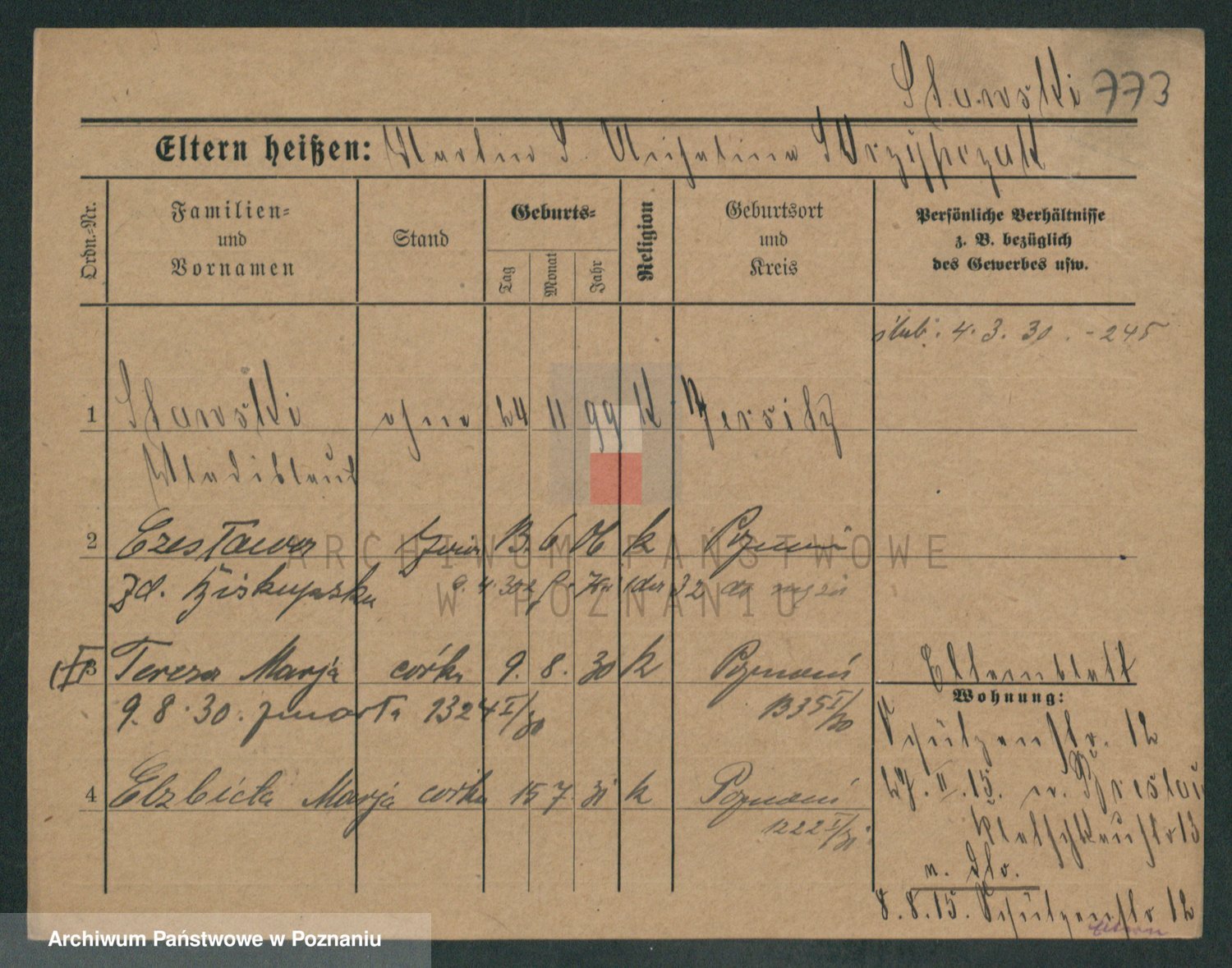 Podgląd karty osobowej dostępny jest po kliknięciu na nazwisko lub ikonkę karty. Można dokonywać powiększenia (ikony na górze) lub przechodzić między kolejnymi skanami (strzałki po bokach).