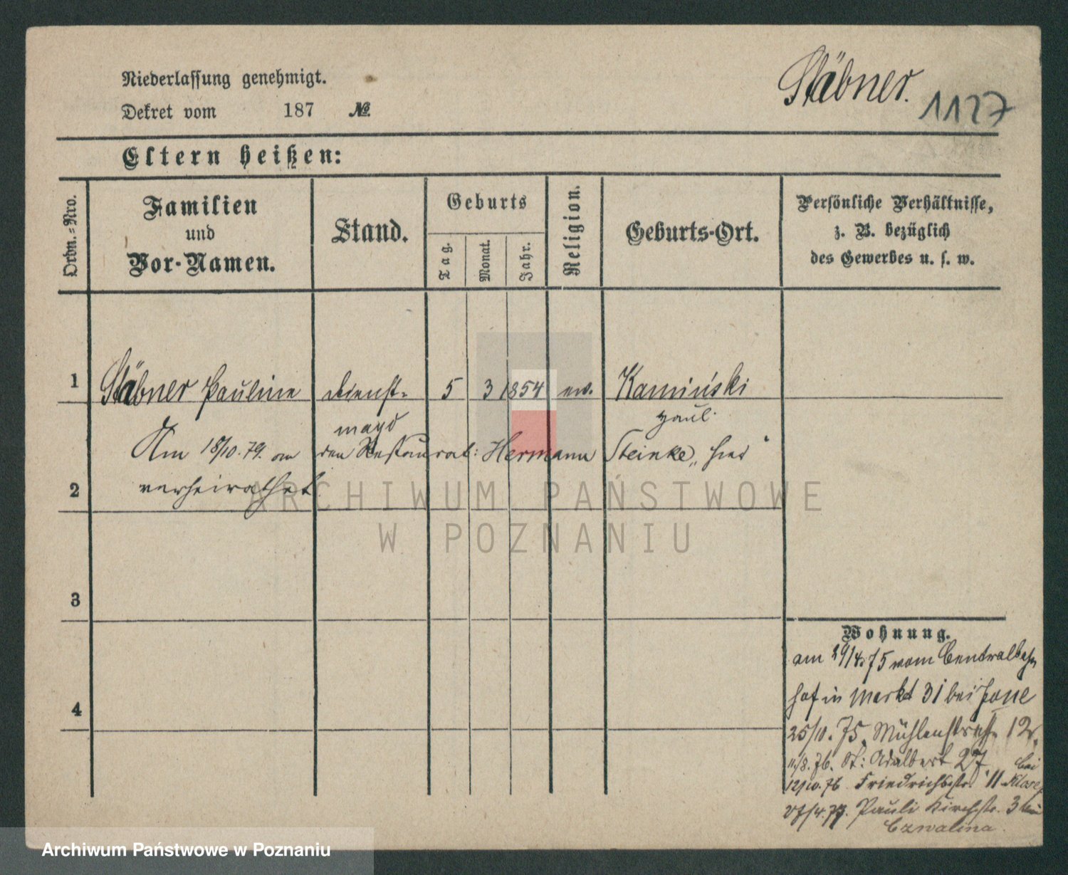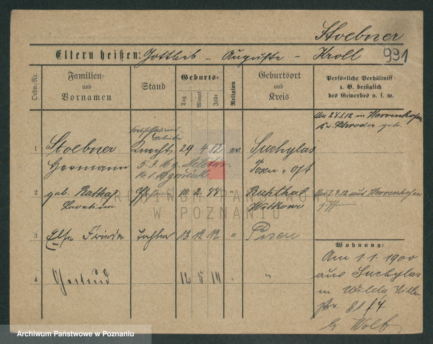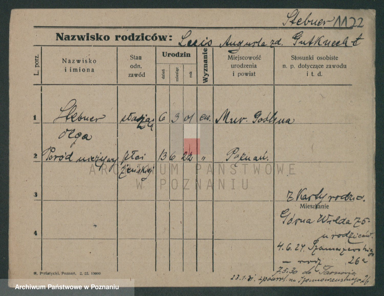 Stäbner zd. Gutknocht, Auguste