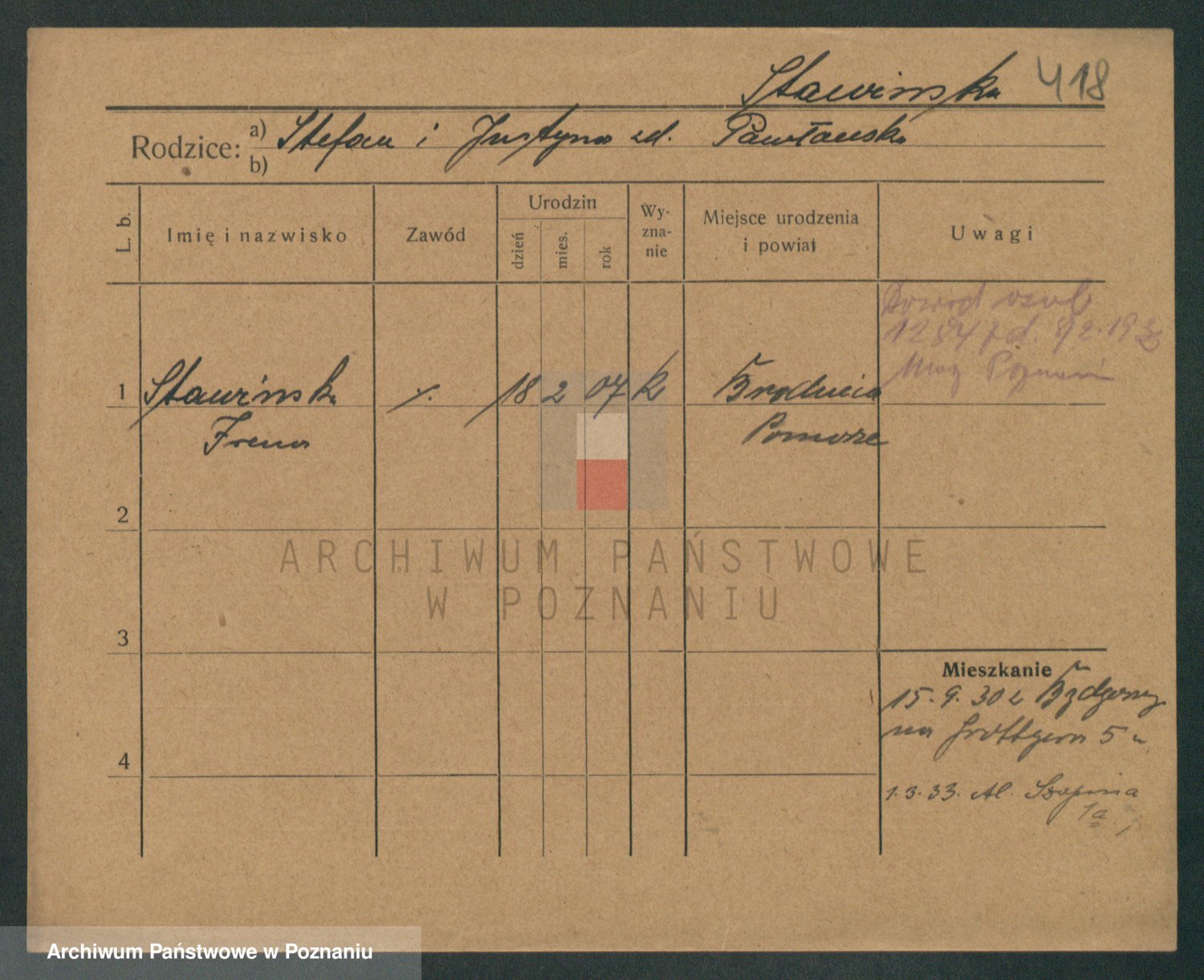 Stawieszynski zd. Frankowska, Katarzyna