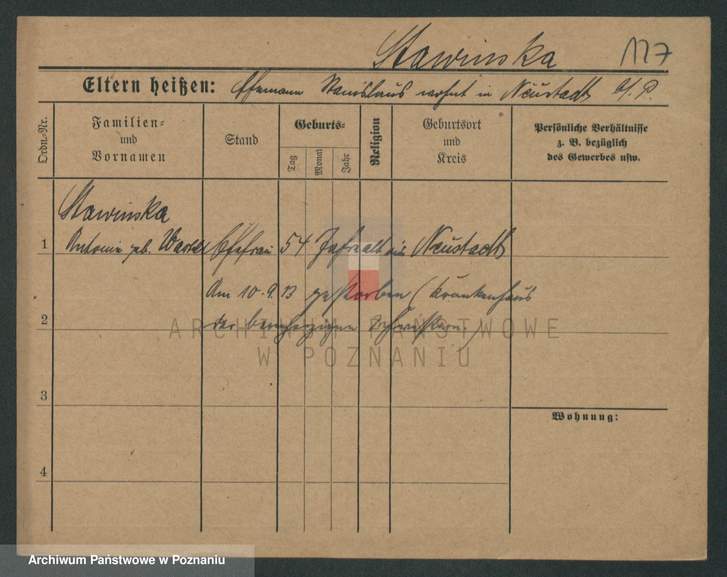Stawinski zd. Zielinska, Nepomucena