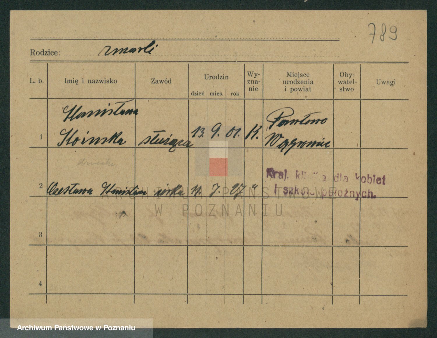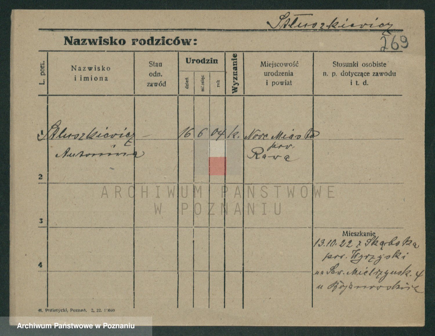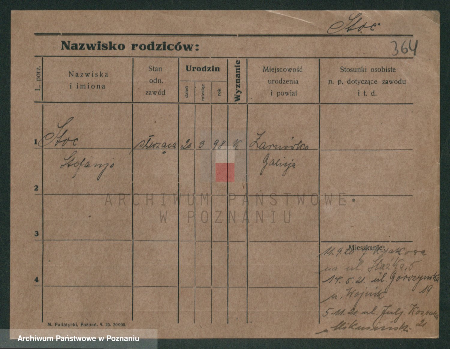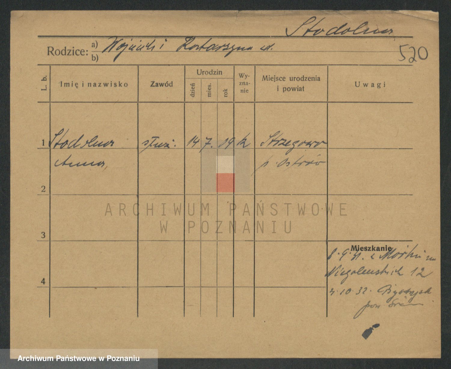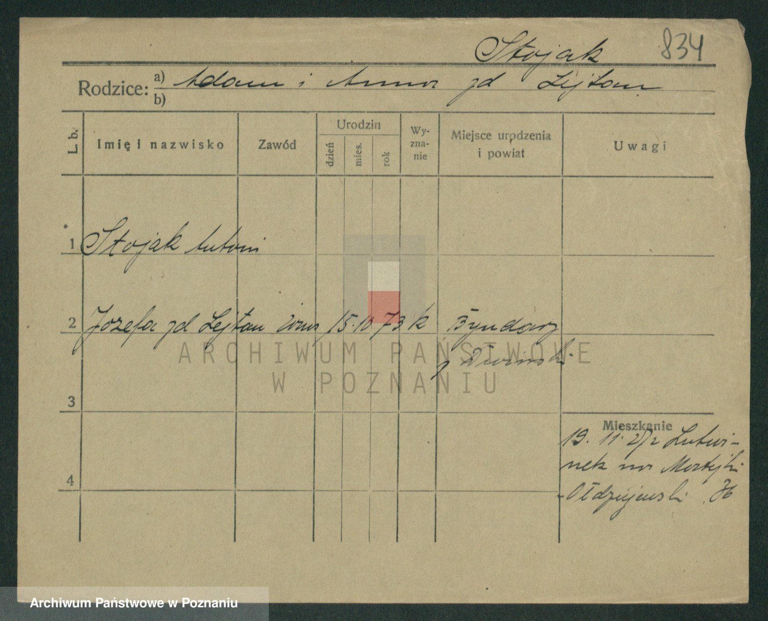 Podgląd karty osobowej dostępny jest po kliknięciu na nazwisko lub ikonkę karty. Można dokonywać powiększenia (ikony na górze) lub przechodzić między kolejnymi skanami (strzałki po bokach).