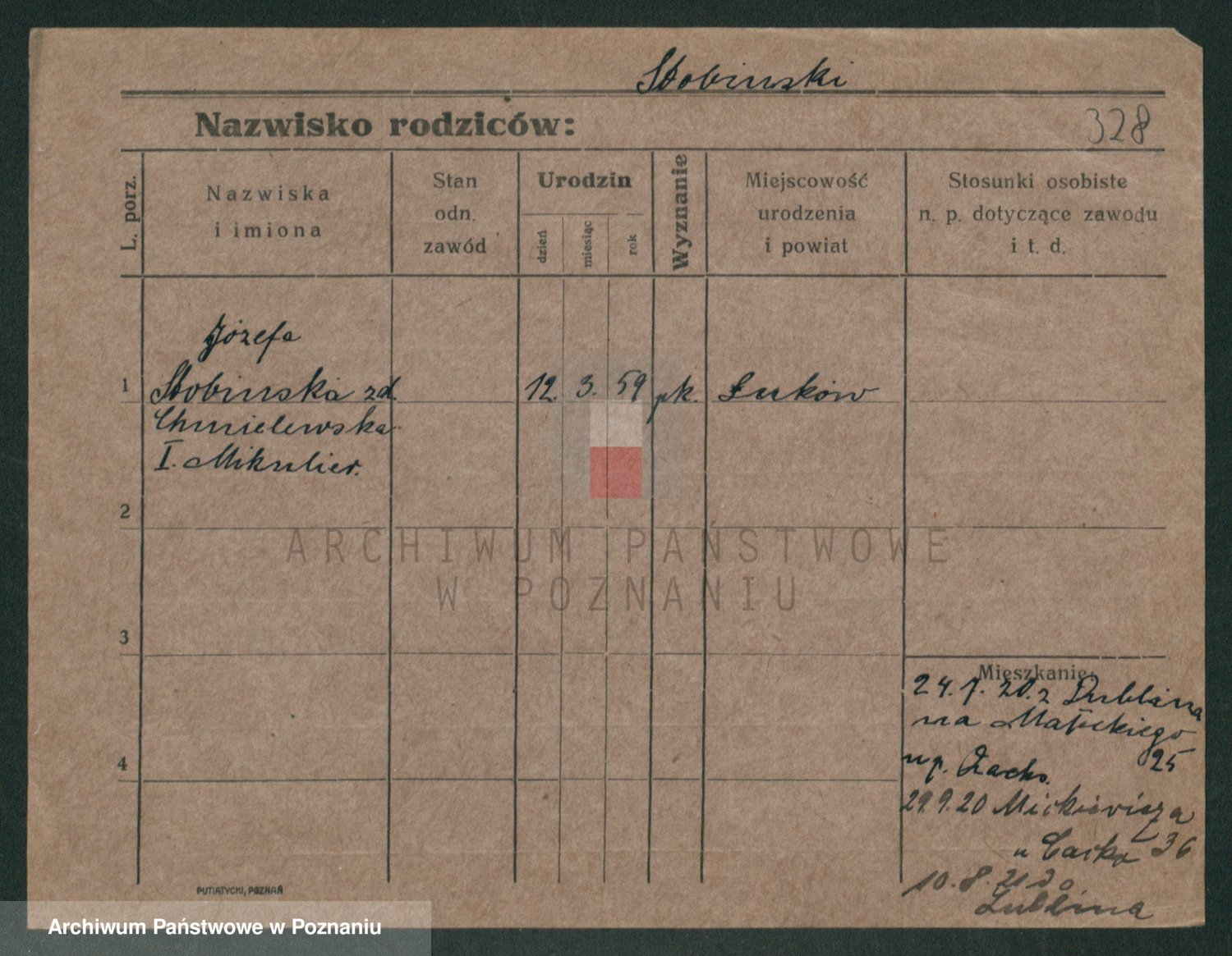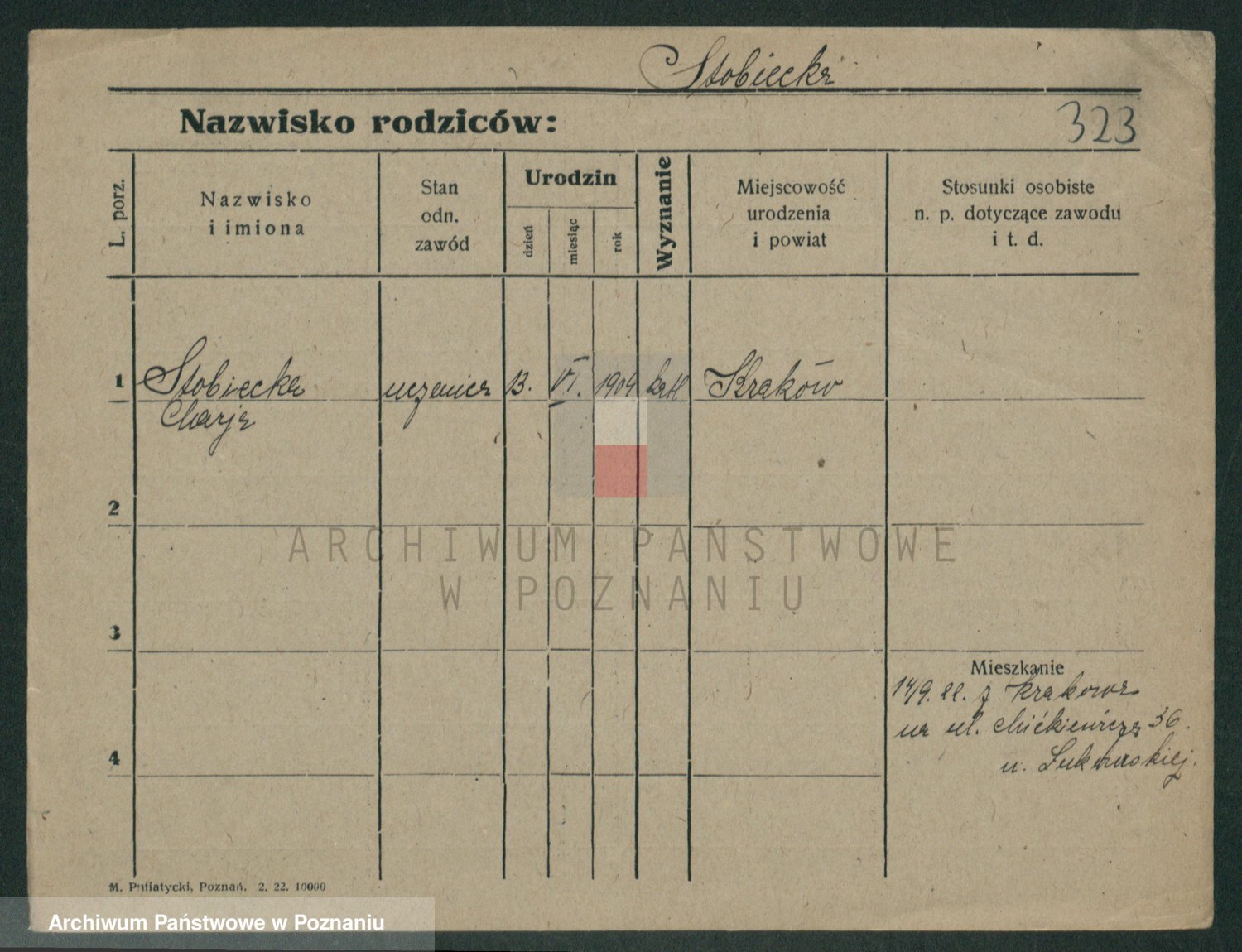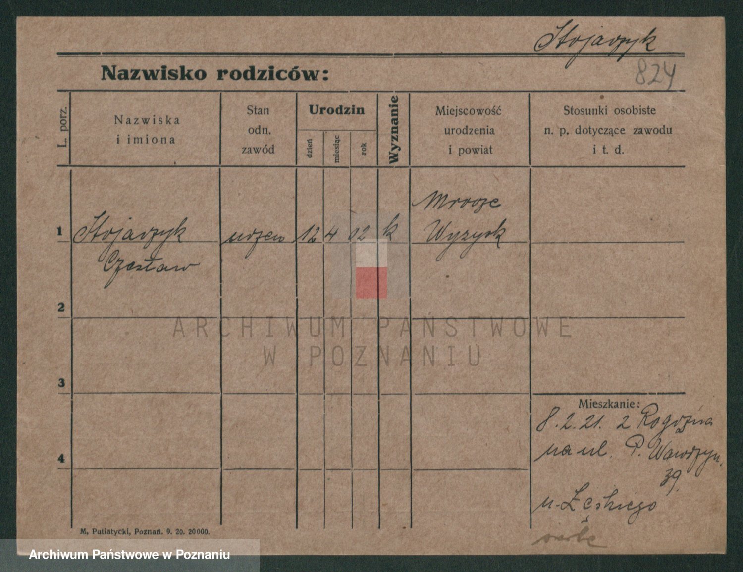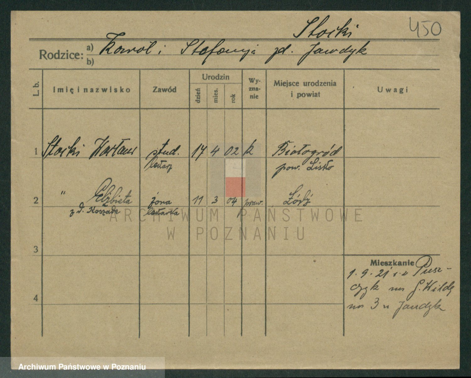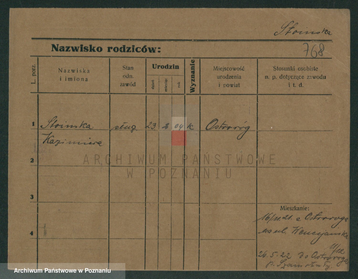 Podgląd karty osobowej dostępny jest po kliknięciu na nazwisko lub ikonkę karty. Można dokonywać powiększenia (ikony na górze) lub przechodzić między kolejnymi skanami (strzałki po bokach).