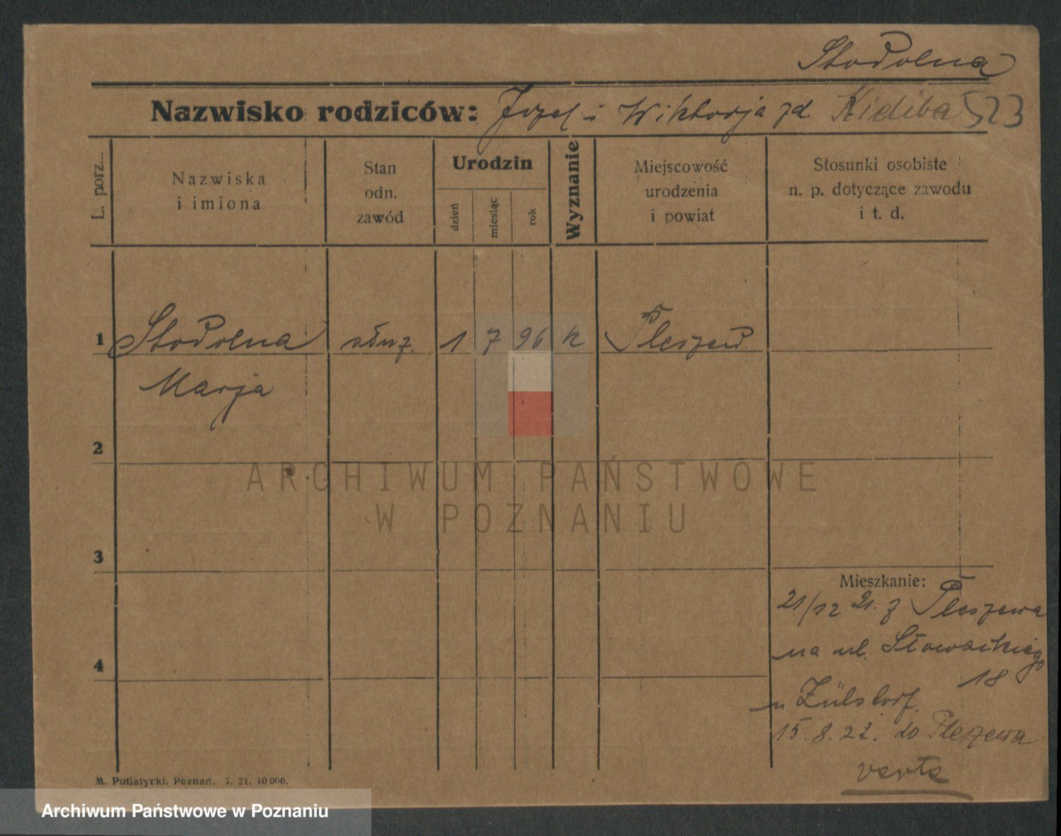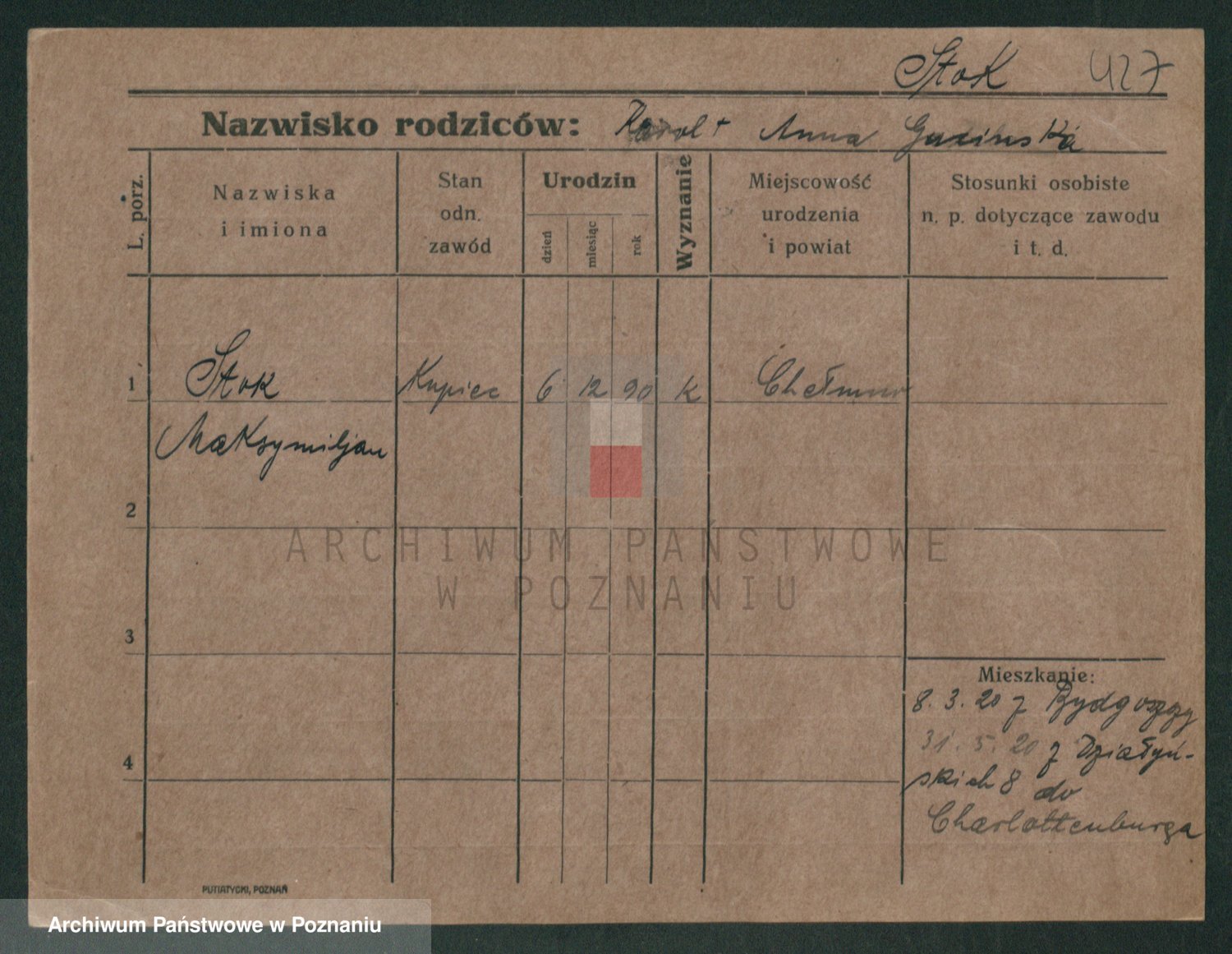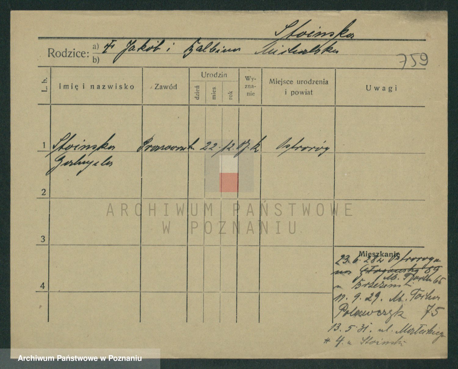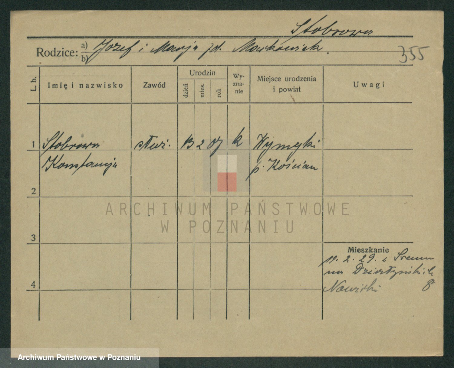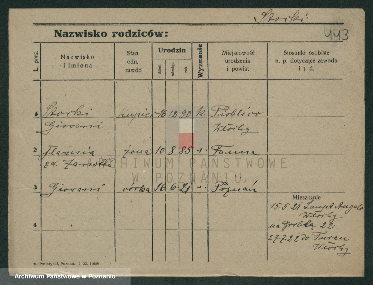 Podgląd karty osobowej dostępny jest po kliknięciu na nazwisko lub ikonkę karty. Można dokonywać powiększenia (ikony na górze) lub przechodzić między kolejnymi skanami (strzałki po bokach).