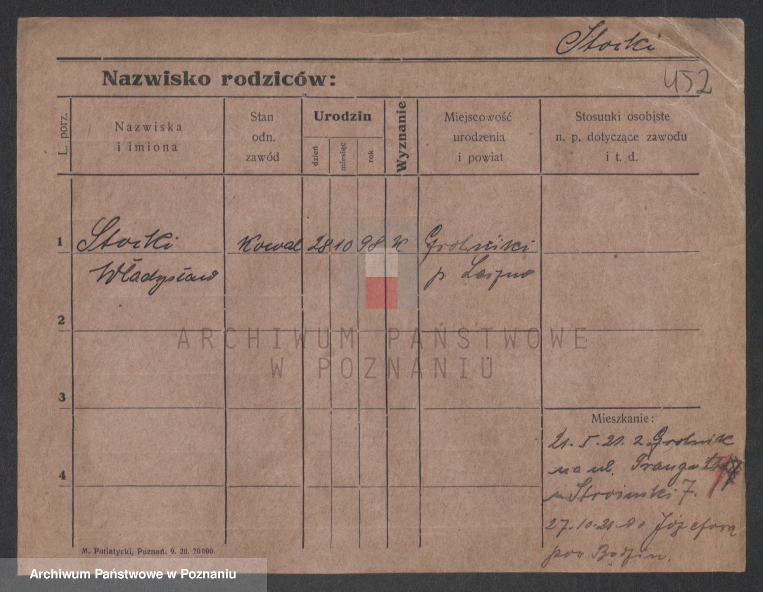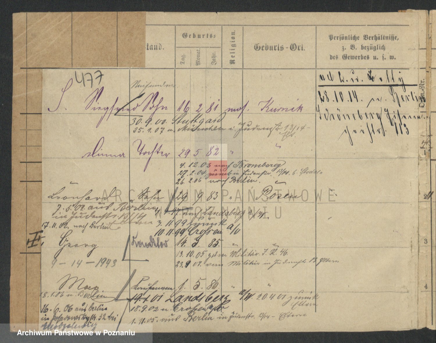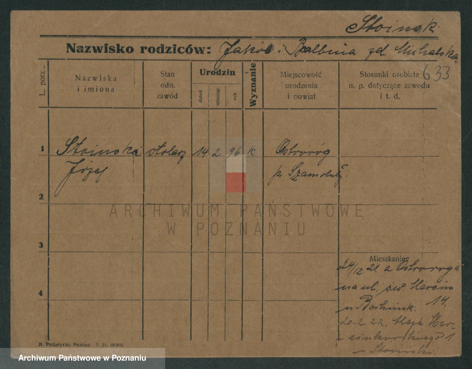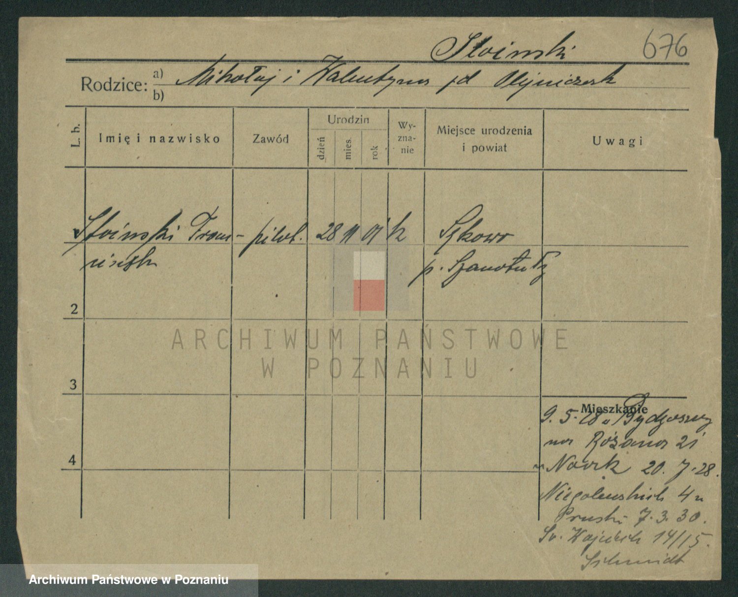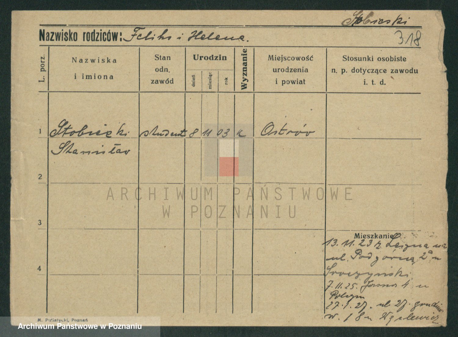 Podgląd karty osobowej dostępny jest po kliknięciu na nazwisko lub ikonkę karty. Można dokonywać powiększenia (ikony na górze) lub przechodzić między kolejnymi skanami (strzałki po bokach).