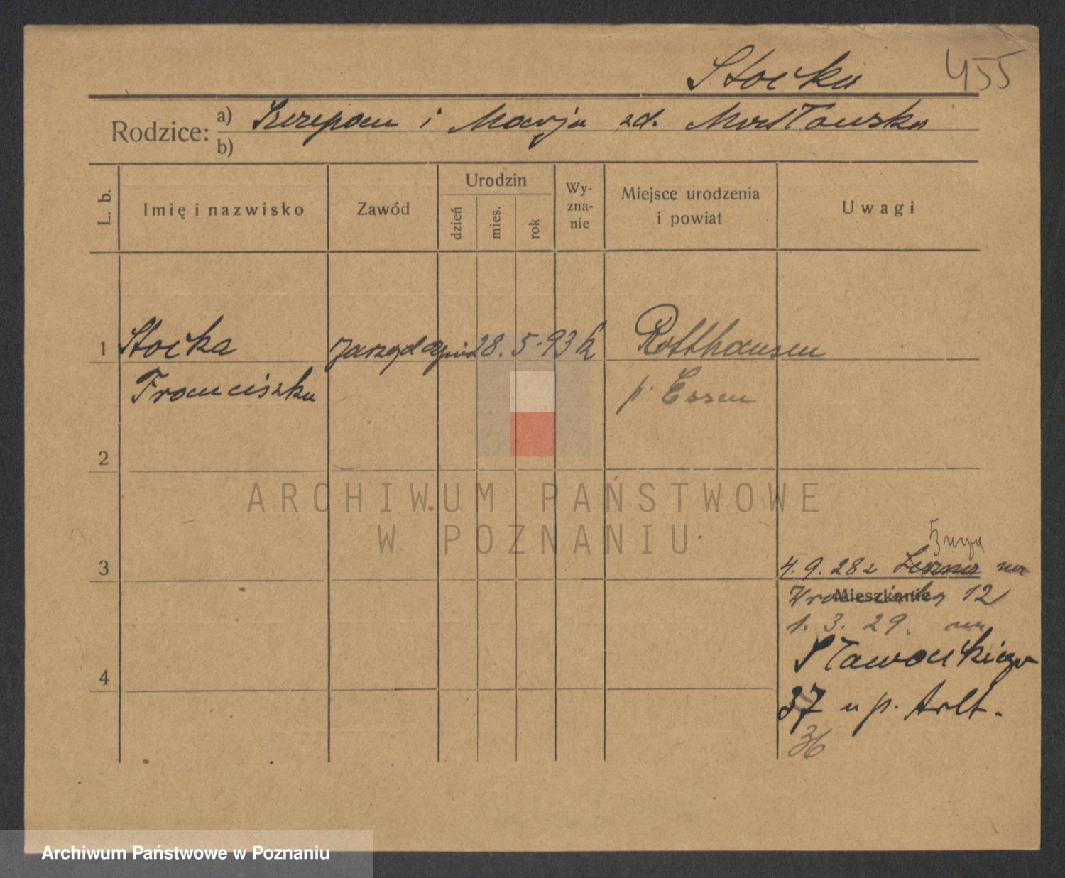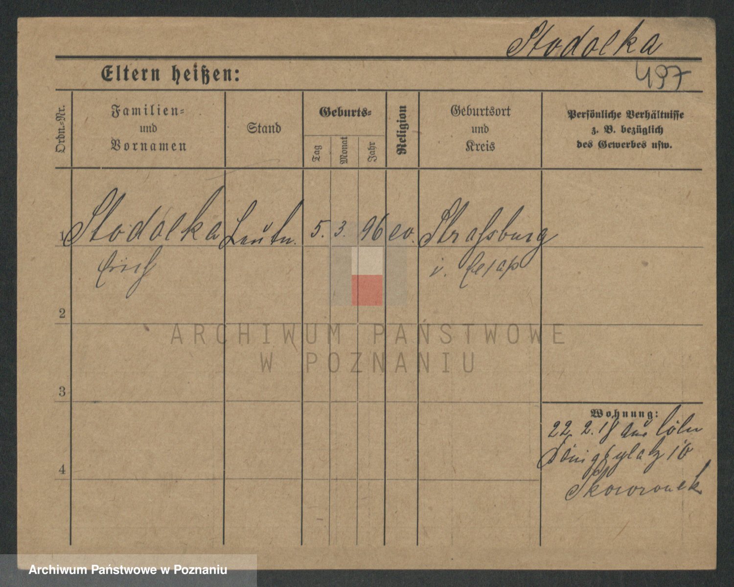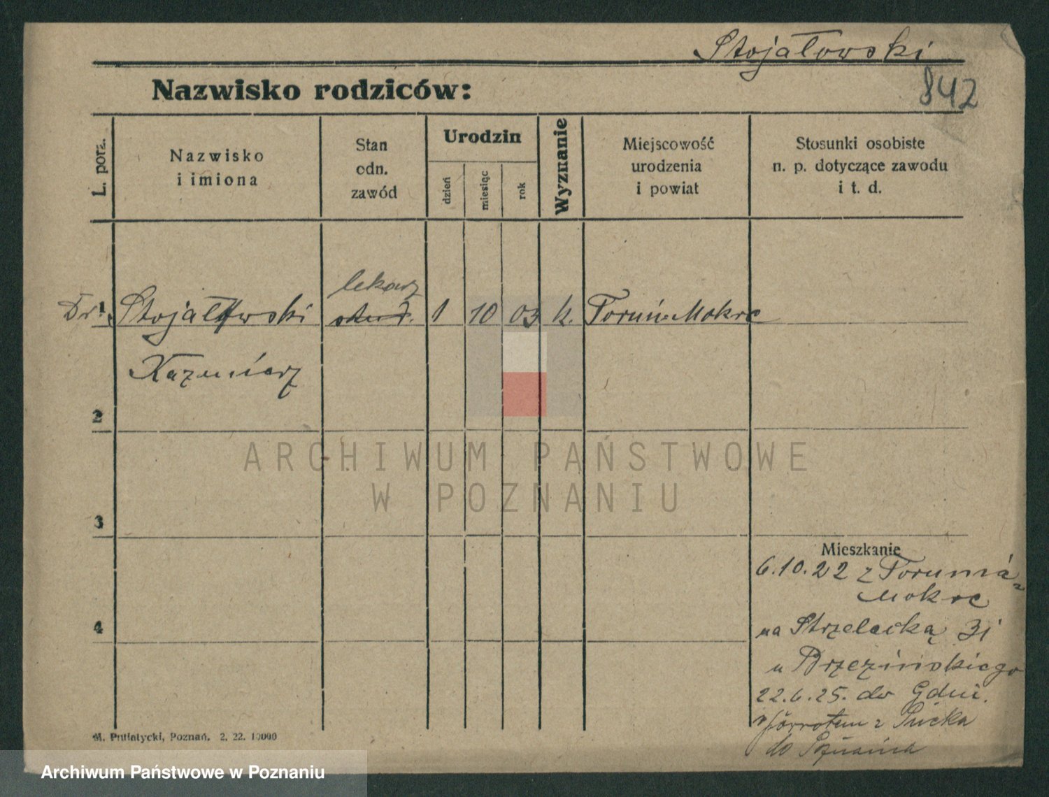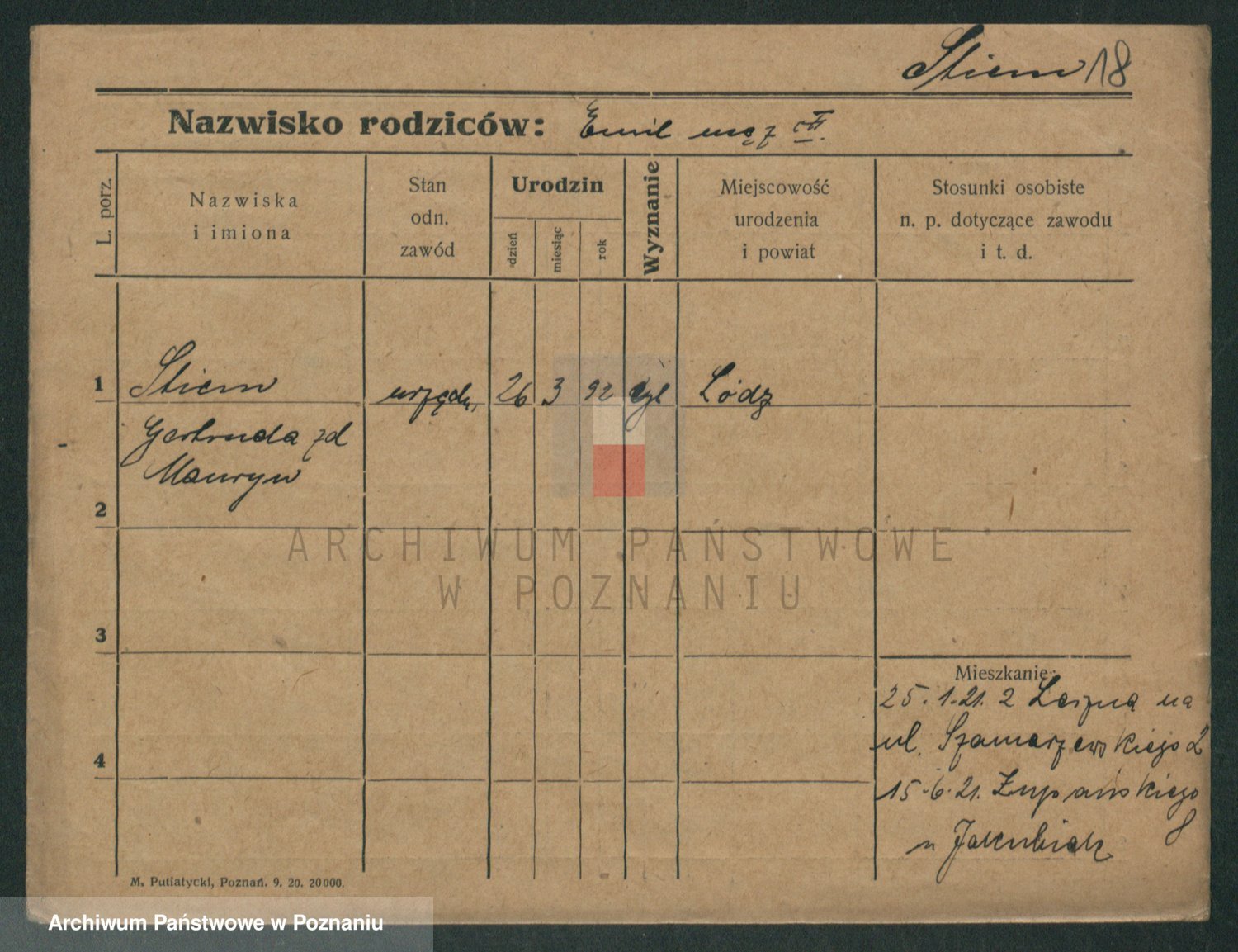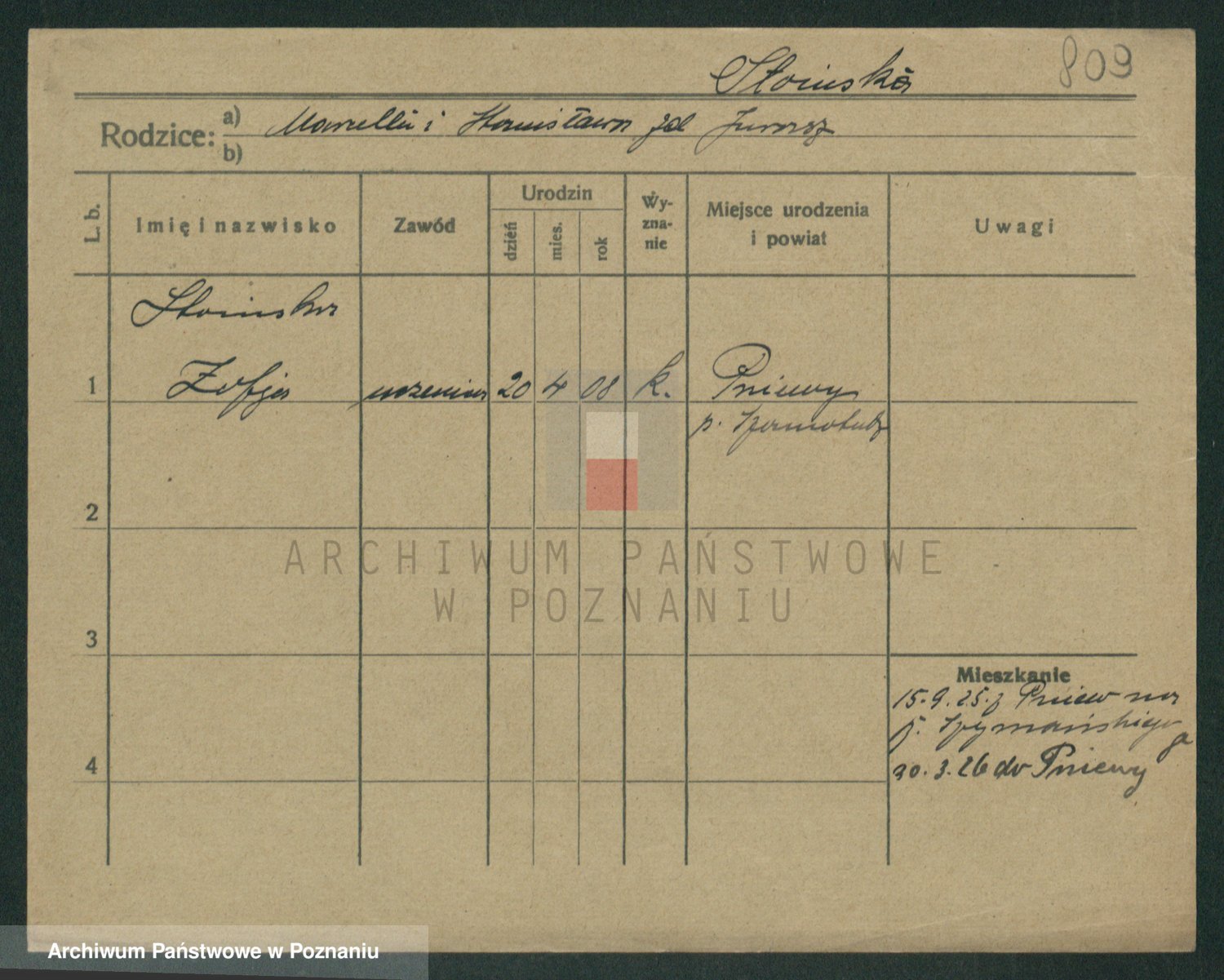 Podgląd karty osobowej dostępny jest po kliknięciu na nazwisko lub ikonkę karty. Można dokonywać powiększenia (ikony na górze) lub przechodzić między kolejnymi skanami (strzałki po bokach).