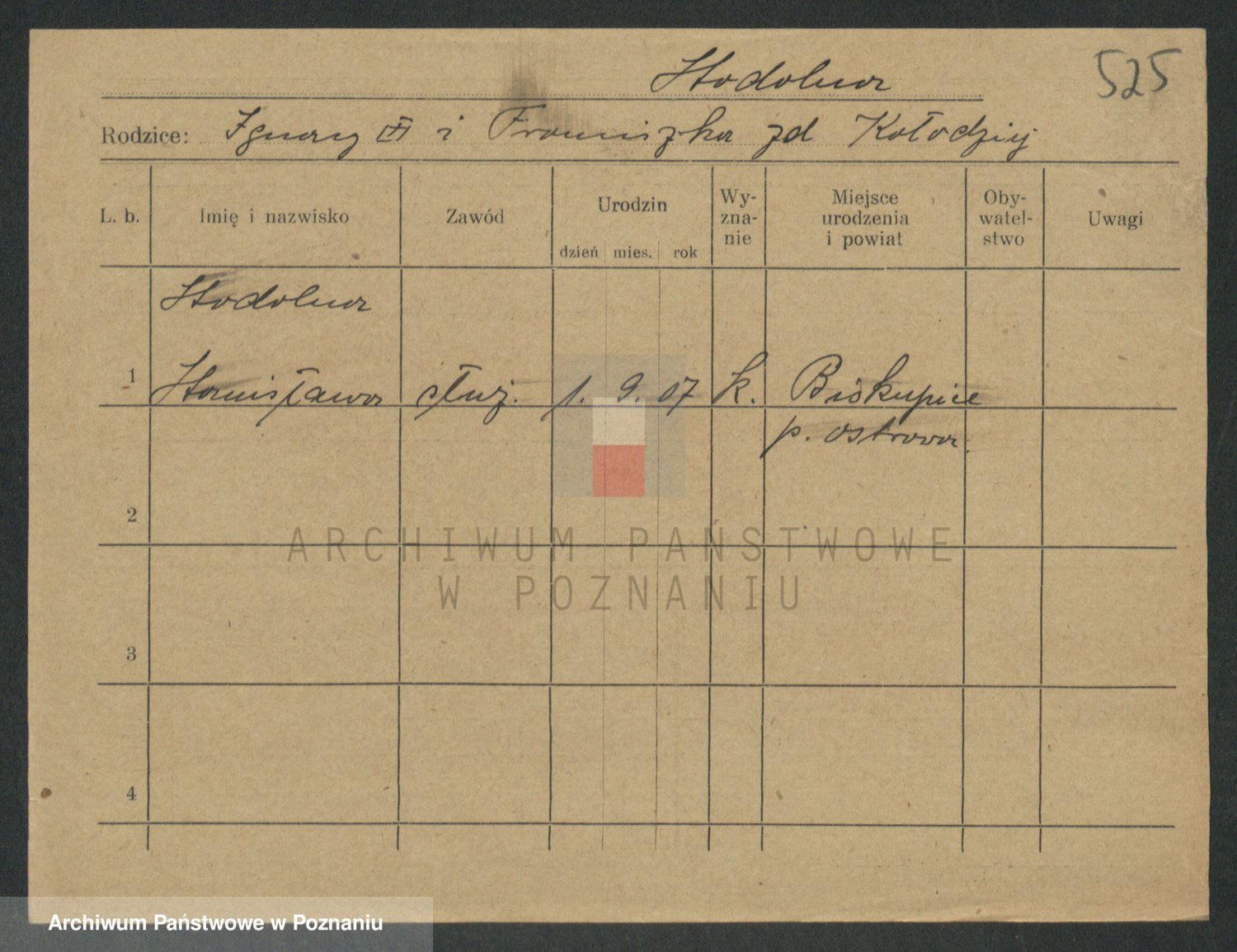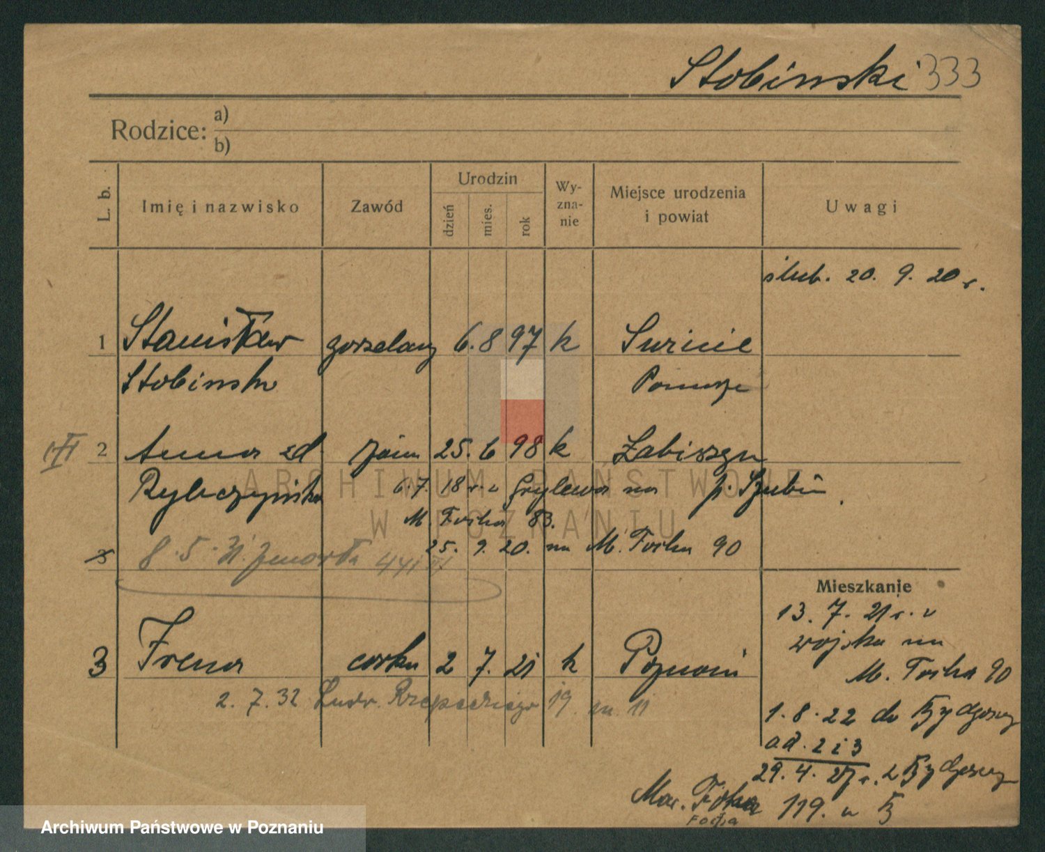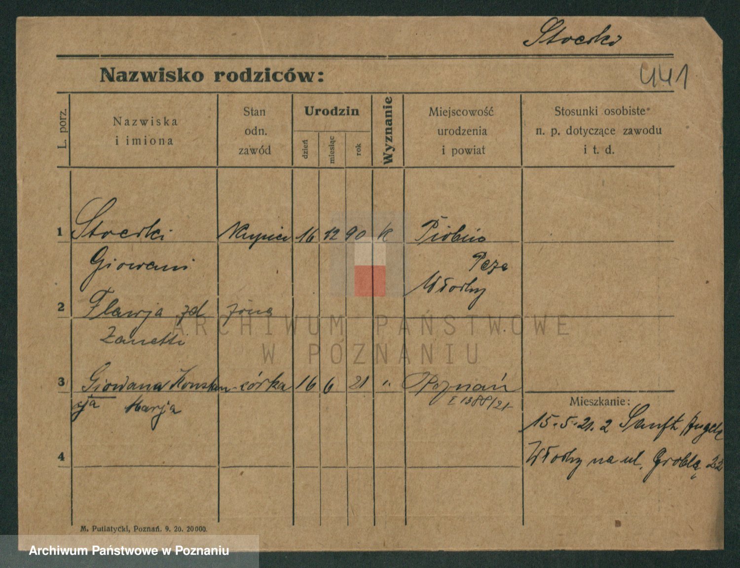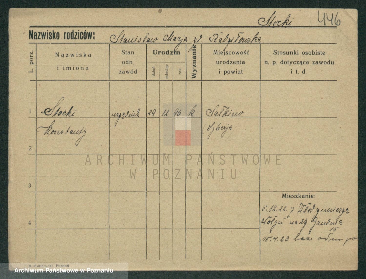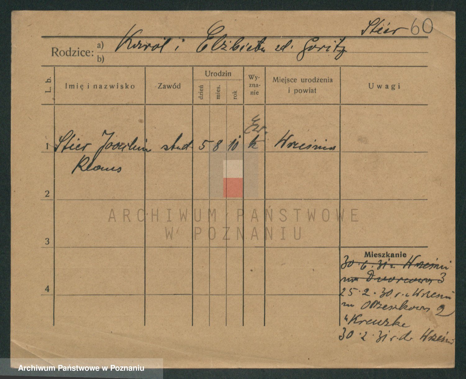 Podgląd karty osobowej dostępny jest po kliknięciu na nazwisko lub ikonkę karty. Można dokonywać powiększenia (ikony na górze) lub przechodzić między kolejnymi skanami (strzałki po bokach).