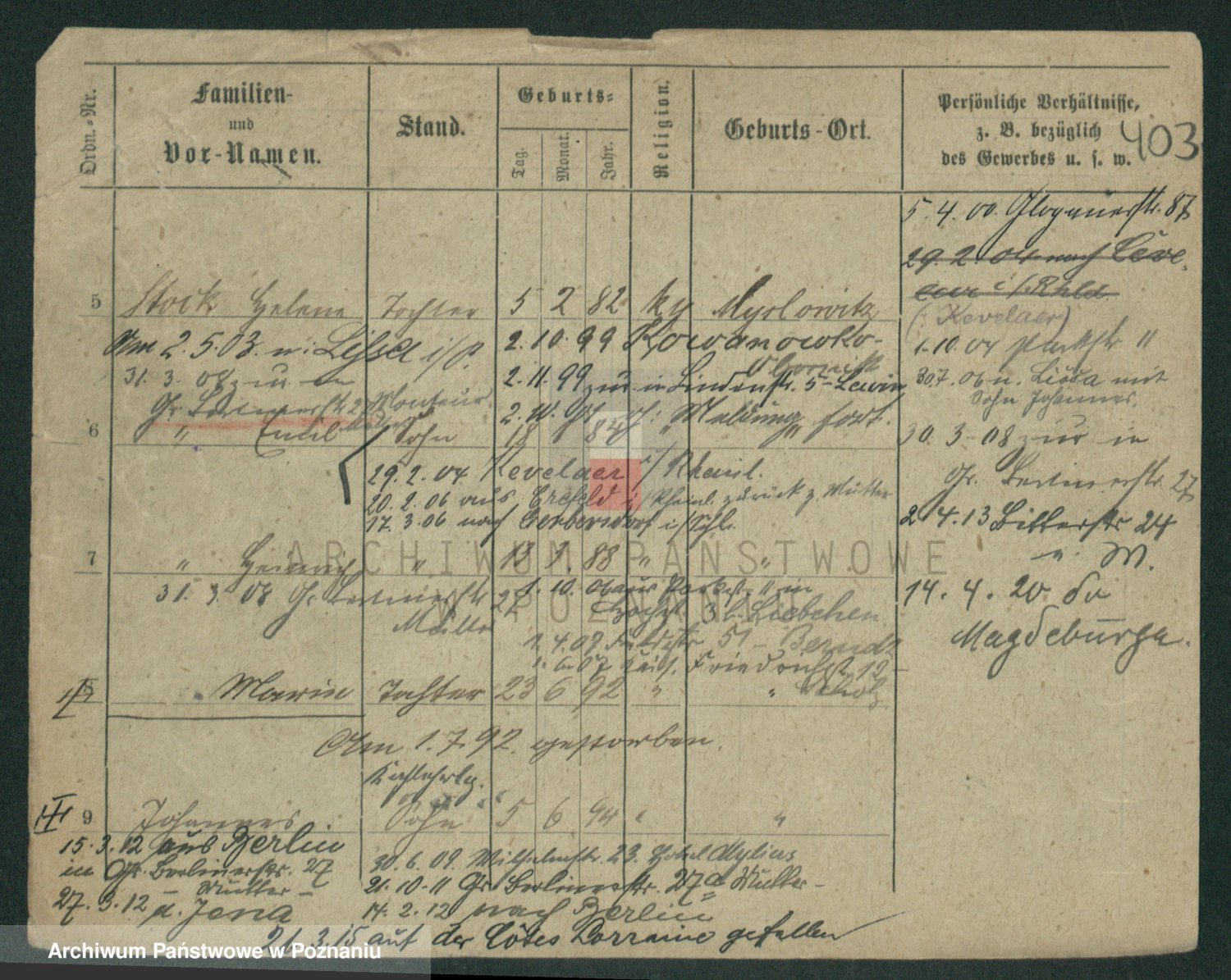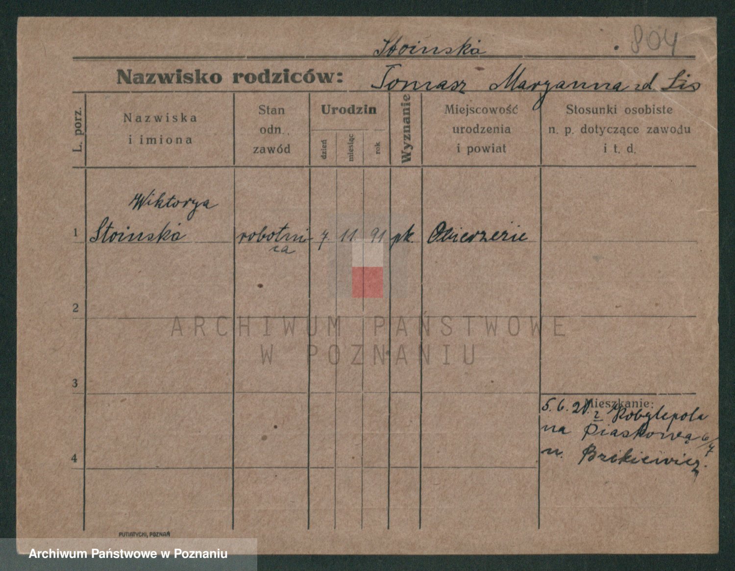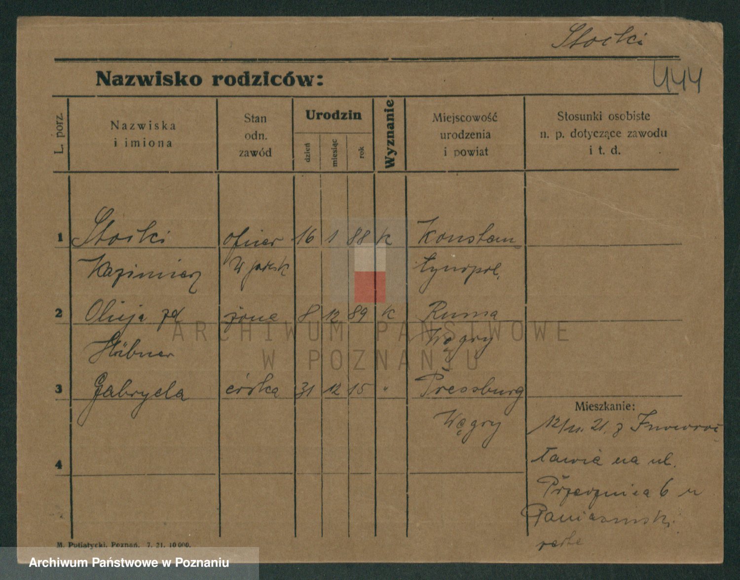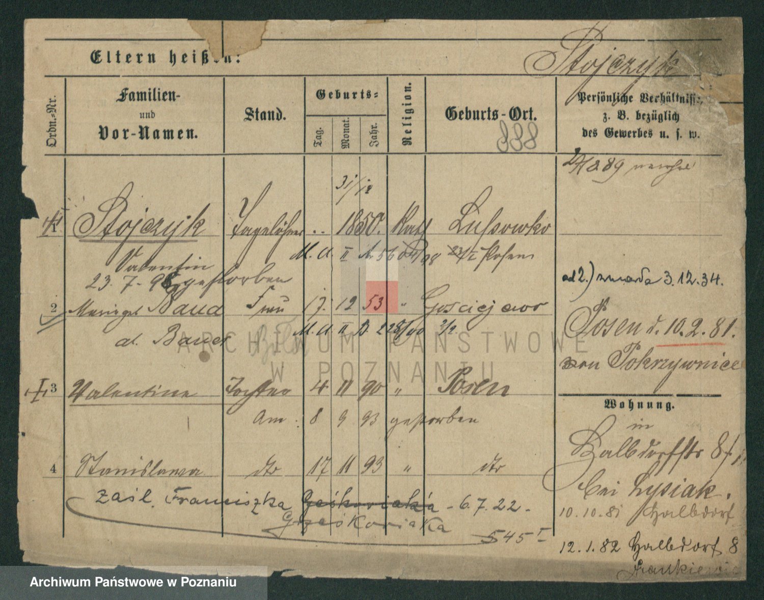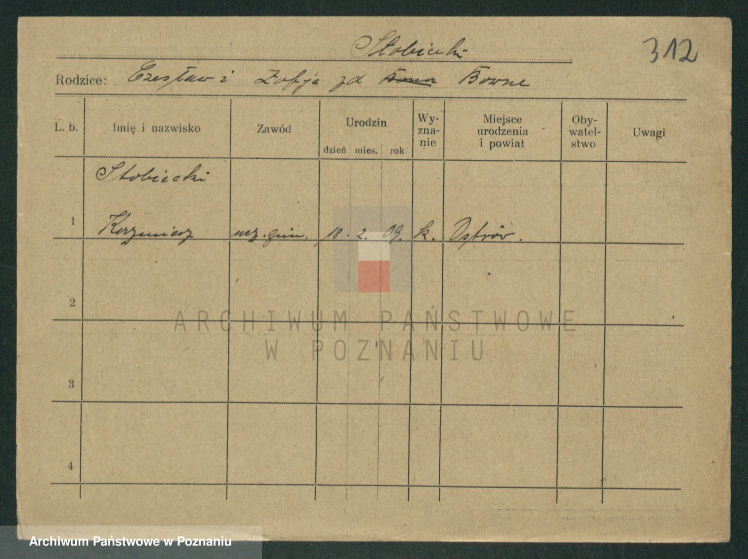 Podgląd karty osobowej dostępny jest po kliknięciu na nazwisko lub ikonkę karty. Można dokonywać powiększenia (ikony na górze) lub przechodzić między kolejnymi skanami (strzałki po bokach).