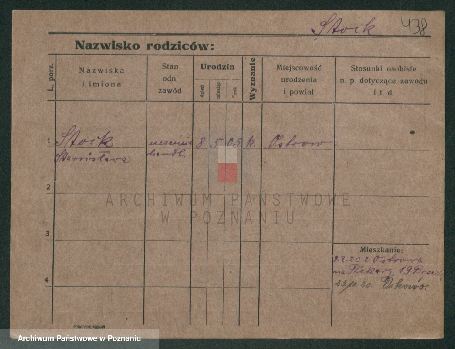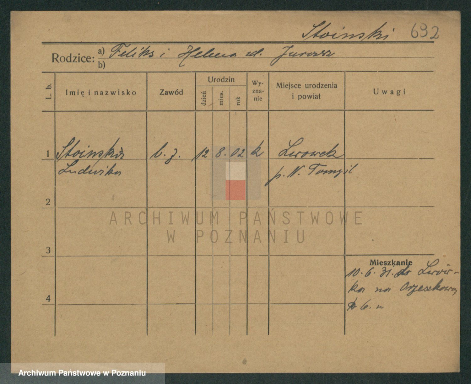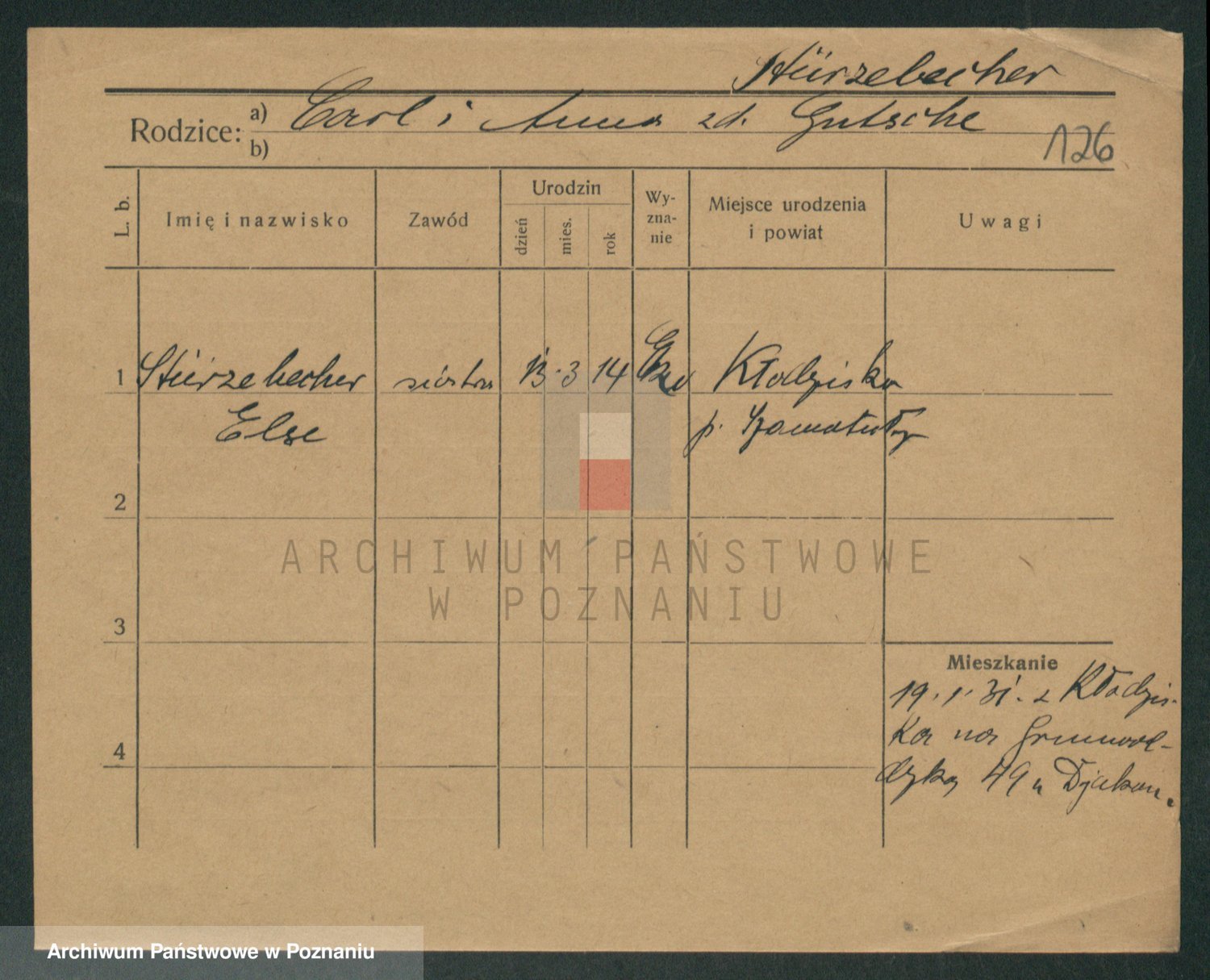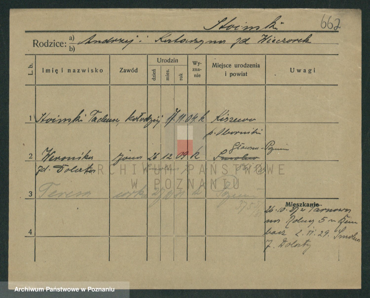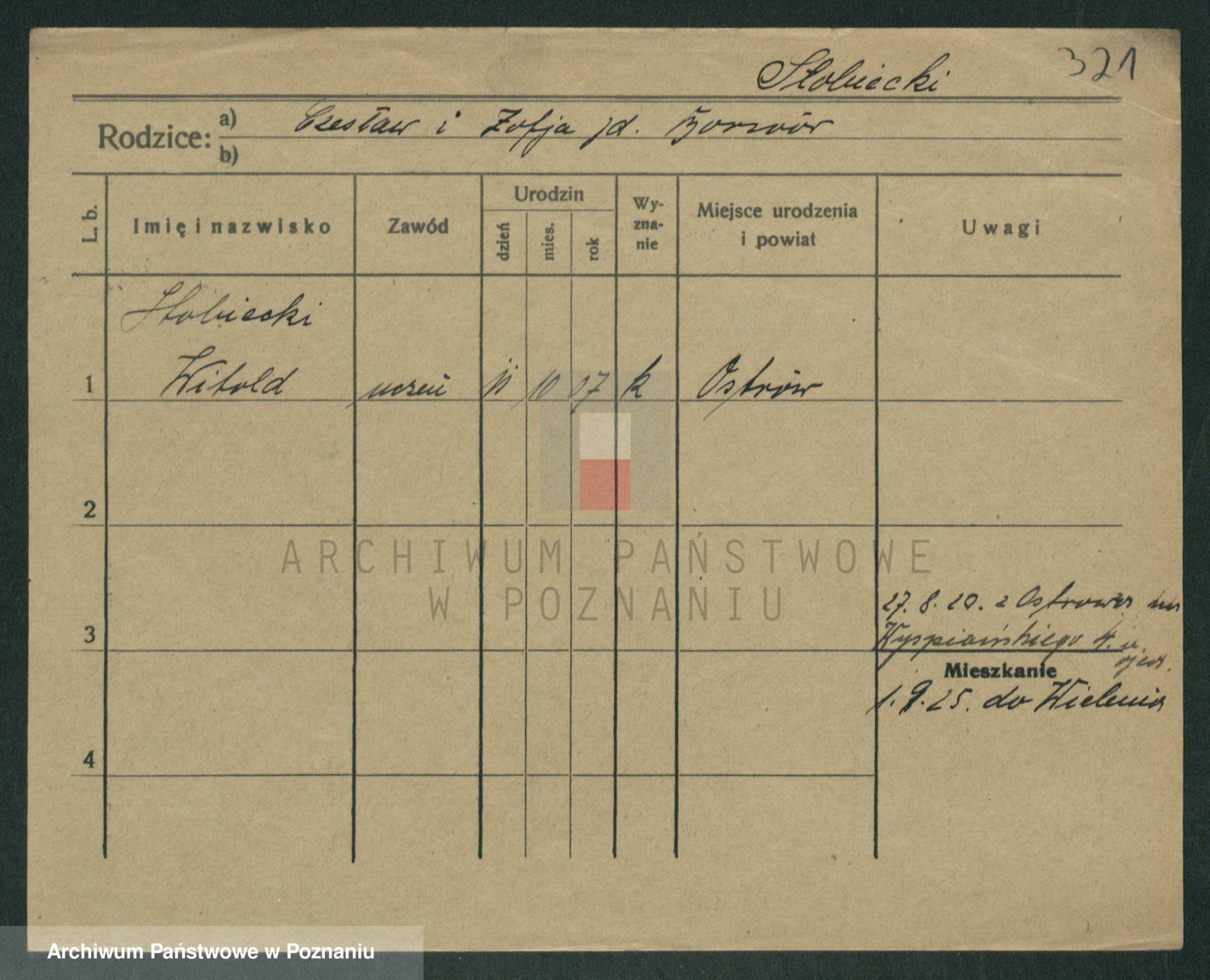 Podgląd karty osobowej dostępny jest po kliknięciu na nazwisko lub ikonkę karty. Można dokonywać powiększenia (ikony na górze) lub przechodzić między kolejnymi skanami (strzałki po bokach).