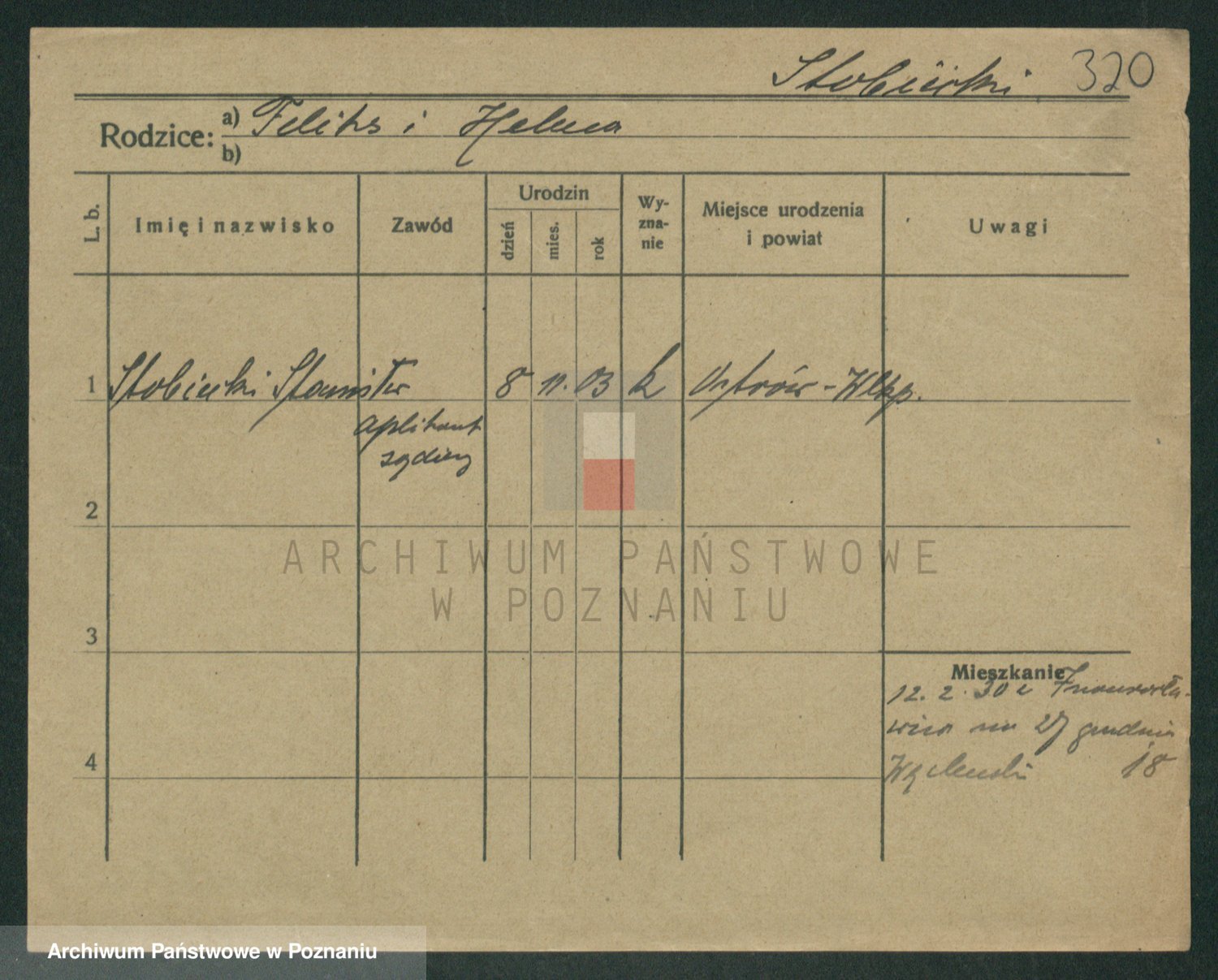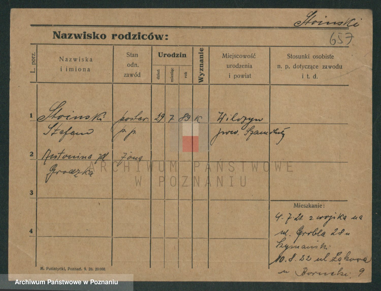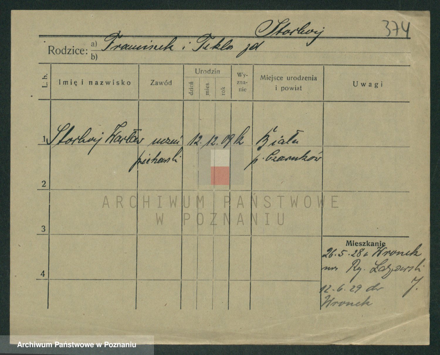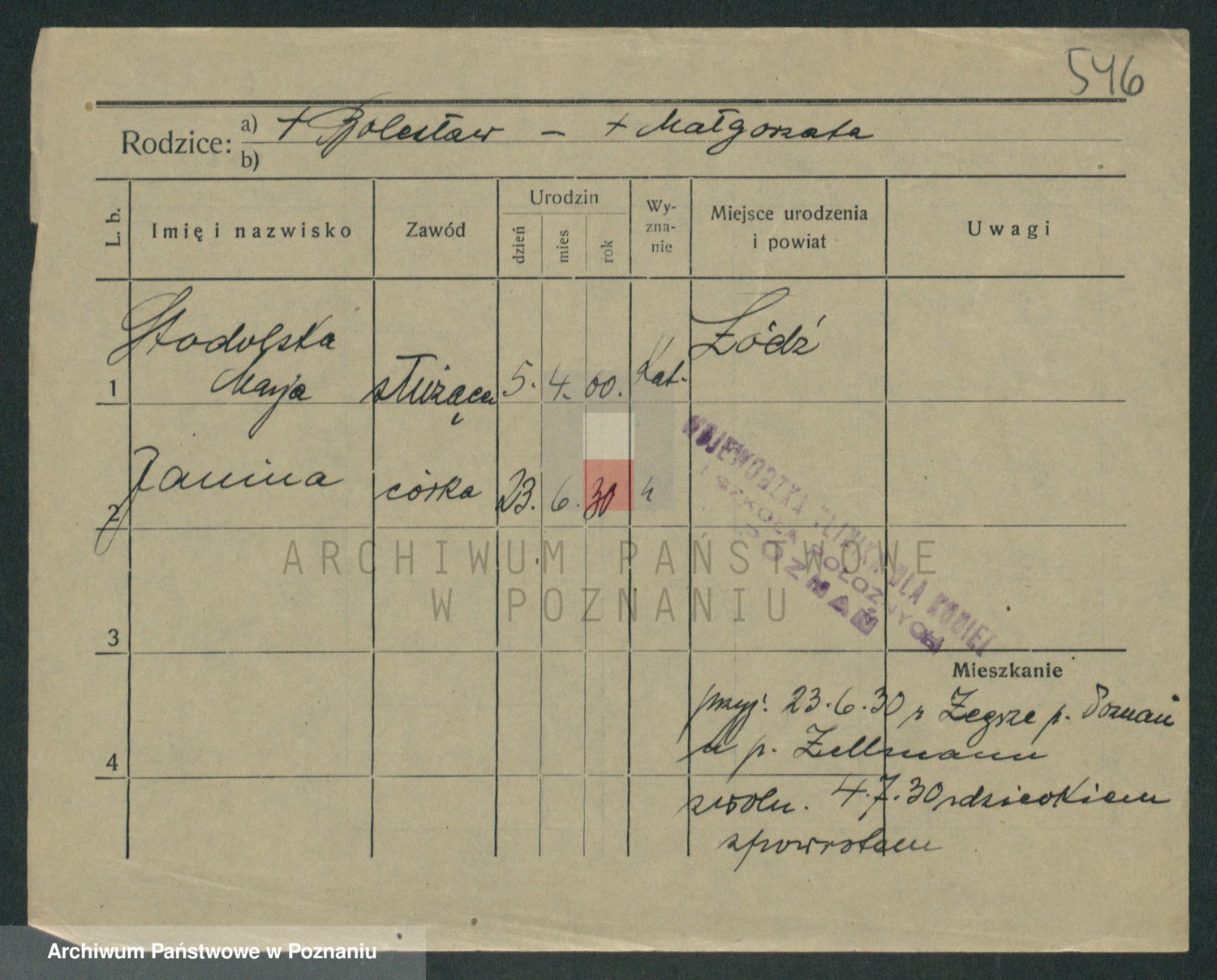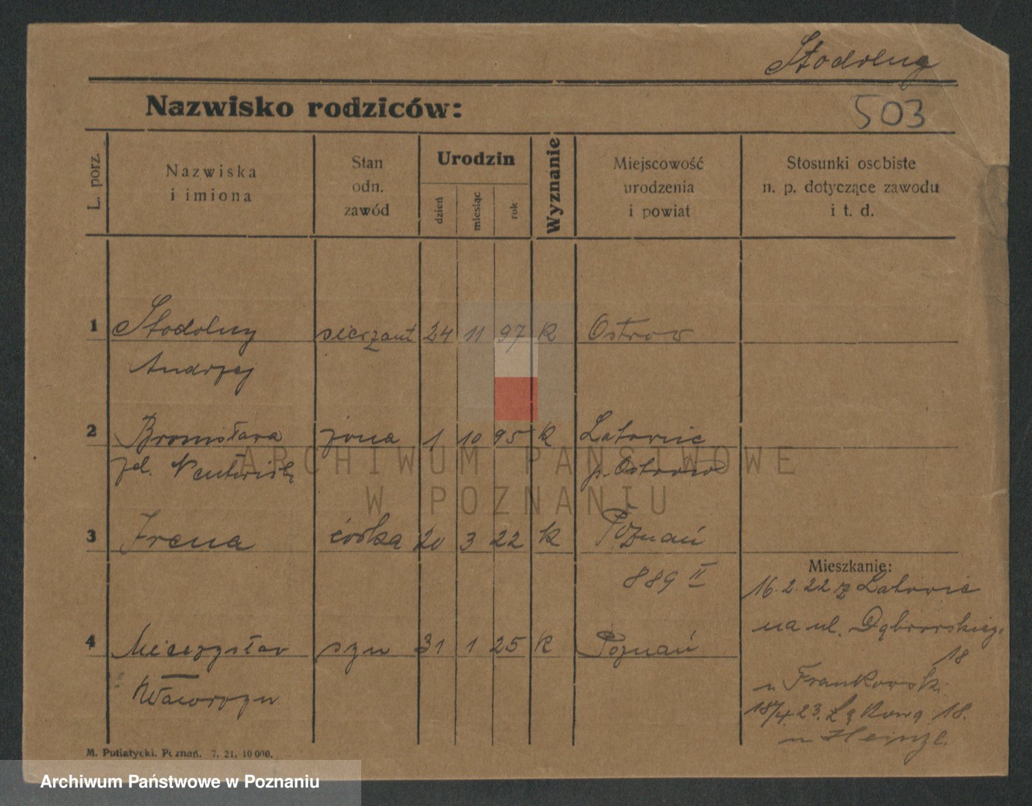 Podgląd karty osobowej dostępny jest po kliknięciu na nazwisko lub ikonkę karty. Można dokonywać powiększenia (ikony na górze) lub przechodzić między kolejnymi skanami (strzałki po bokach).