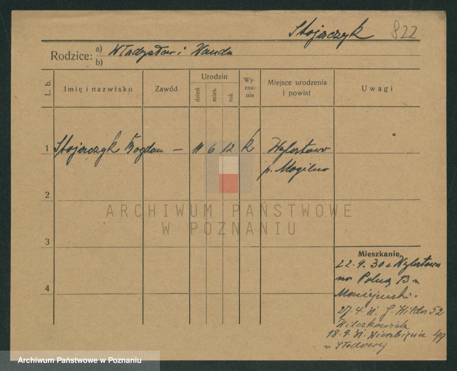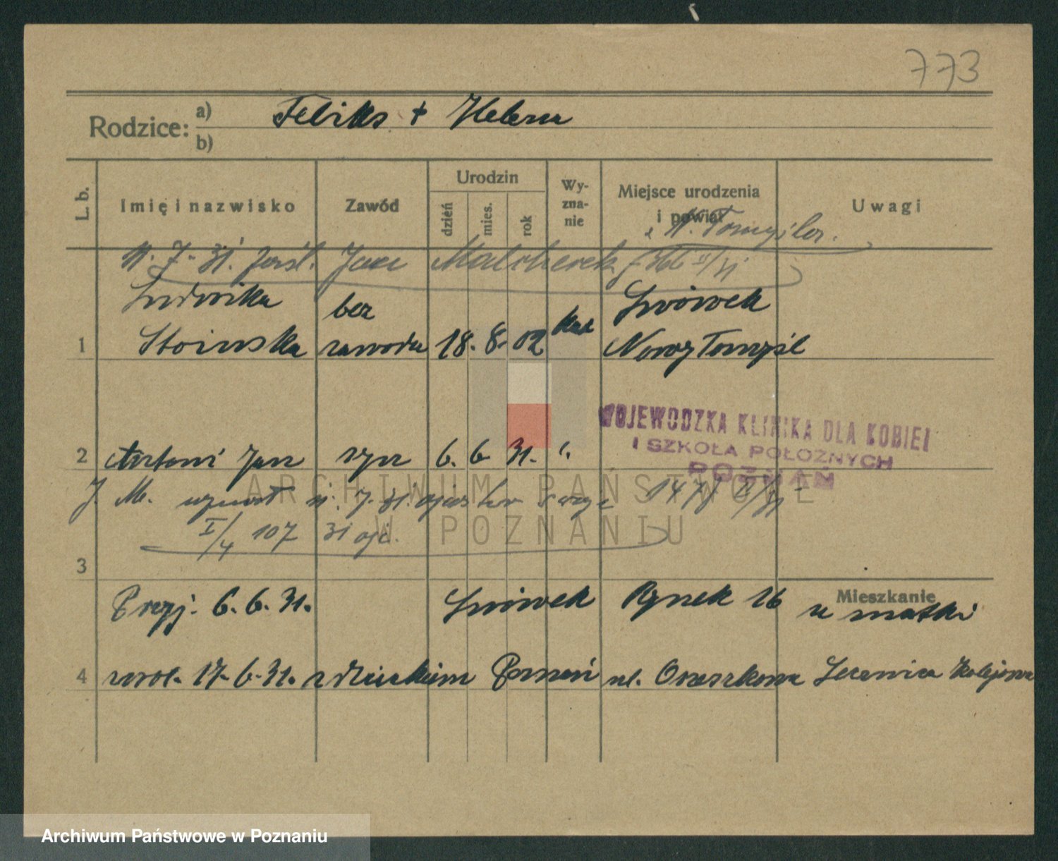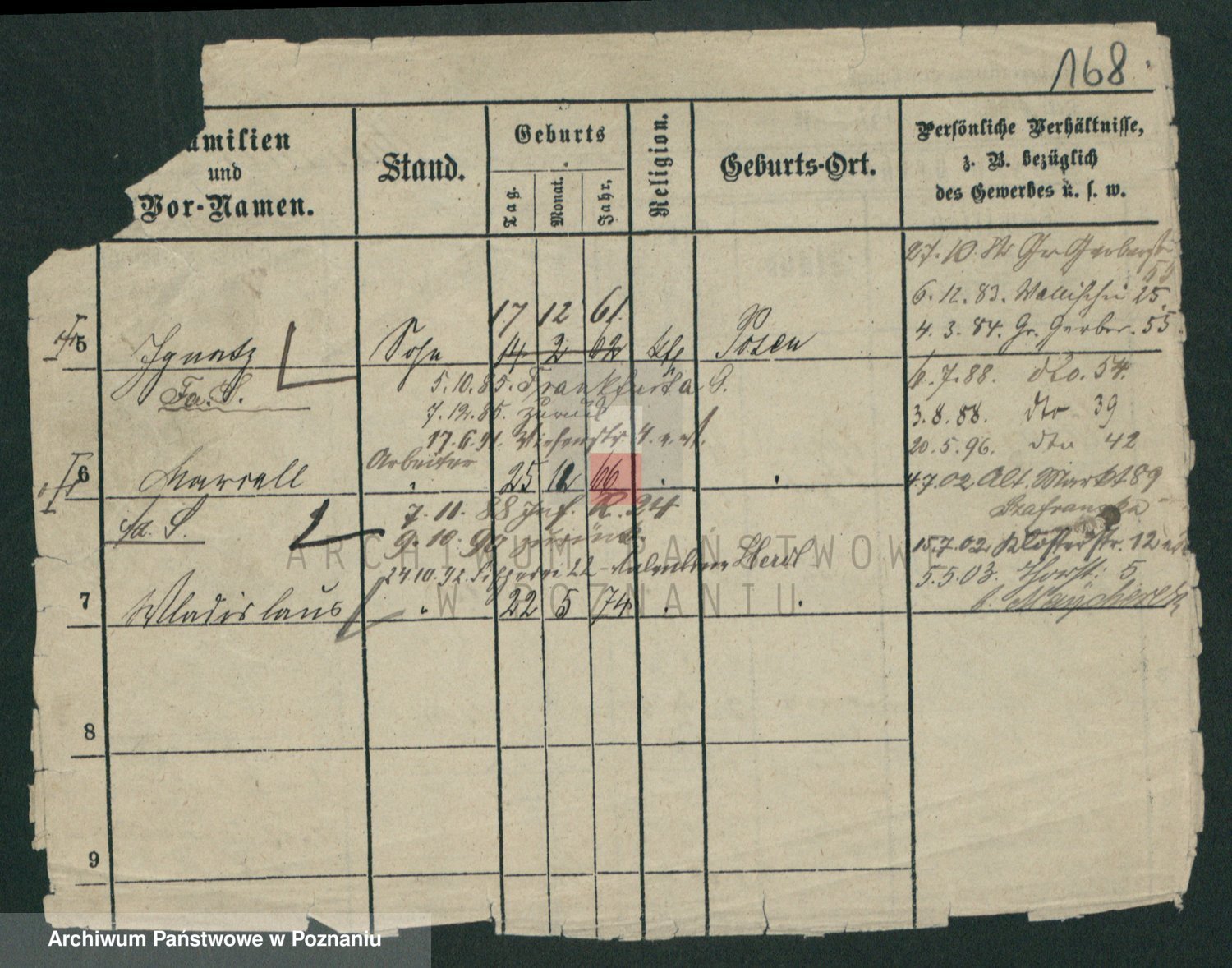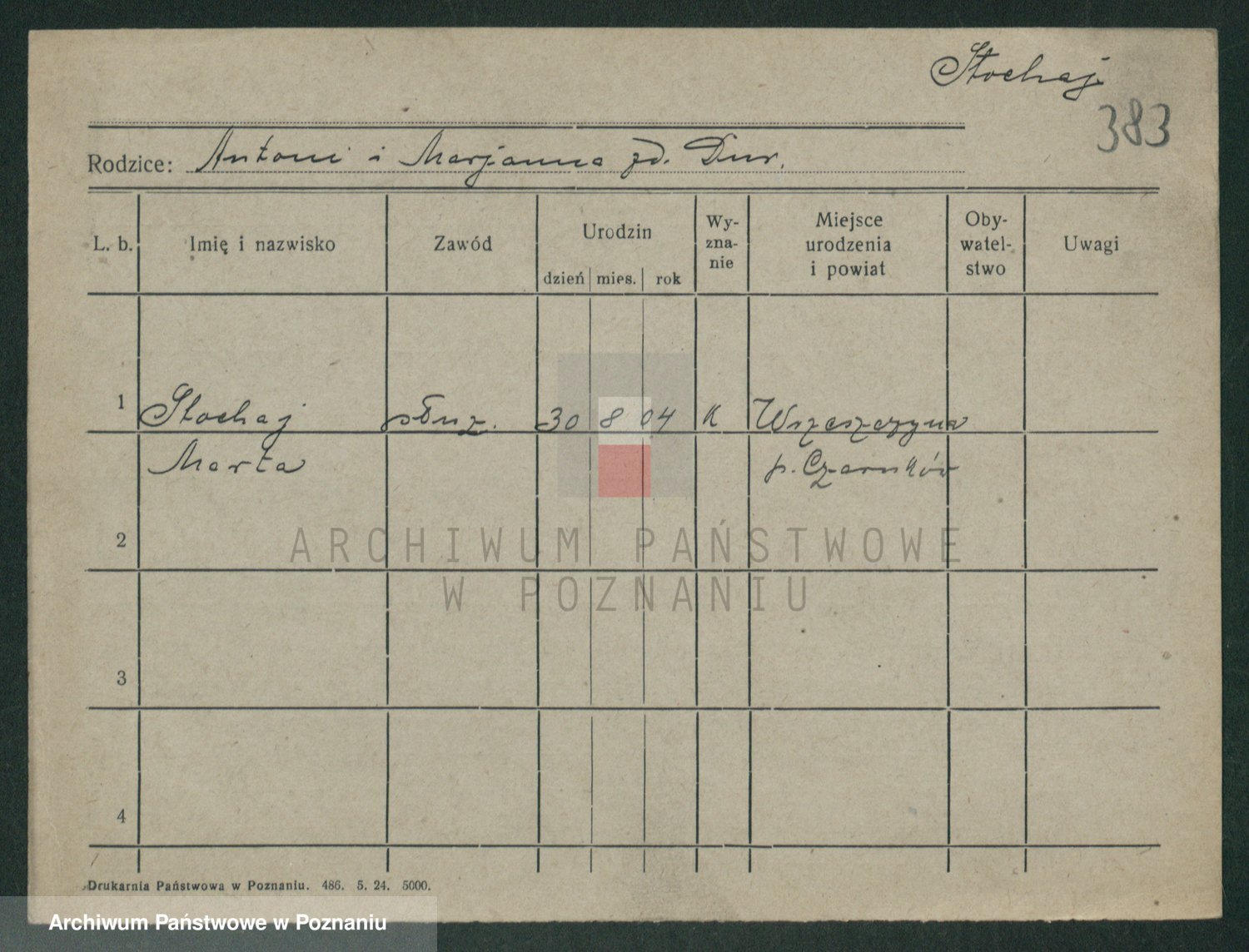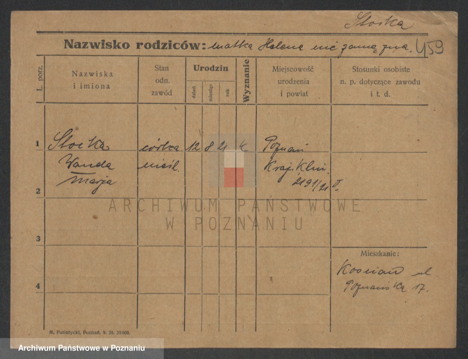 Podgląd karty osobowej dostępny jest po kliknięciu na nazwisko lub ikonkę karty. Można dokonywać powiększenia (ikony na górze) lub przechodzić między kolejnymi skanami (strzałki po bokach).