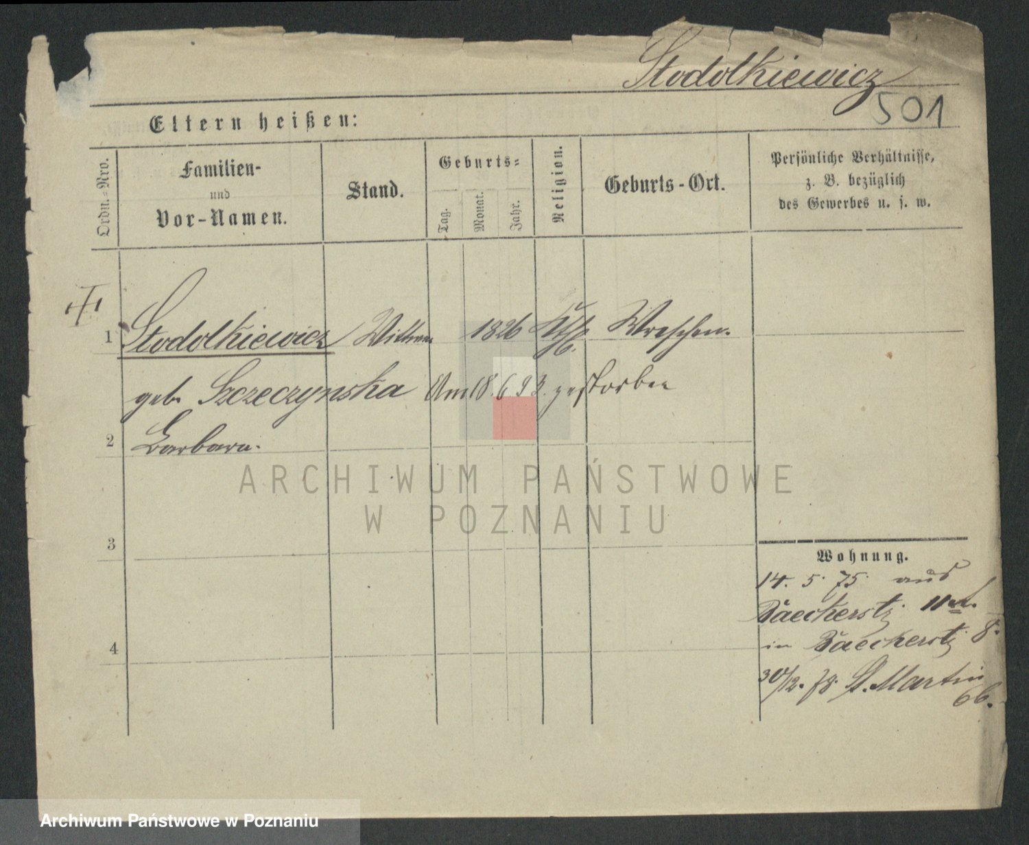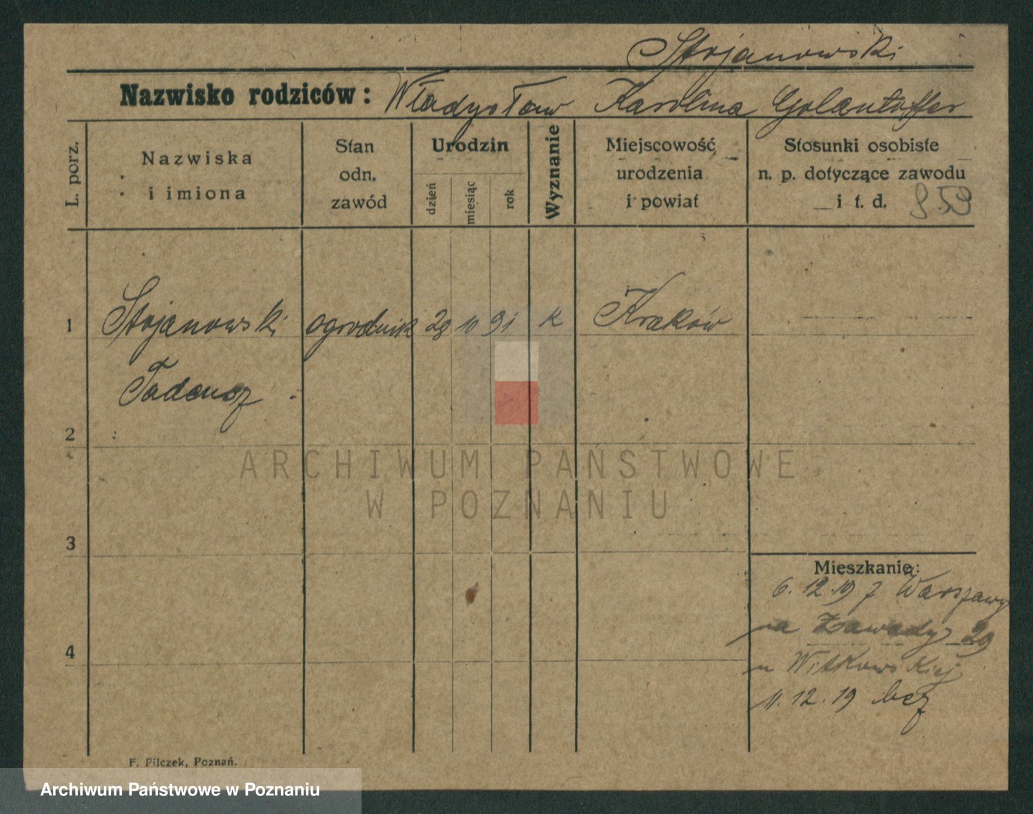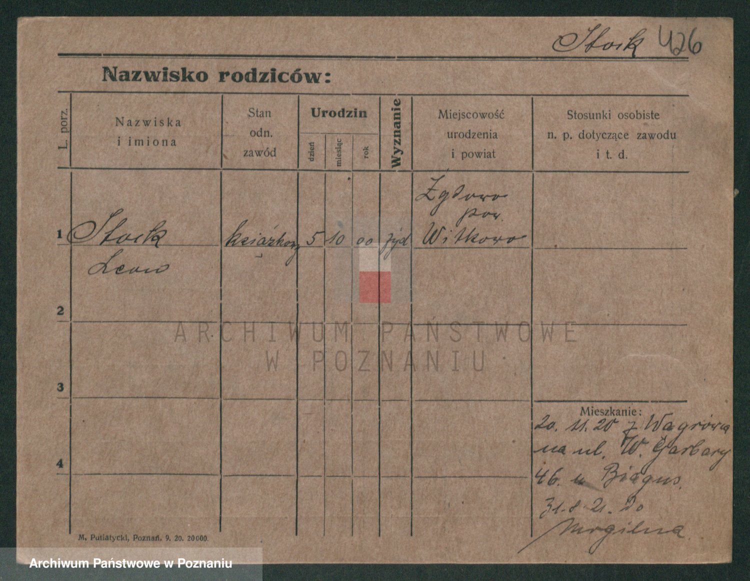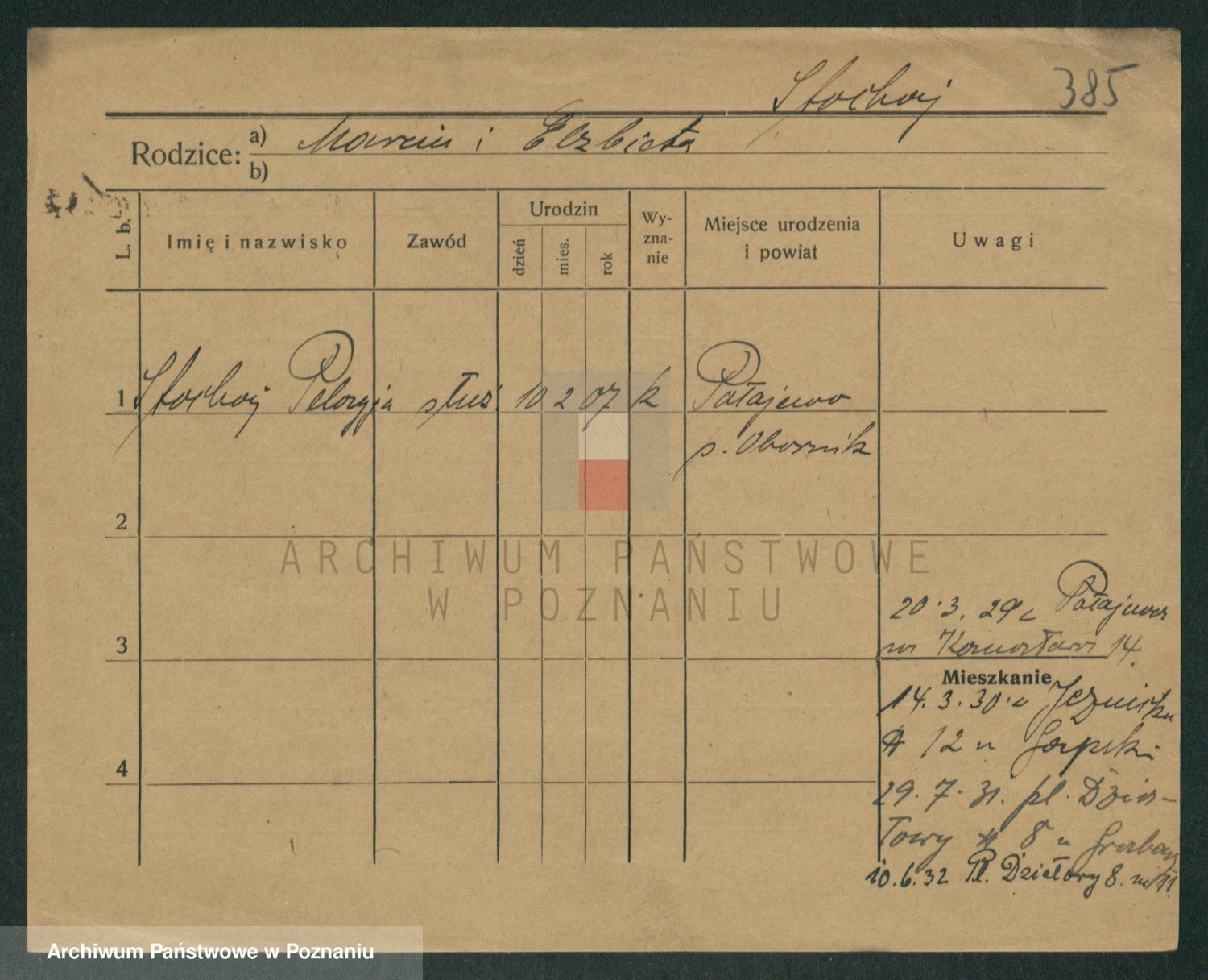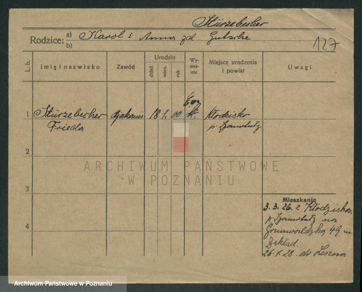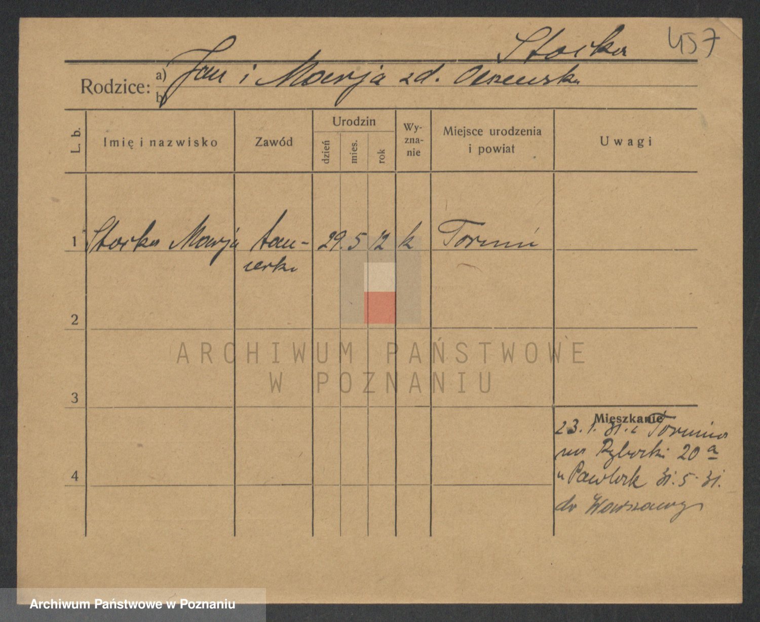 Podgląd karty osobowej dostępny jest po kliknięciu na nazwisko lub ikonkę karty. Można dokonywać powiększenia (ikony na górze) lub przechodzić między kolejnymi skanami (strzałki po bokach).