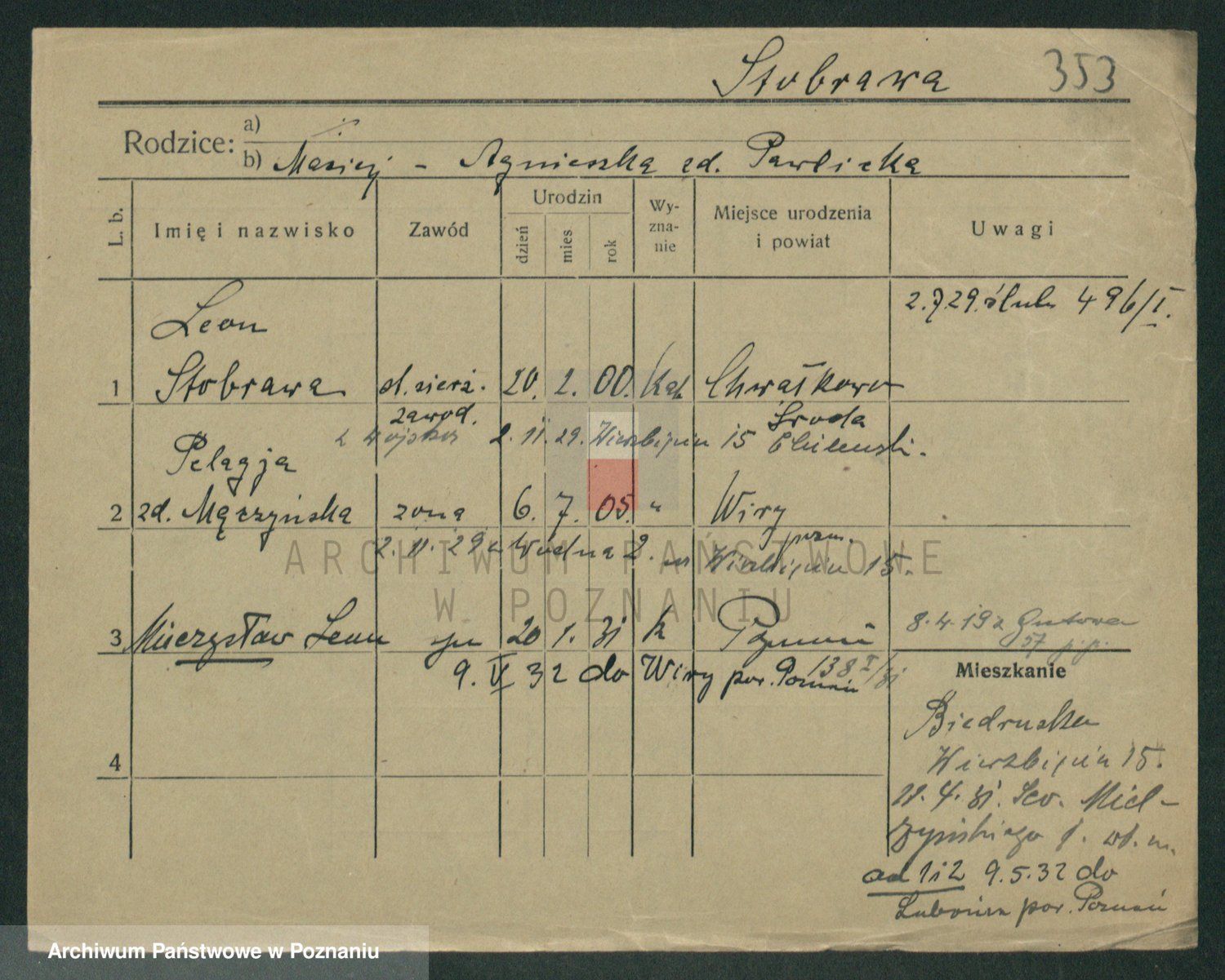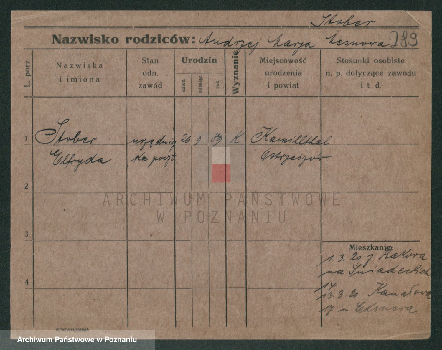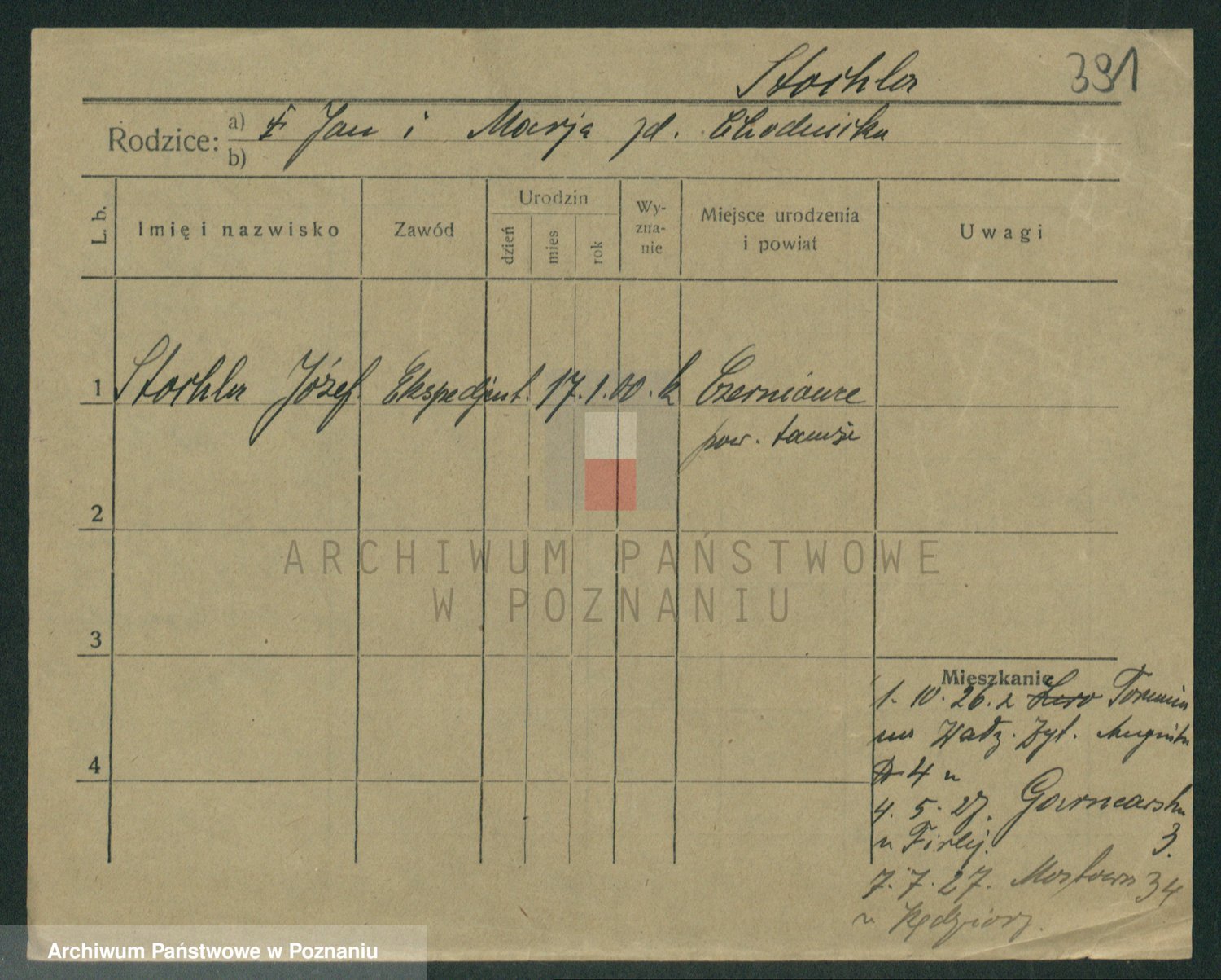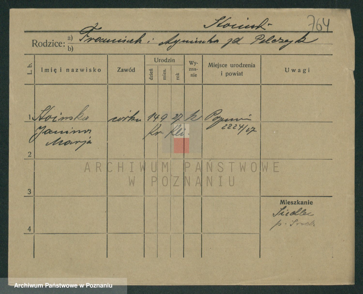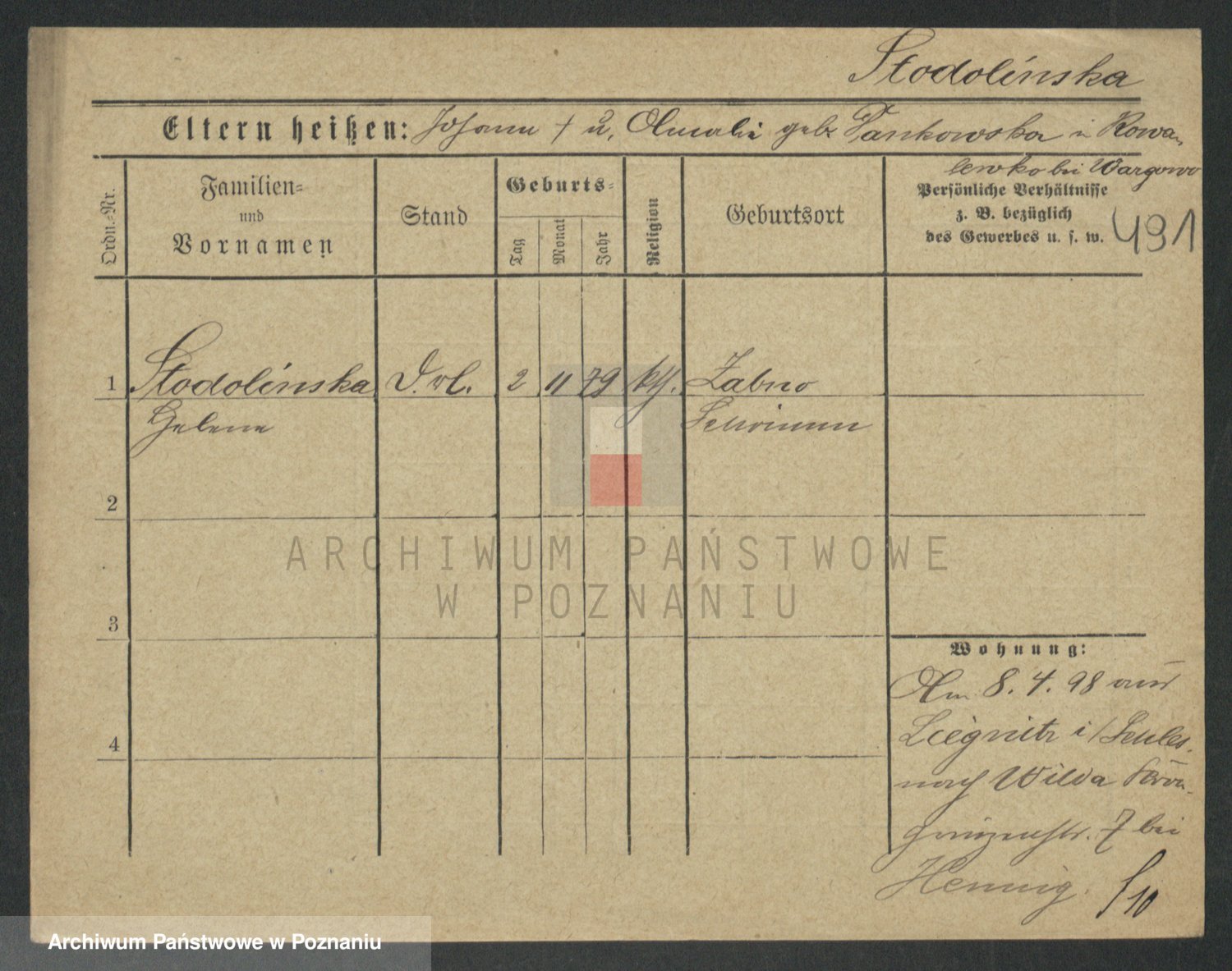 Podgląd karty osobowej dostępny jest po kliknięciu na nazwisko lub ikonkę karty. Można dokonywać powiększenia (ikony na górze) lub przechodzić między kolejnymi skanami (strzałki po bokach).
