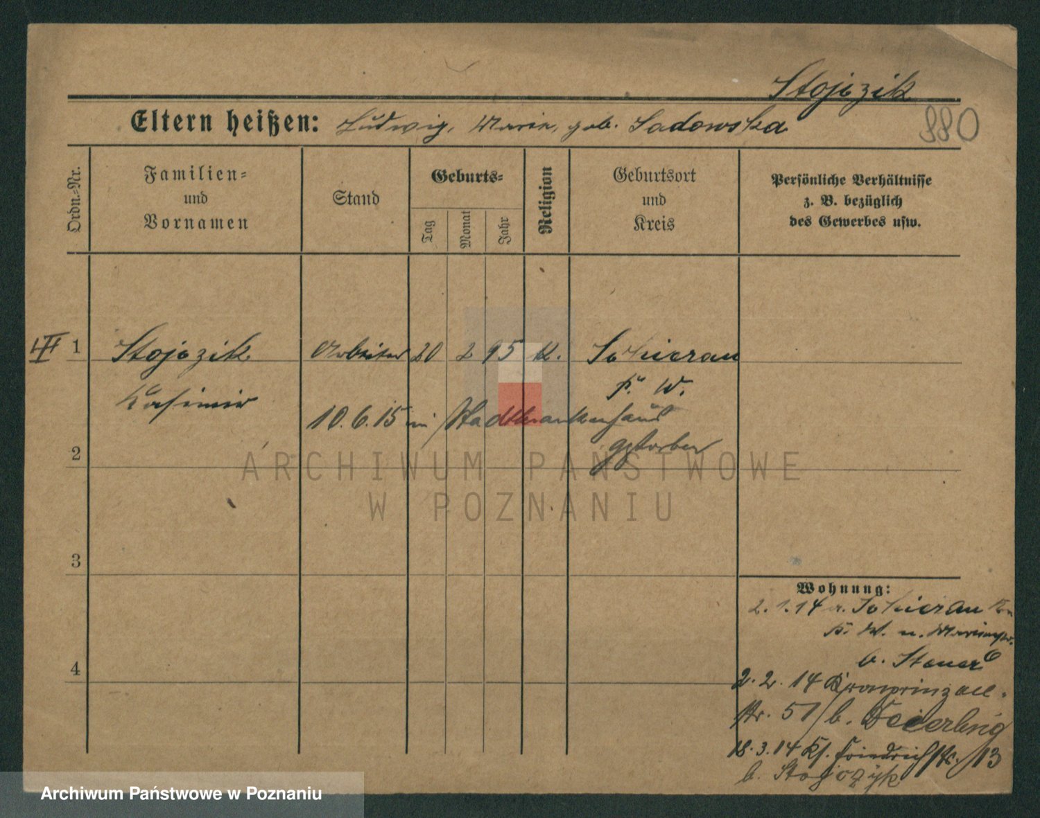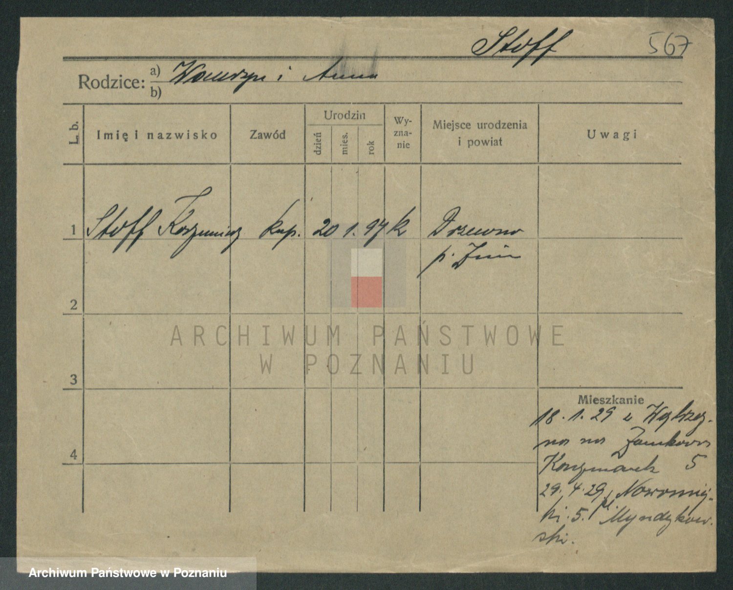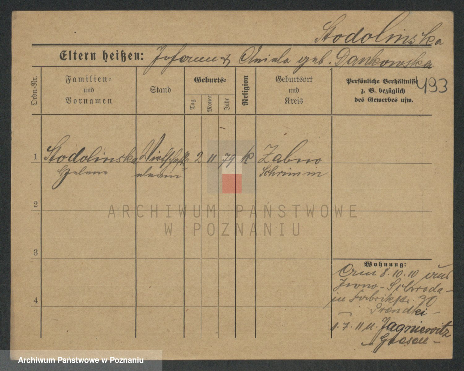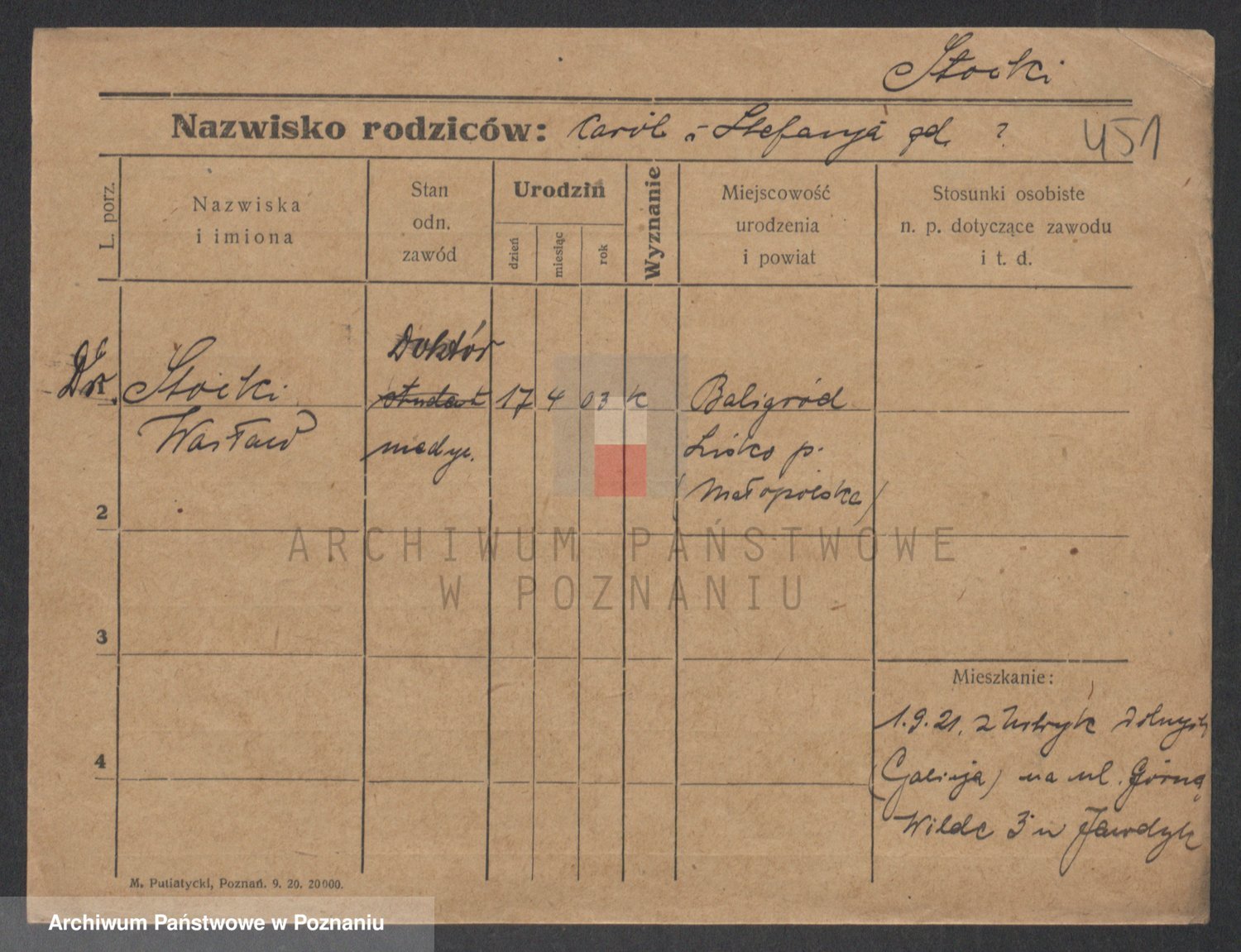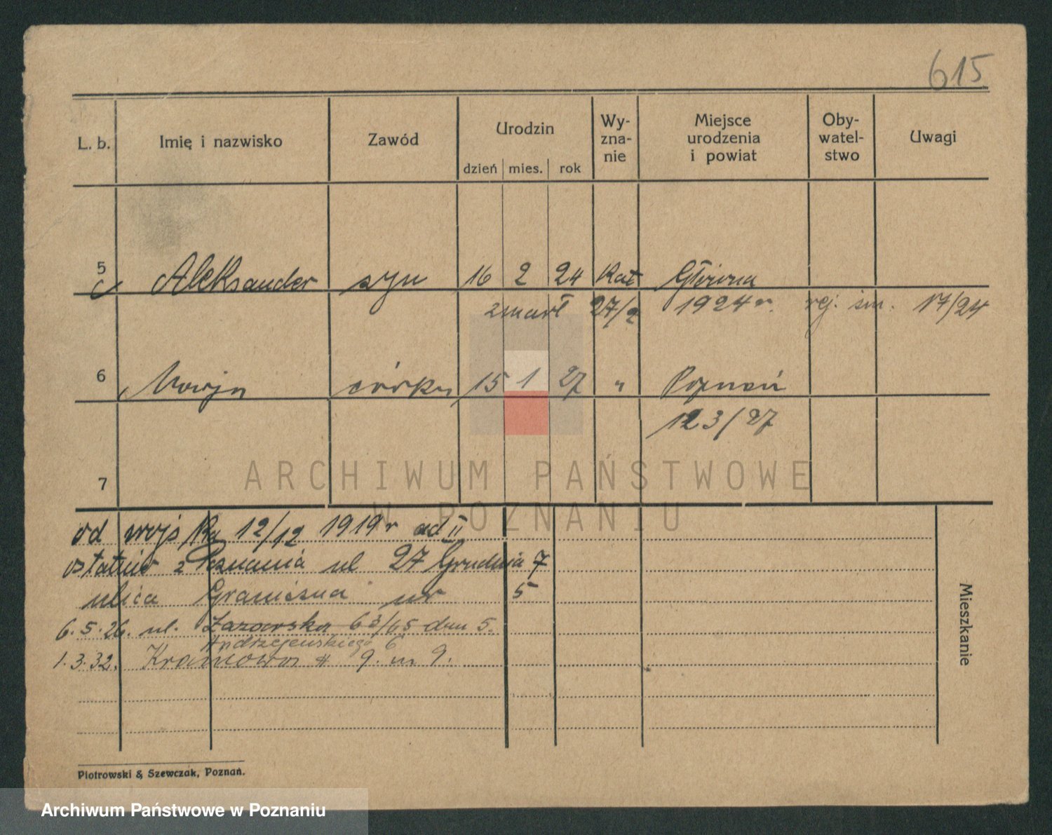 Podgląd karty osobowej dostępny jest po kliknięciu na nazwisko lub ikonkę karty. Można dokonywać powiększenia (ikony na górze) lub przechodzić między kolejnymi skanami (strzałki po bokach).