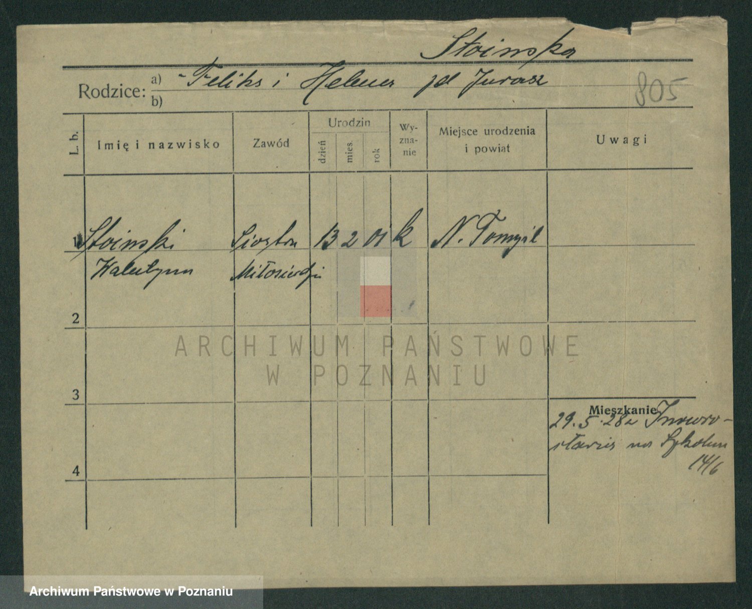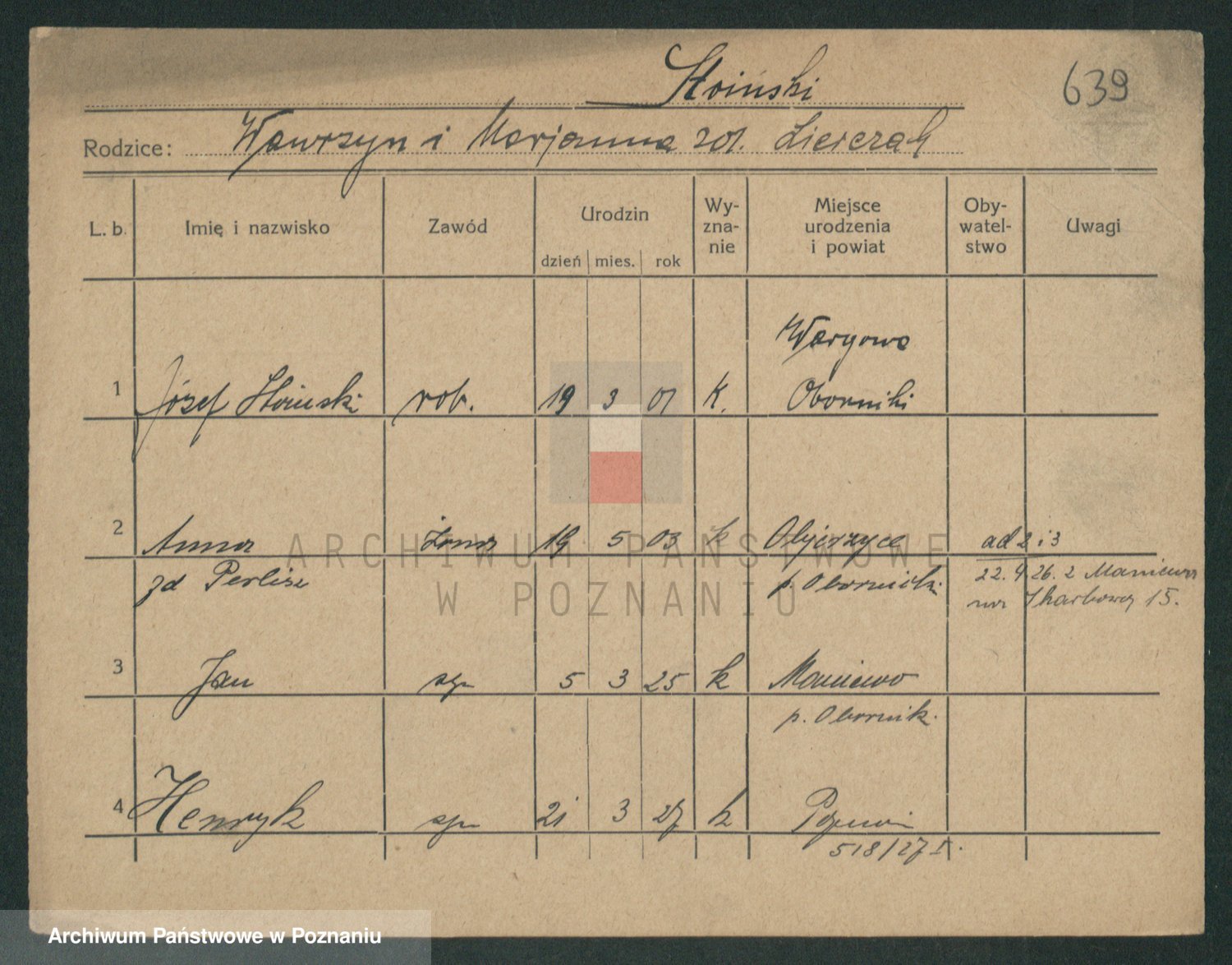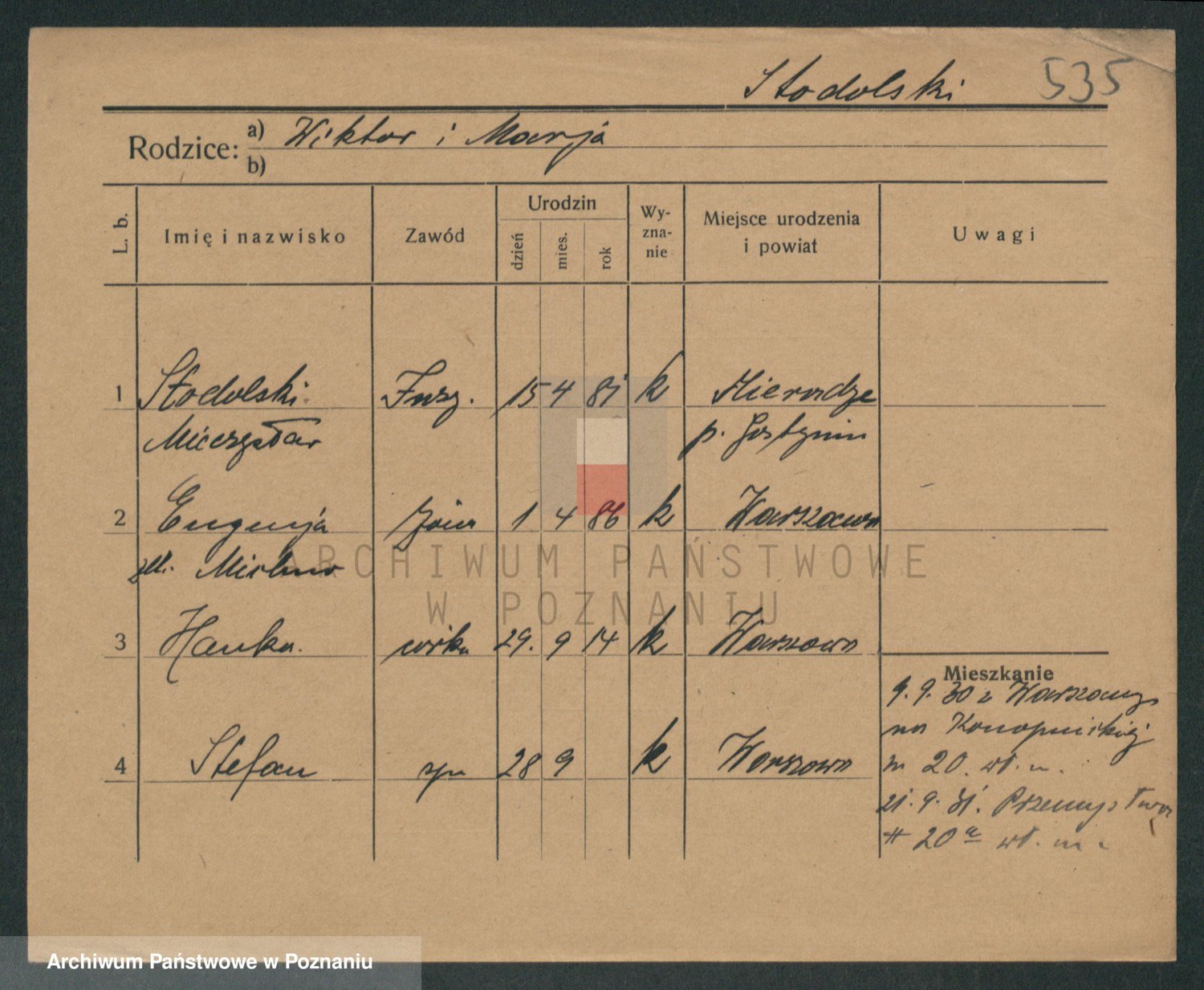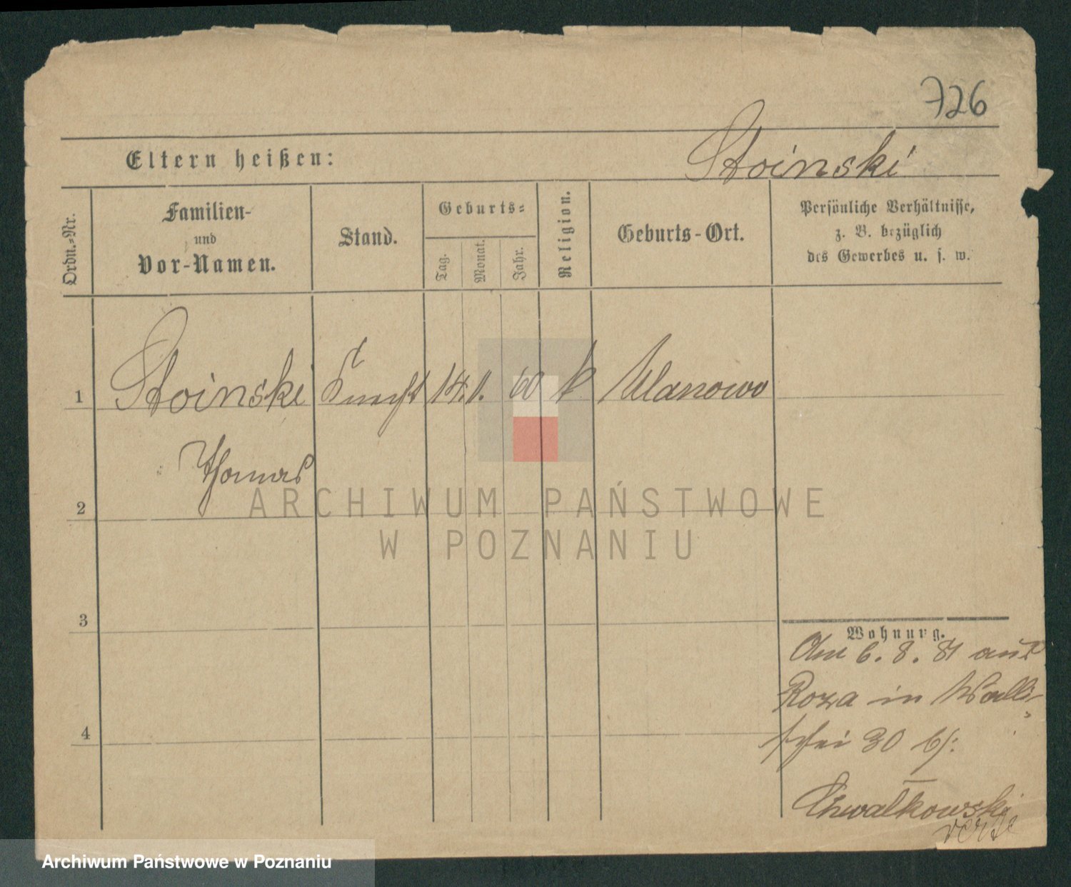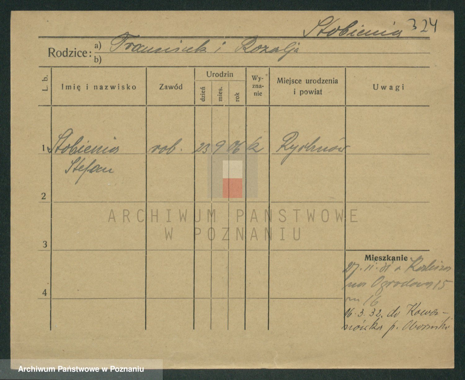 Podgląd karty osobowej dostępny jest po kliknięciu na nazwisko lub ikonkę karty. Można dokonywać powiększenia (ikony na górze) lub przechodzić między kolejnymi skanami (strzałki po bokach).