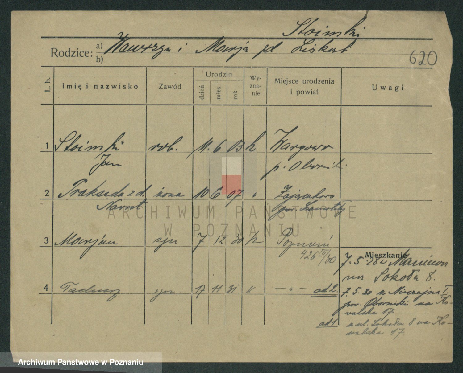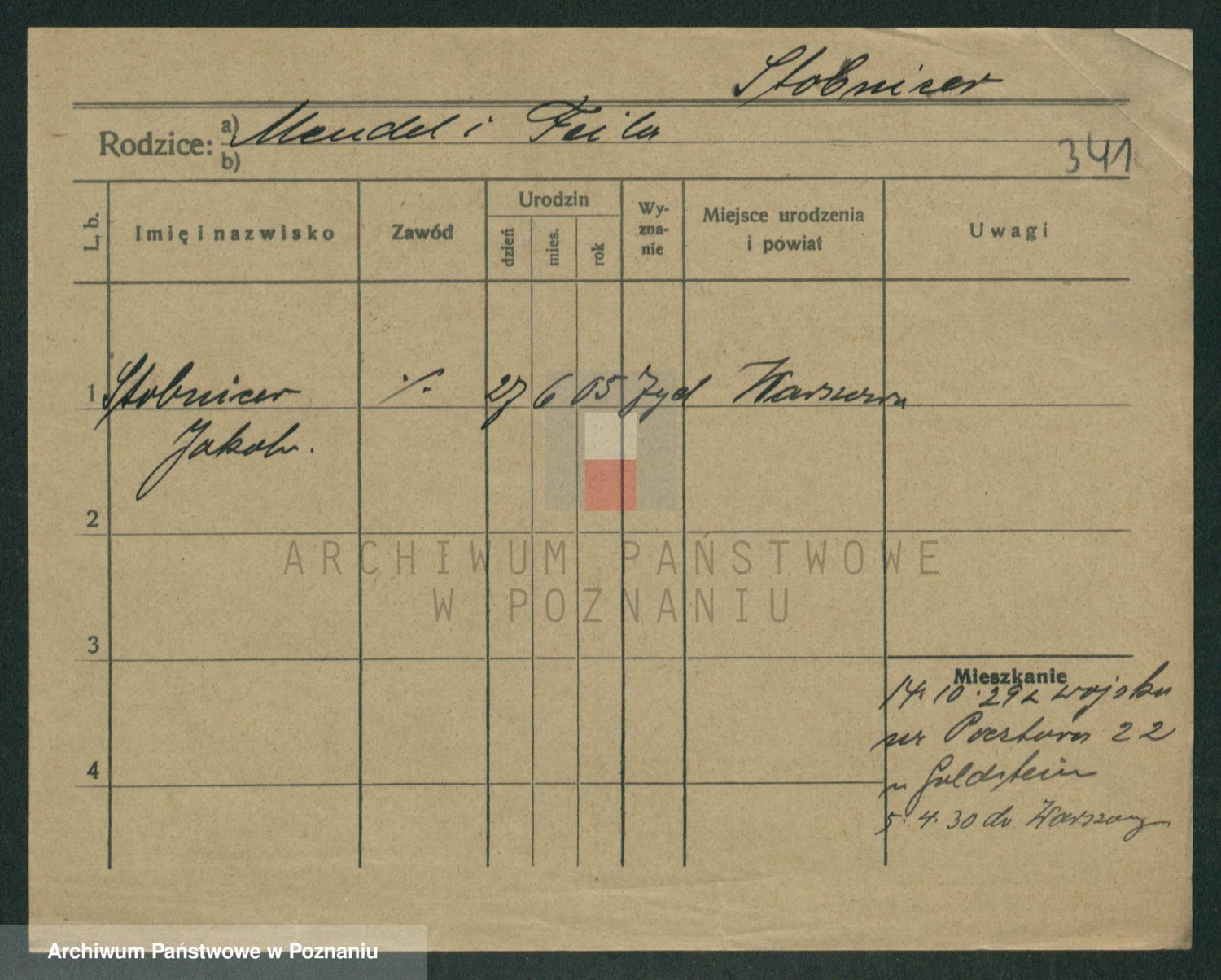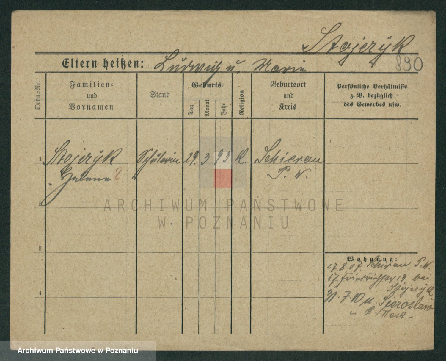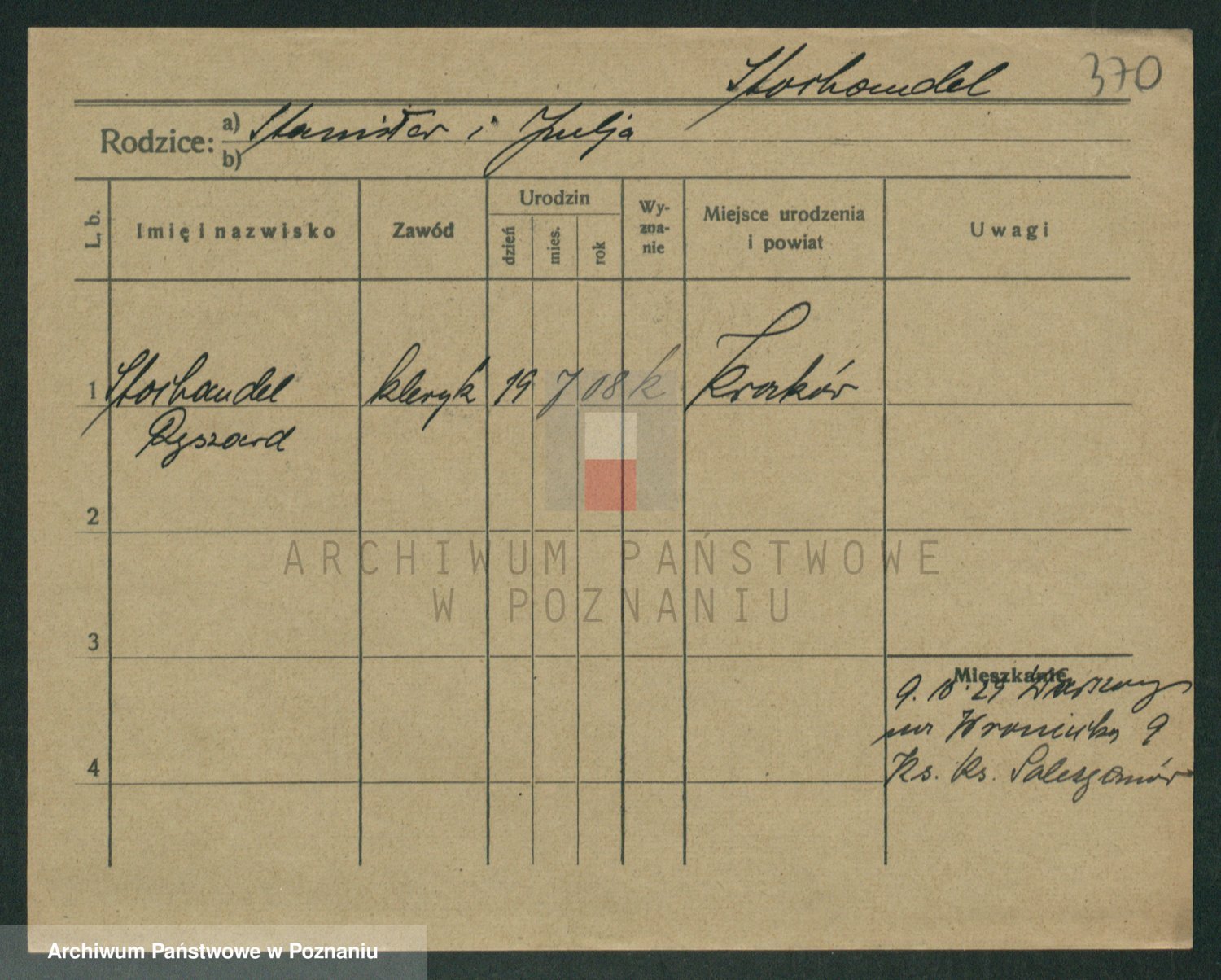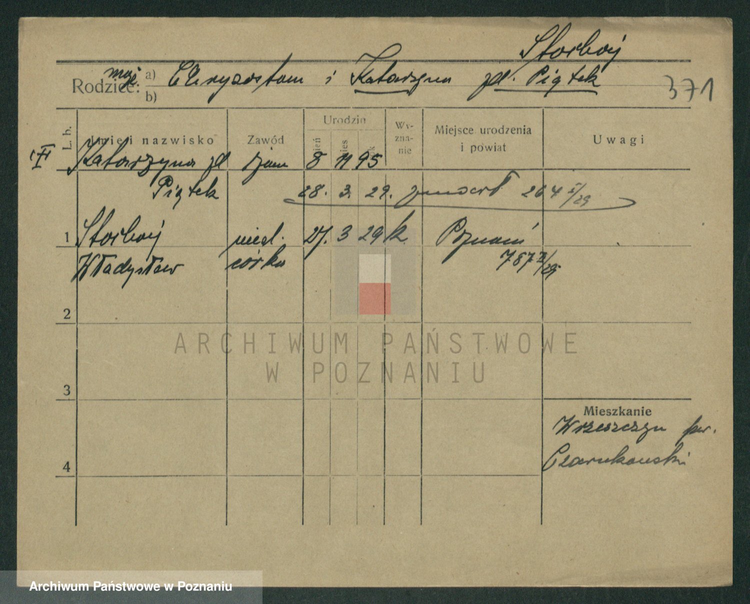 Podgląd karty osobowej dostępny jest po kliknięciu na nazwisko lub ikonkę karty. Można dokonywać powiększenia (ikony na górze) lub przechodzić między kolejnymi skanami (strzałki po bokach).
