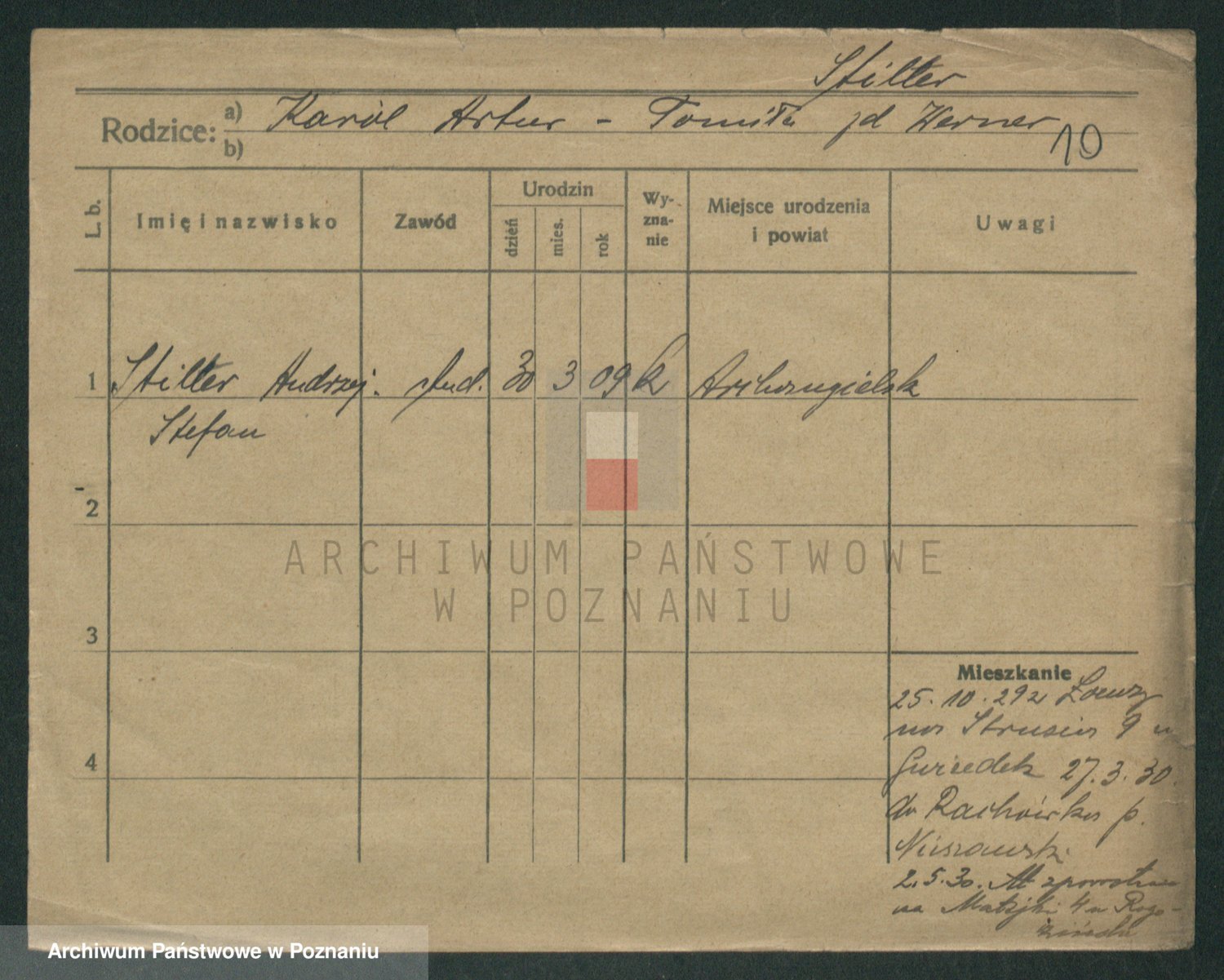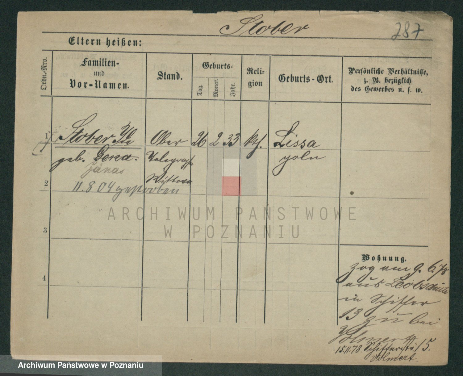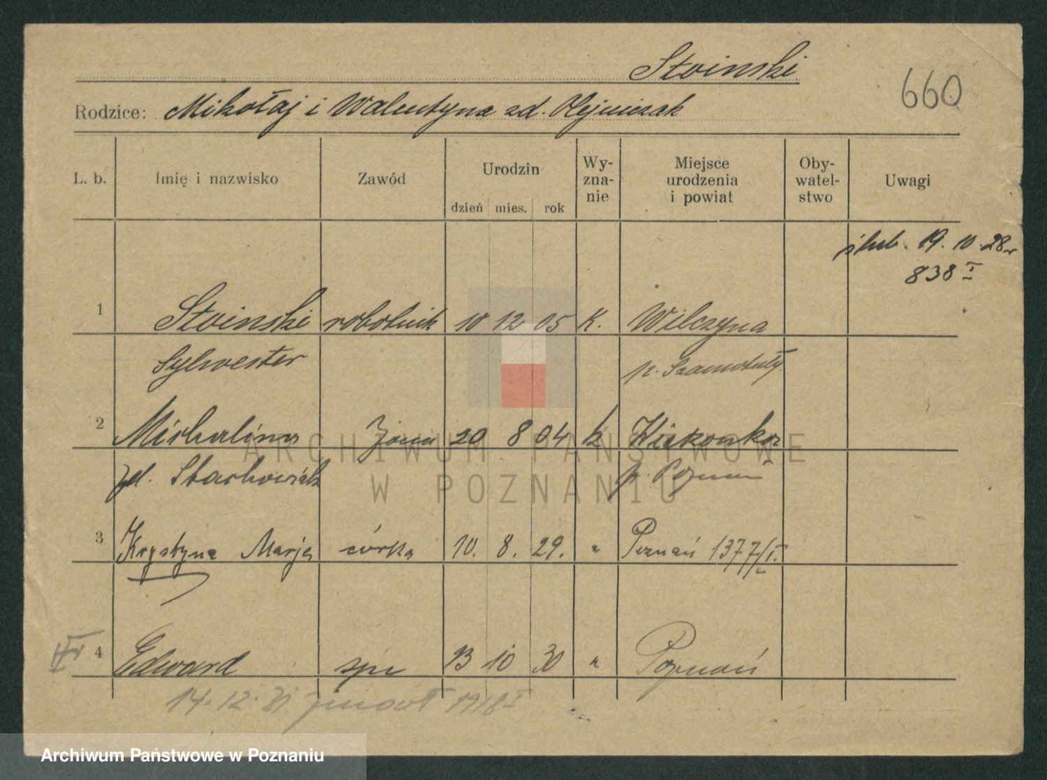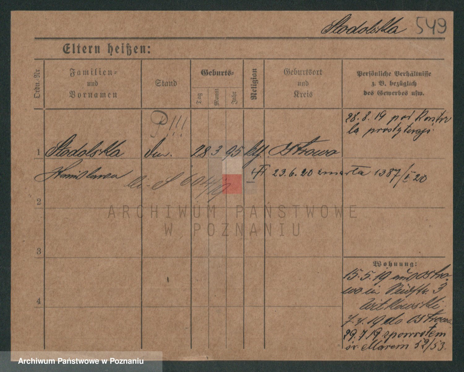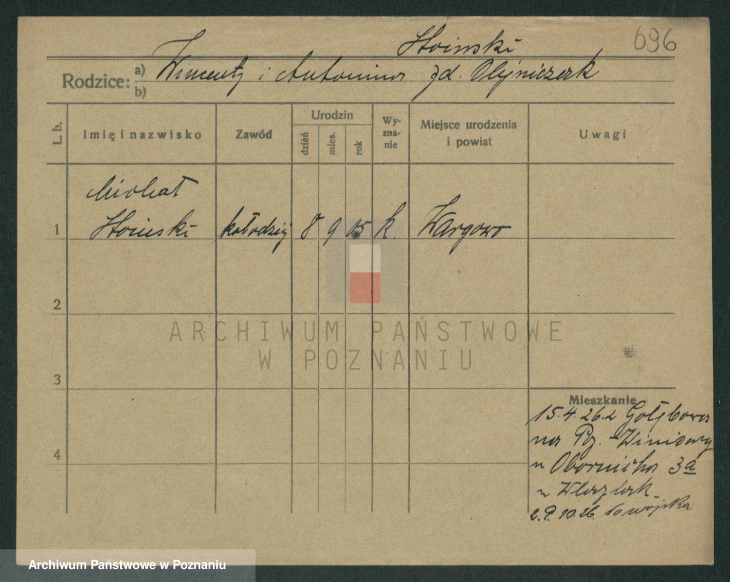 Podgląd karty osobowej dostępny jest po kliknięciu na nazwisko lub ikonkę karty. Można dokonywać powiększenia (ikony na górze) lub przechodzić między kolejnymi skanami (strzałki po bokach).