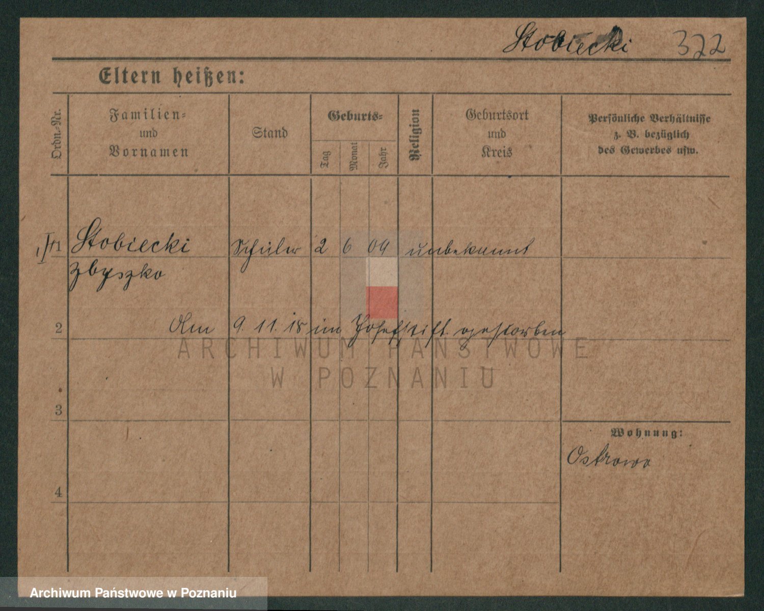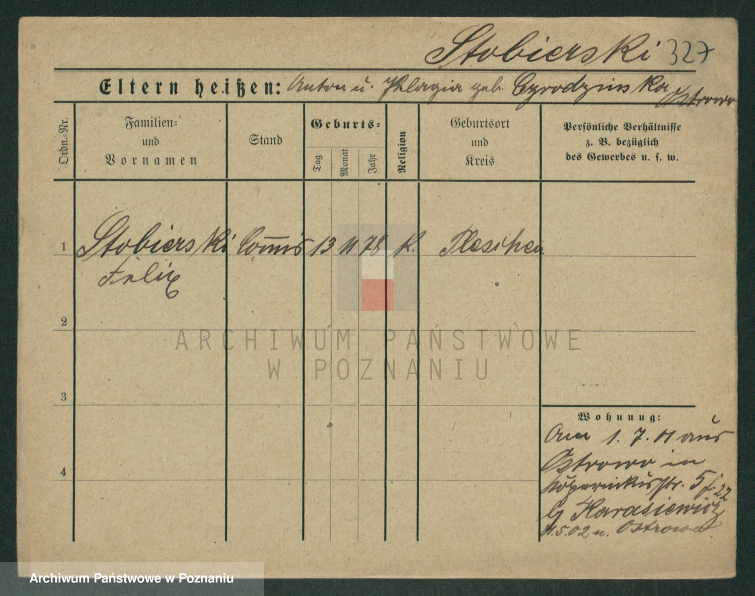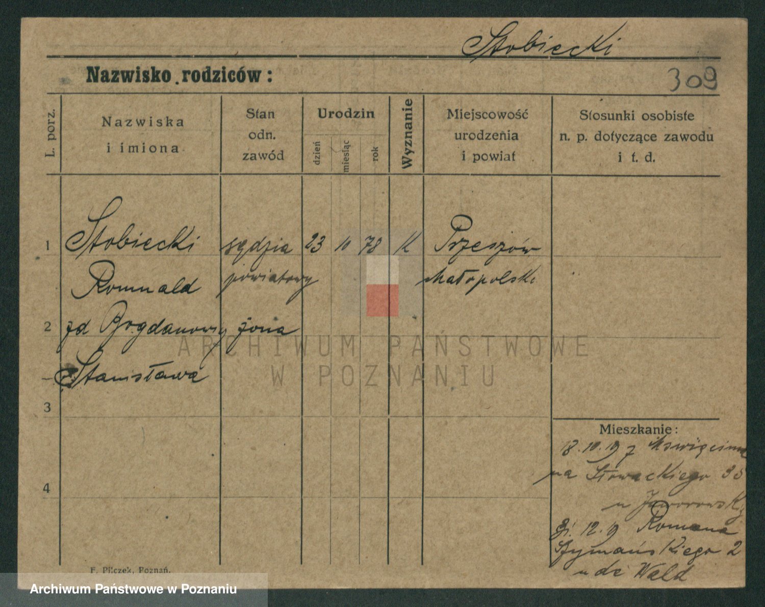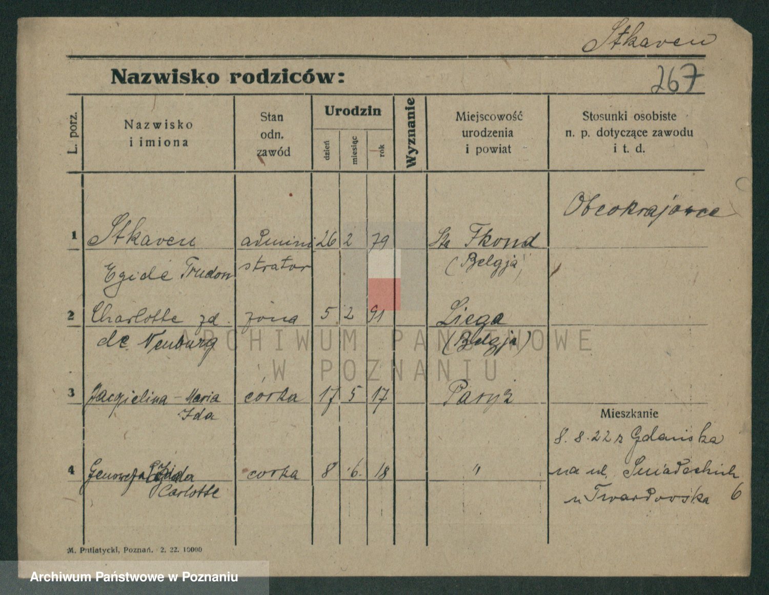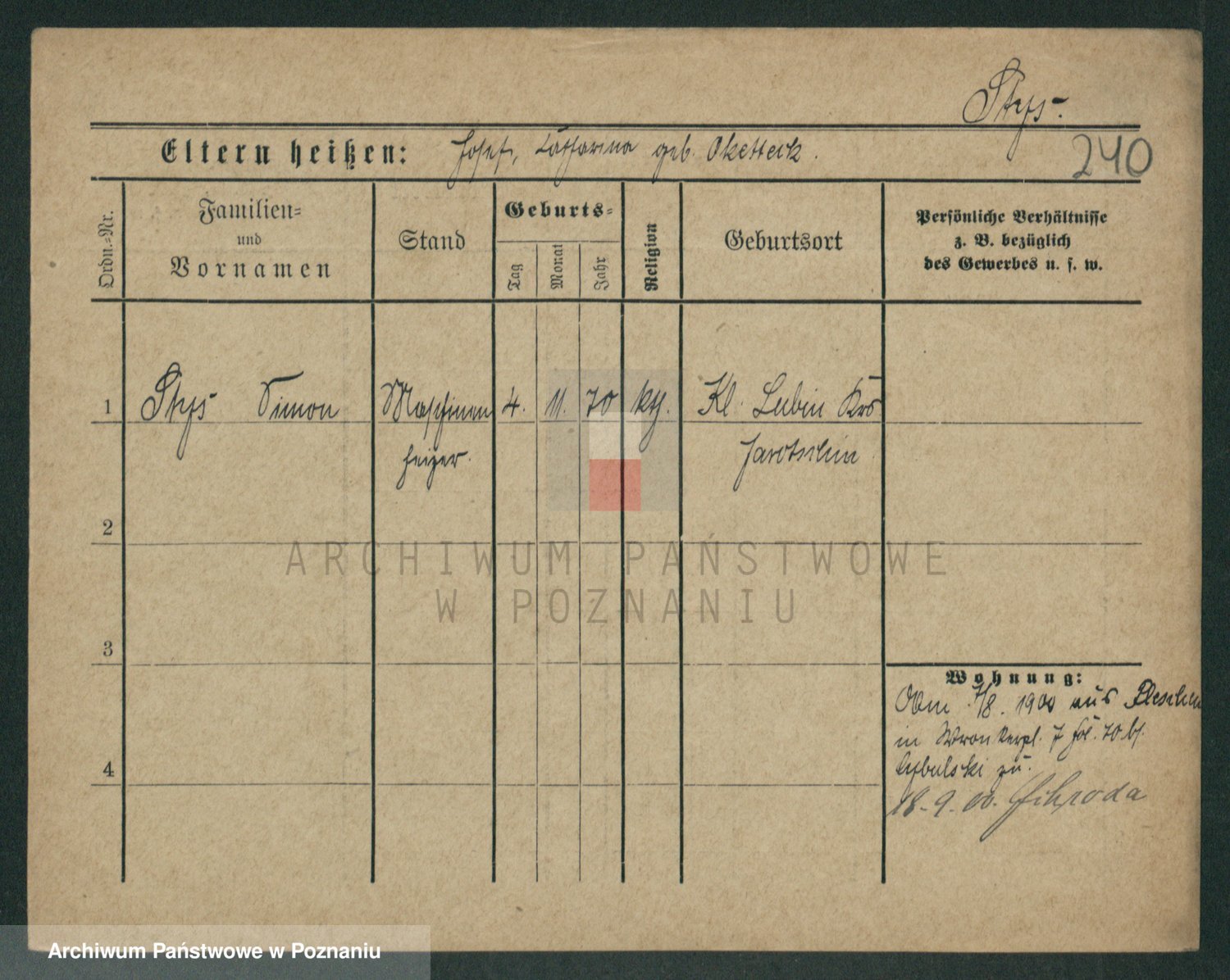 Podgląd karty osobowej dostępny jest po kliknięciu na nazwisko lub ikonkę karty. Można dokonywać powiększenia (ikony na górze) lub przechodzić między kolejnymi skanami (strzałki po bokach).
