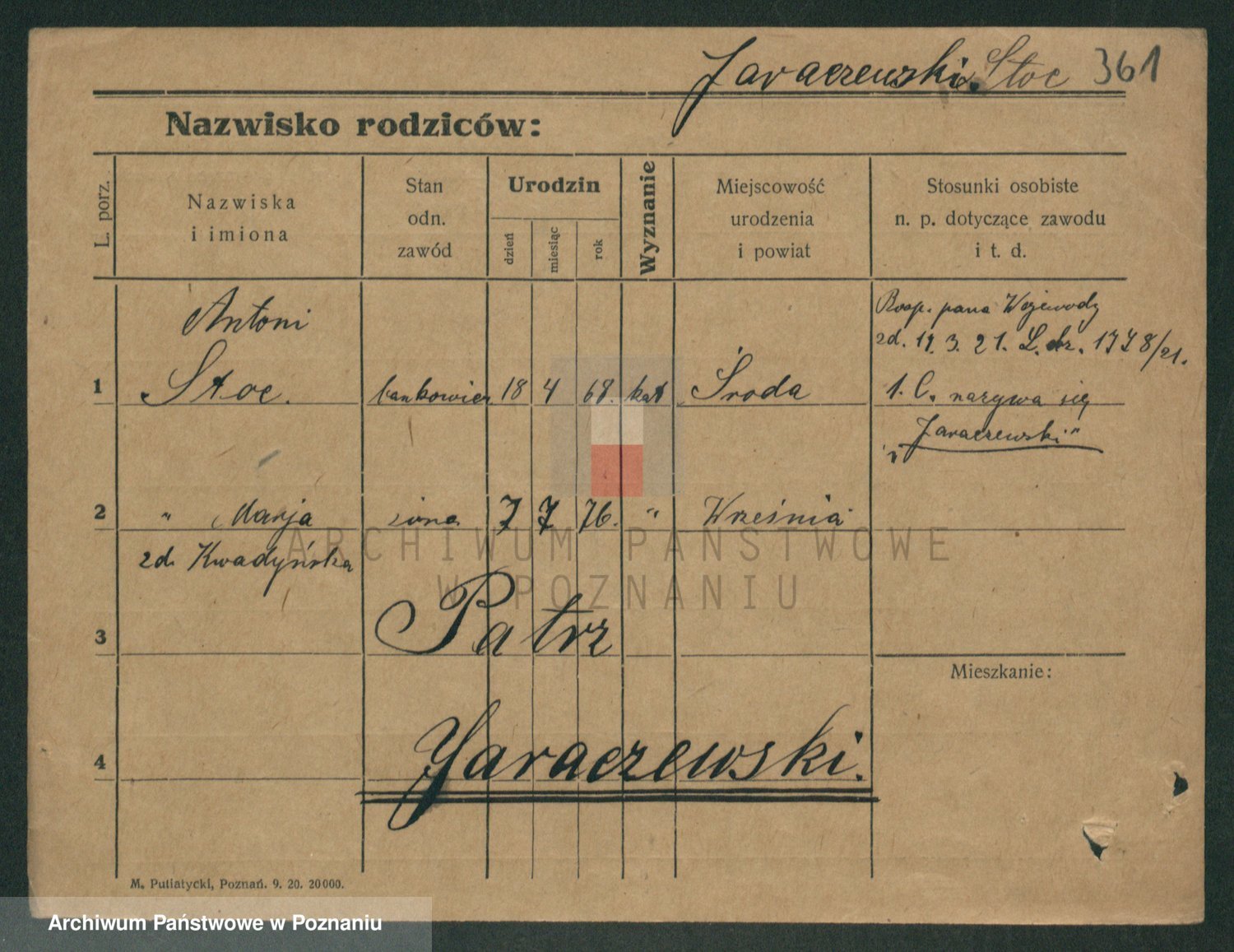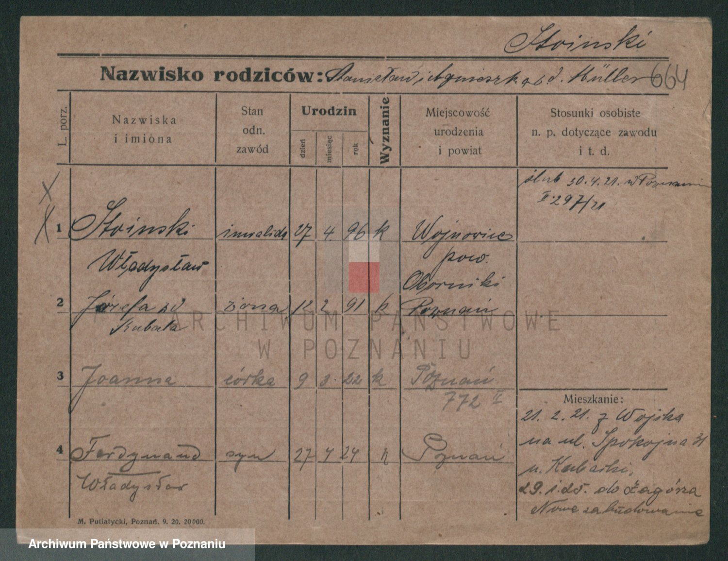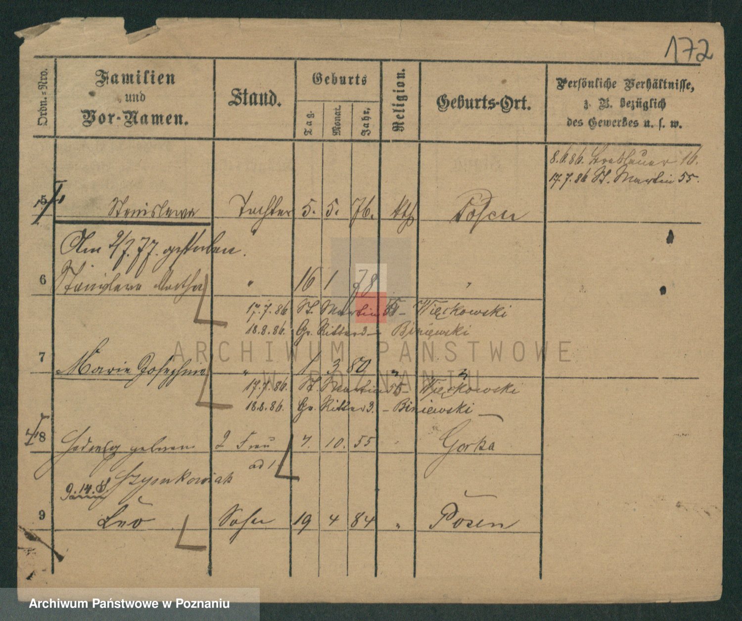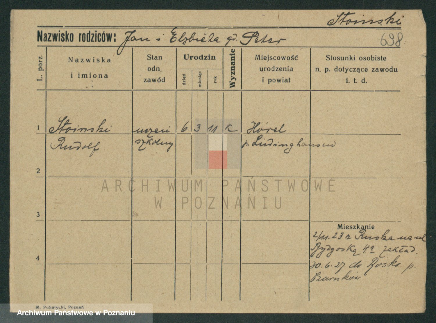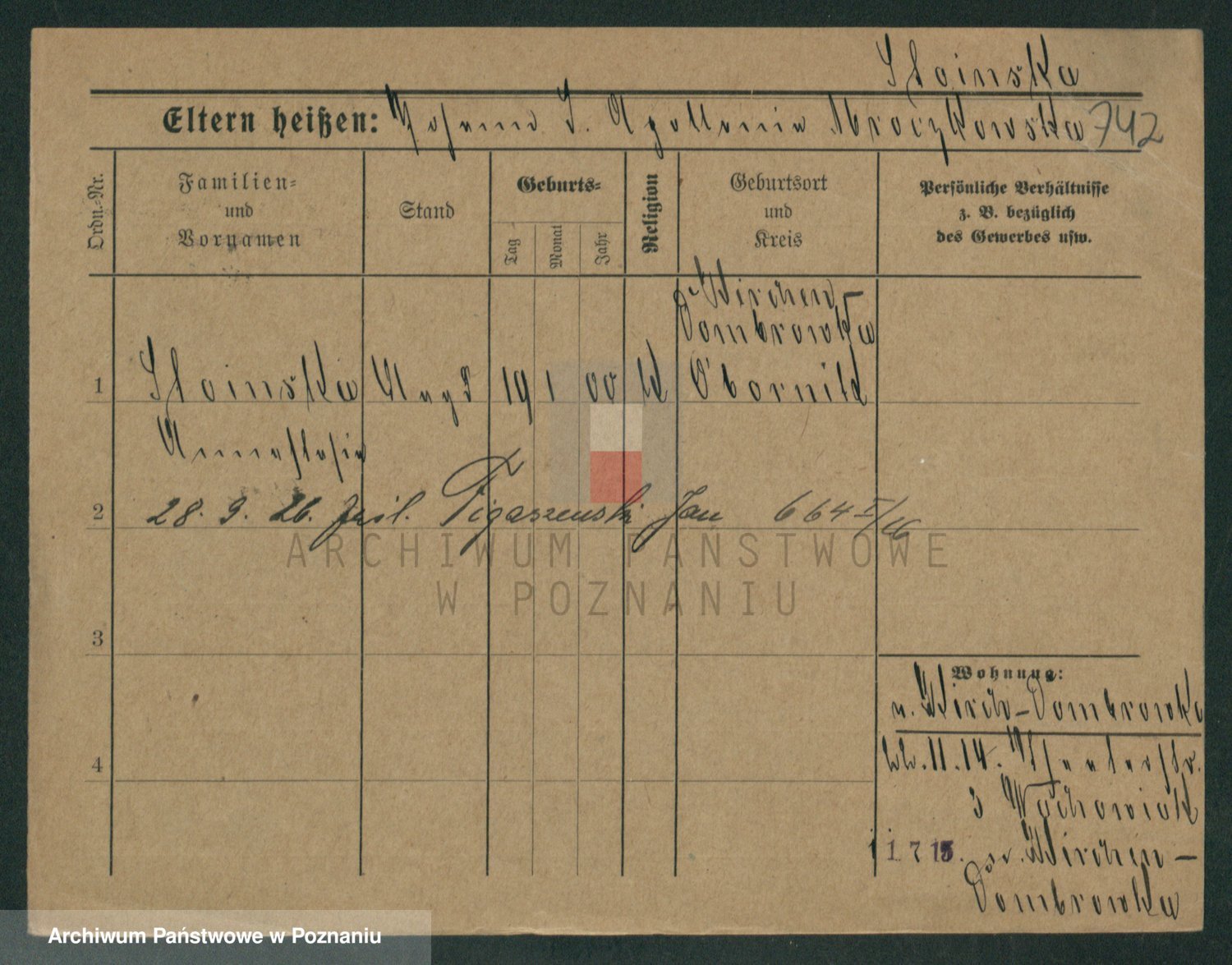 Podgląd karty osobowej dostępny jest po kliknięciu na nazwisko lub ikonkę karty. Można dokonywać powiększenia (ikony na górze) lub przechodzić między kolejnymi skanami (strzałki po bokach).