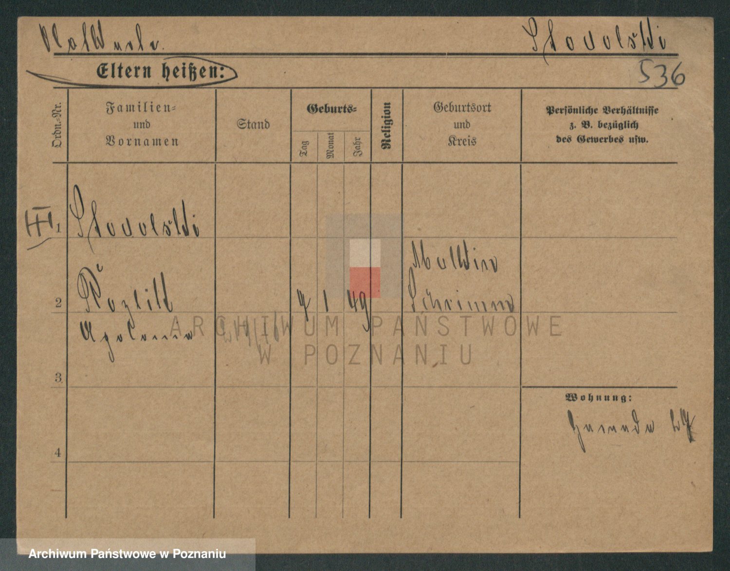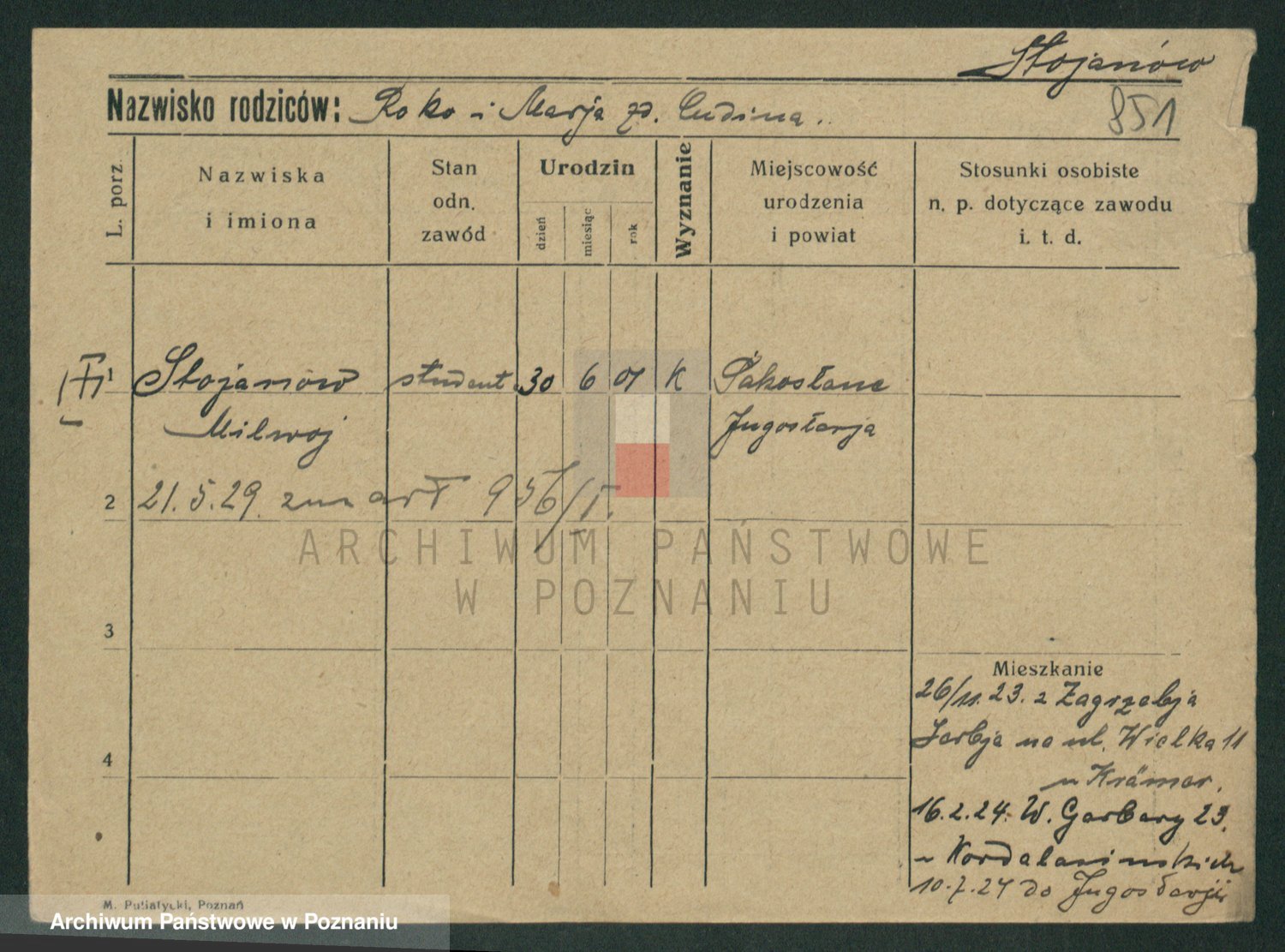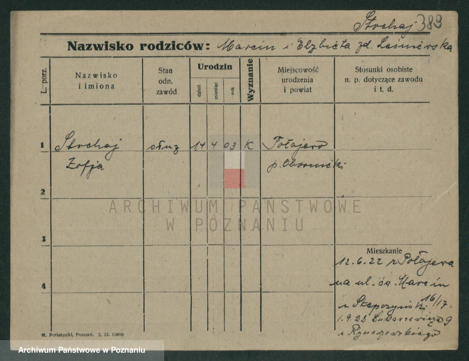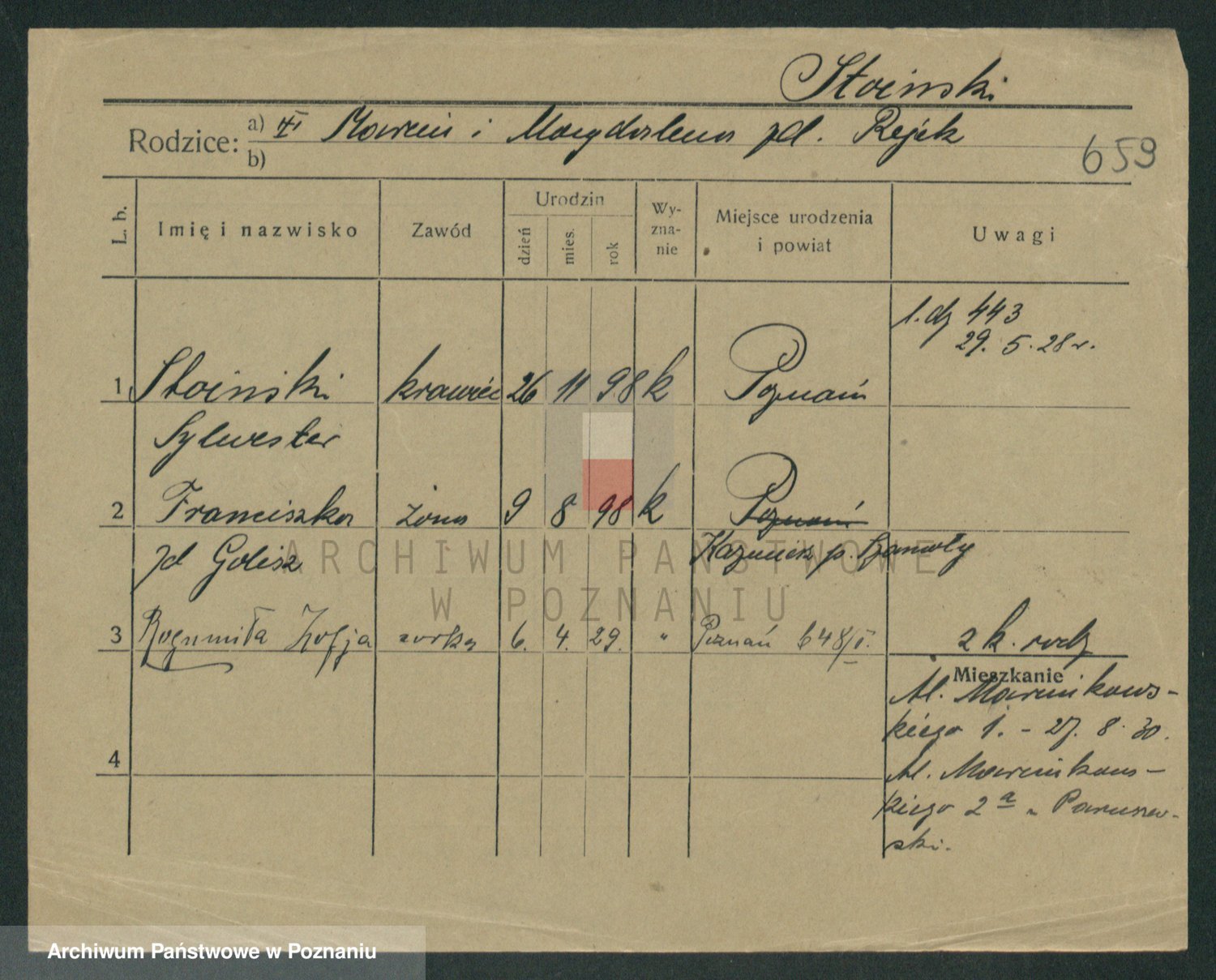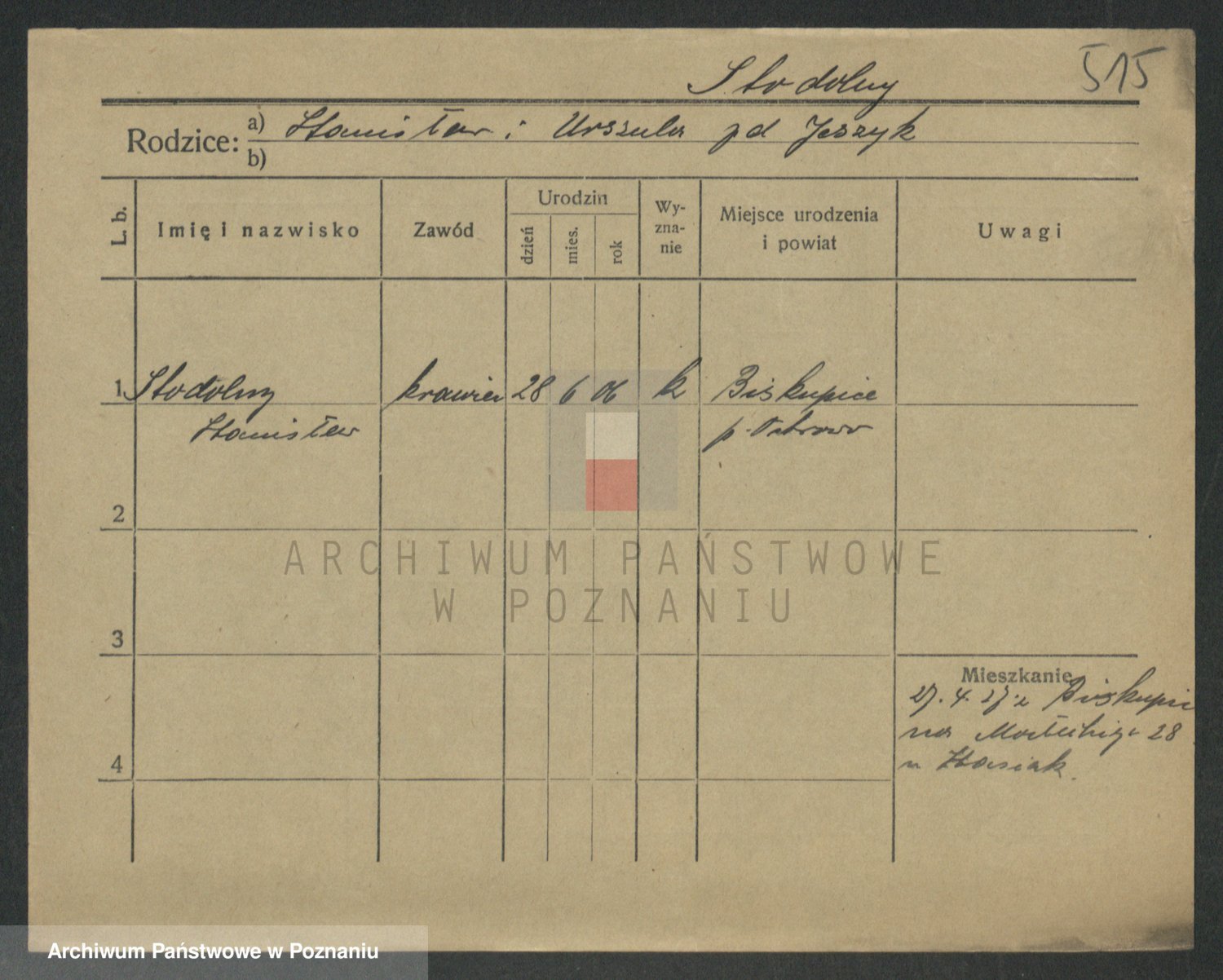 Podgląd karty osobowej dostępny jest po kliknięciu na nazwisko lub ikonkę karty. Można dokonywać powiększenia (ikony na górze) lub przechodzić między kolejnymi skanami (strzałki po bokach).