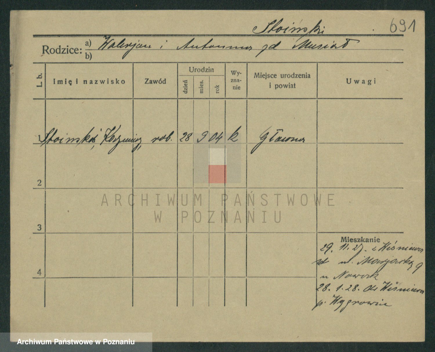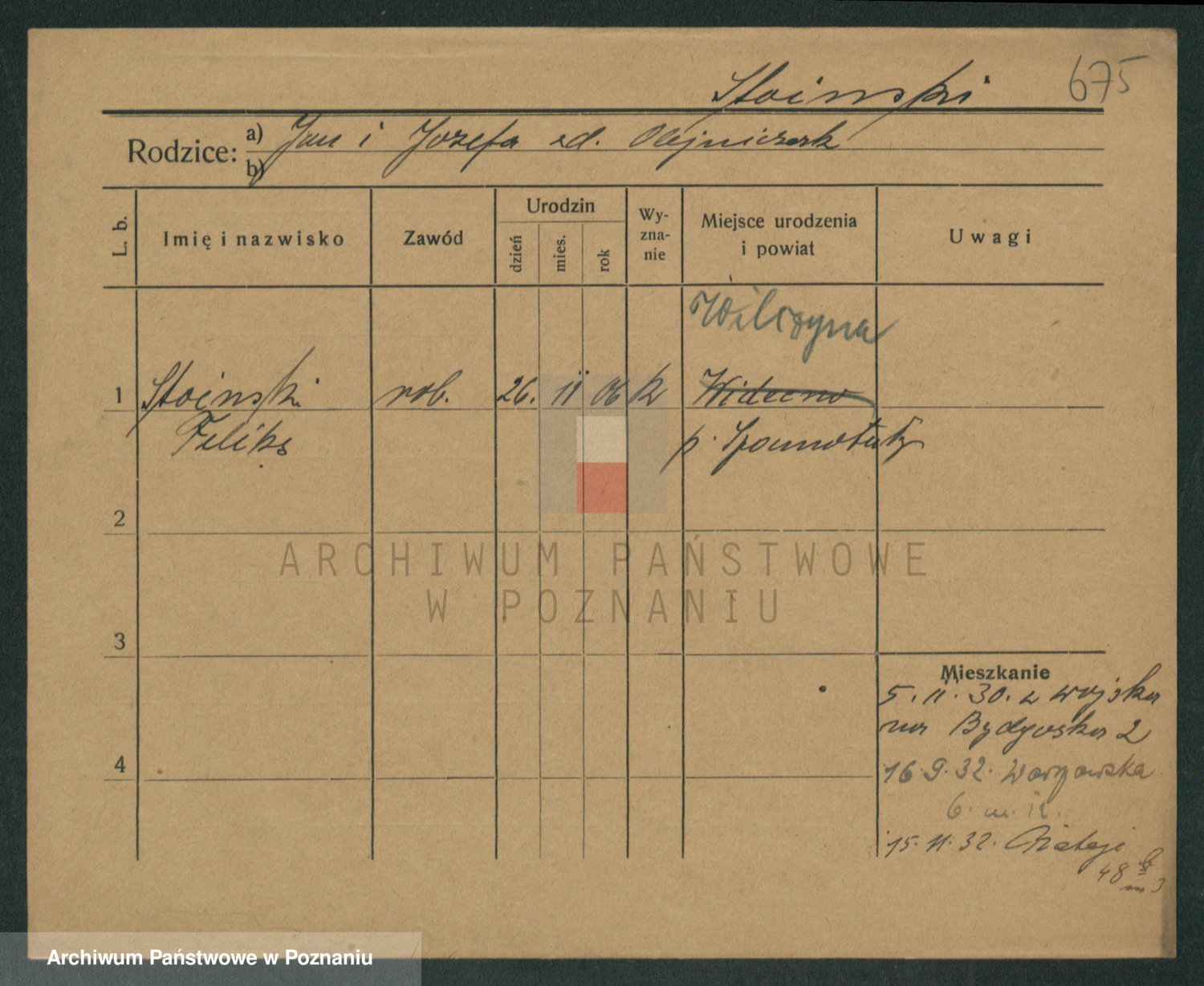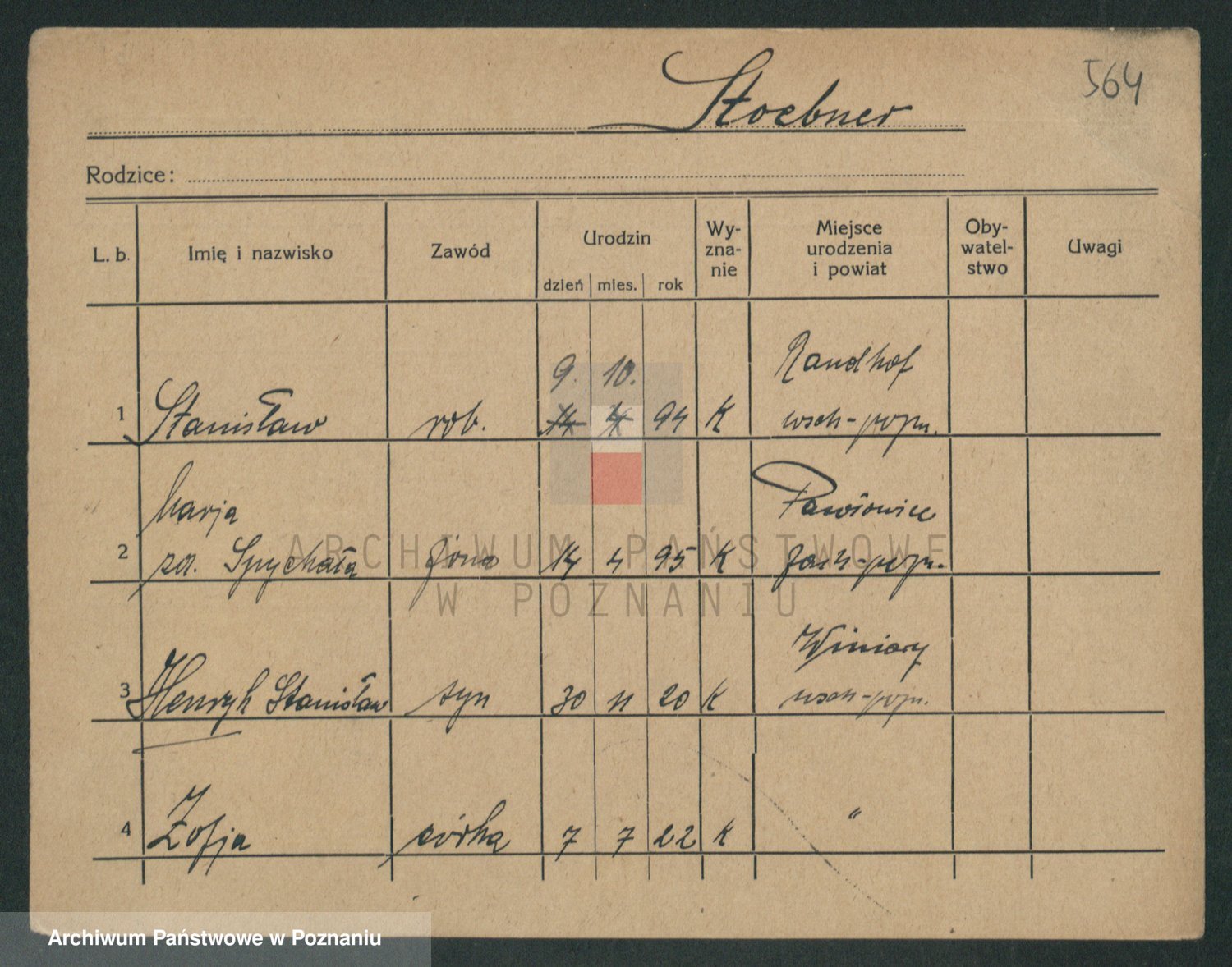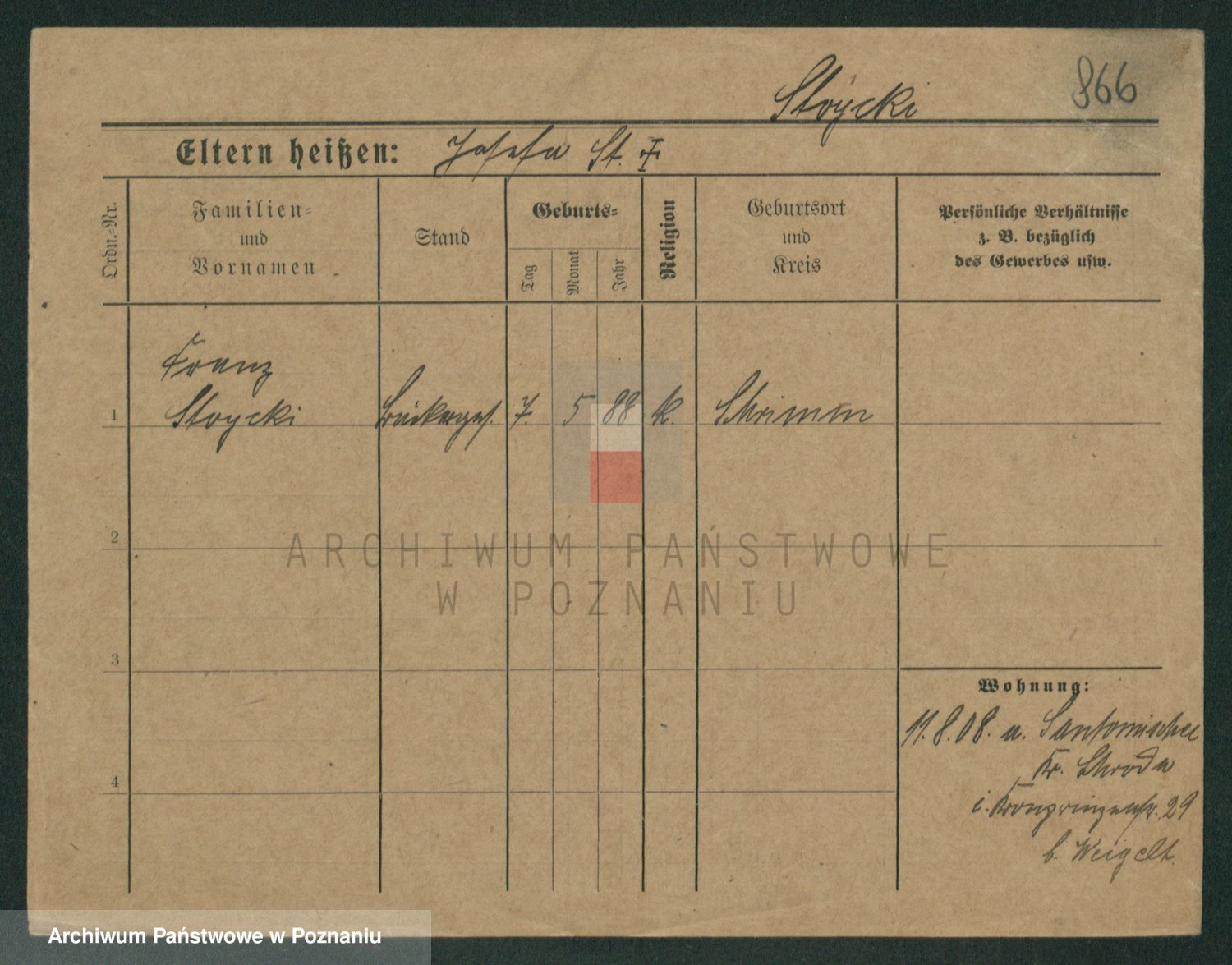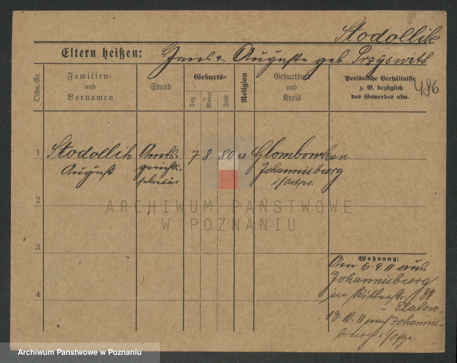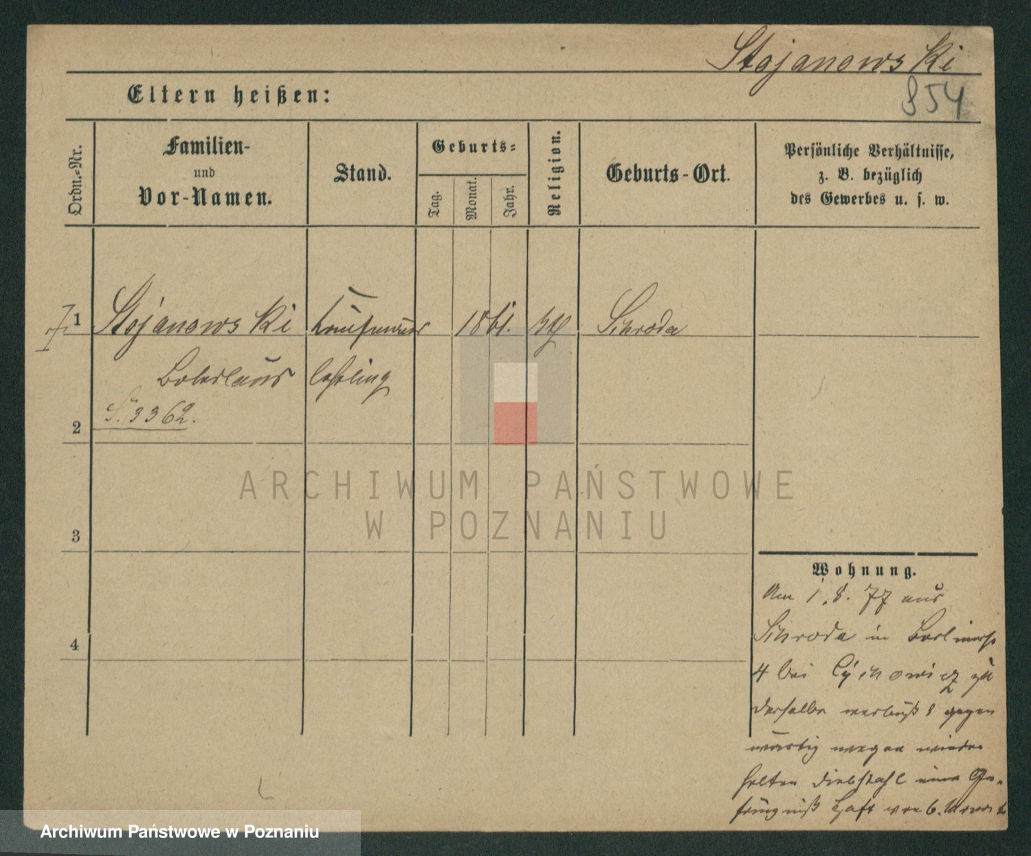Podgląd karty osobowej dostępny jest po kliknięciu na nazwisko lub ikonkę karty. Można dokonywać powiększenia (ikony na górze) lub przechodzić między kolejnymi skanami (strzałki po bokach).
