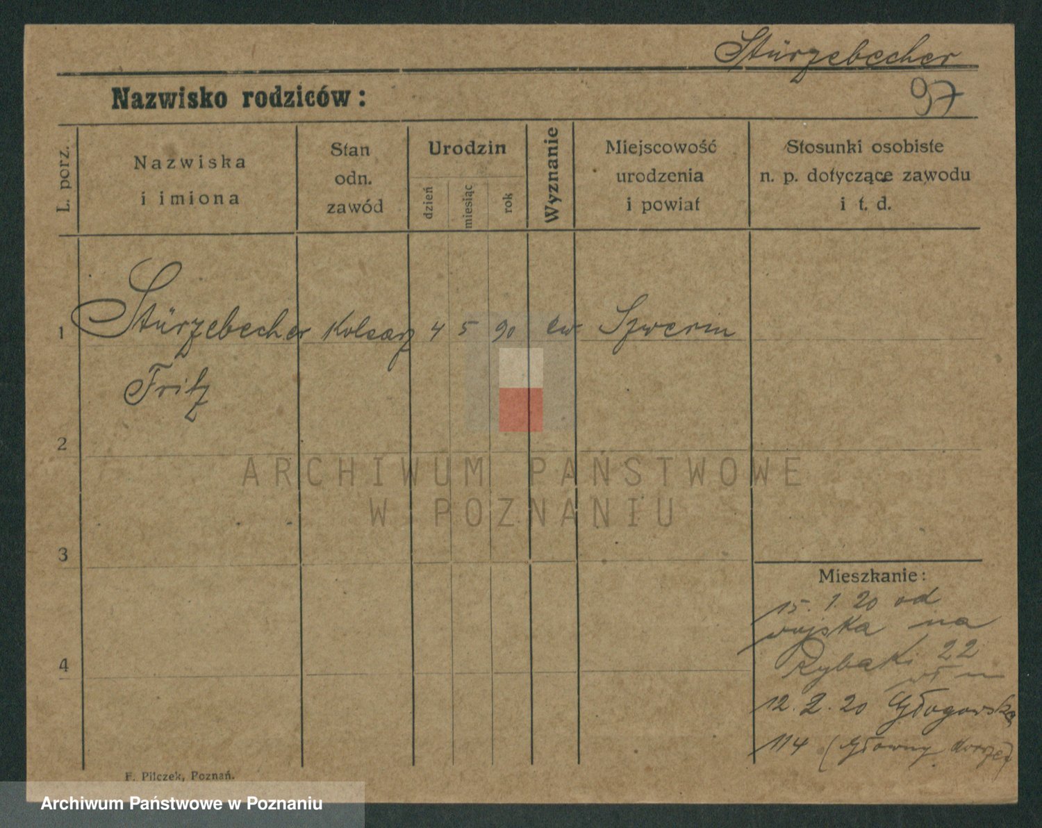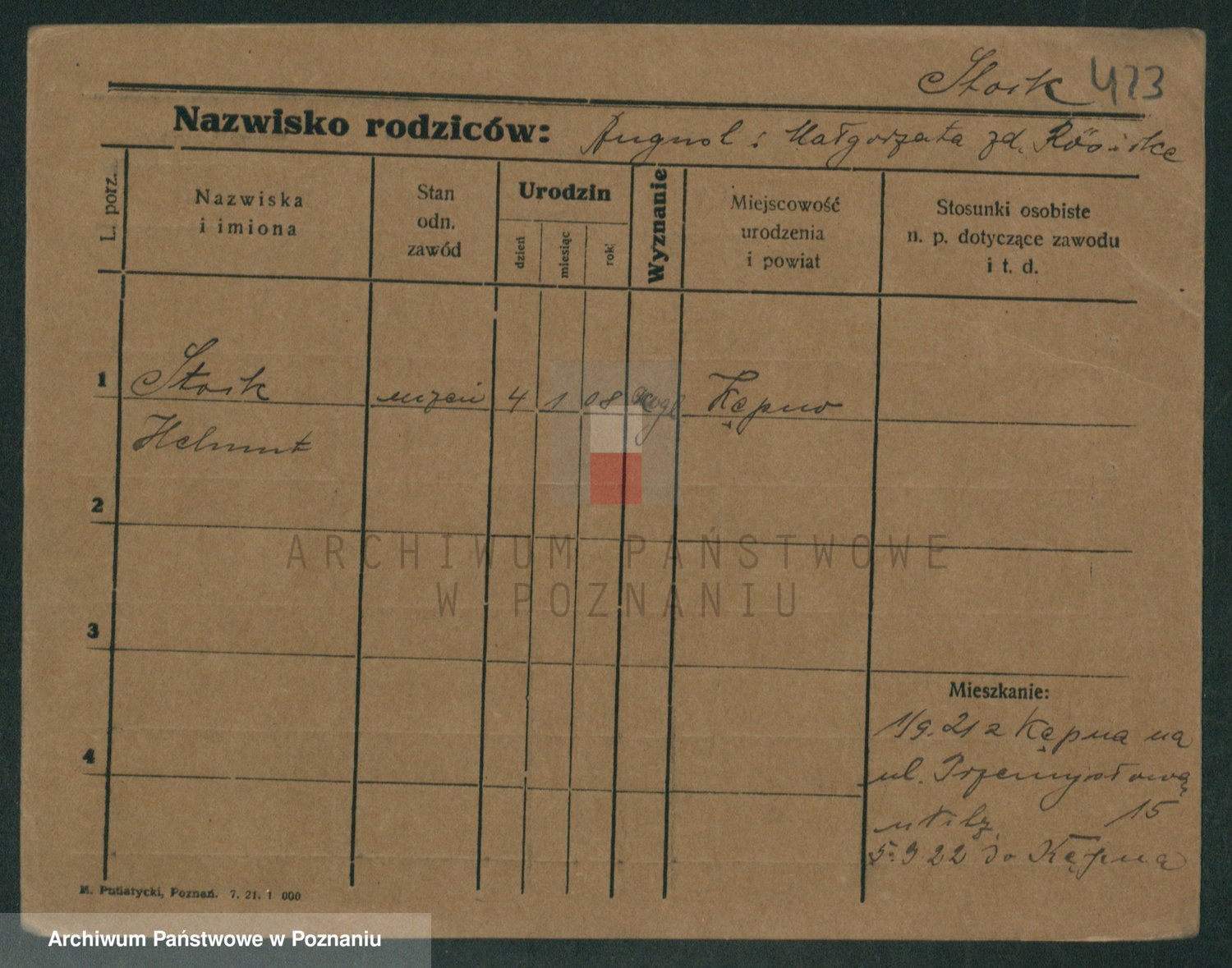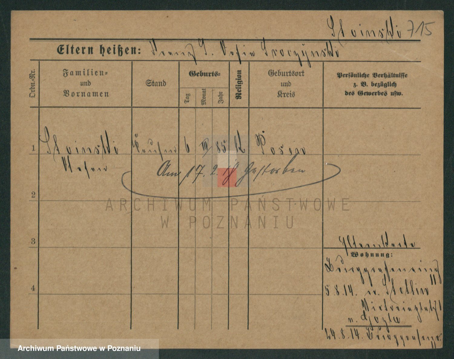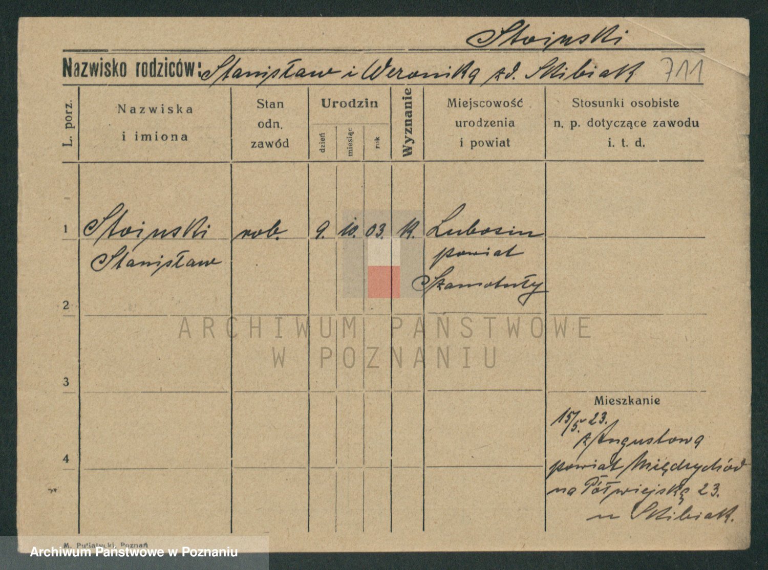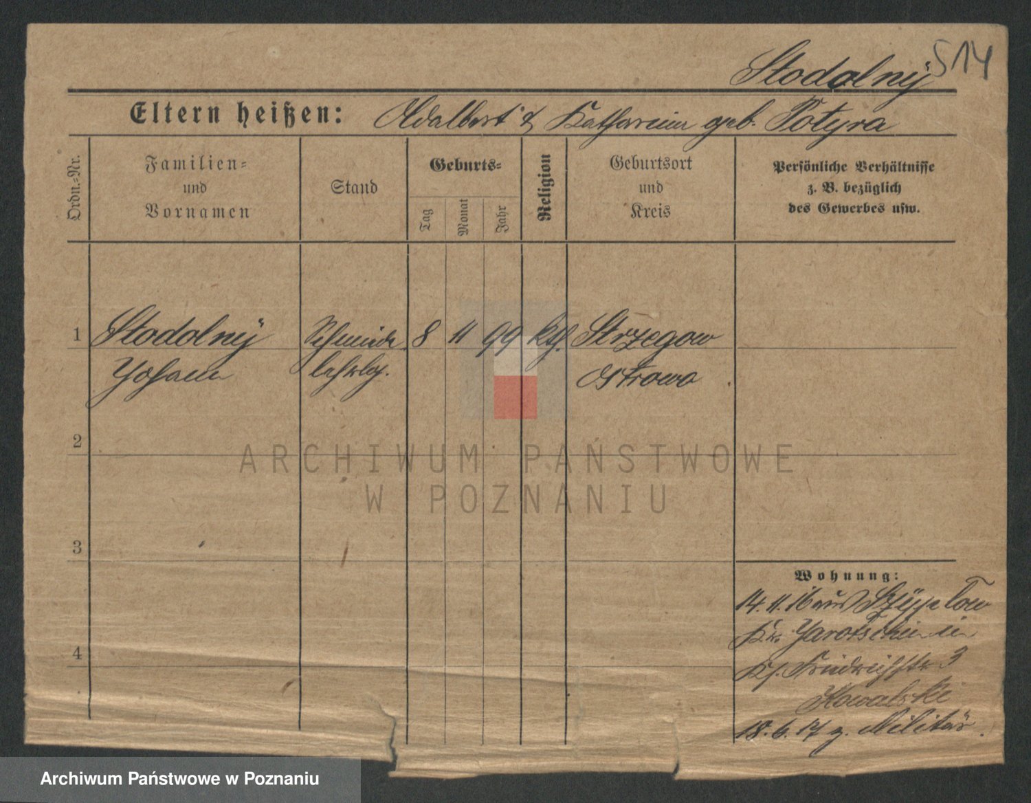 Podgląd karty osobowej dostępny jest po kliknięciu na nazwisko lub ikonkę karty. Można dokonywać powiększenia (ikony na górze) lub przechodzić między kolejnymi skanami (strzałki po bokach).