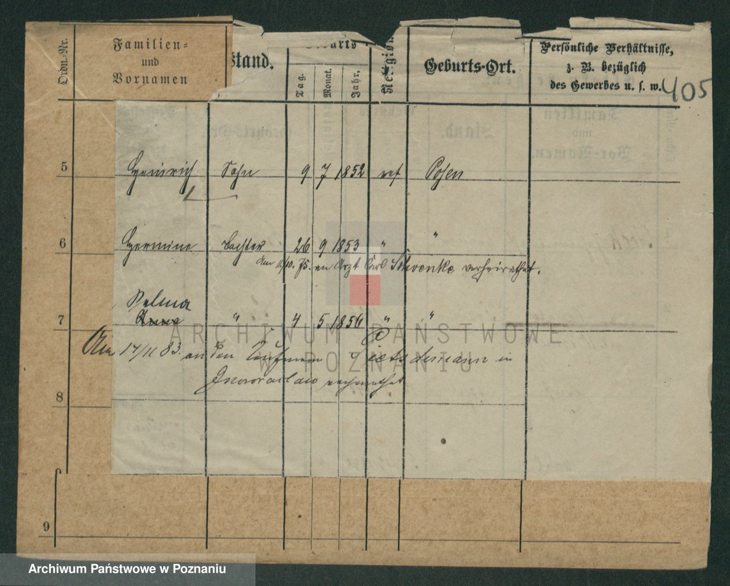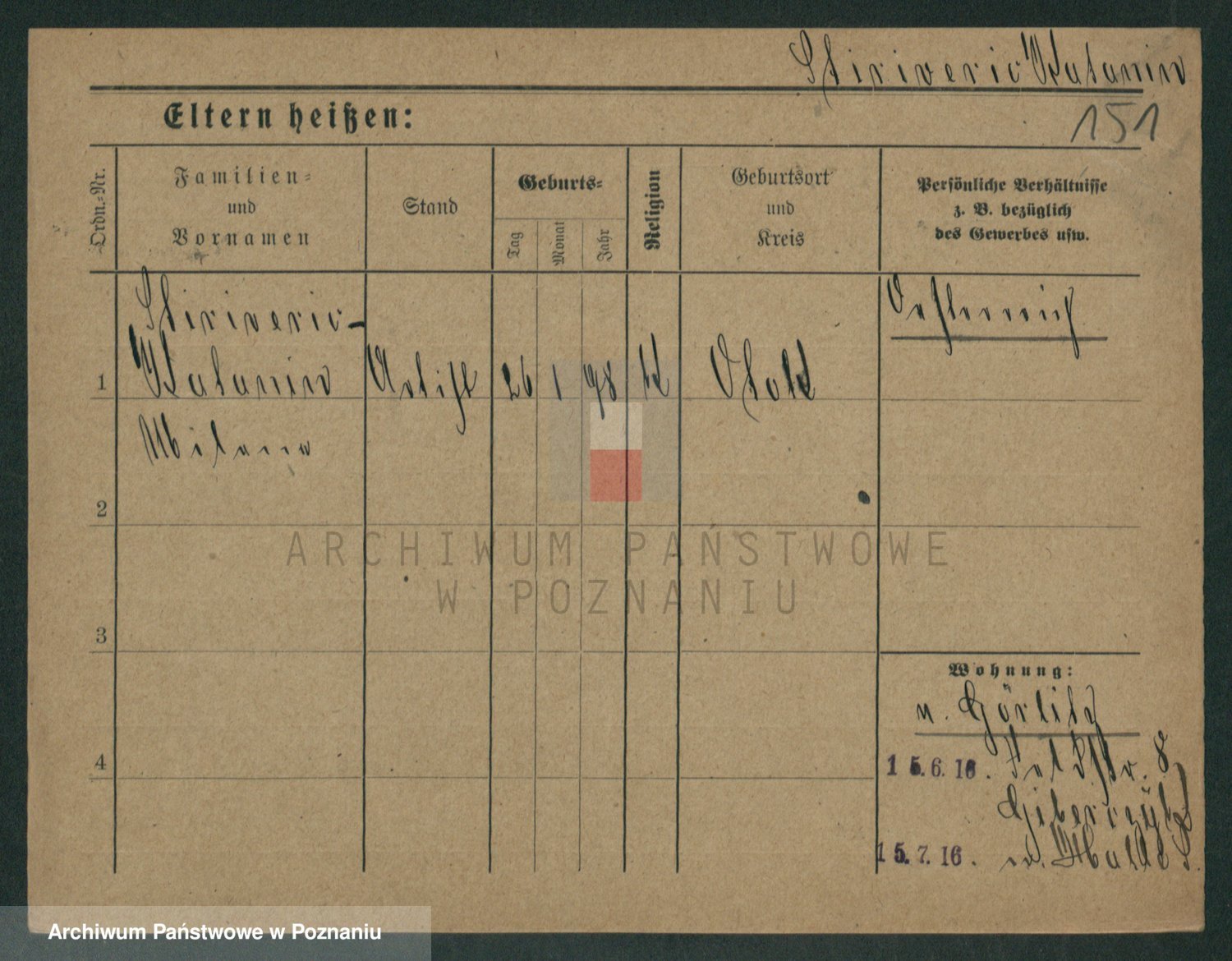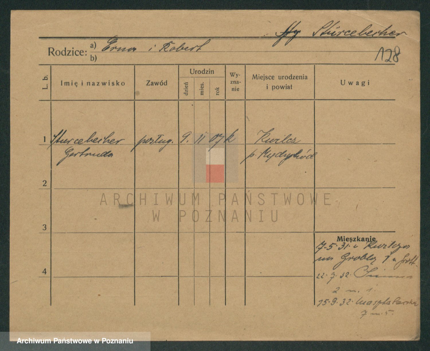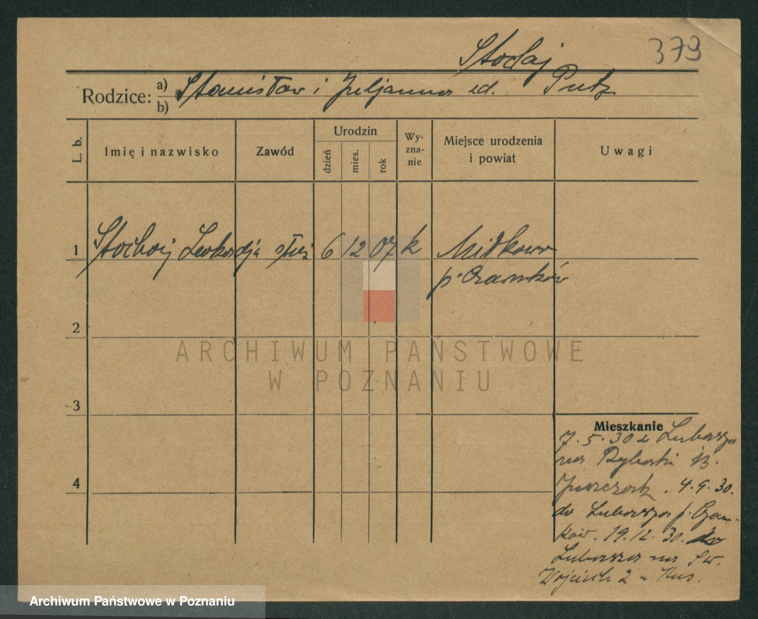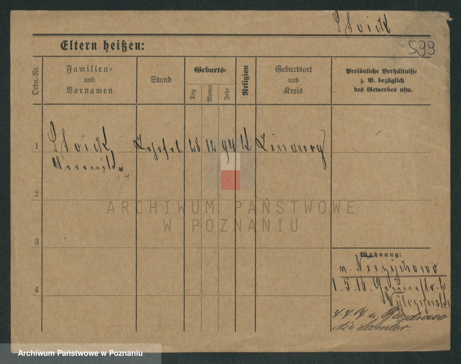 Podgląd karty osobowej dostępny jest po kliknięciu na nazwisko lub ikonkę karty. Można dokonywać powiększenia (ikony na górze) lub przechodzić między kolejnymi skanami (strzałki po bokach).