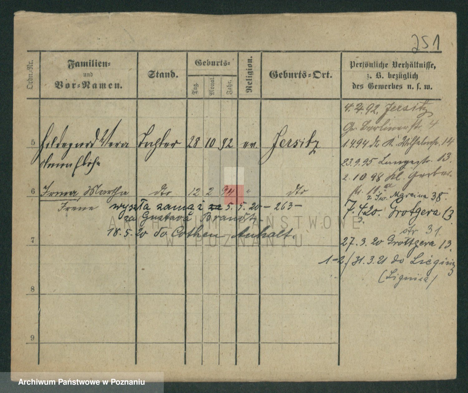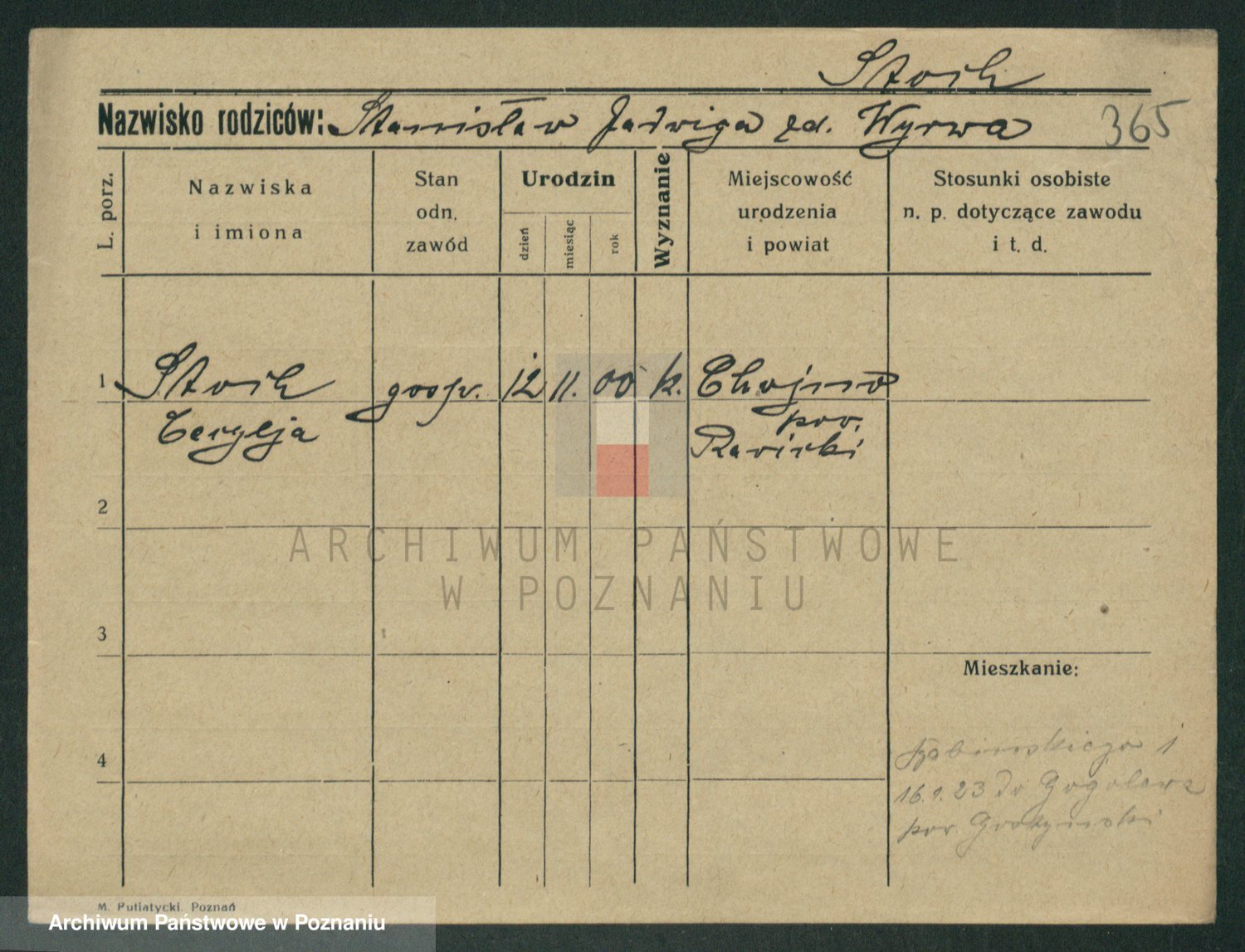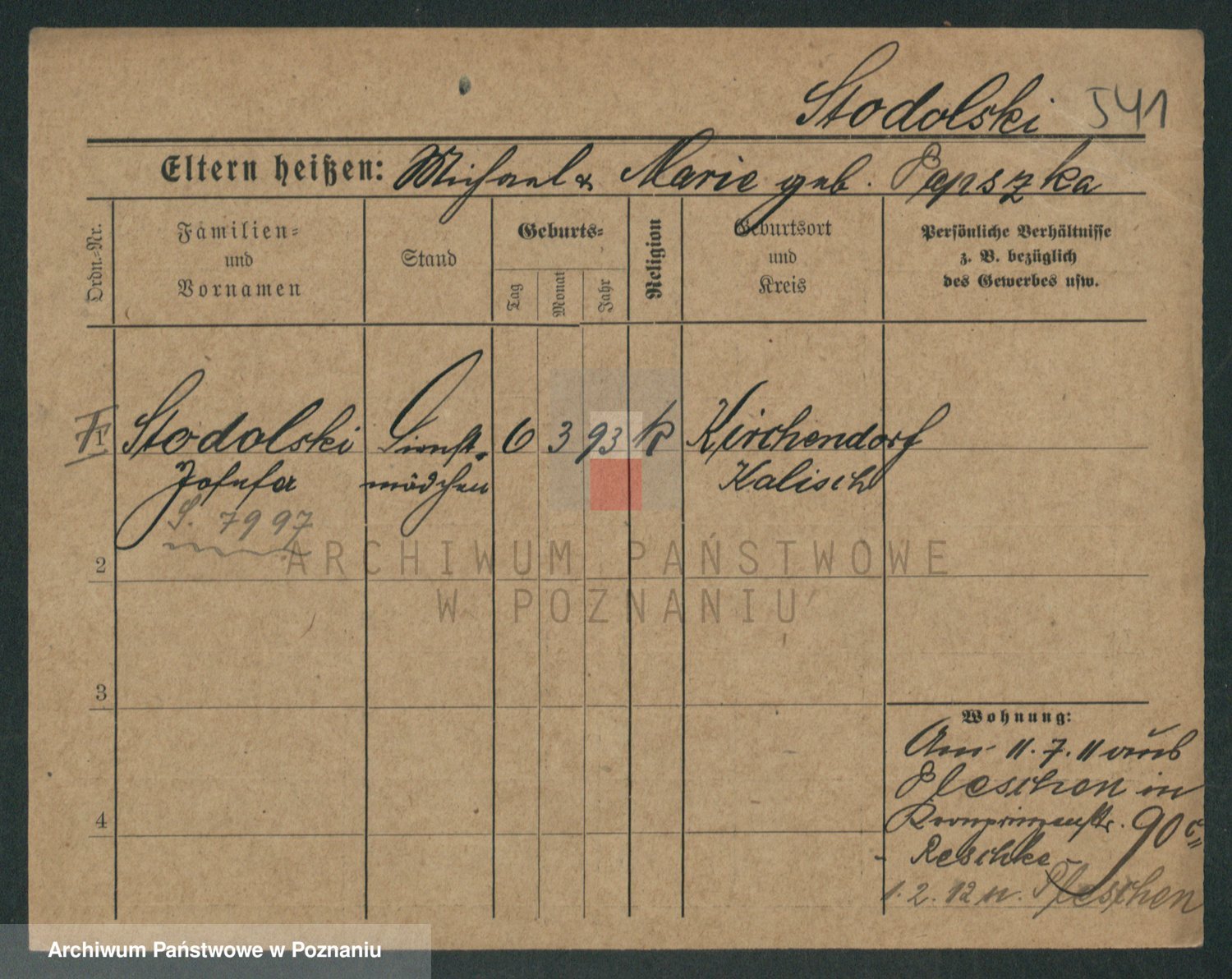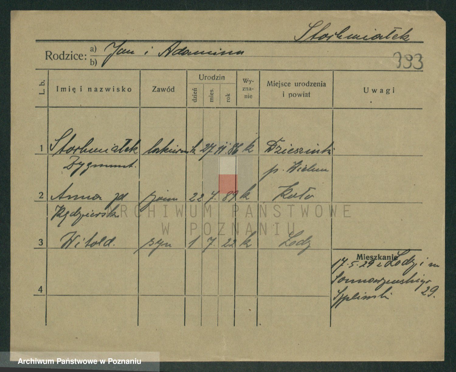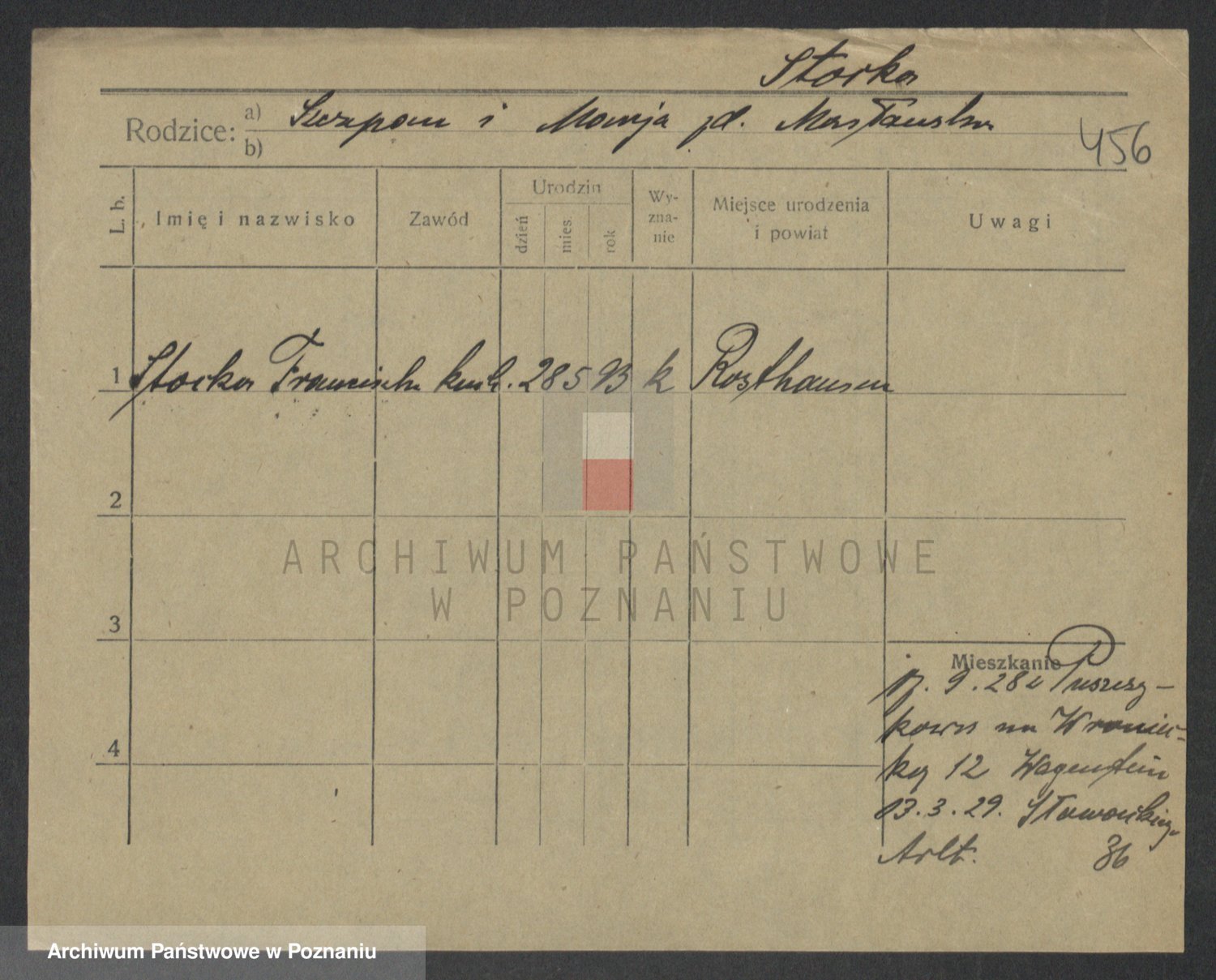Podgląd karty osobowej dostępny jest po kliknięciu na nazwisko lub ikonkę karty. Można dokonywać powiększenia (ikony na górze) lub przechodzić między kolejnymi skanami (strzałki po bokach).