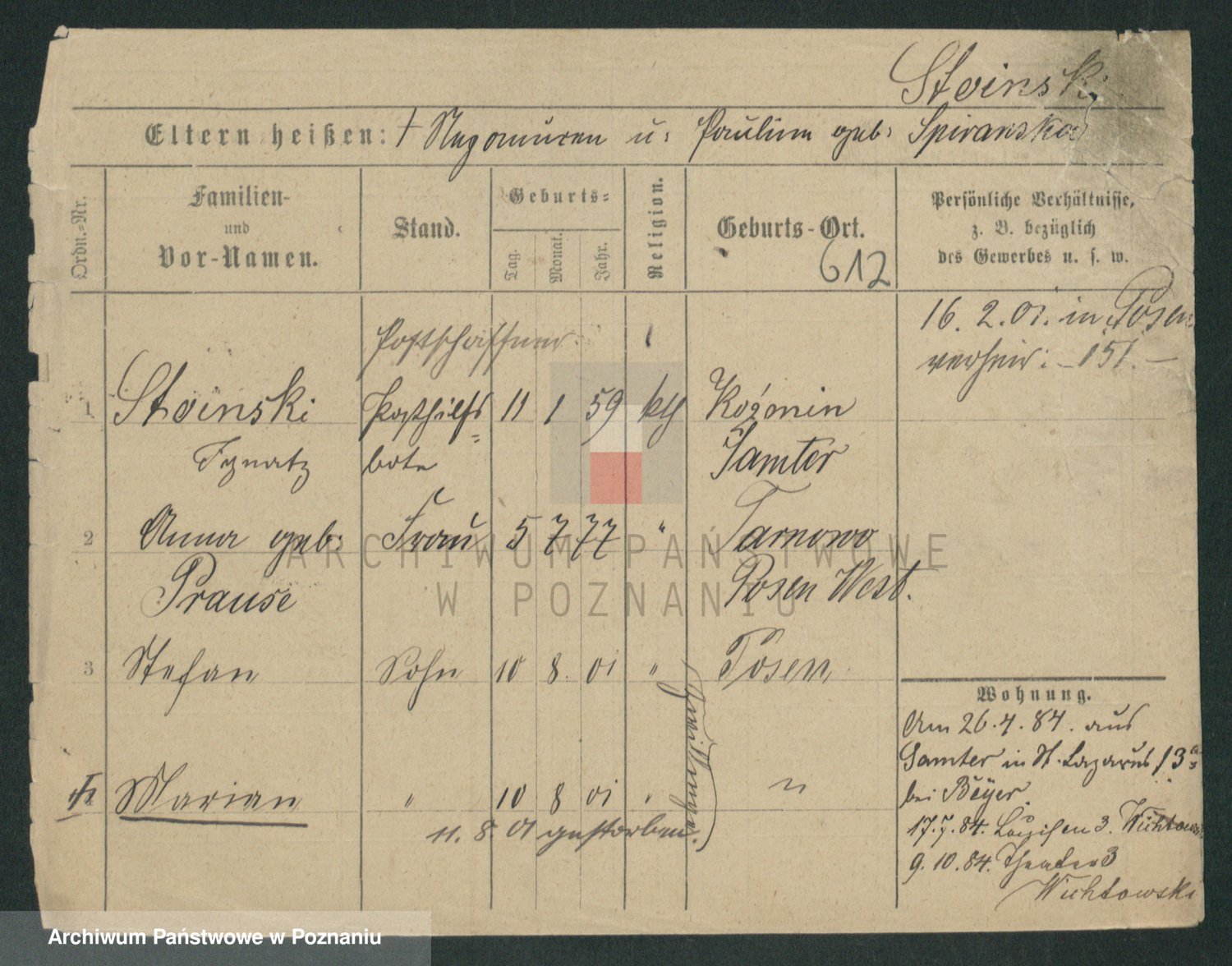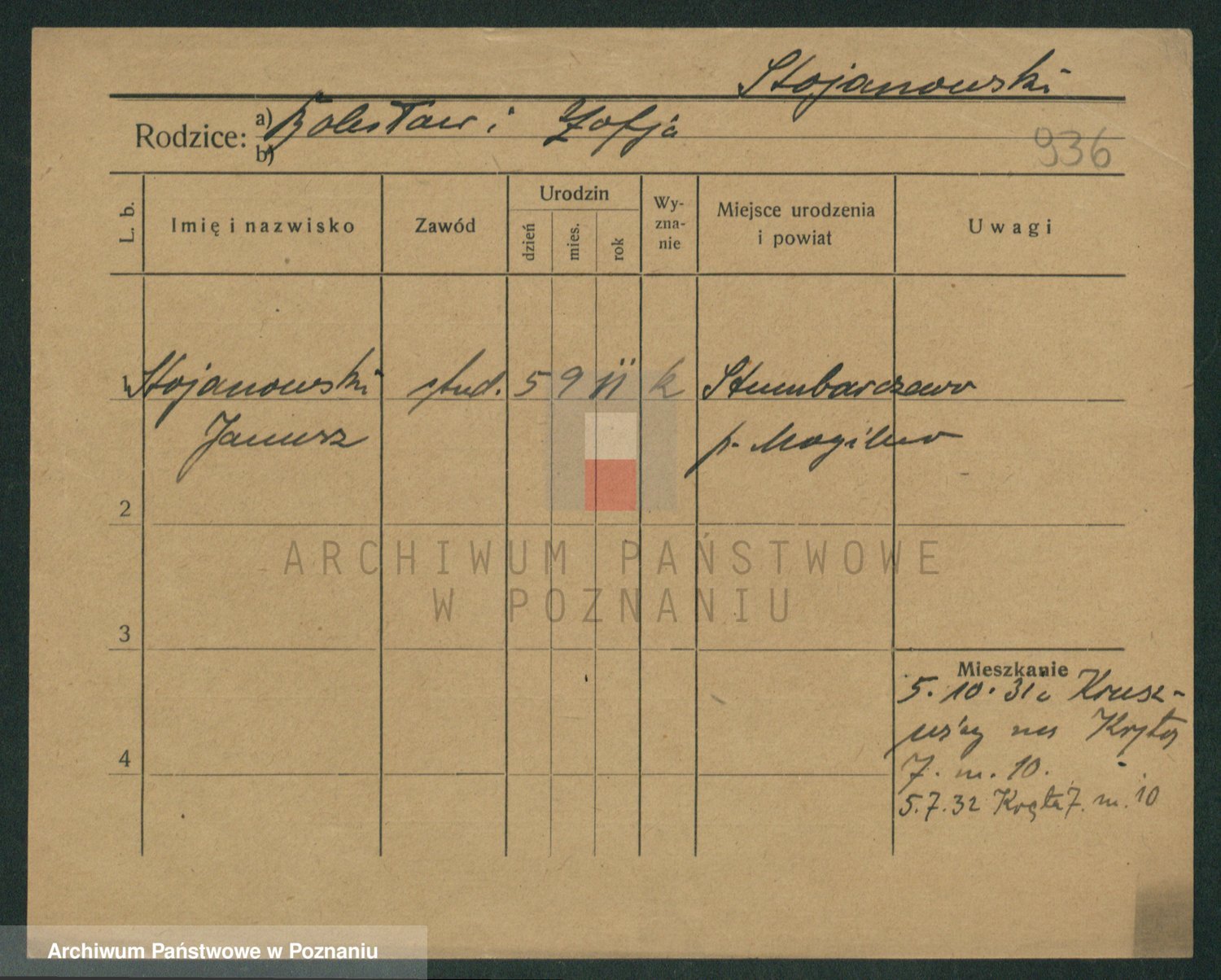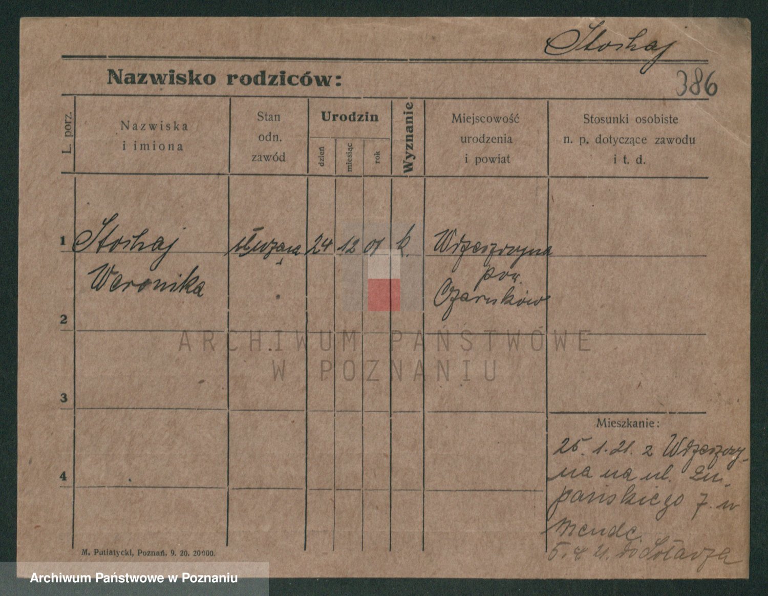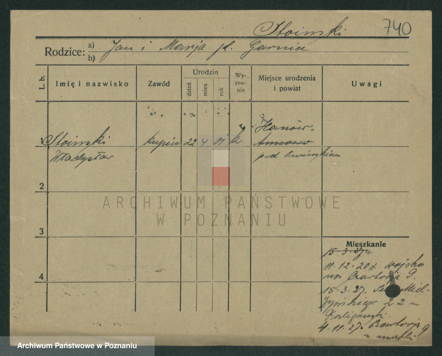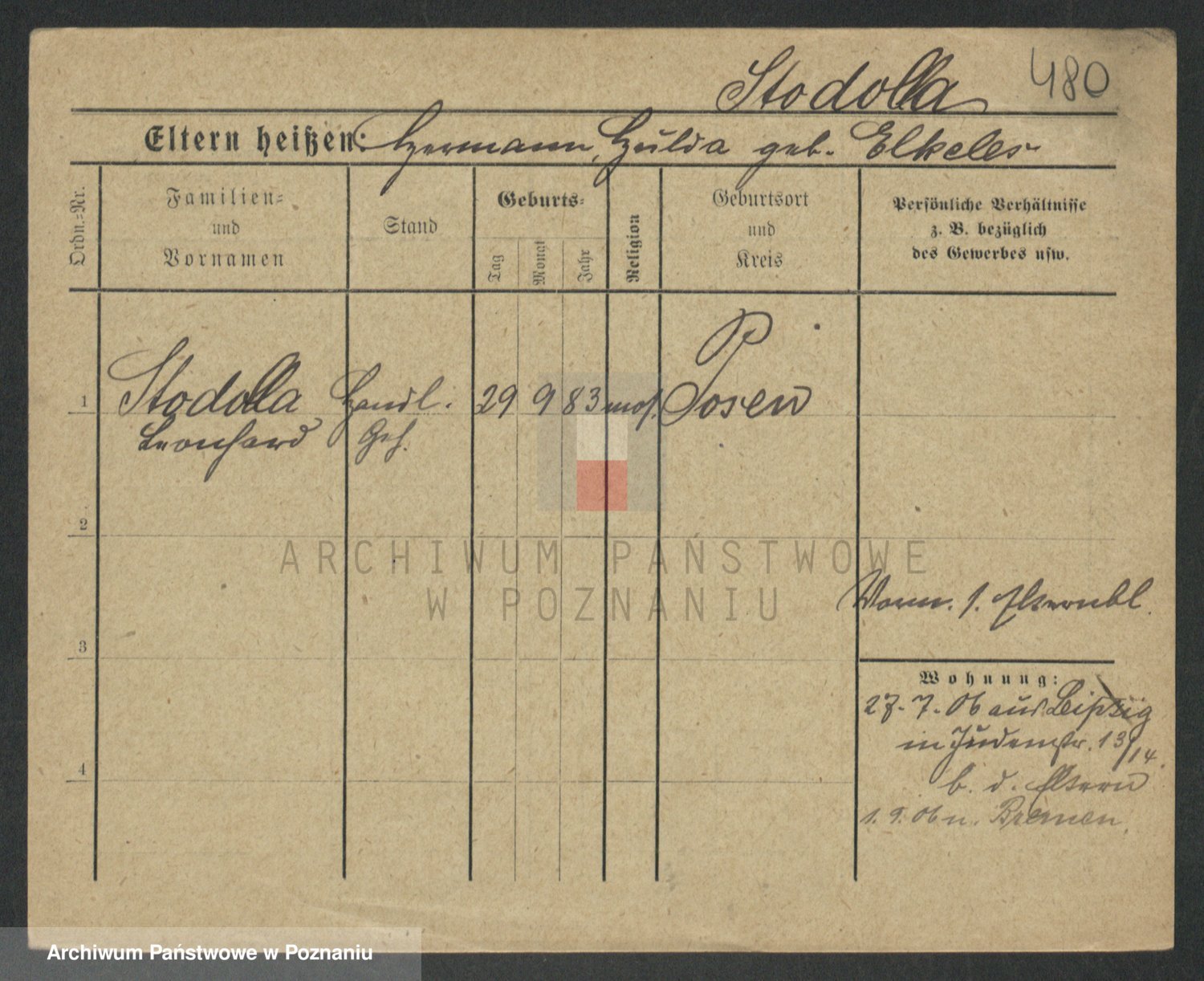 Podgląd karty osobowej dostępny jest po kliknięciu na nazwisko lub ikonkę karty. Można dokonywać powiększenia (ikony na górze) lub przechodzić między kolejnymi skanami (strzałki po bokach).