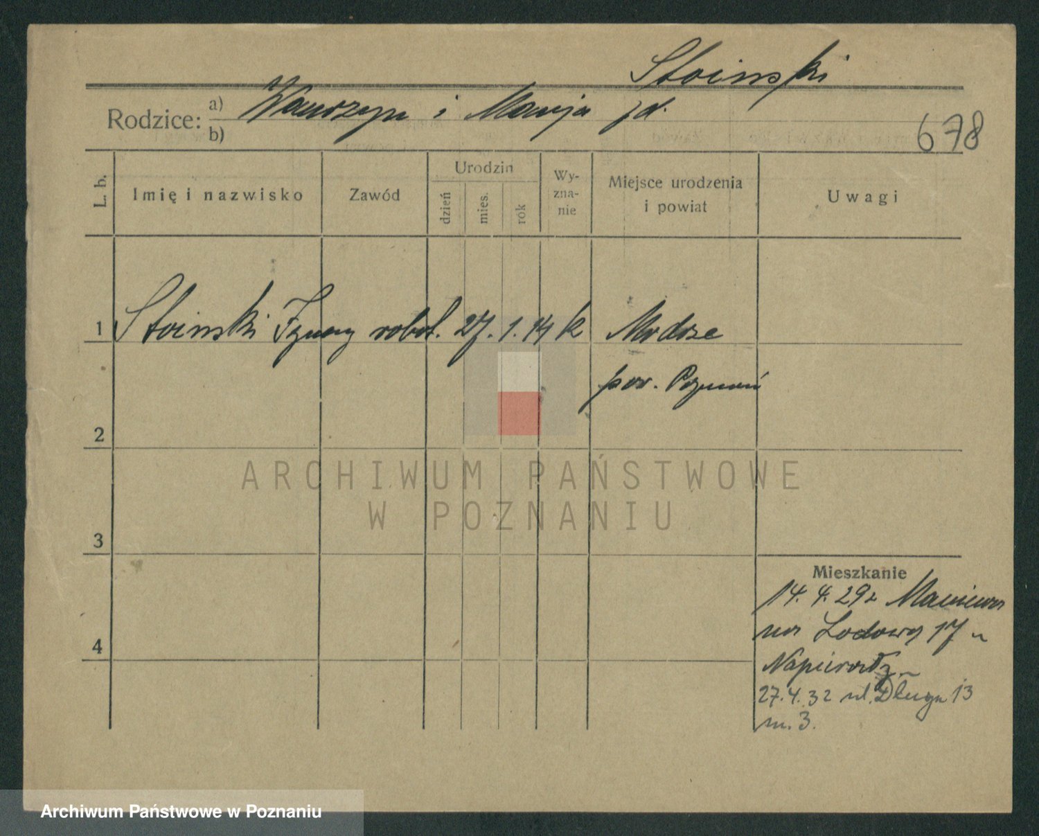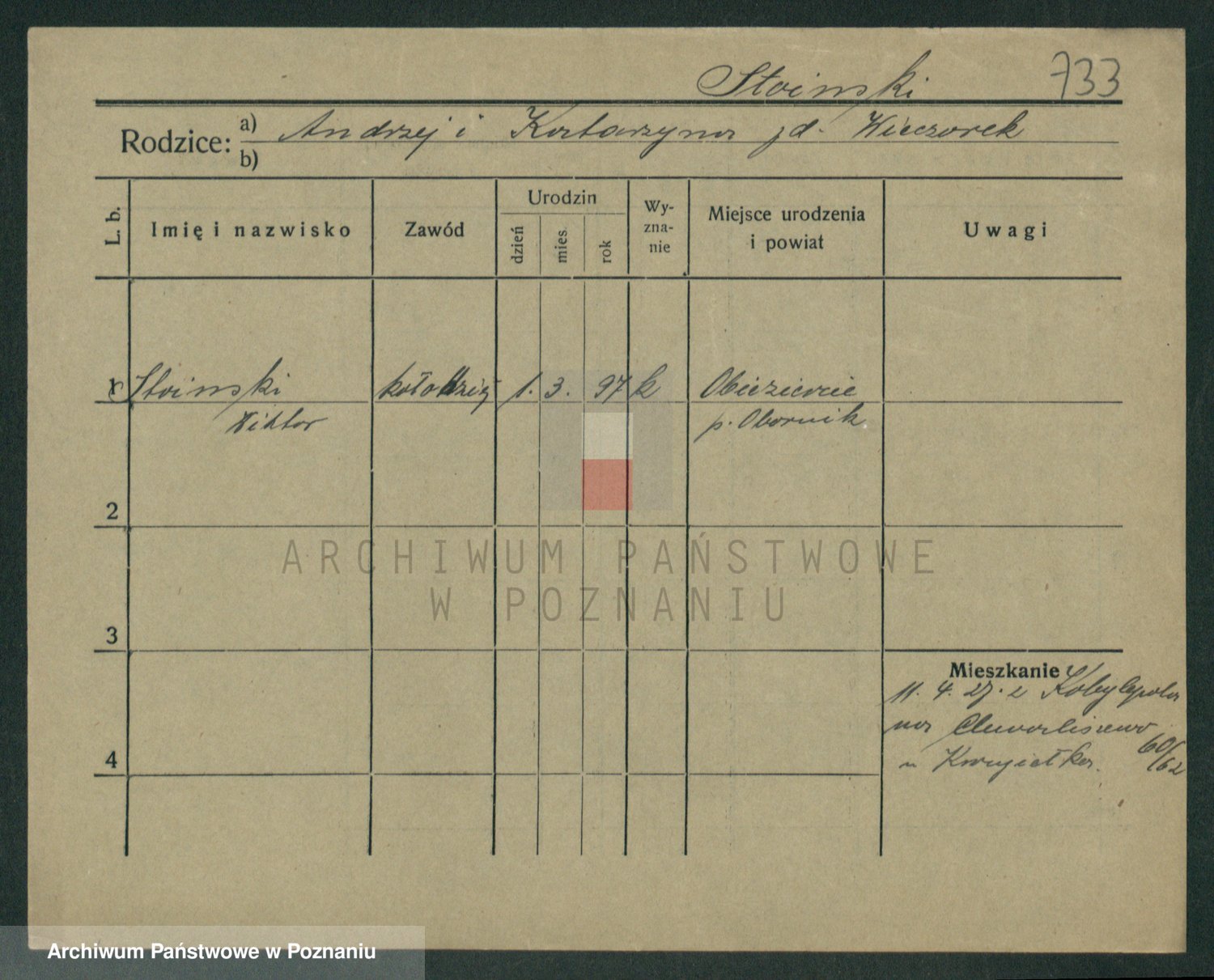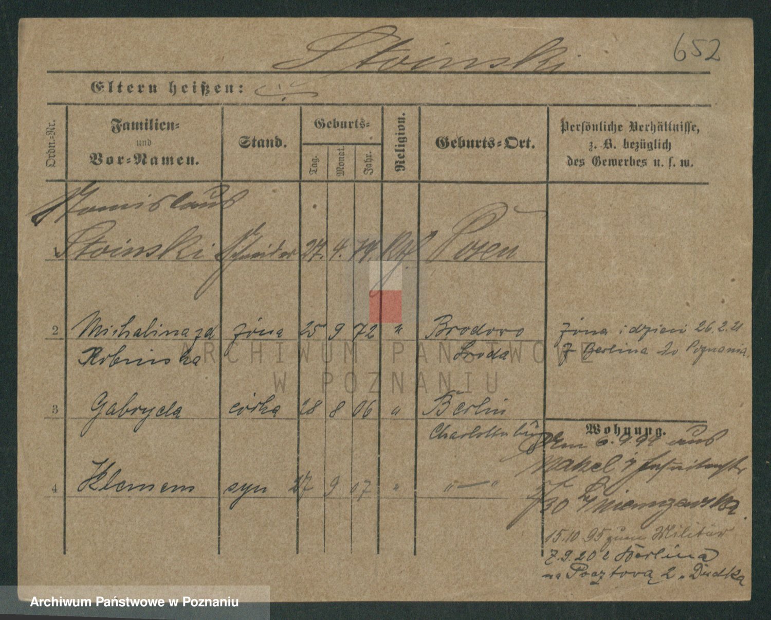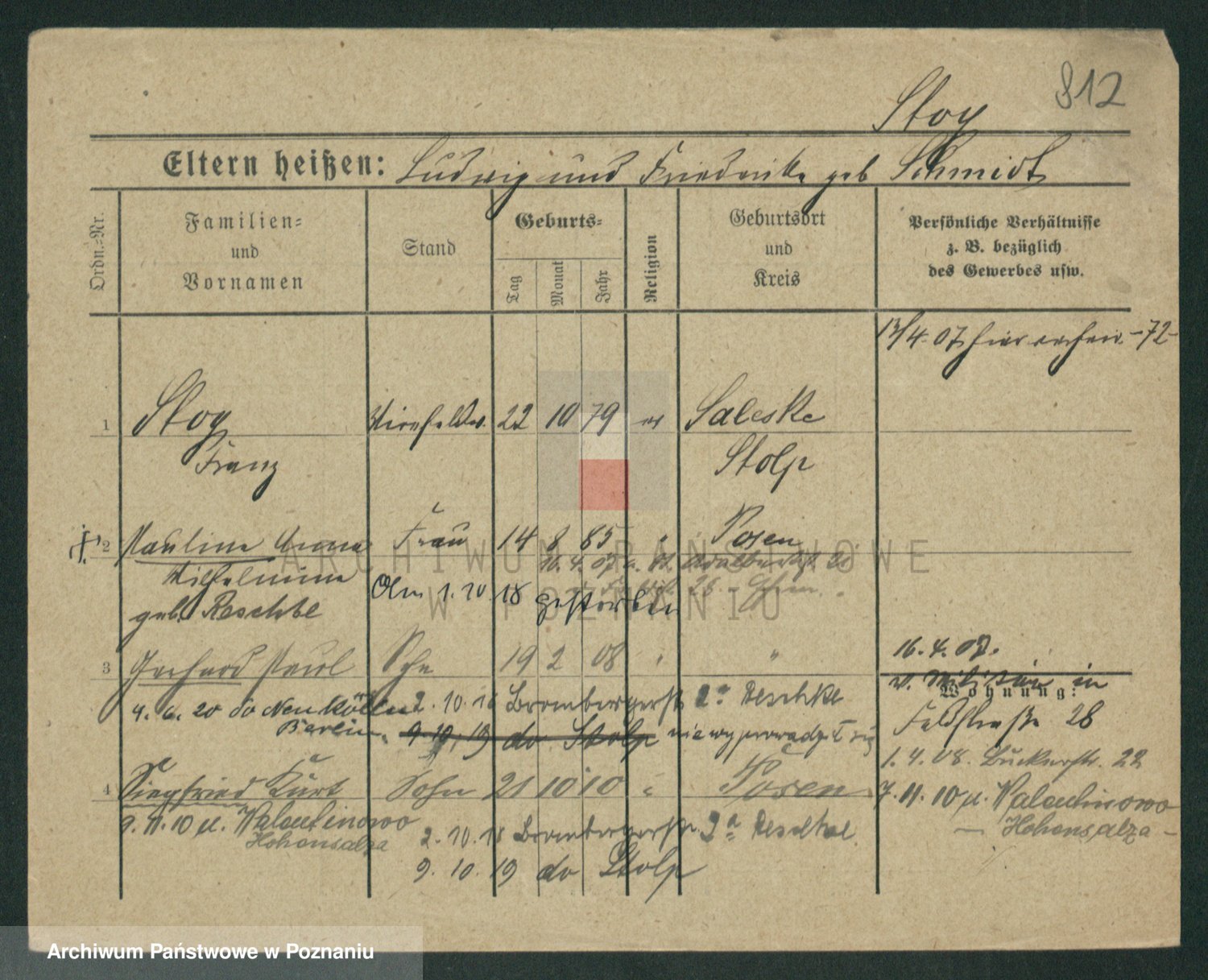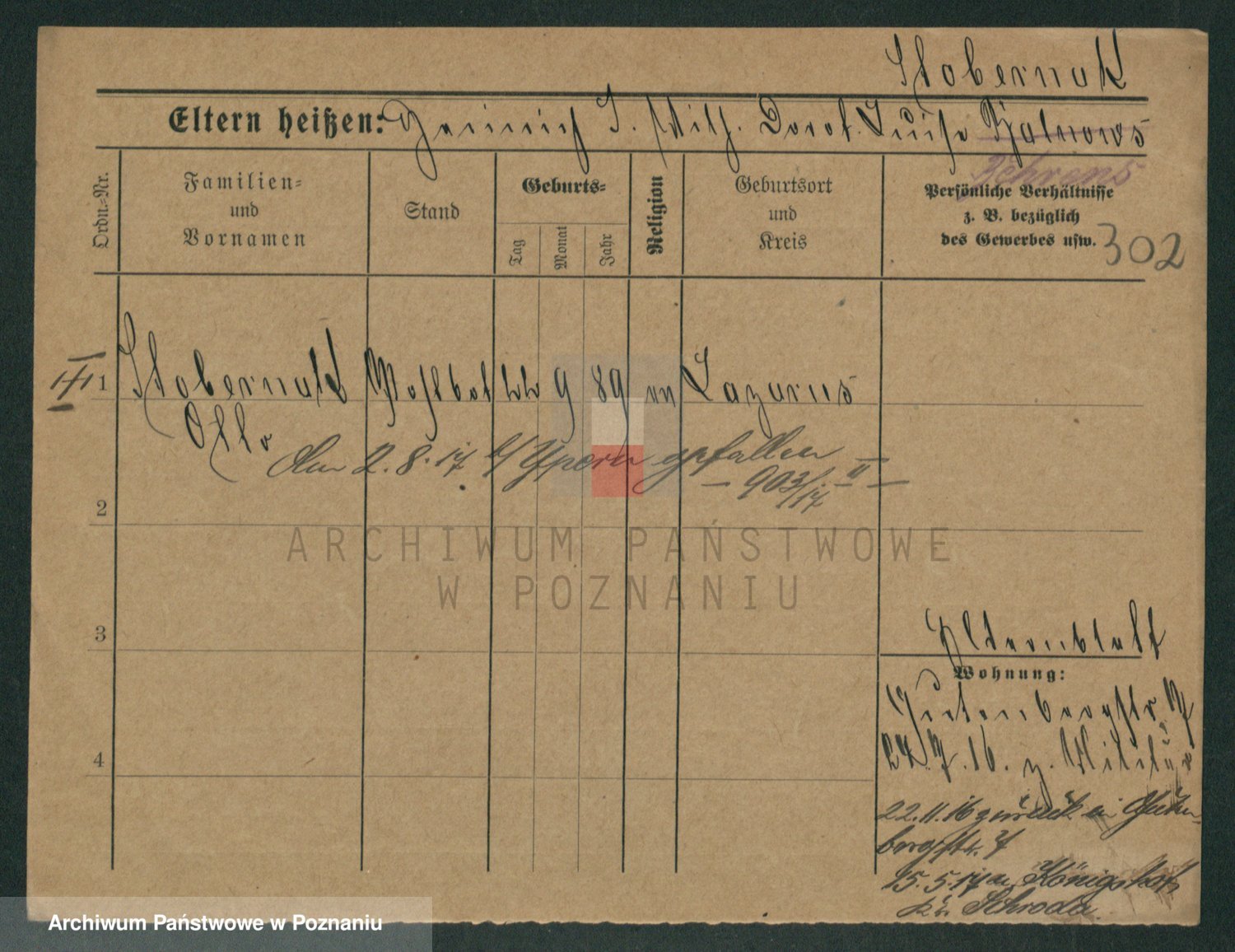 Podgląd karty osobowej dostępny jest po kliknięciu na nazwisko lub ikonkę karty. Można dokonywać powiększenia (ikony na górze) lub przechodzić między kolejnymi skanami (strzałki po bokach).