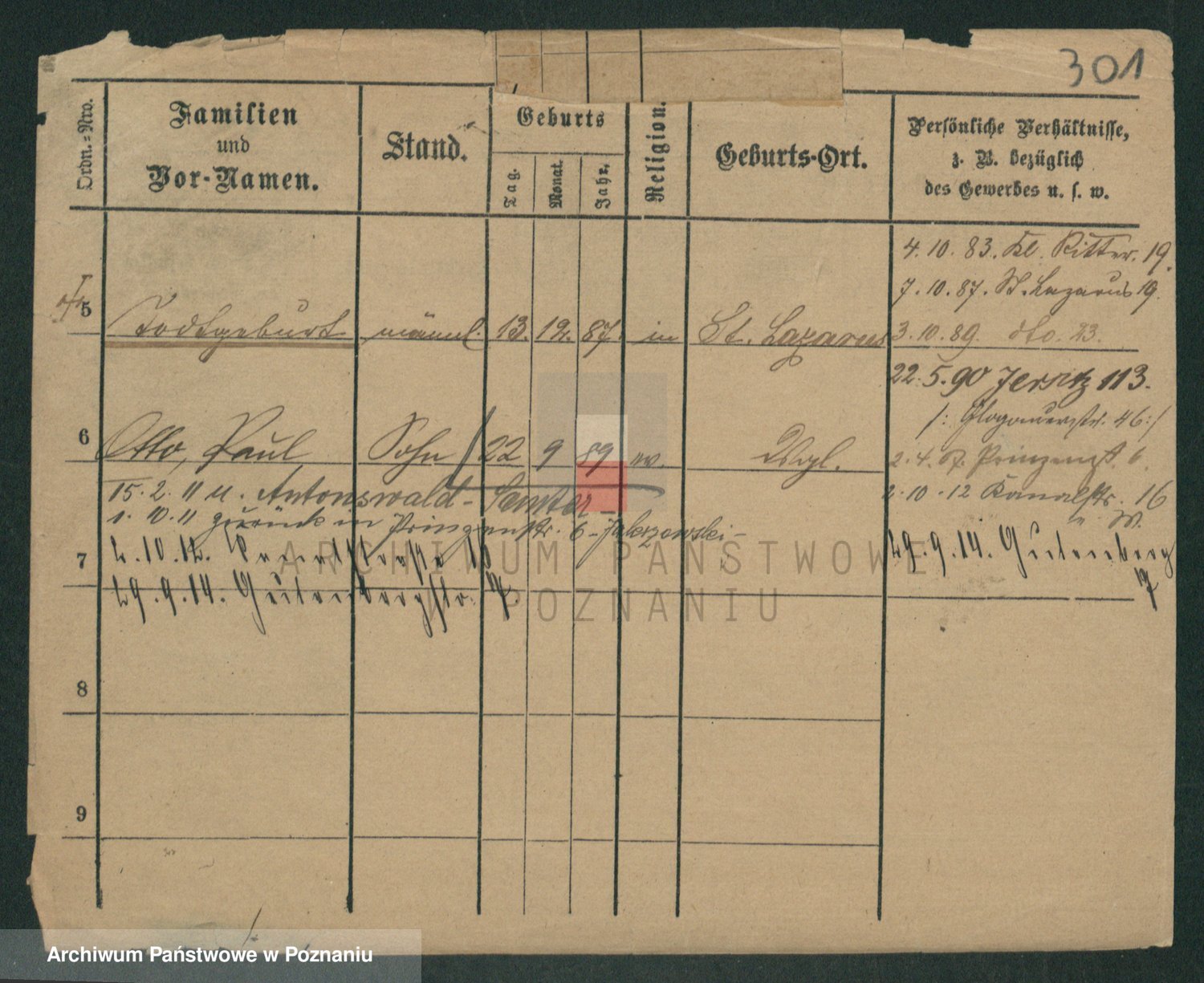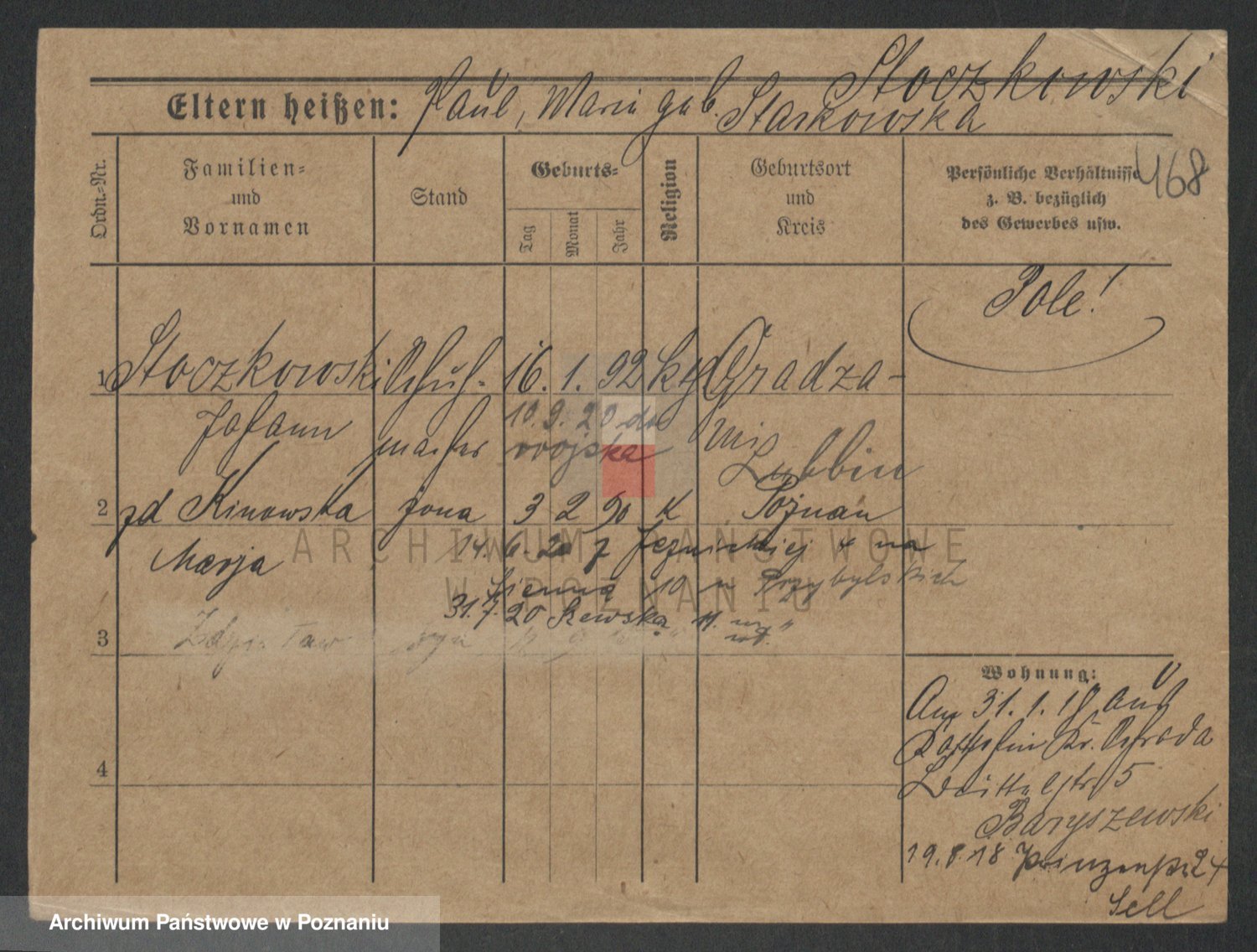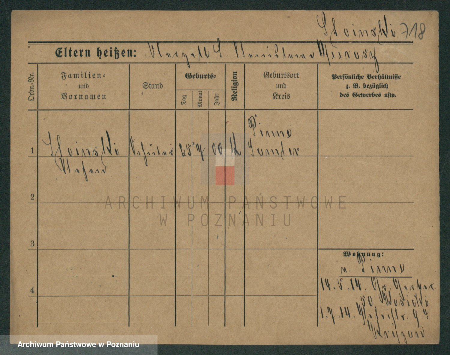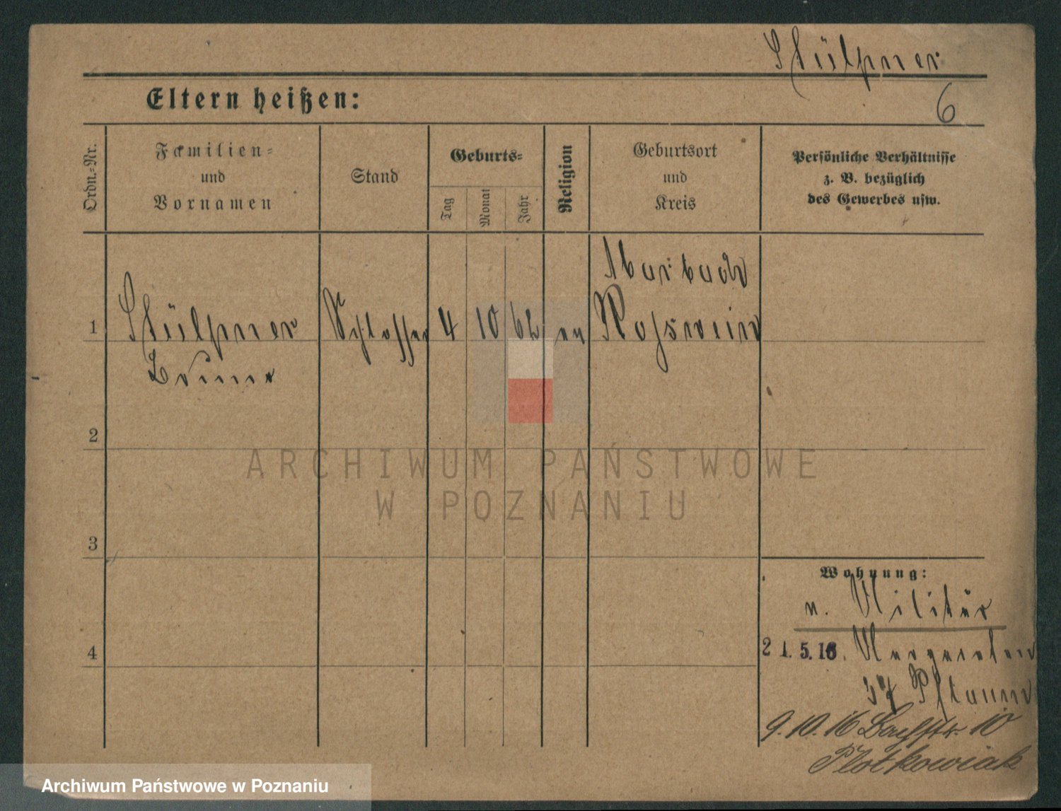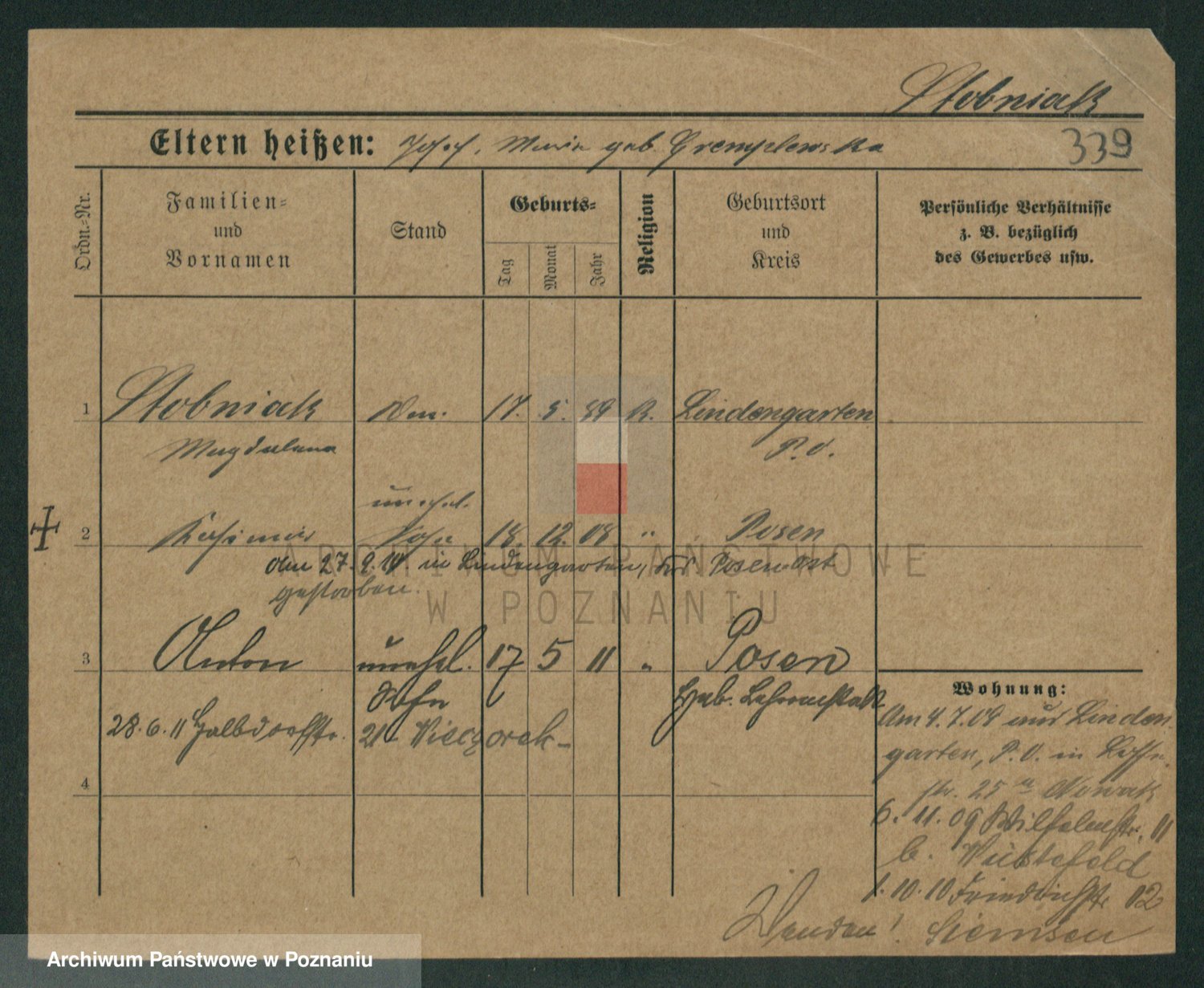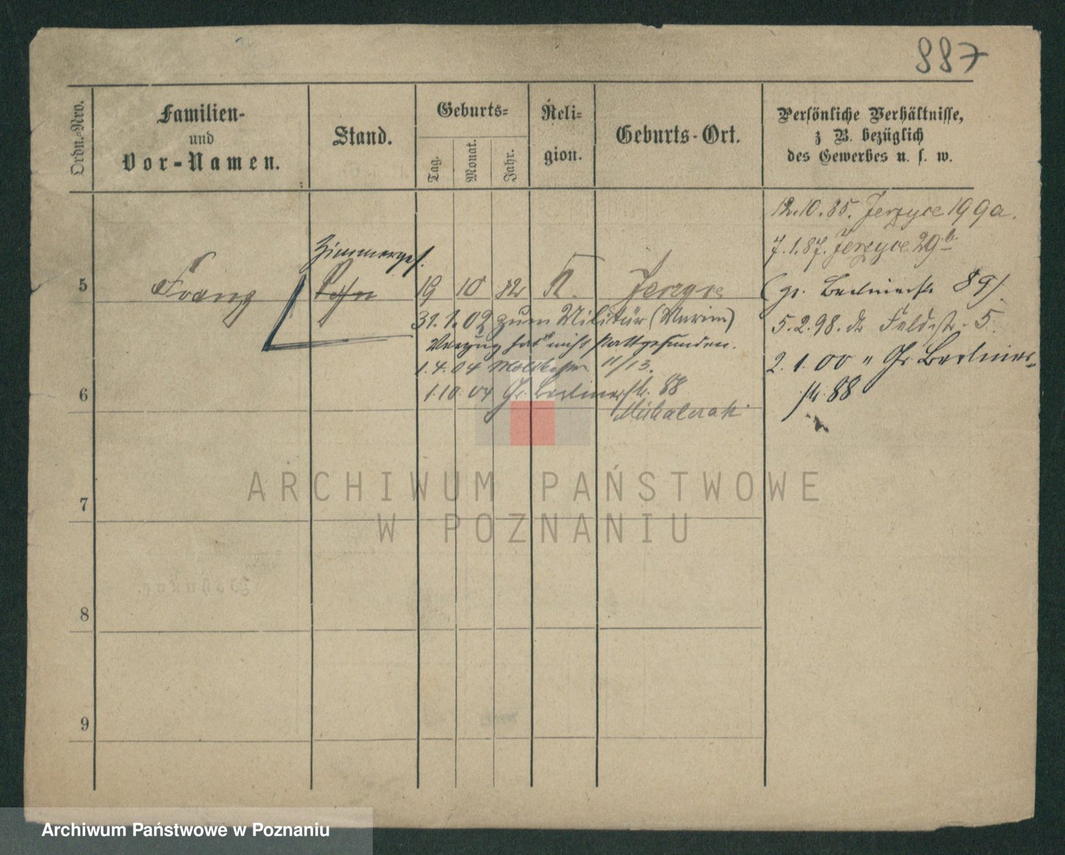 Podgląd karty osobowej dostępny jest po kliknięciu na nazwisko lub ikonkę karty. Można dokonywać powiększenia (ikony na górze) lub przechodzić między kolejnymi skanami (strzałki po bokach).