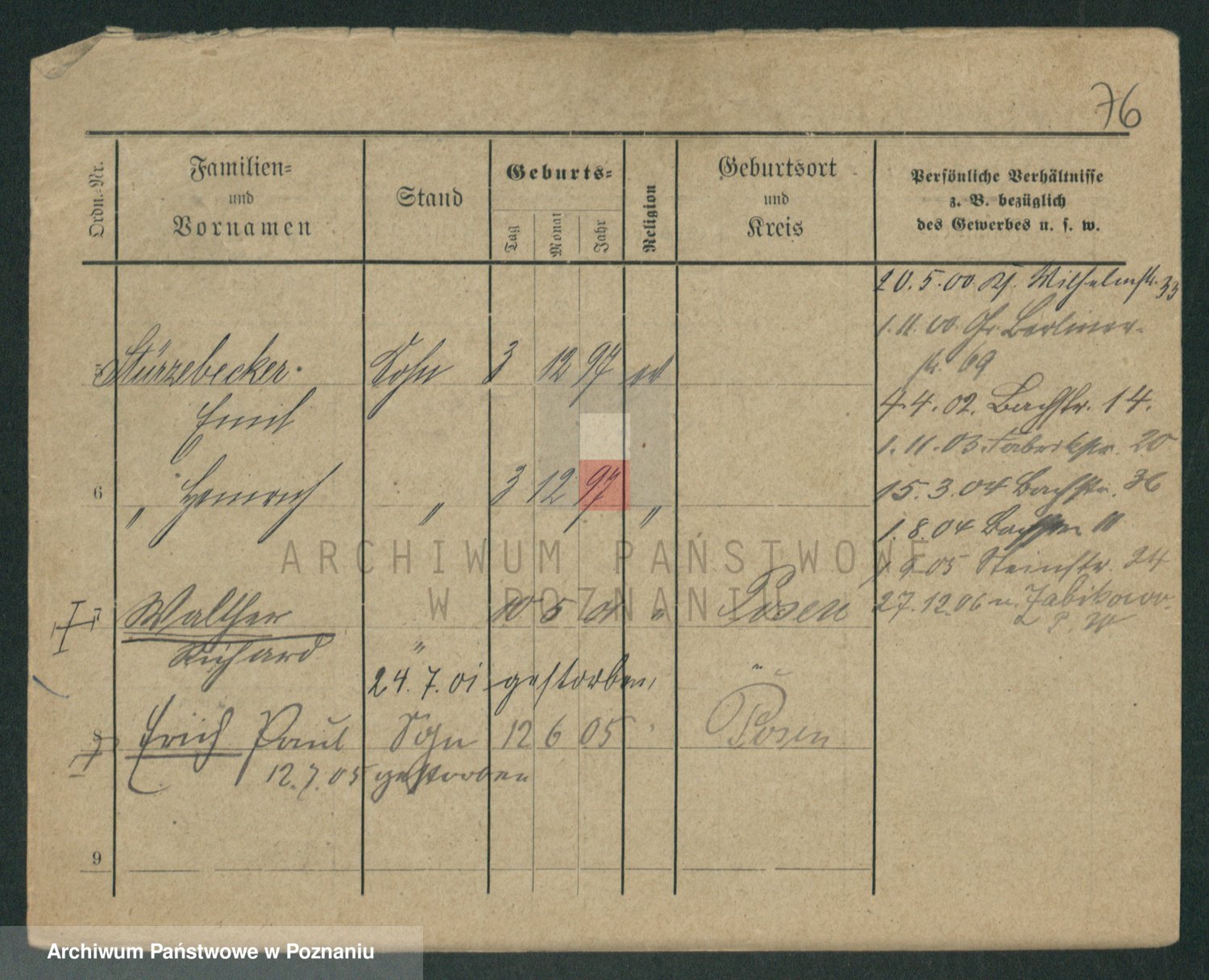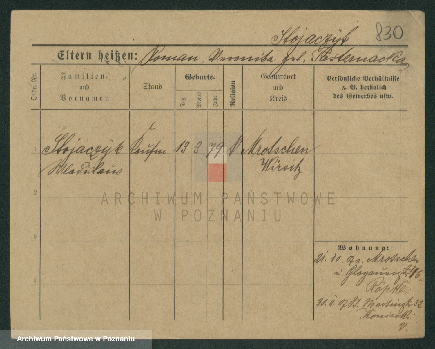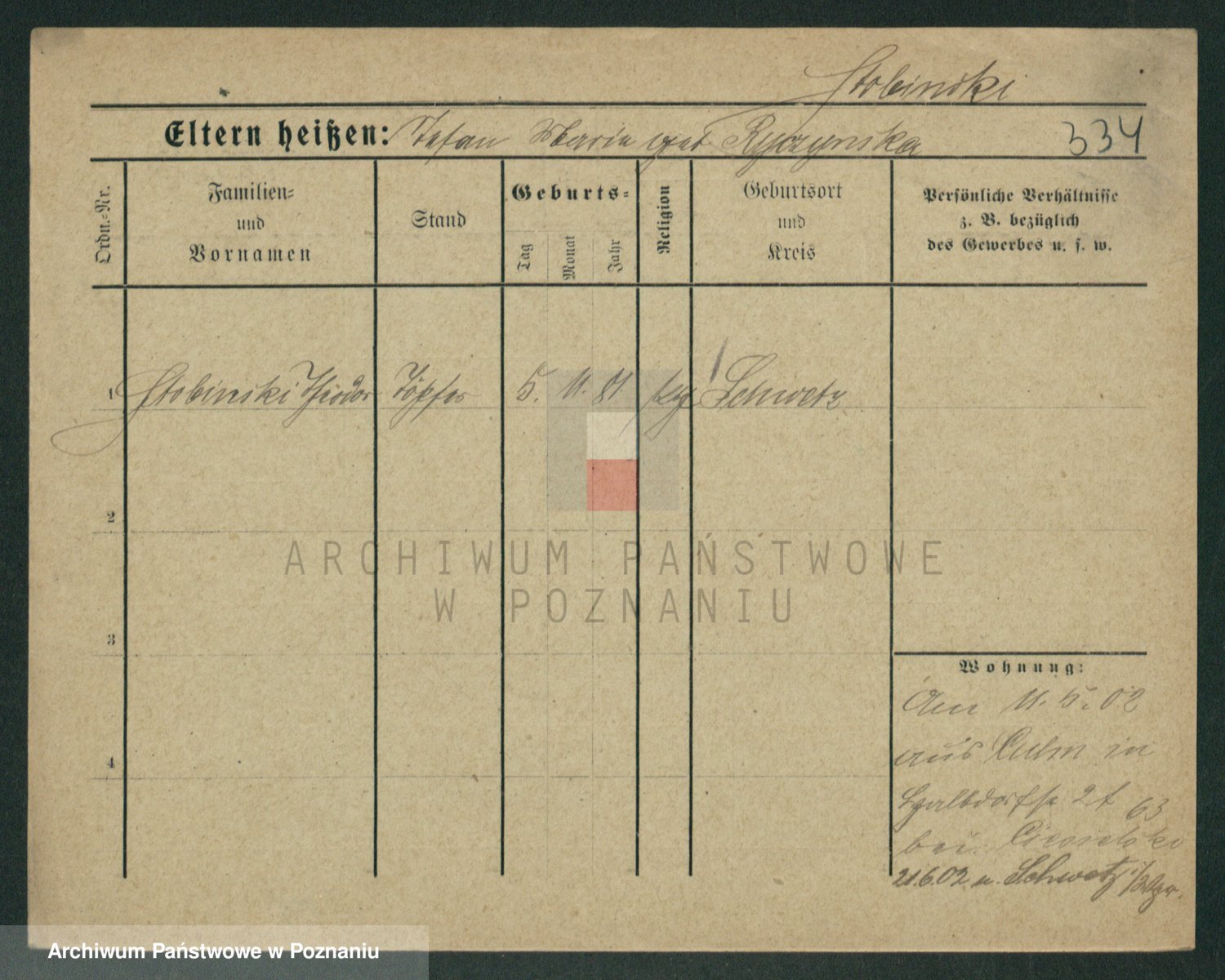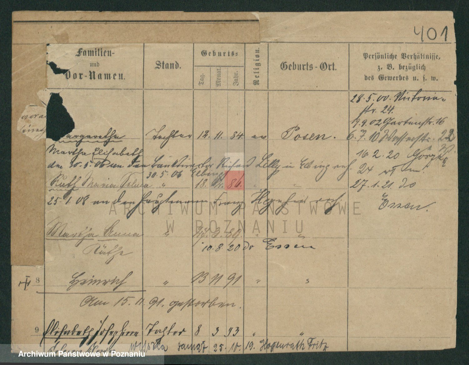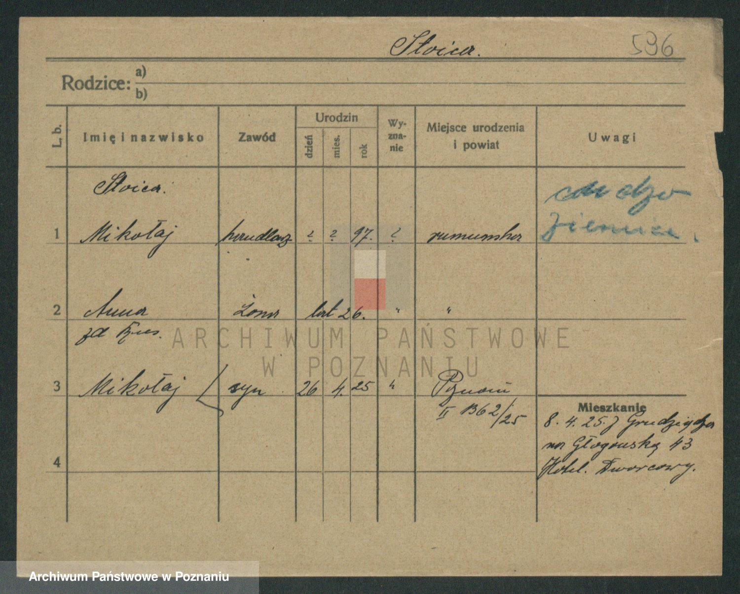 Podgląd karty osobowej dostępny jest po kliknięciu na nazwisko lub ikonkę karty. Można dokonywać powiększenia (ikony na górze) lub przechodzić między kolejnymi skanami (strzałki po bokach).