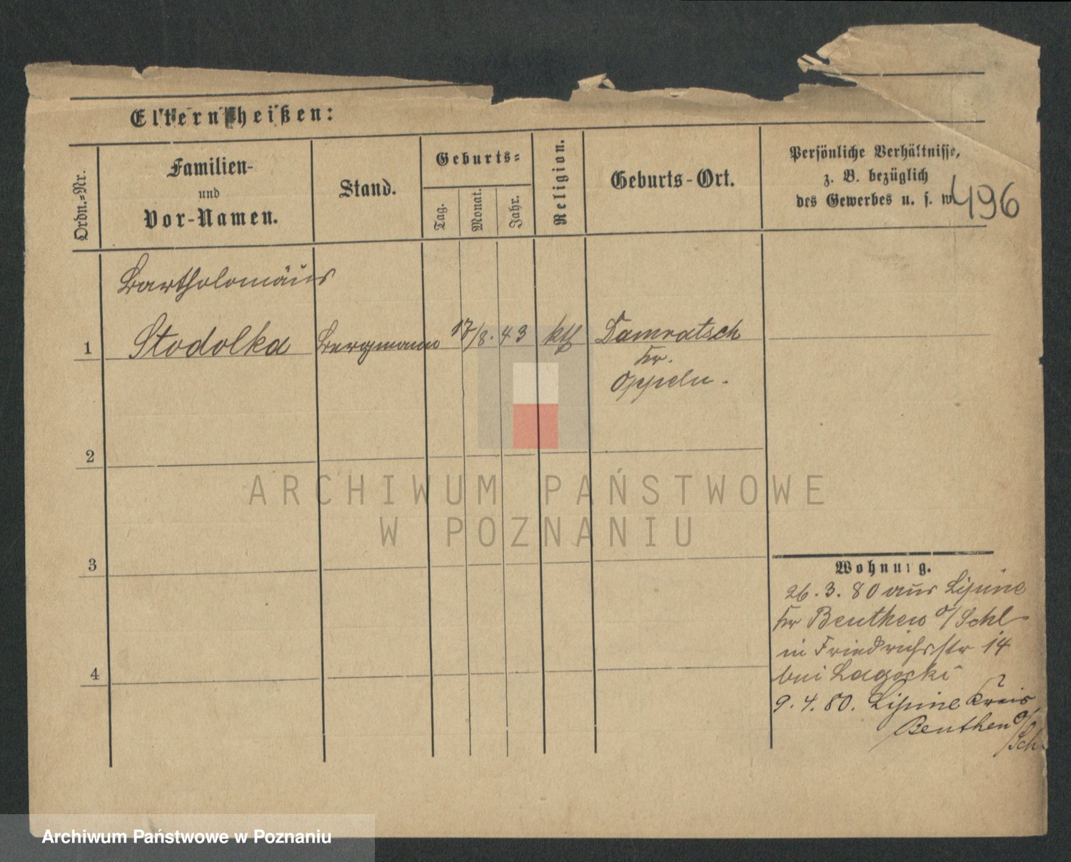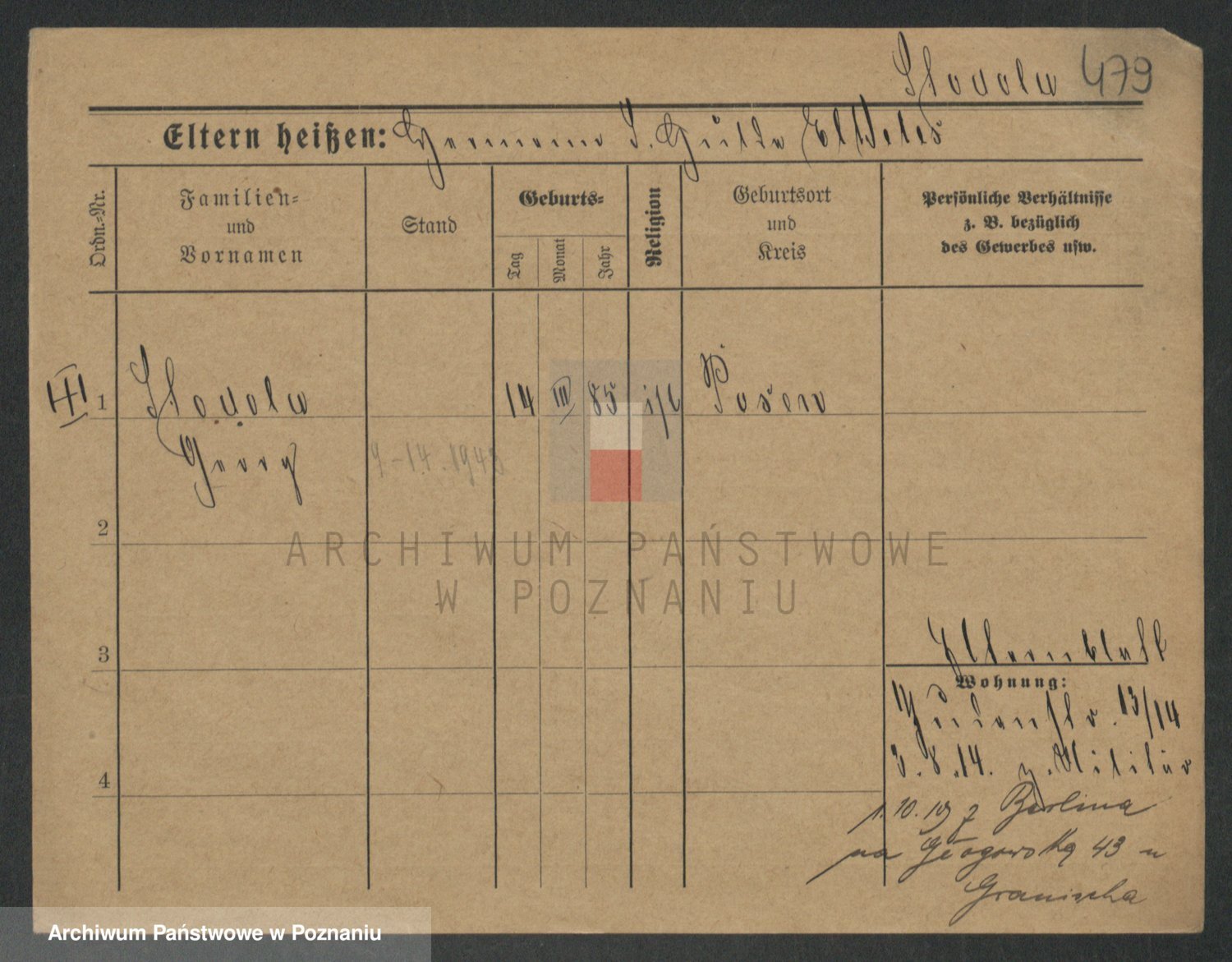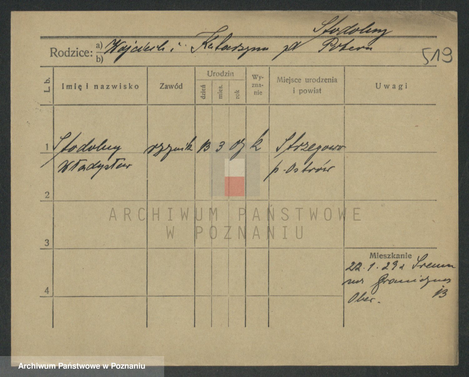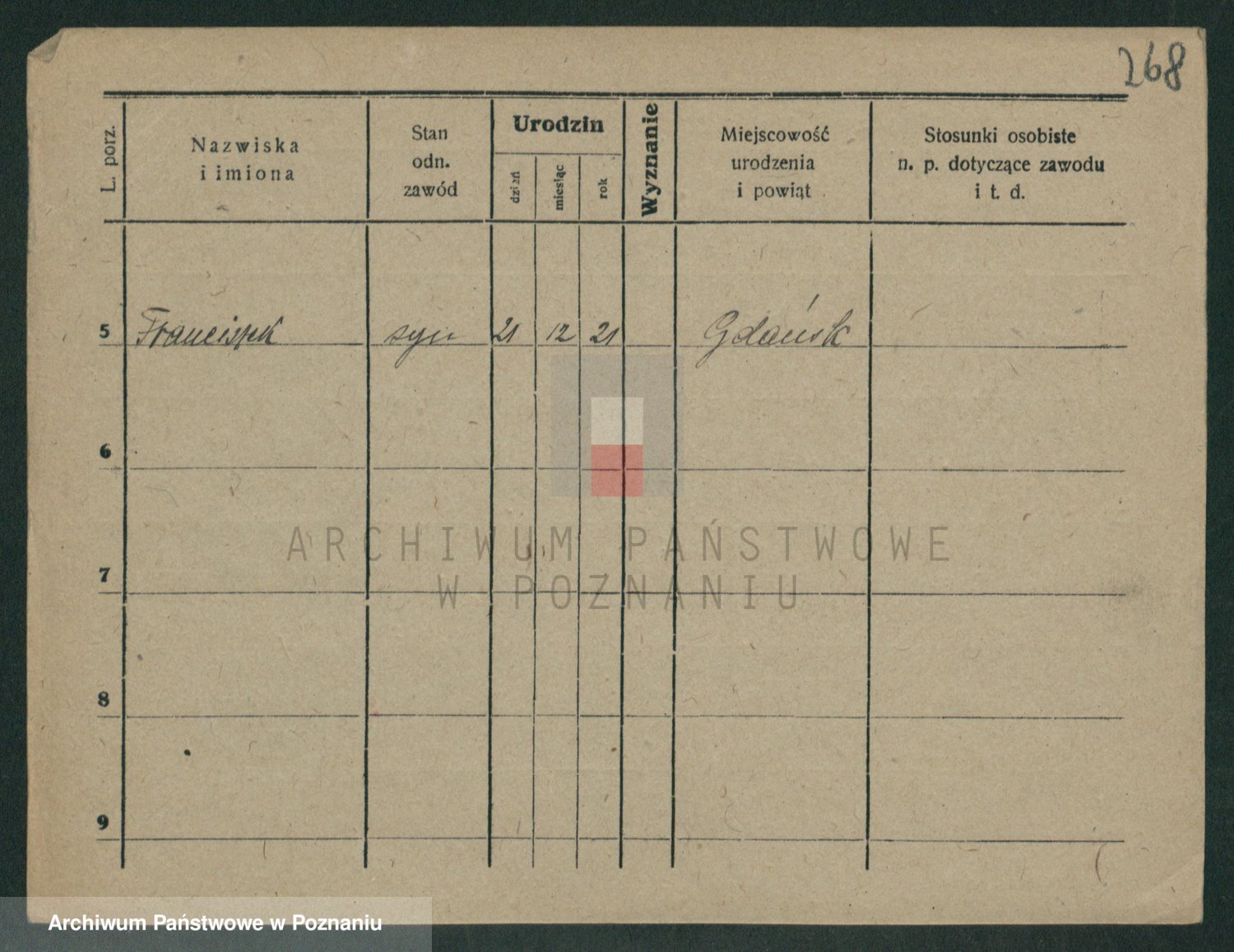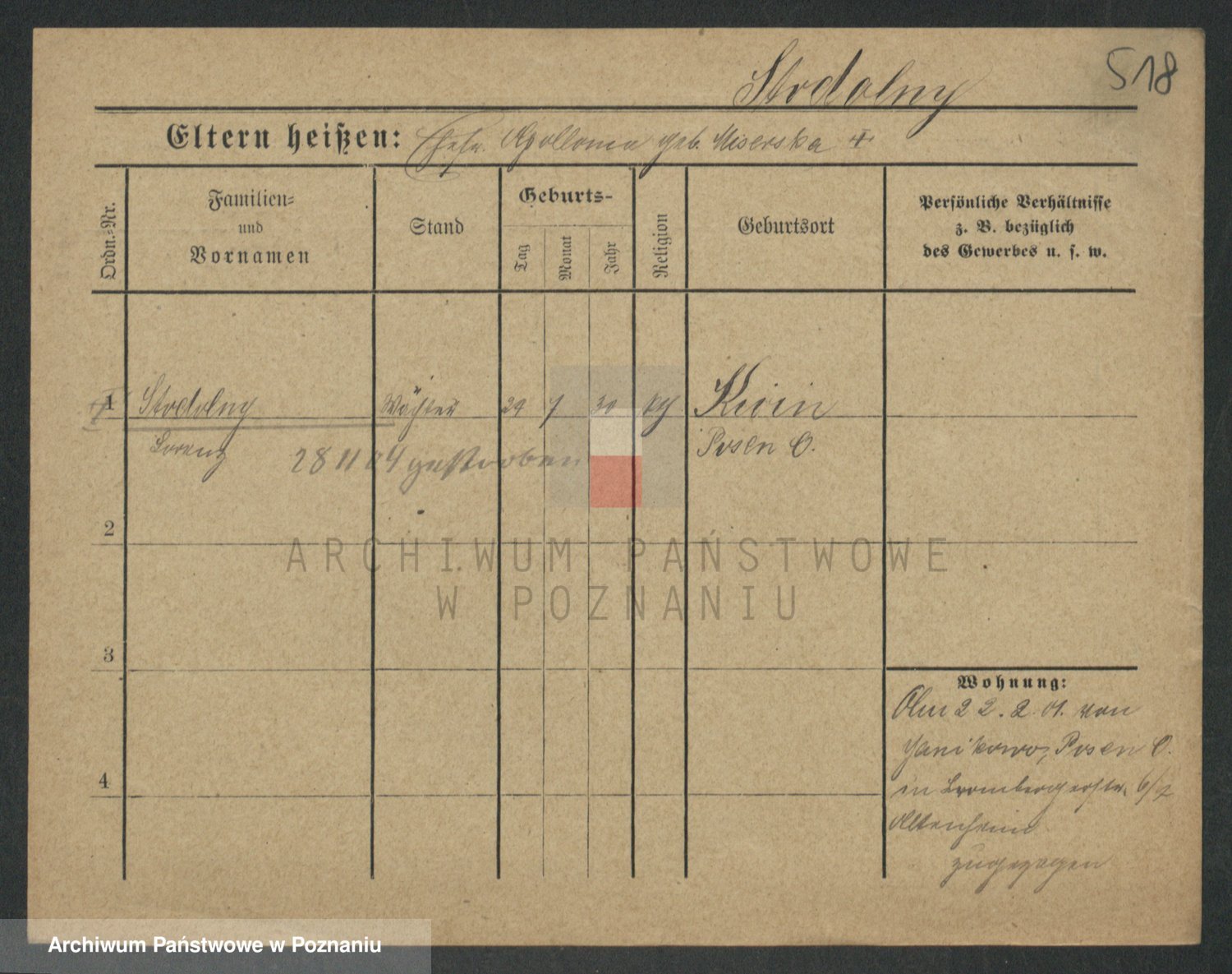 Podgląd karty osobowej dostępny jest po kliknięciu na nazwisko lub ikonkę karty. Można dokonywać powiększenia (ikony na górze) lub przechodzić między kolejnymi skanami (strzałki po bokach).