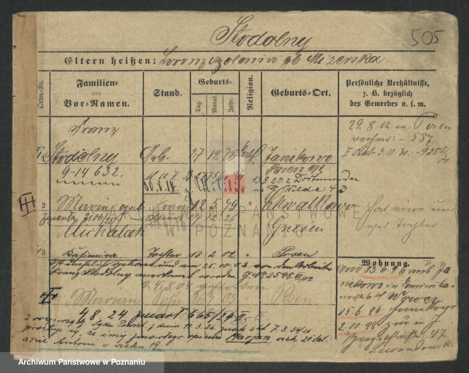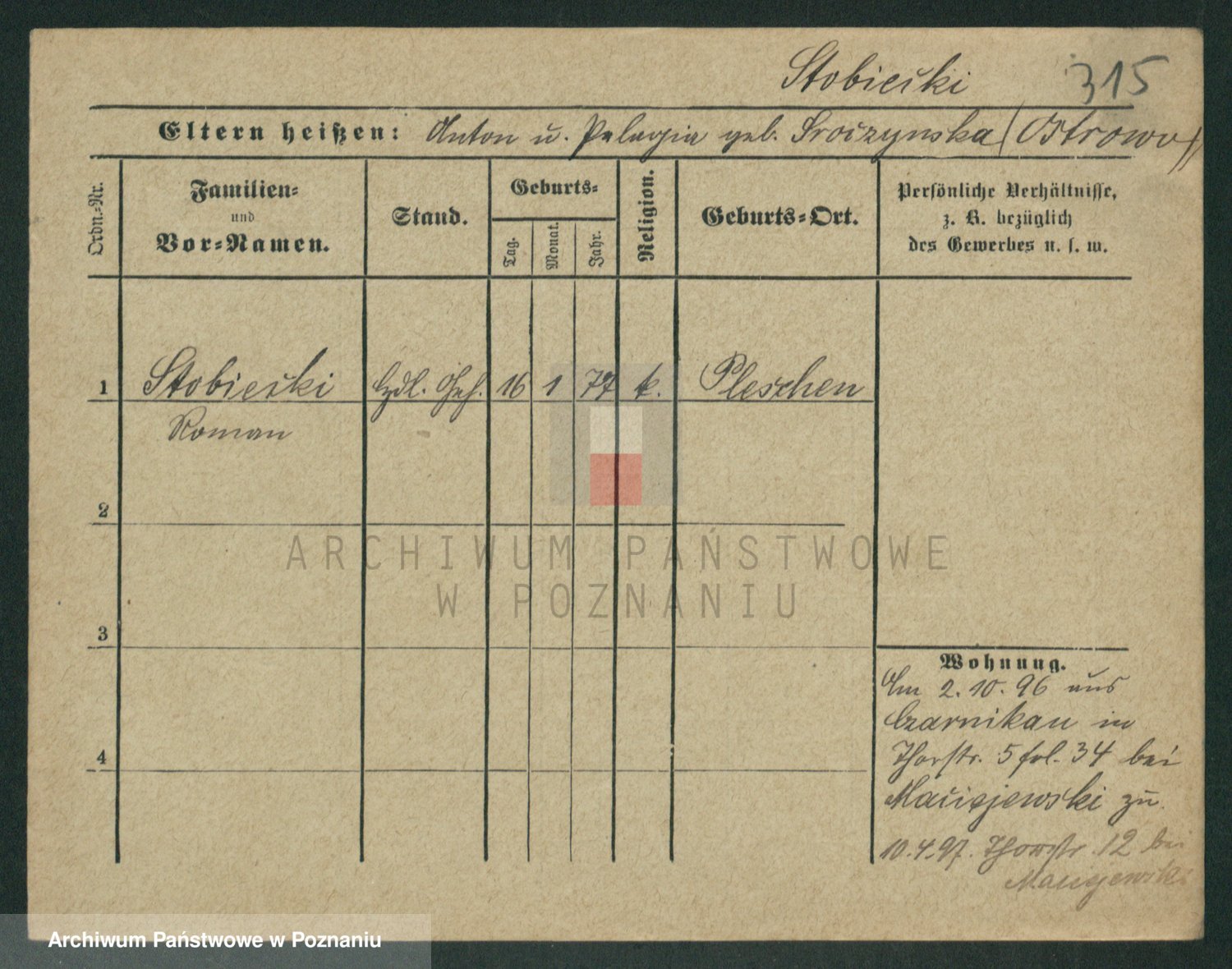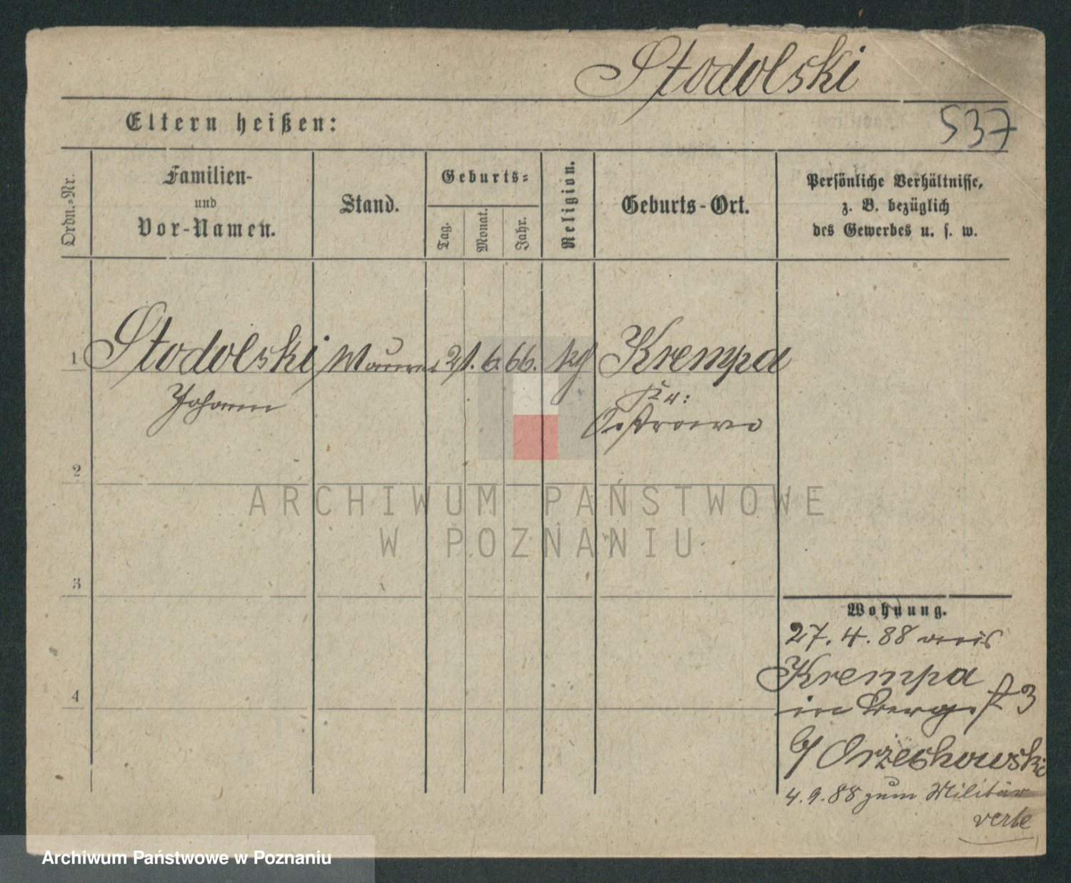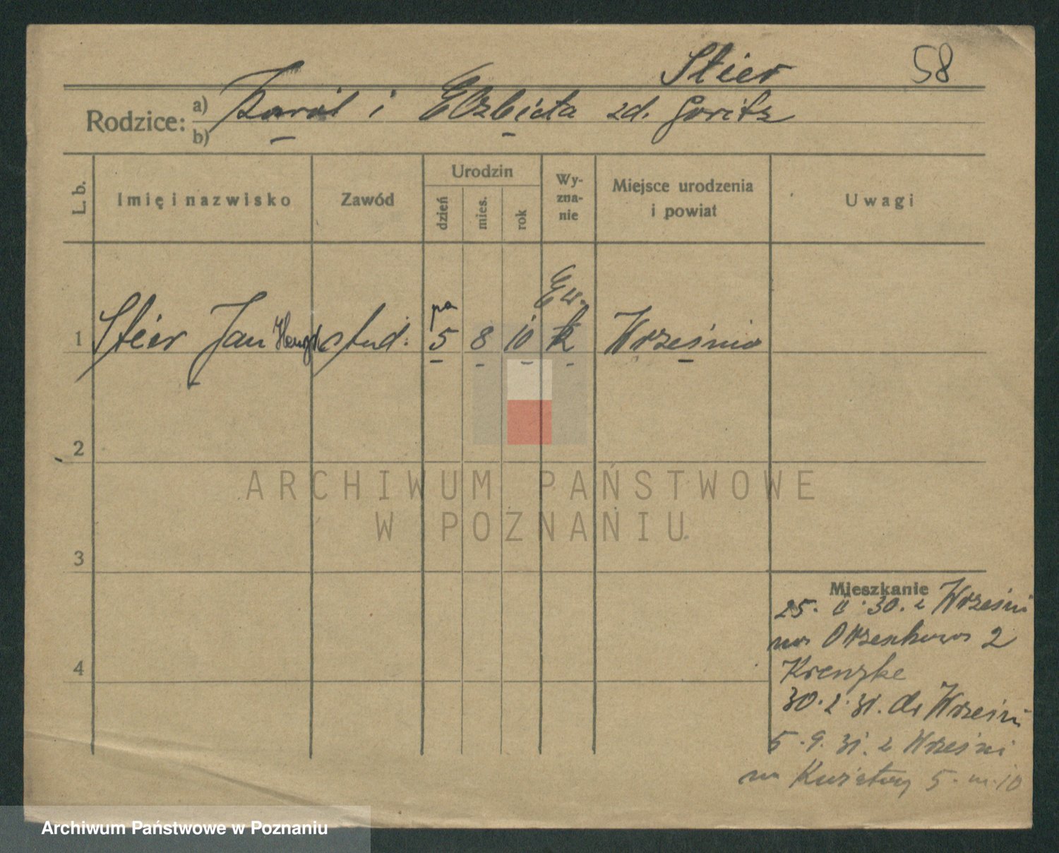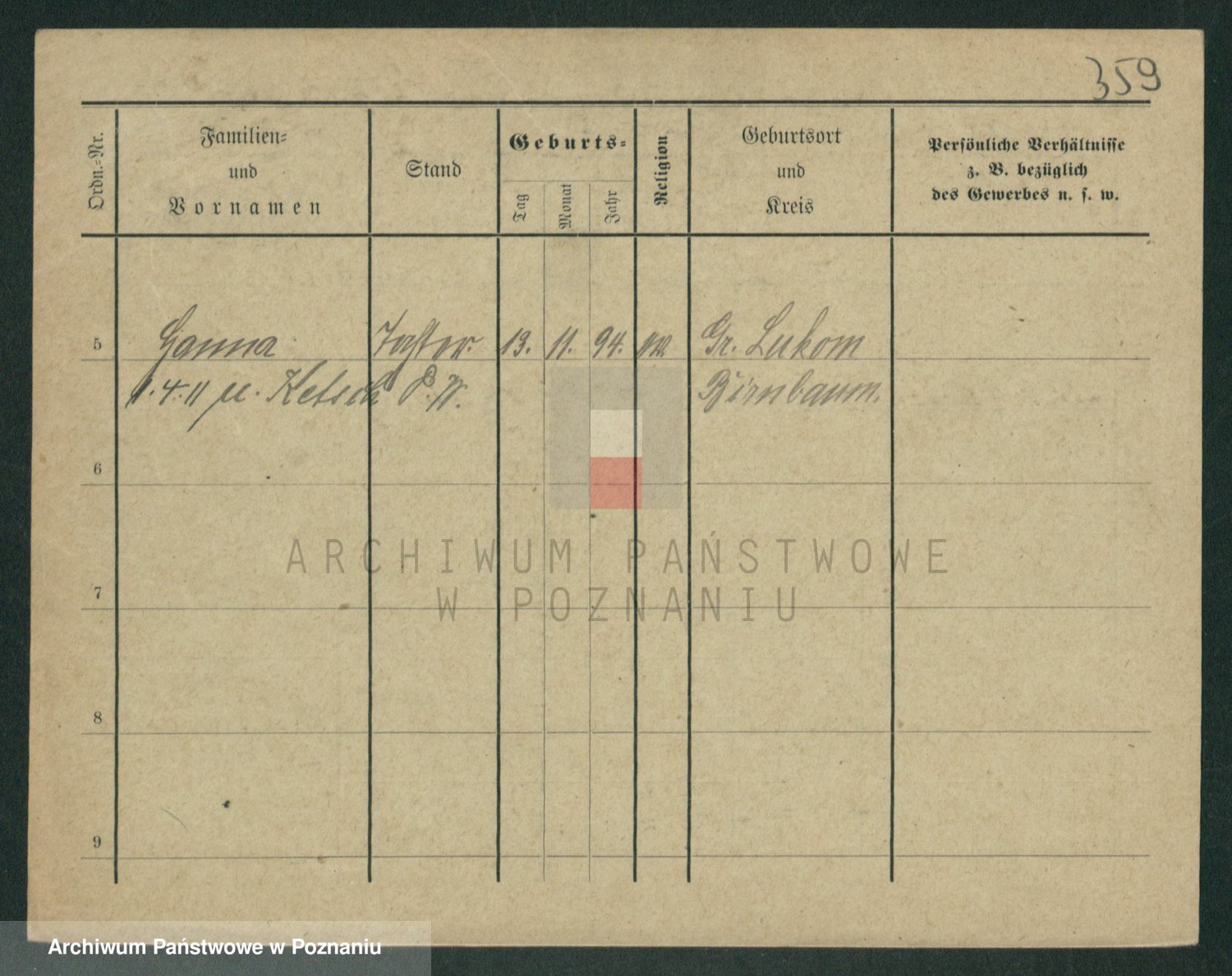 Podgląd karty osobowej dostępny jest po kliknięciu na nazwisko lub ikonkę karty. Można dokonywać powiększenia (ikony na górze) lub przechodzić między kolejnymi skanami (strzałki po bokach).