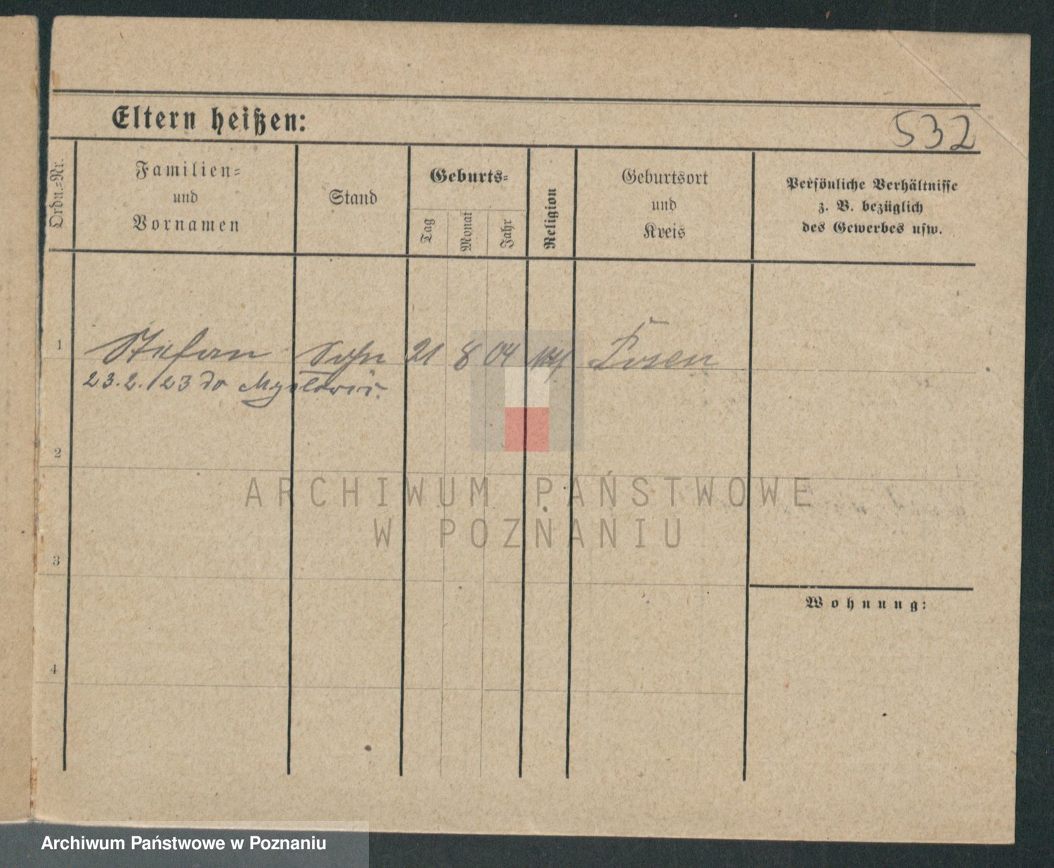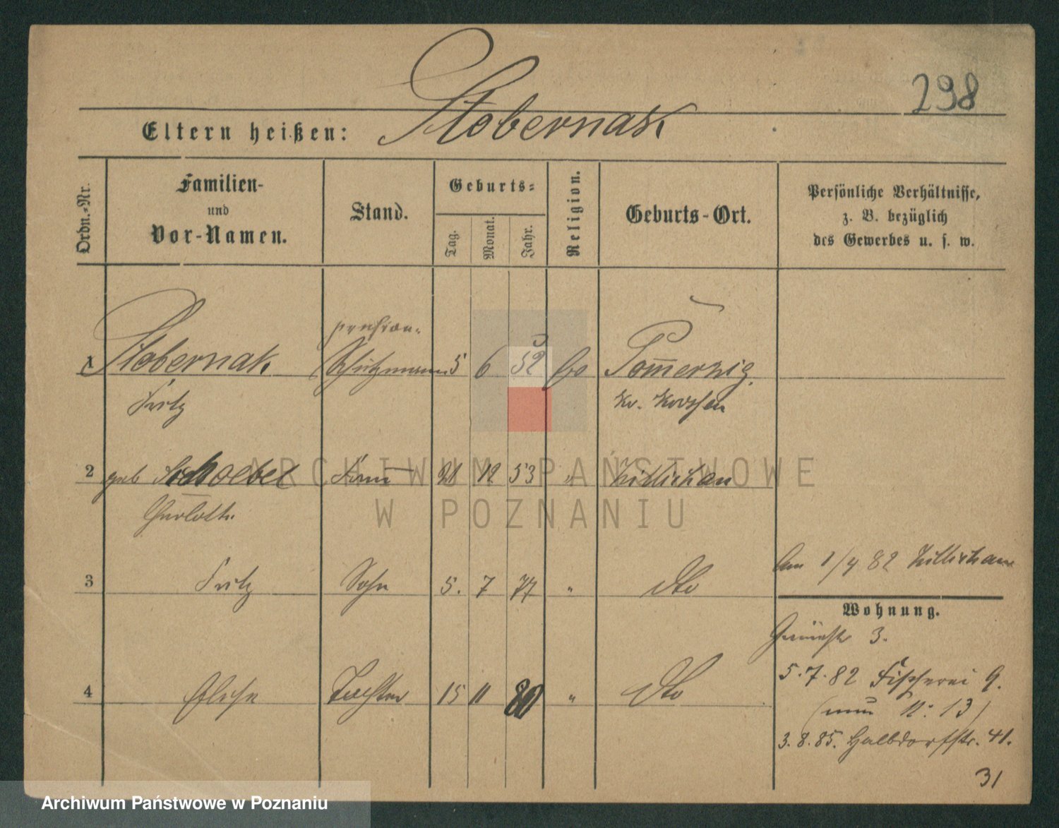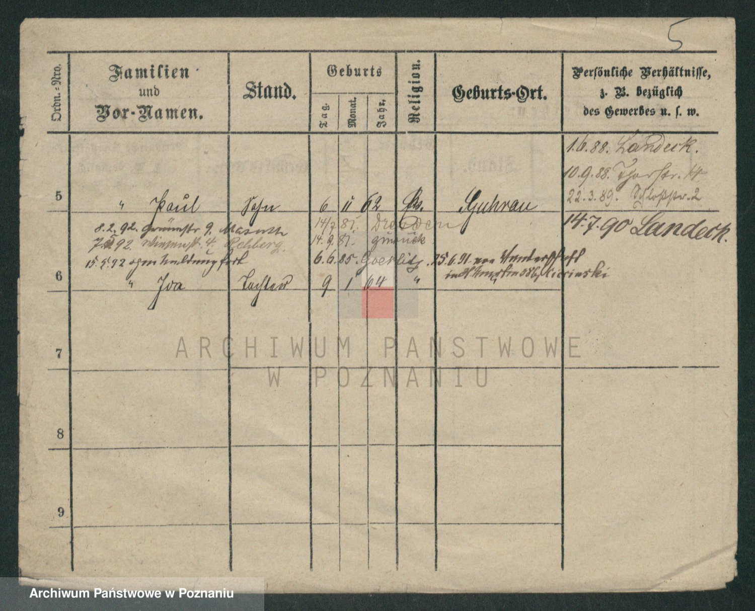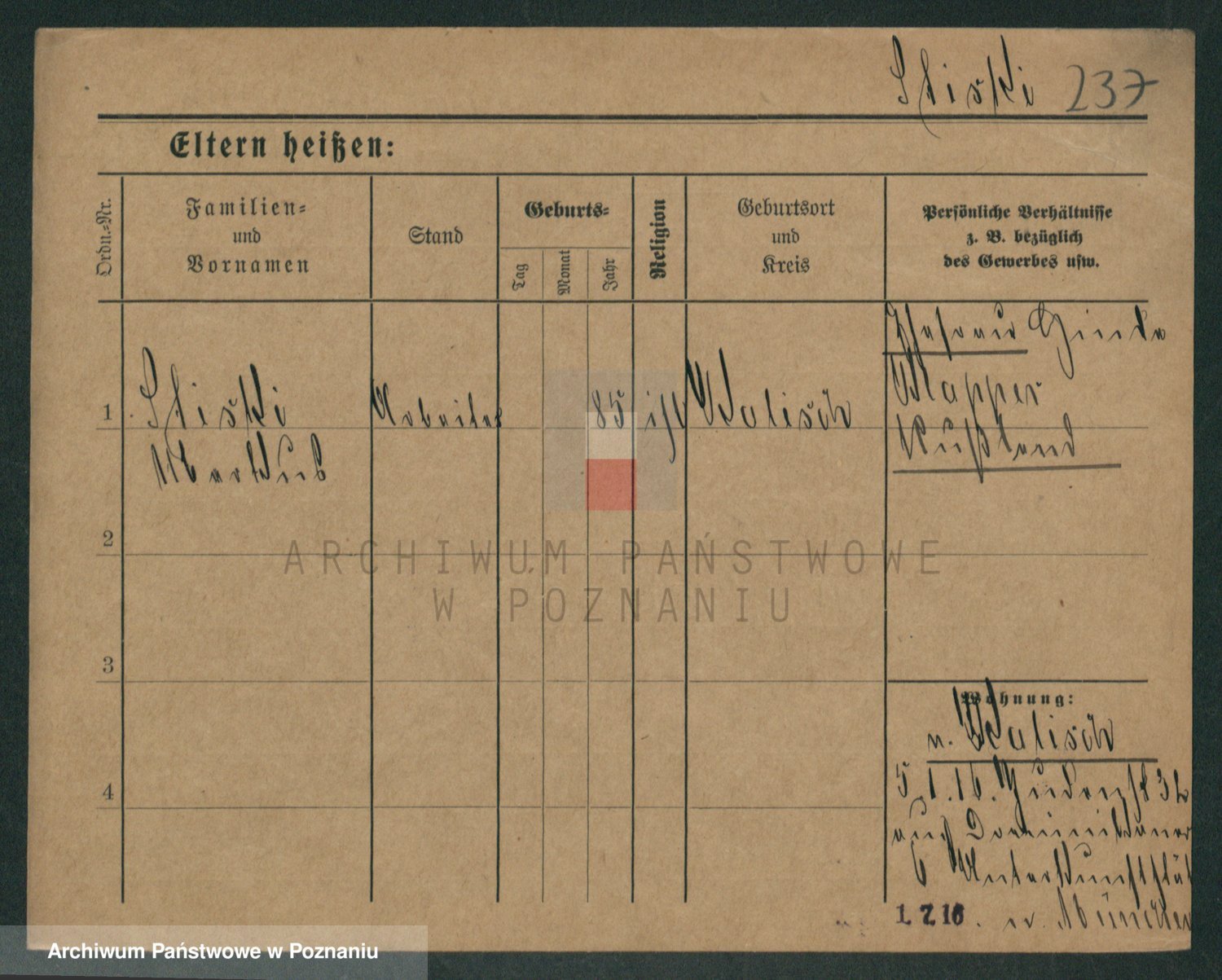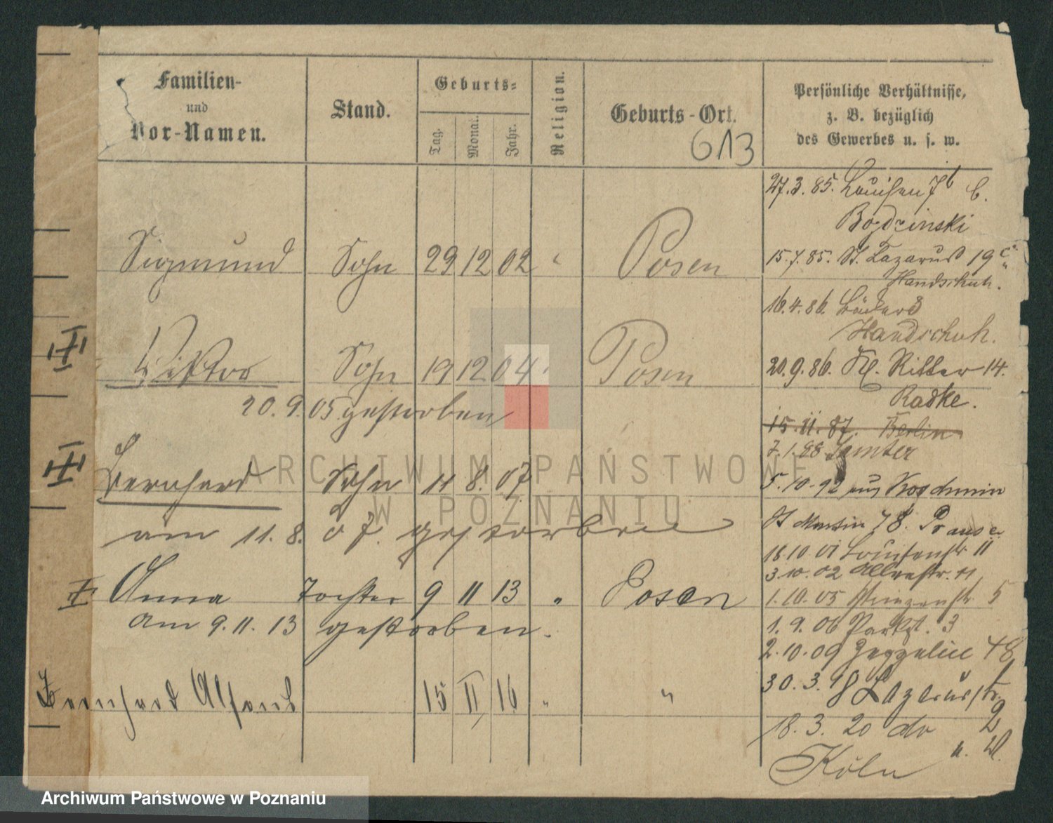 Podgląd karty osobowej dostępny jest po kliknięciu na nazwisko lub ikonkę karty. Można dokonywać powiększenia (ikony na górze) lub przechodzić między kolejnymi skanami (strzałki po bokach).