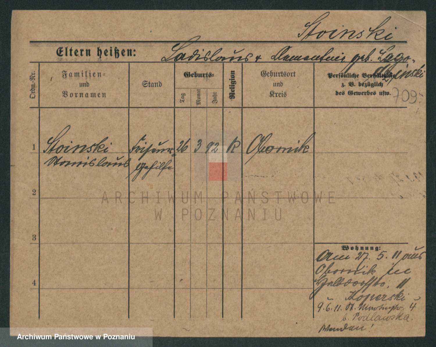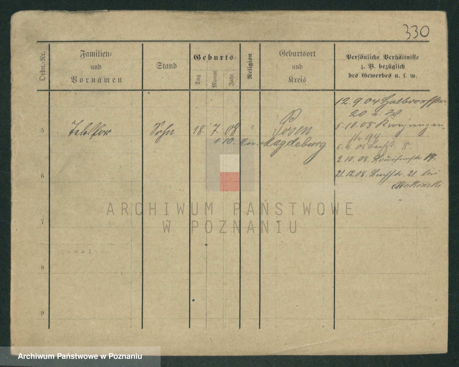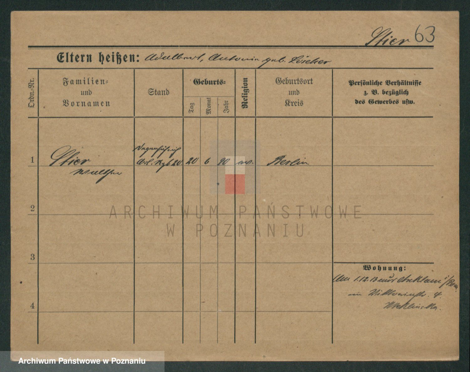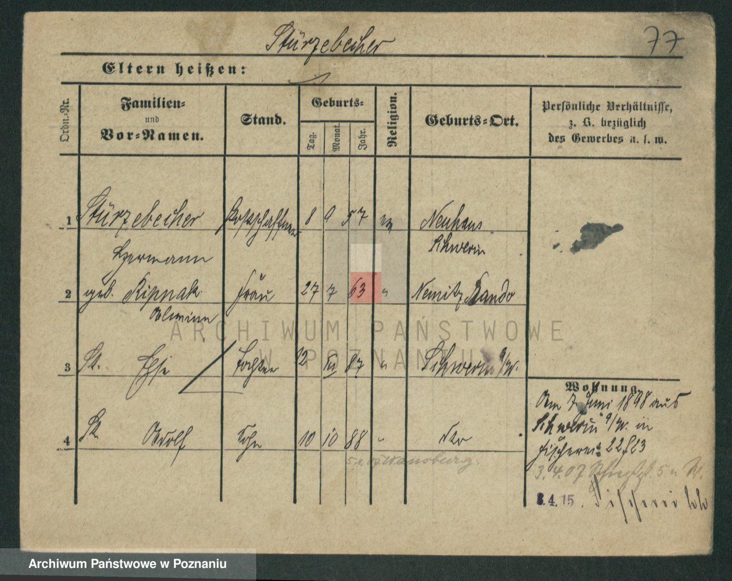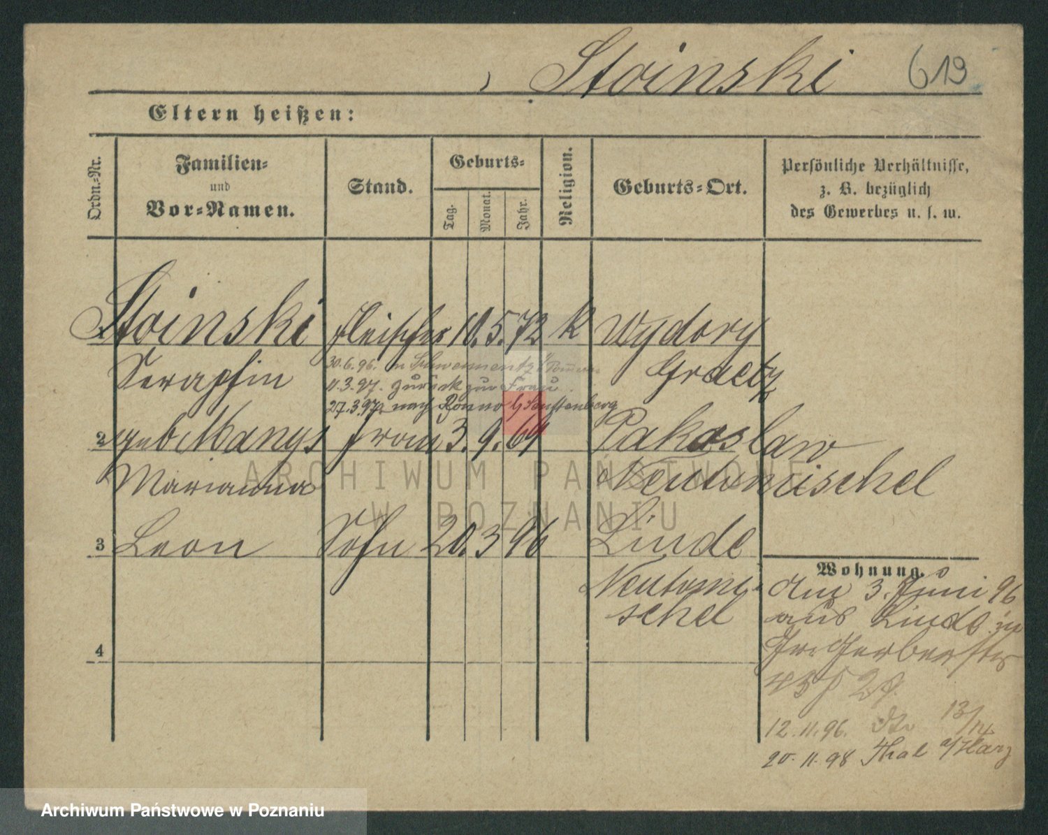Podgląd karty osobowej dostępny jest po kliknięciu na nazwisko lub ikonkę karty. Można dokonywać powiększenia (ikony na górze) lub przechodzić między kolejnymi skanami (strzałki po bokach).