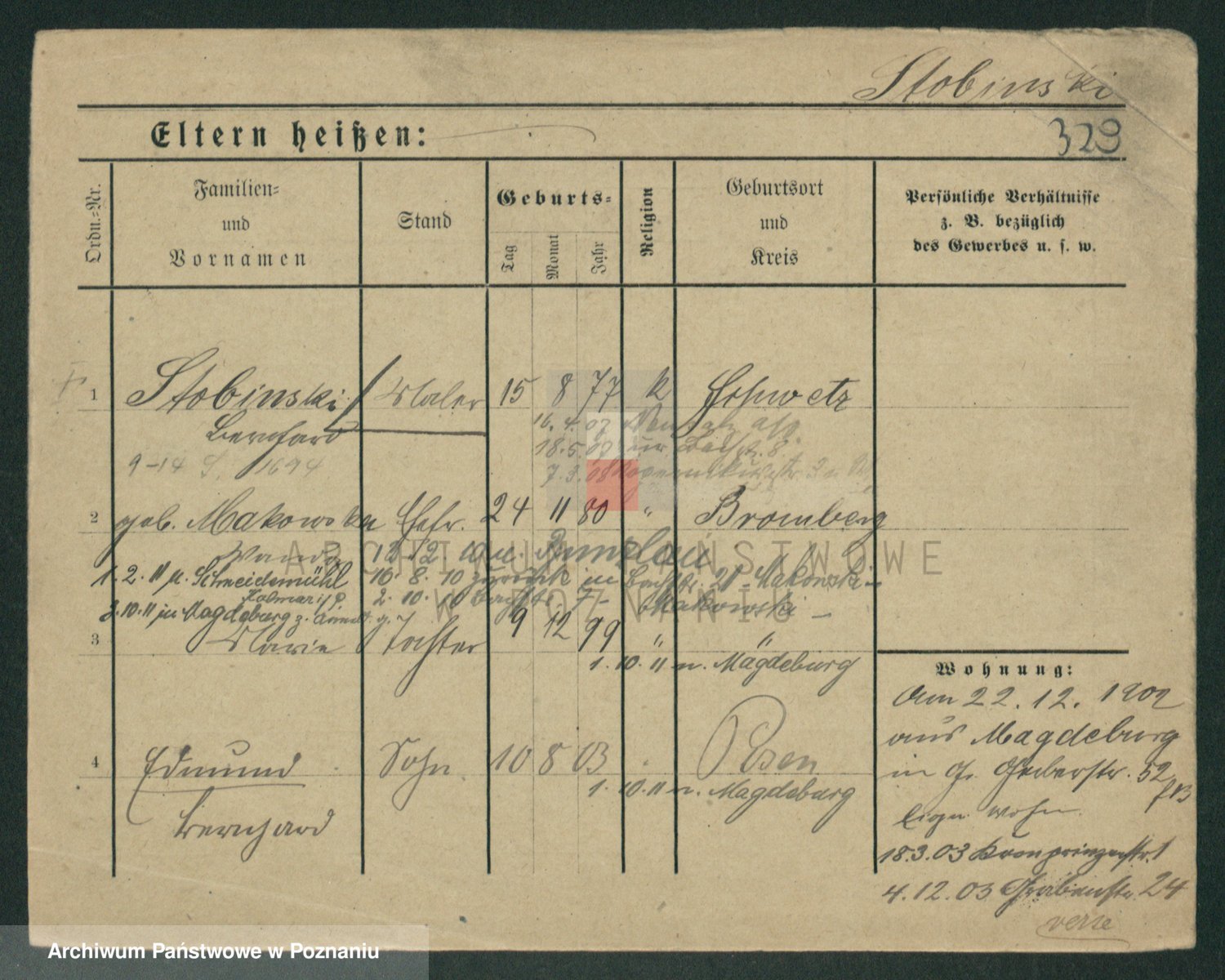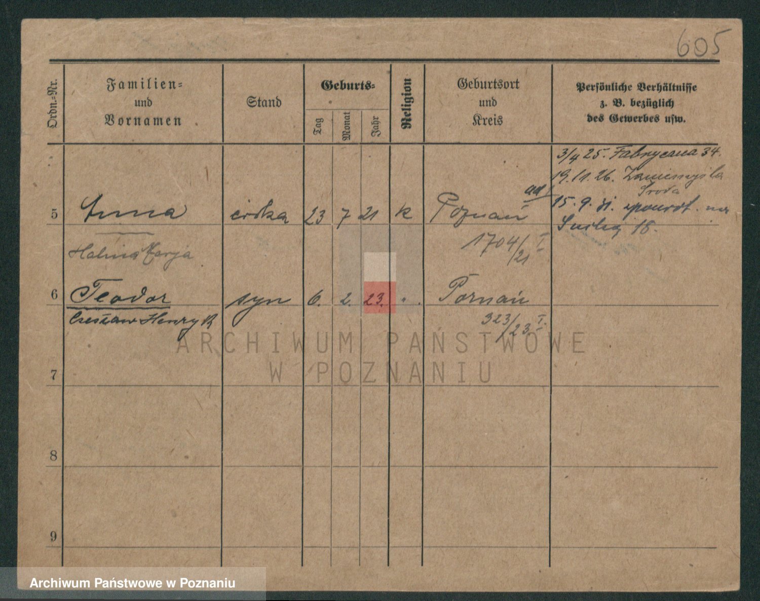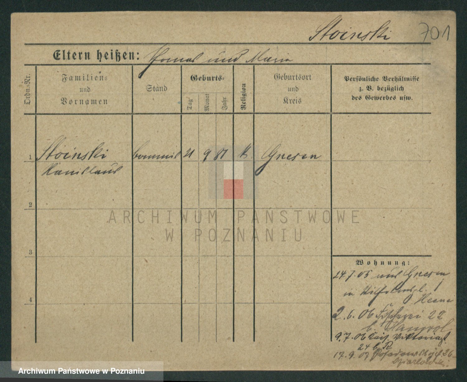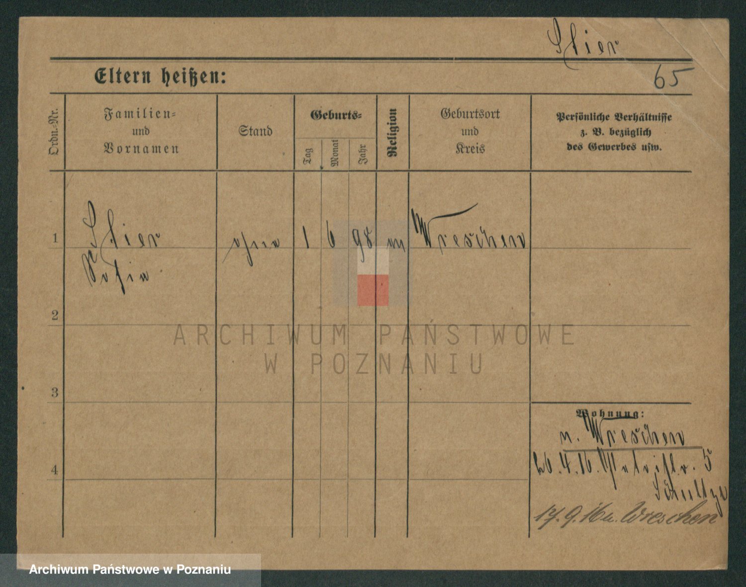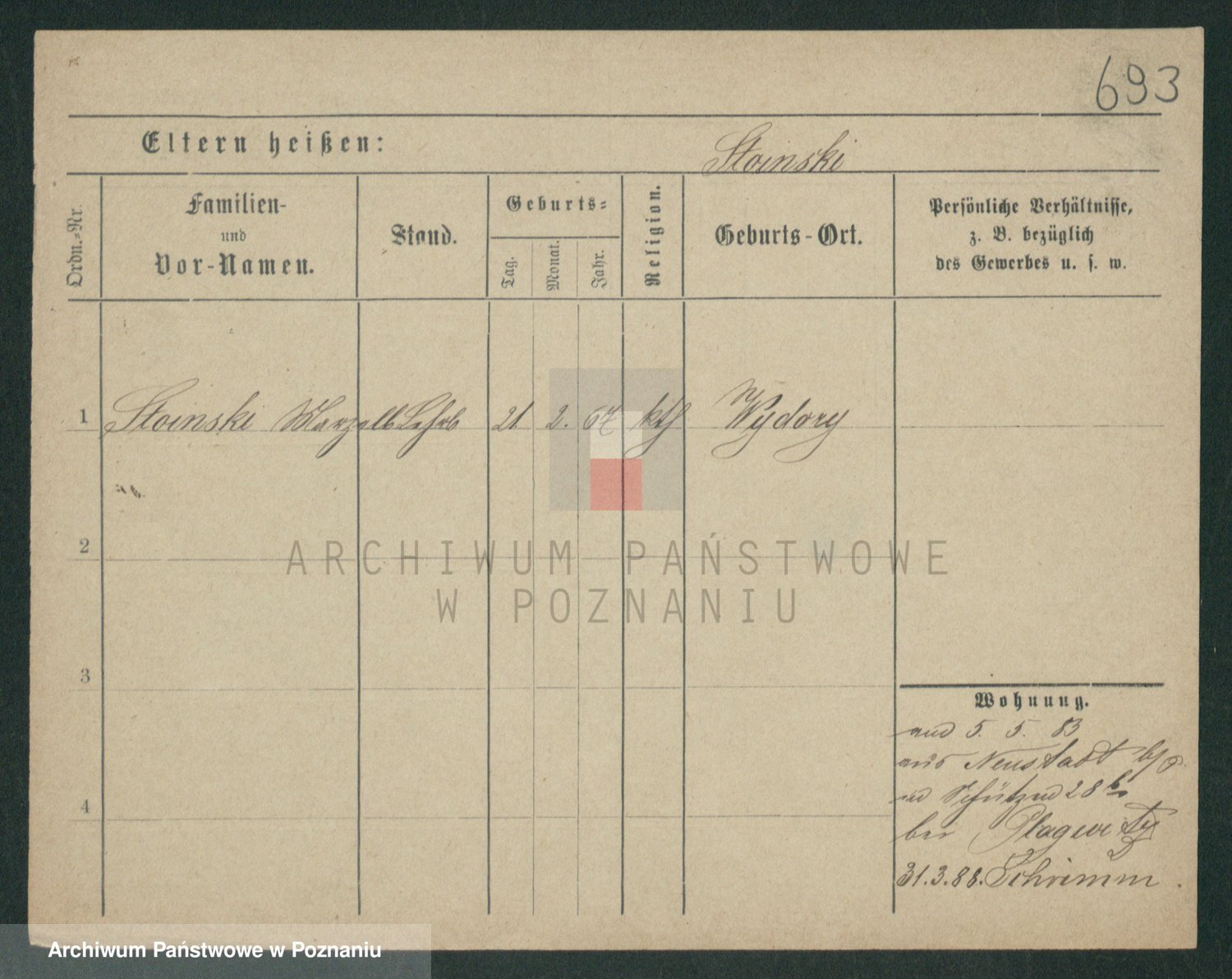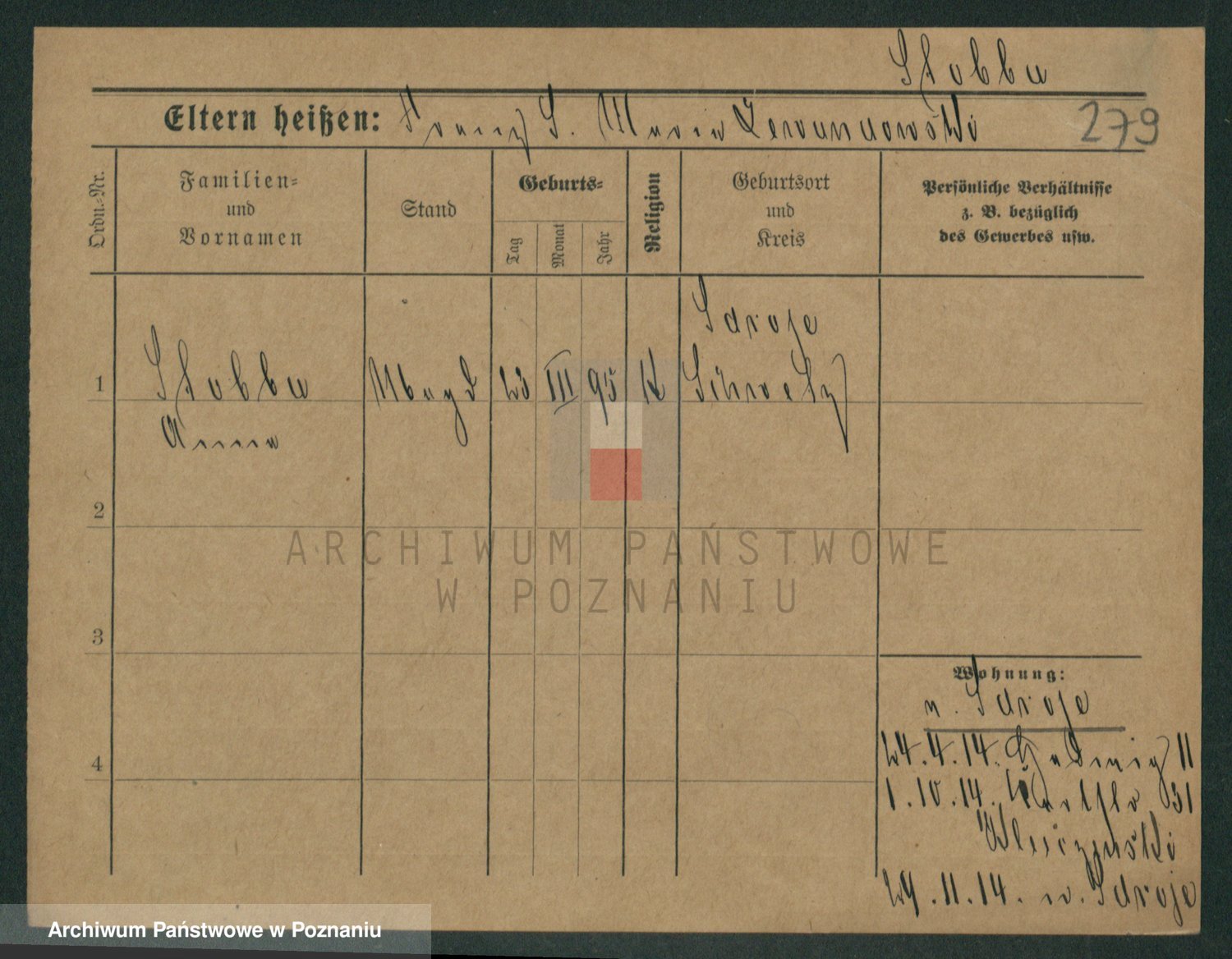 Podgląd karty osobowej dostępny jest po kliknięciu na nazwisko lub ikonkę karty. Można dokonywać powiększenia (ikony na górze) lub przechodzić między kolejnymi skanami (strzałki po bokach).