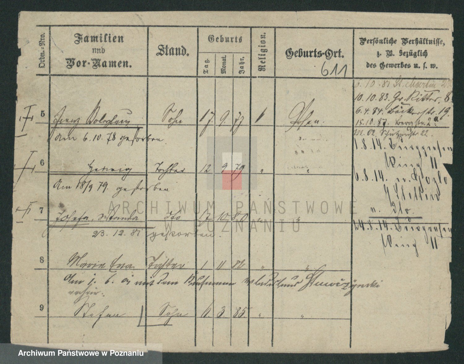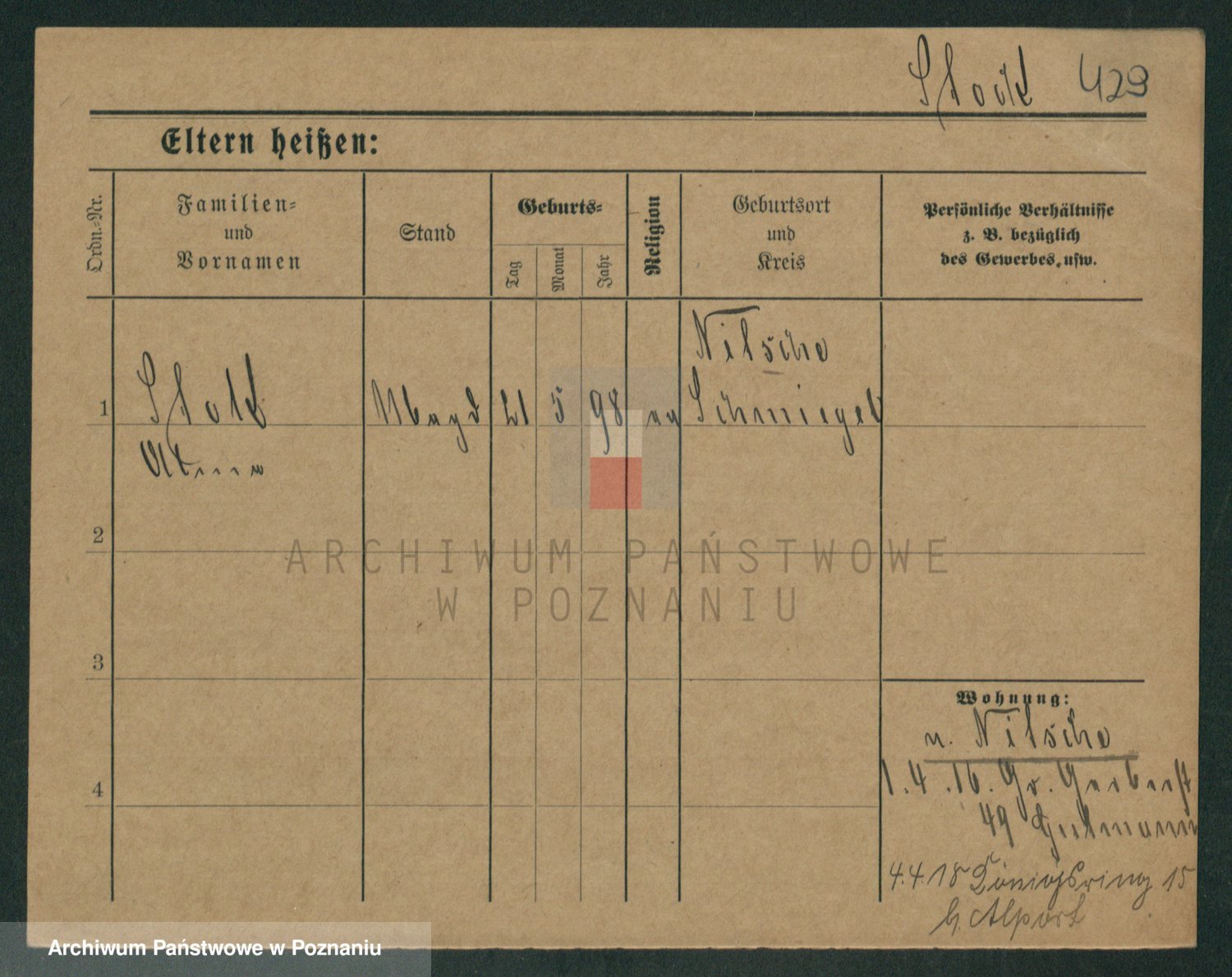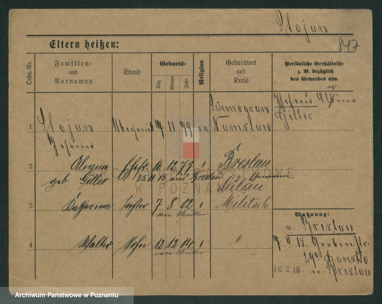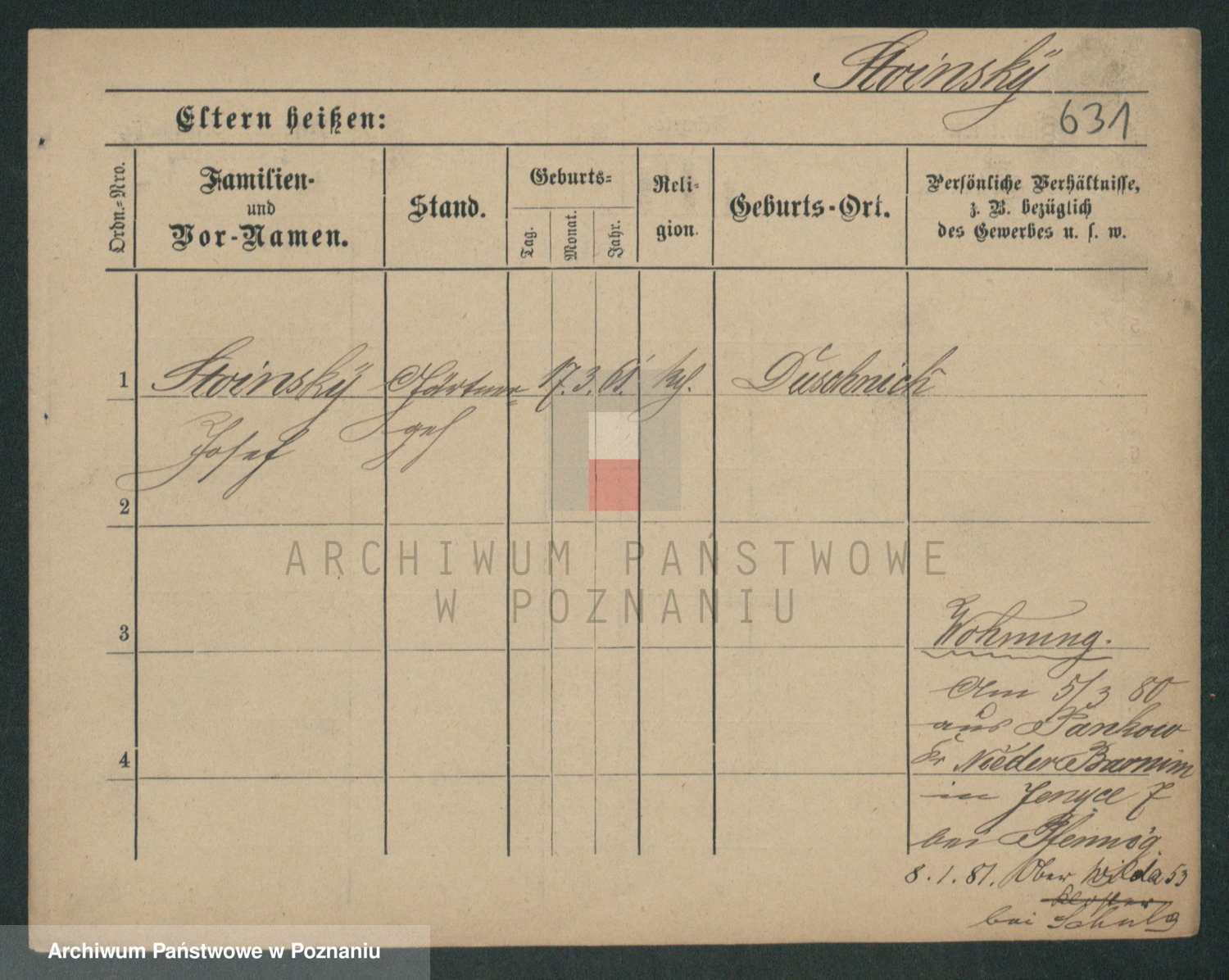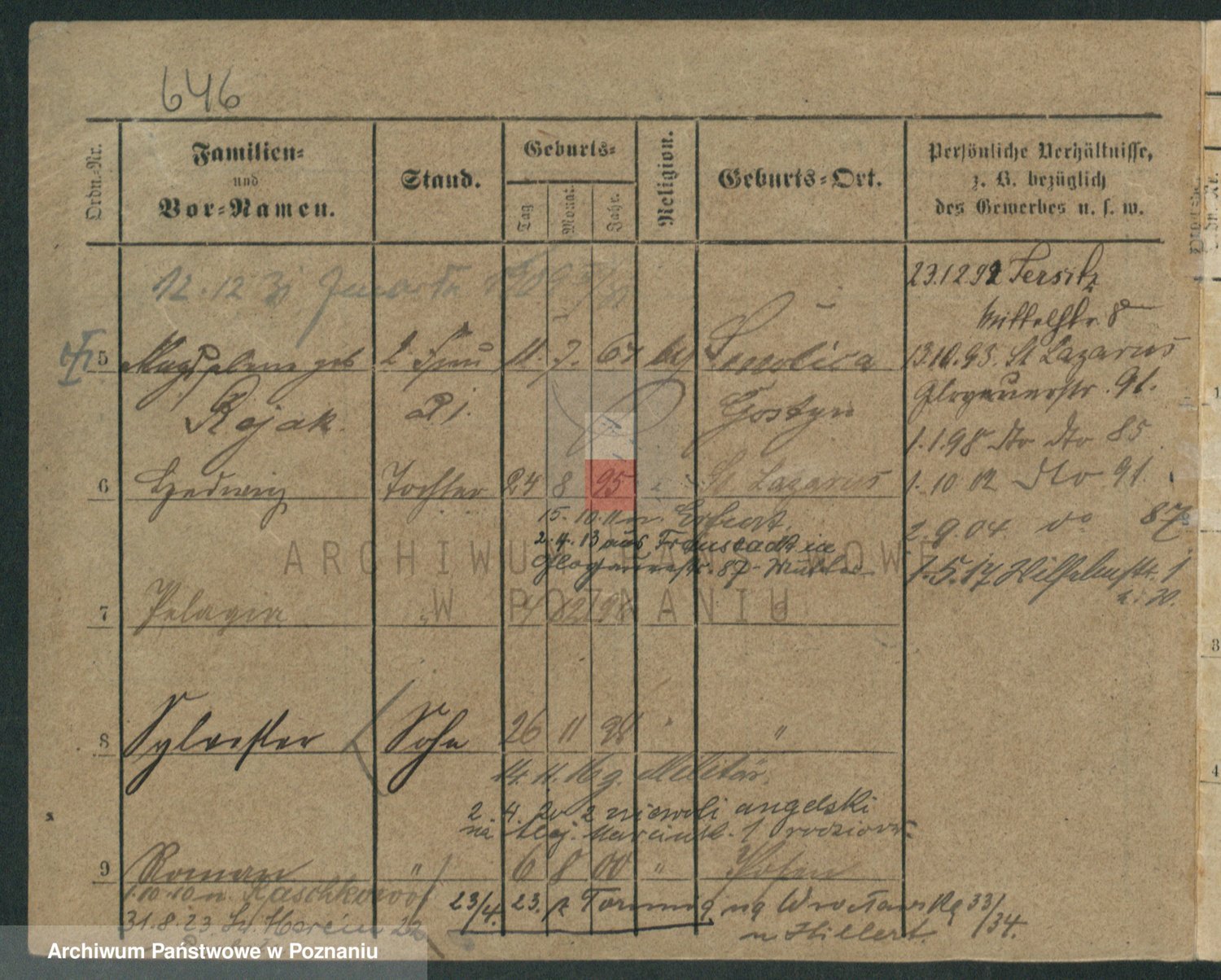 Podgląd karty osobowej dostępny jest po kliknięciu na nazwisko lub ikonkę karty. Można dokonywać powiększenia (ikony na górze) lub przechodzić między kolejnymi skanami (strzałki po bokach).