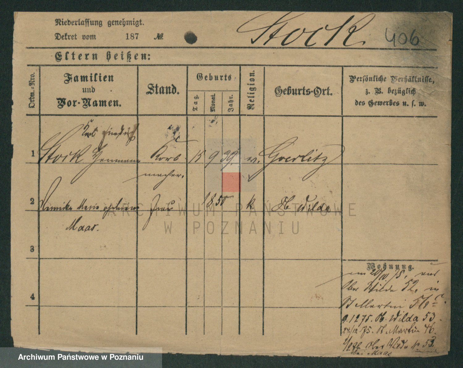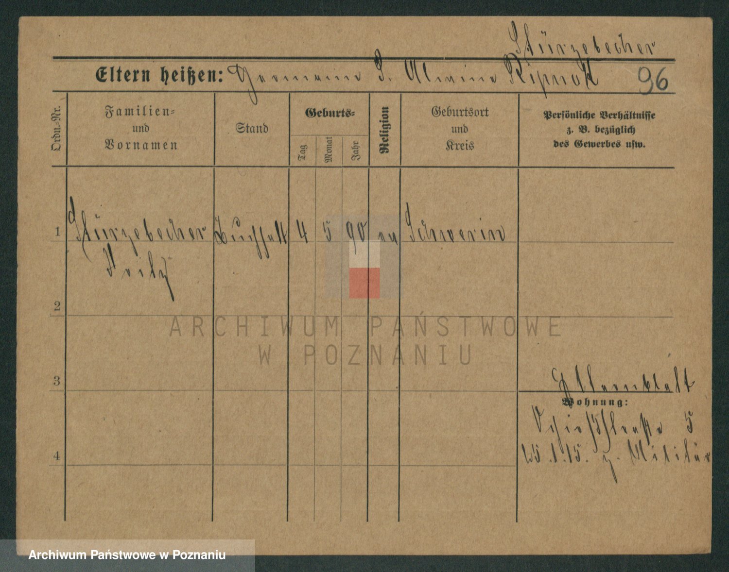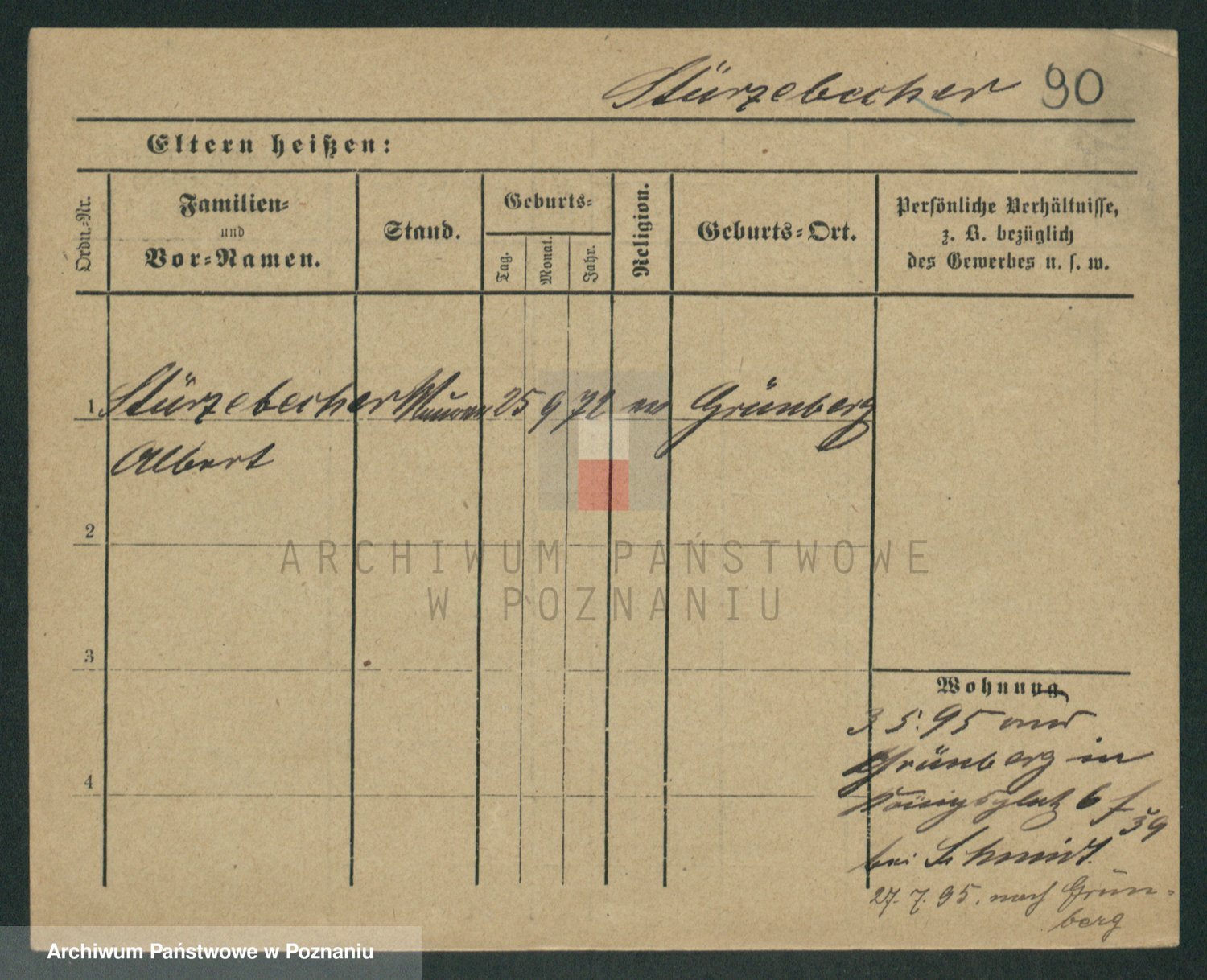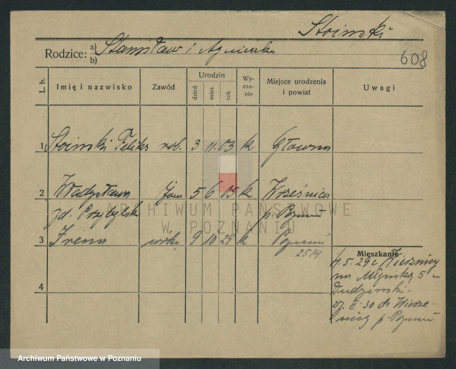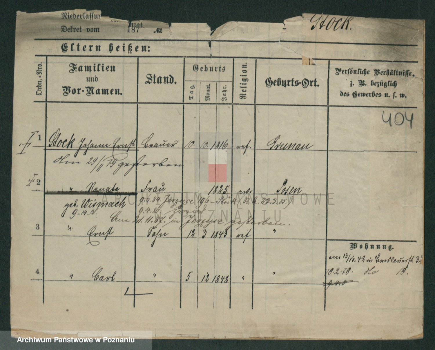 Podgląd karty osobowej dostępny jest po kliknięciu na nazwisko lub ikonkę karty. Można dokonywać powiększenia (ikony na górze) lub przechodzić między kolejnymi skanami (strzałki po bokach).