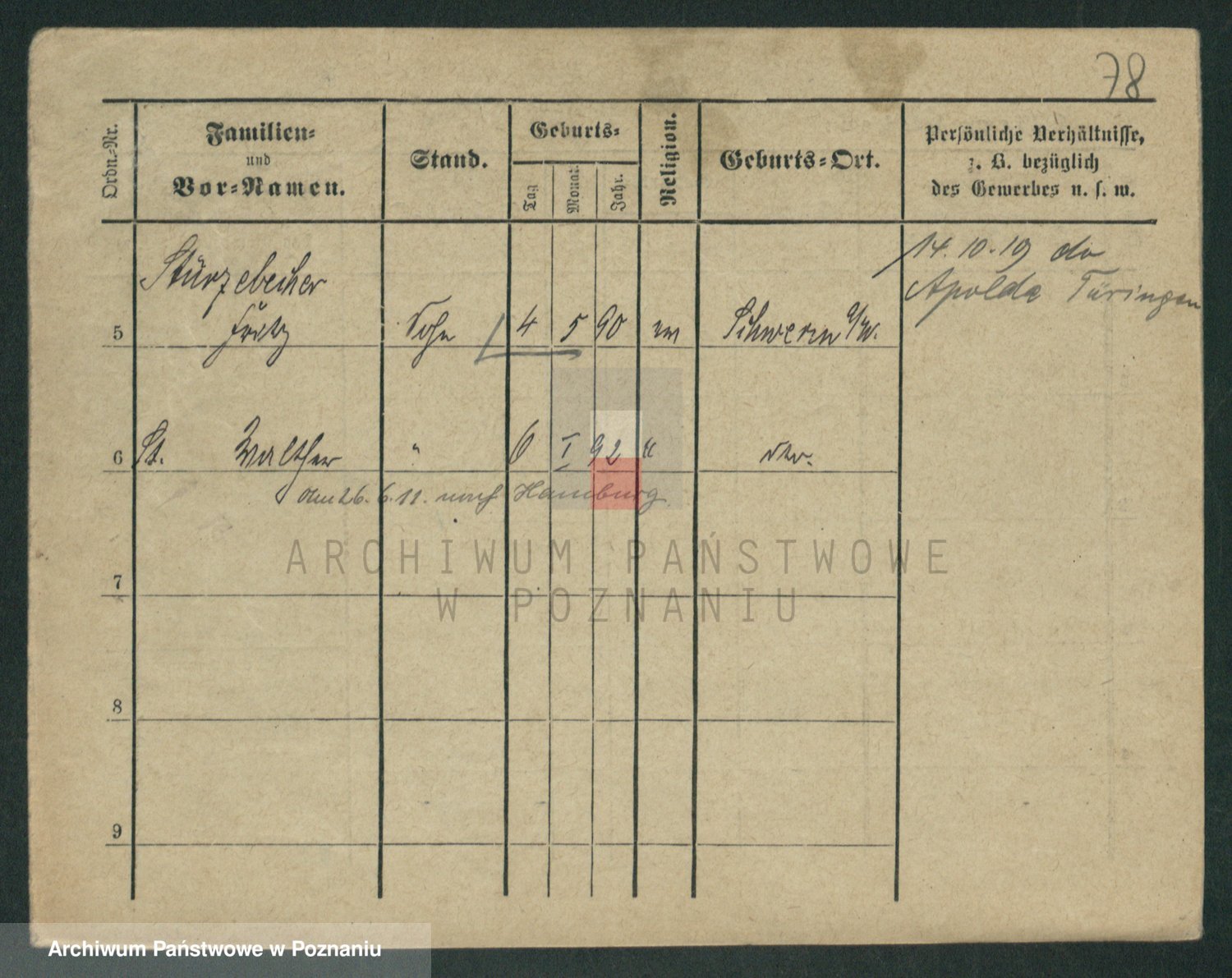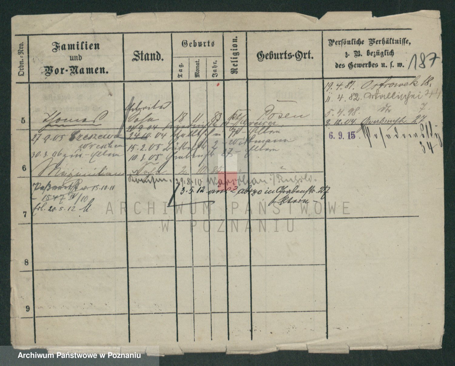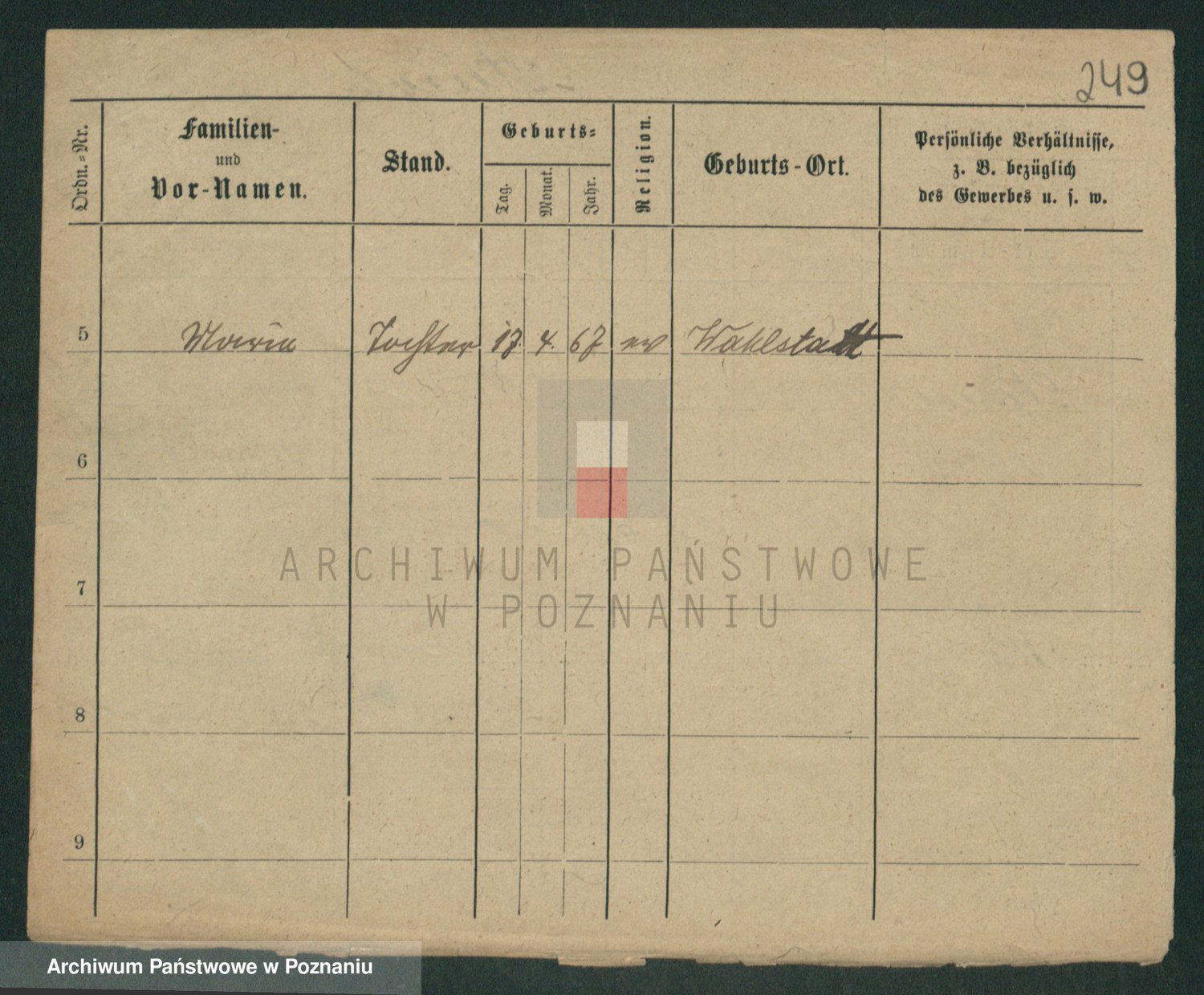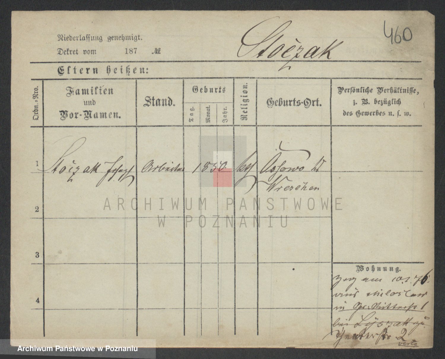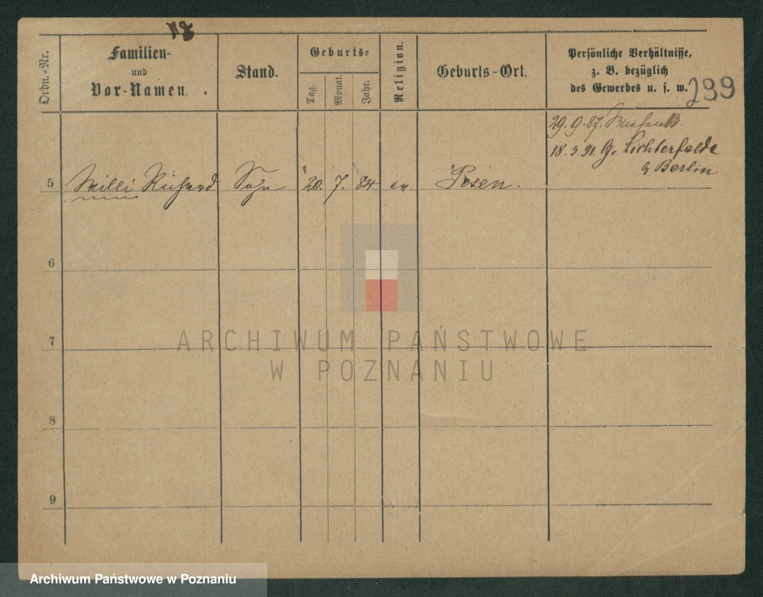 Podgląd karty osobowej dostępny jest po kliknięciu na nazwisko lub ikonkę karty. Można dokonywać powiększenia (ikony na górze) lub przechodzić między kolejnymi skanami (strzałki po bokach).